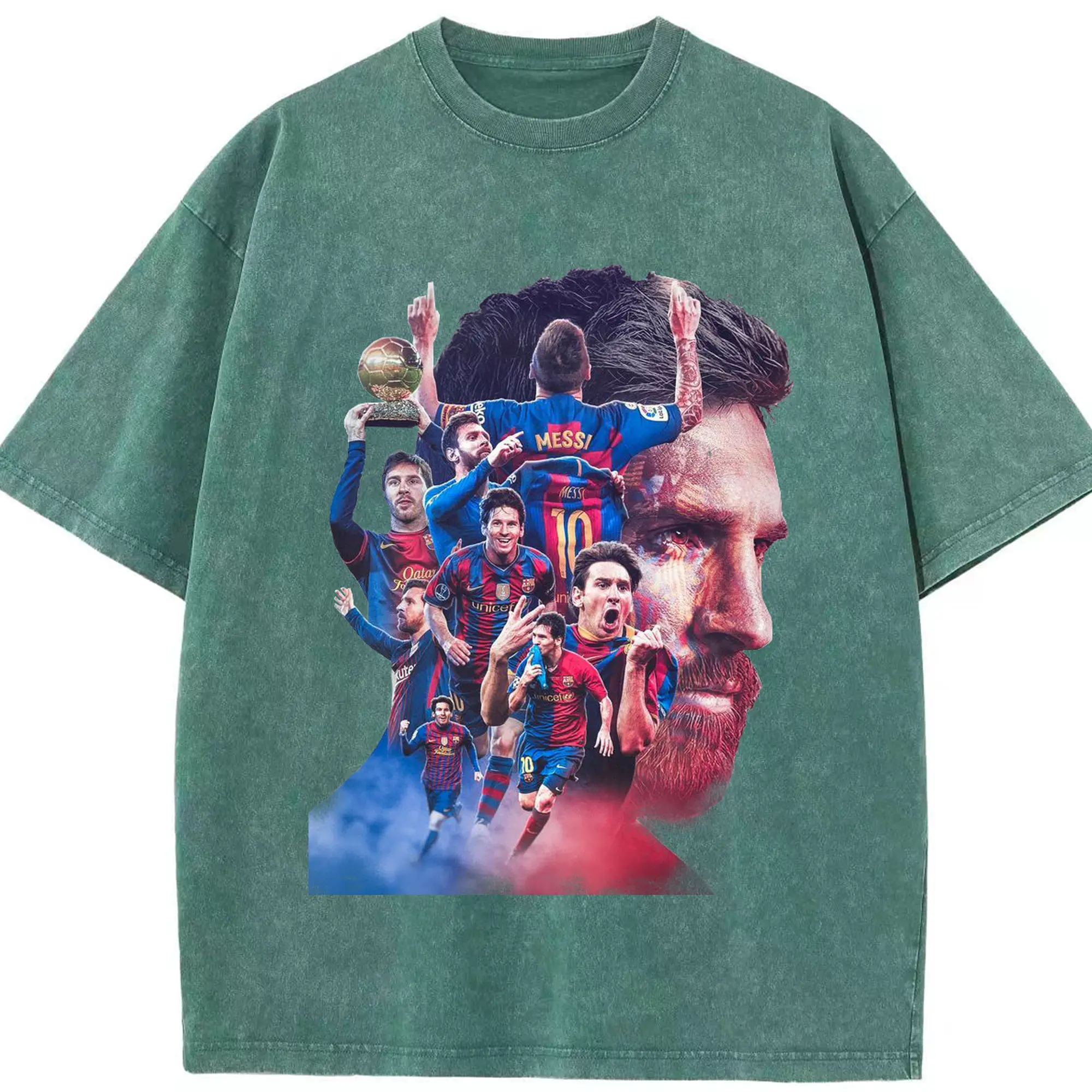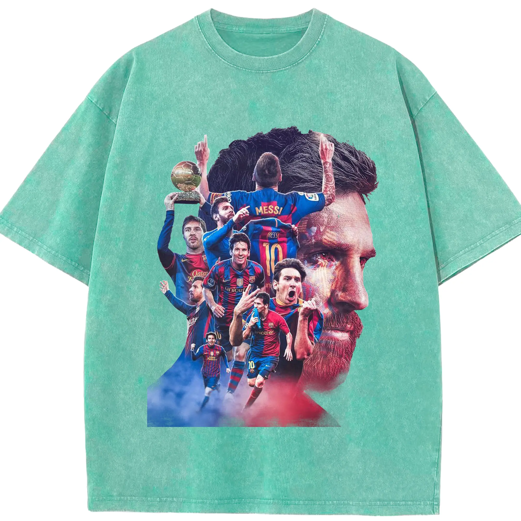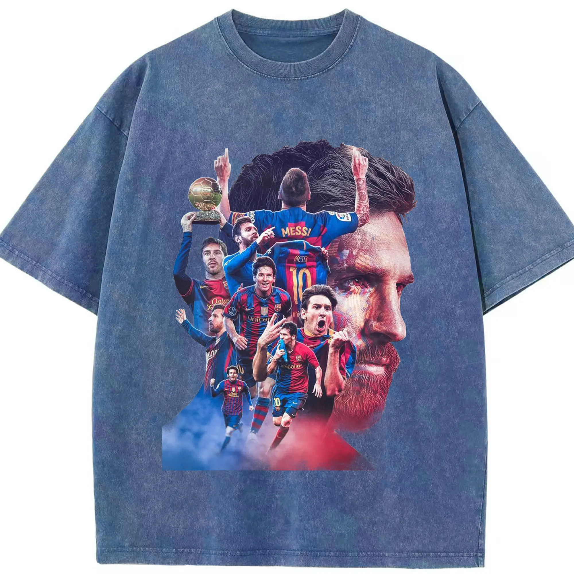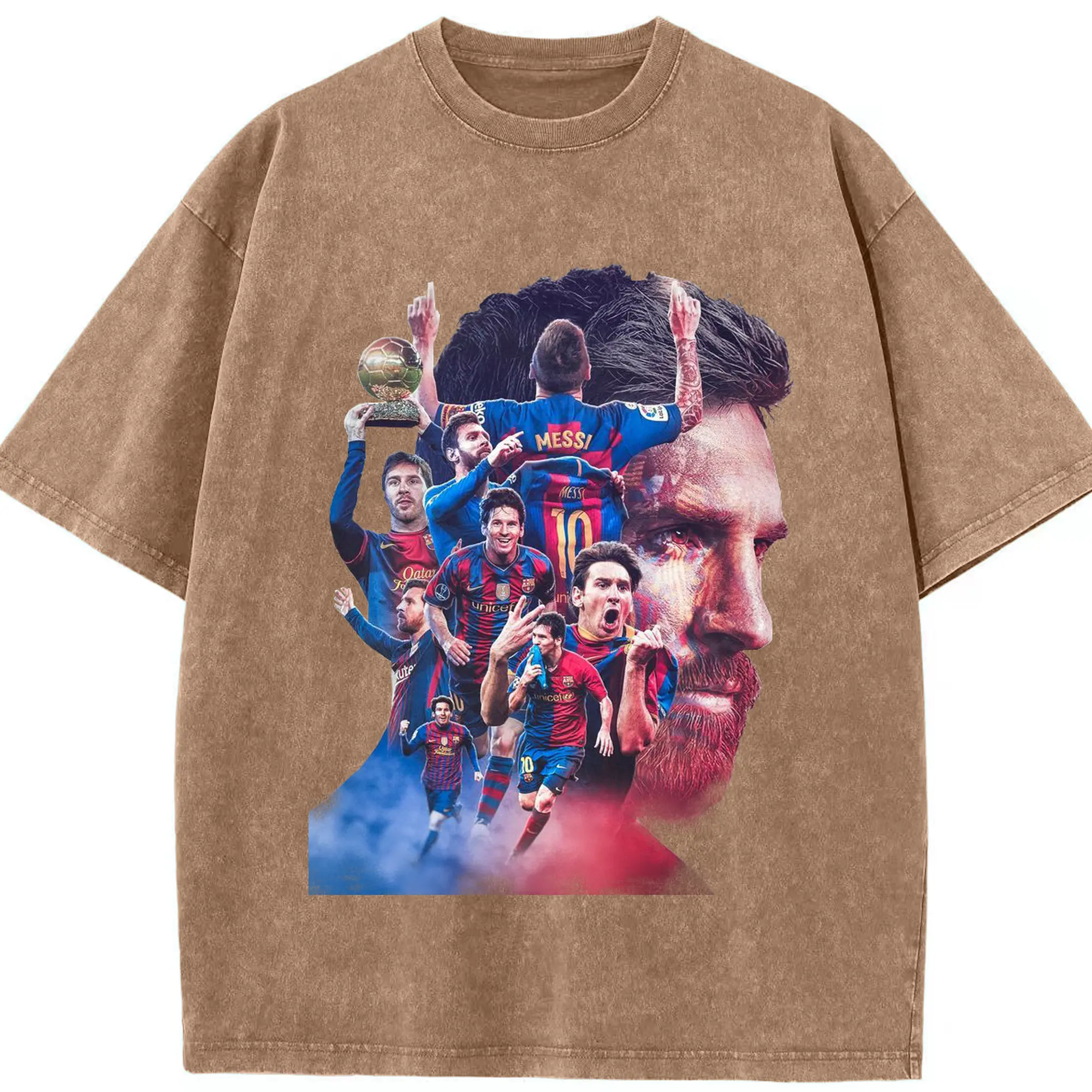 Lionel Messi Barcelona Career Highlights DIY Shirt - Washed Vintage Look 230g Cotton Oversized T-Shirt With Front Heat Transfer Print – Soft, Lightweight, Stylish Fit – Comfortable Casual Wear For Sports & Everyday Use