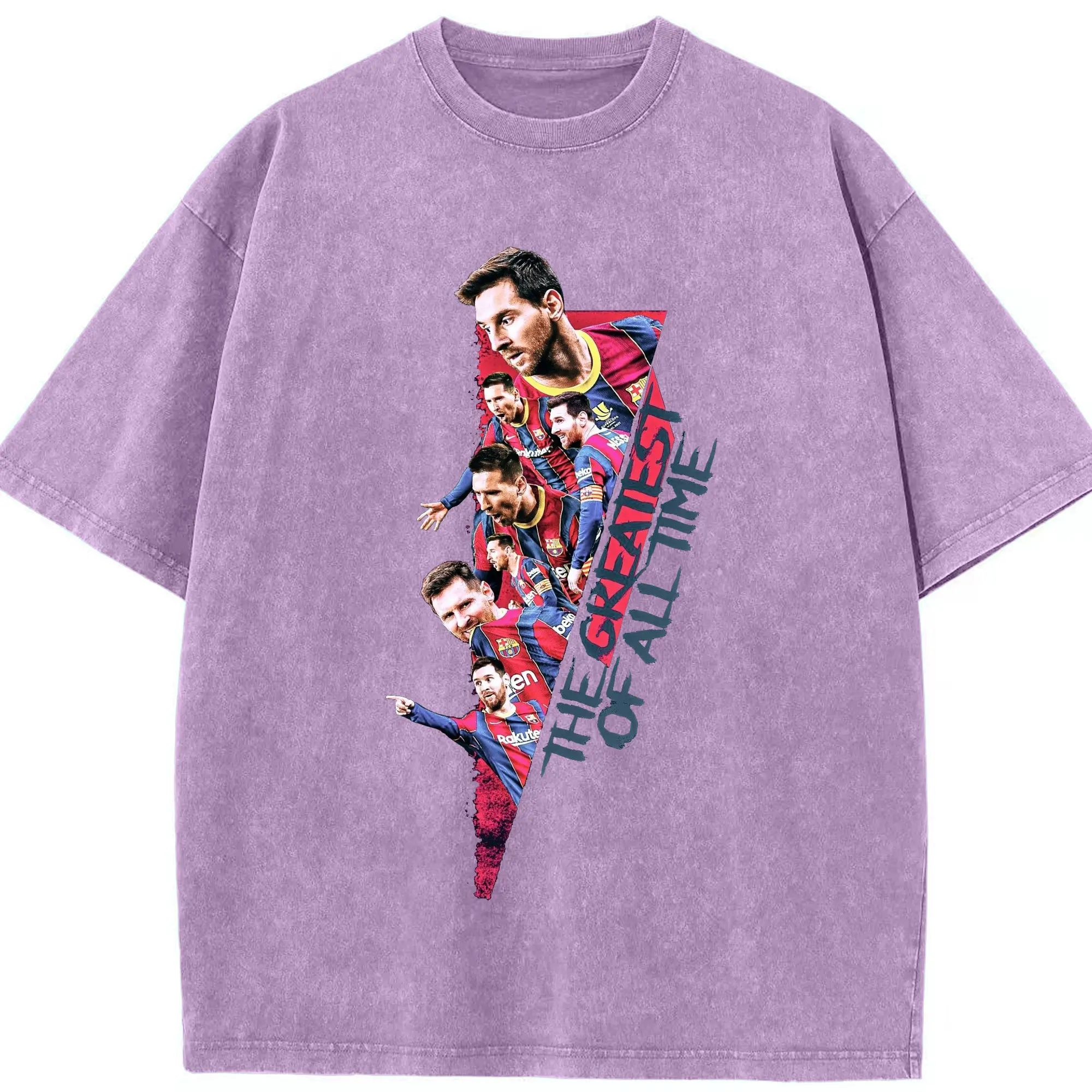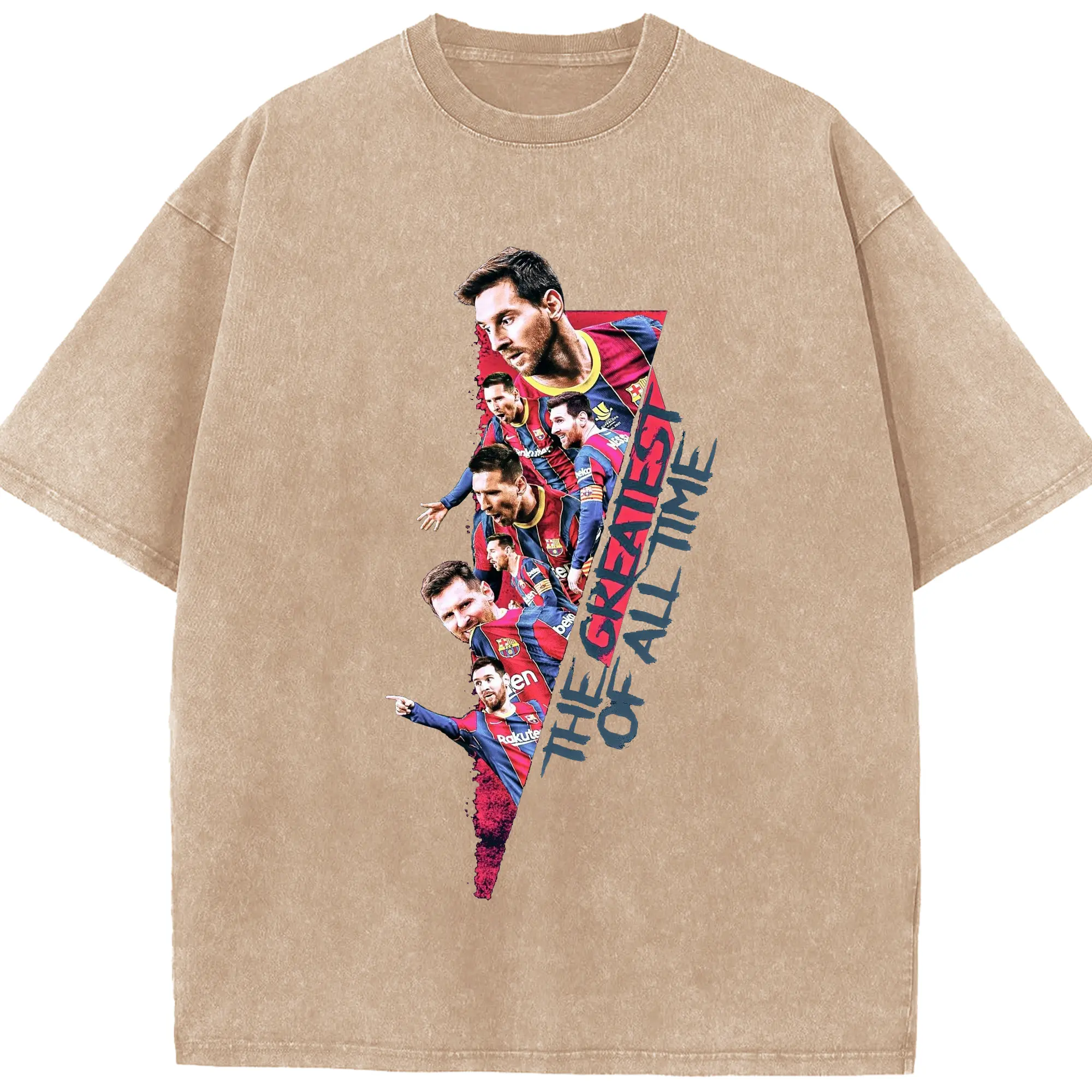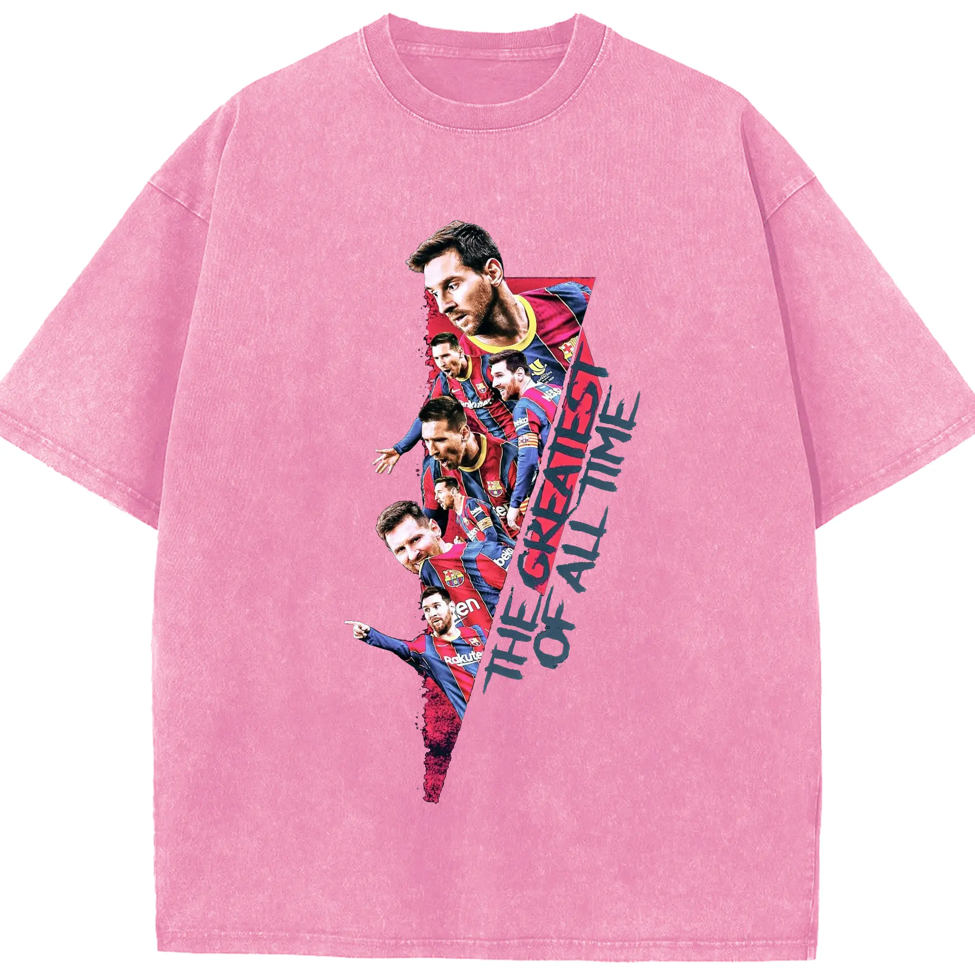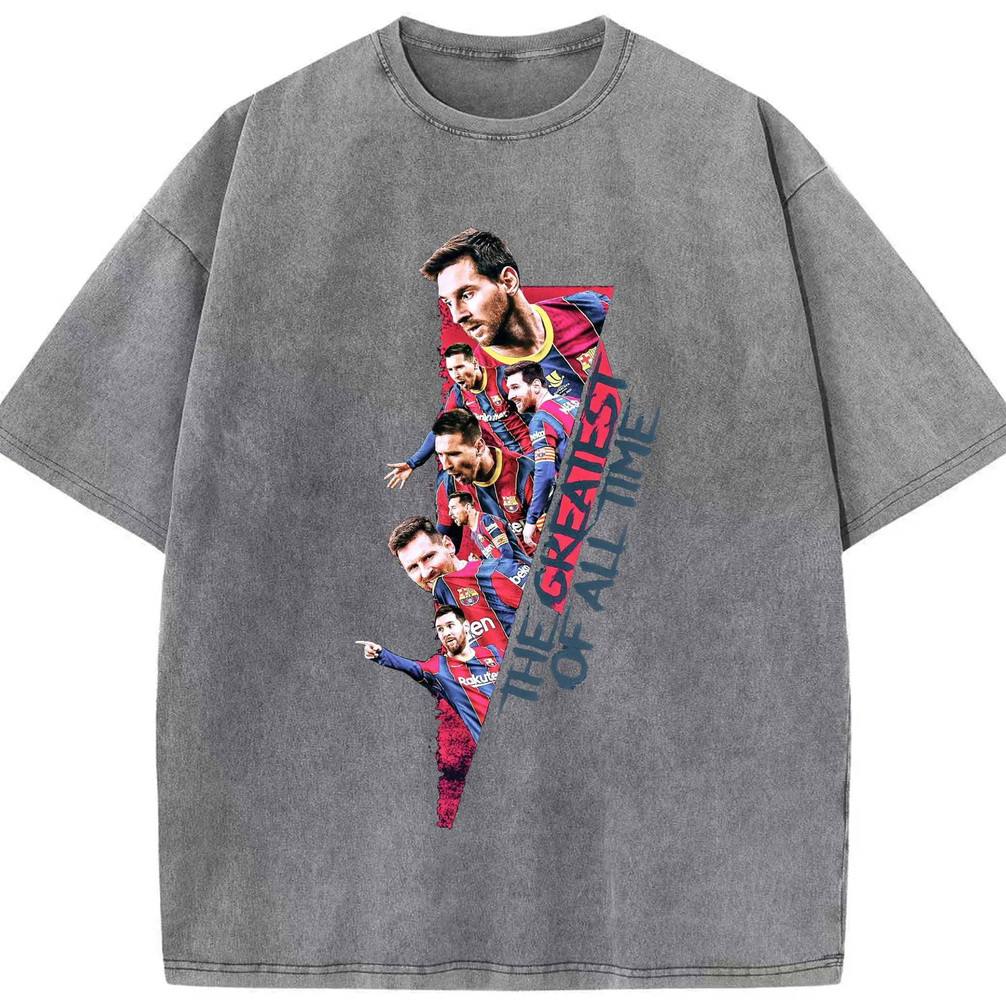 Lionel Messi Barcelona The Greatest of All Time DIY Shirt - Washed Vintage Look 230g Cotton Oversized T-Shirt With Front Heat Transfer Print – Soft, Lightweight, Stylish Fit – Comfortable Casual Wear For Sports & Everyday Use