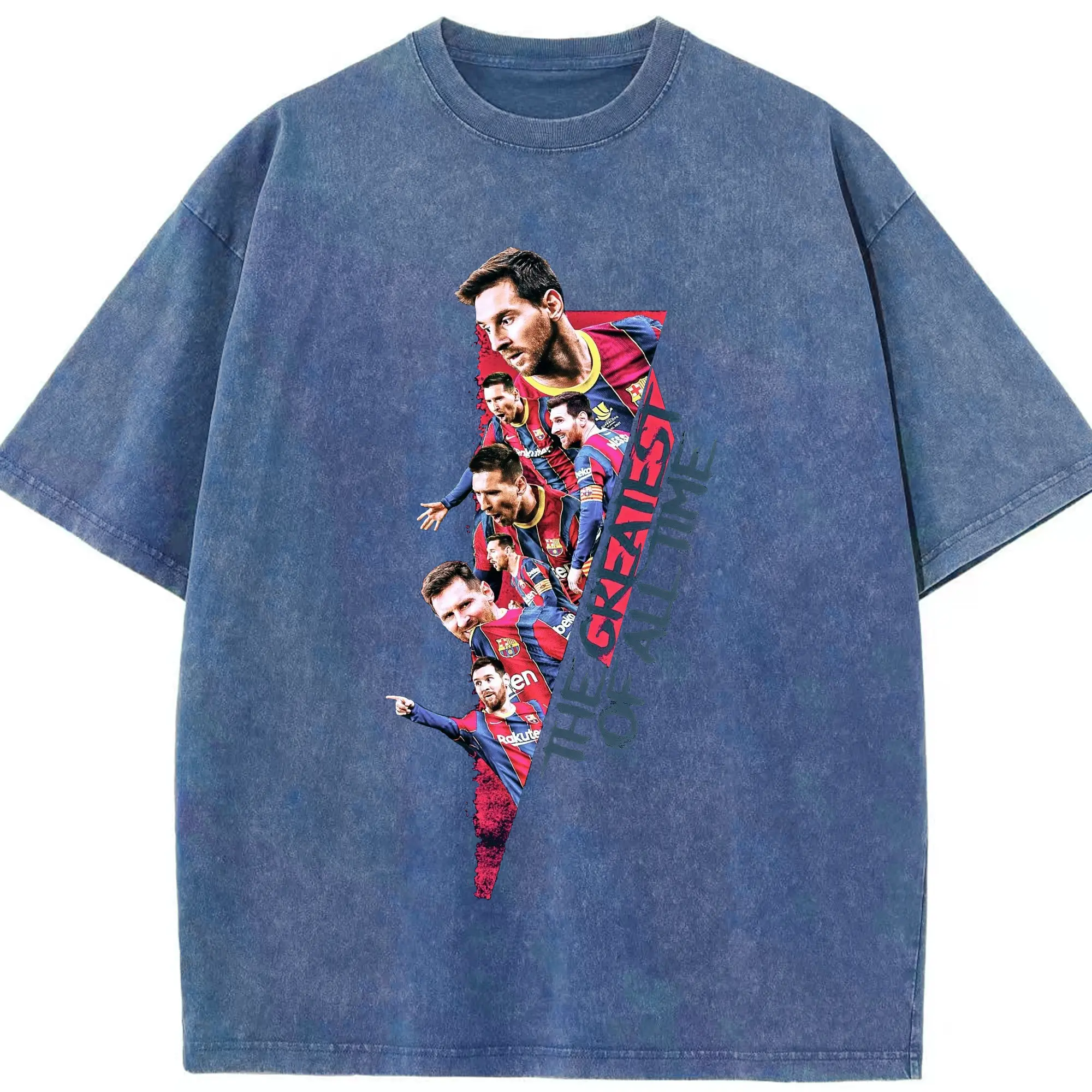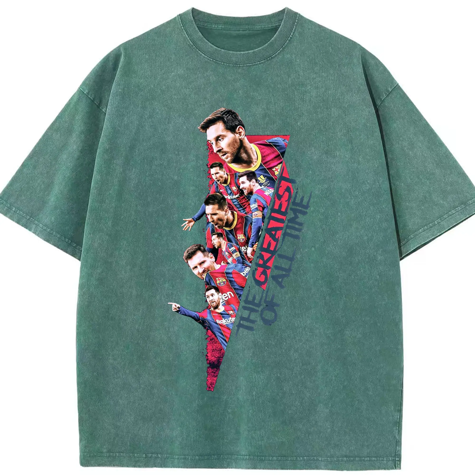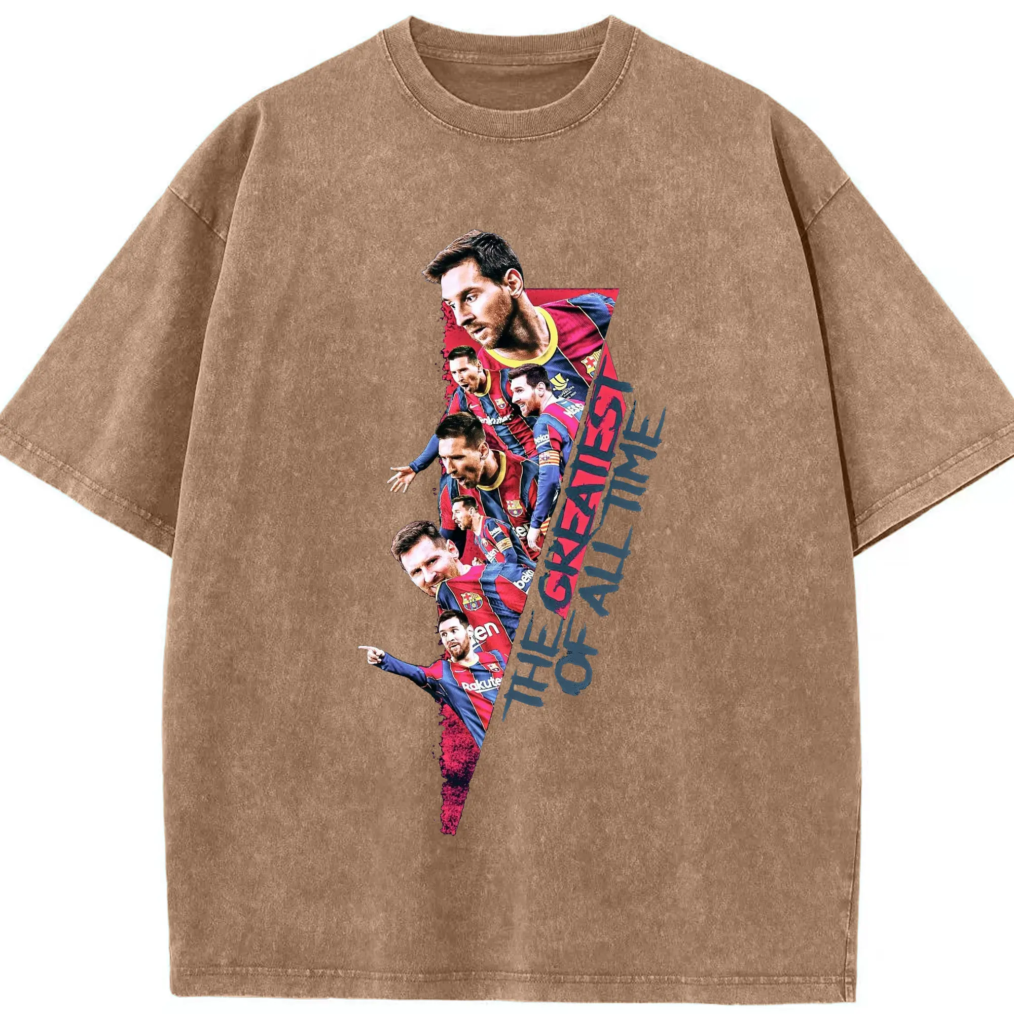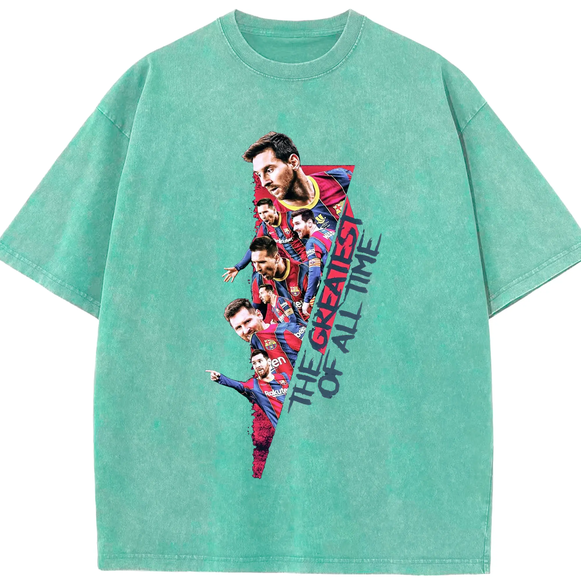 Lionel Messi Barcelona The Greatest of All Time DIY Shirt - Washed Vintage Look 230g Cotton Oversized T-Shirt With Front Heat Transfer Print – Soft, Lightweight, Stylish Fit – Comfortable Casual Wear For Sports & Everyday Use
