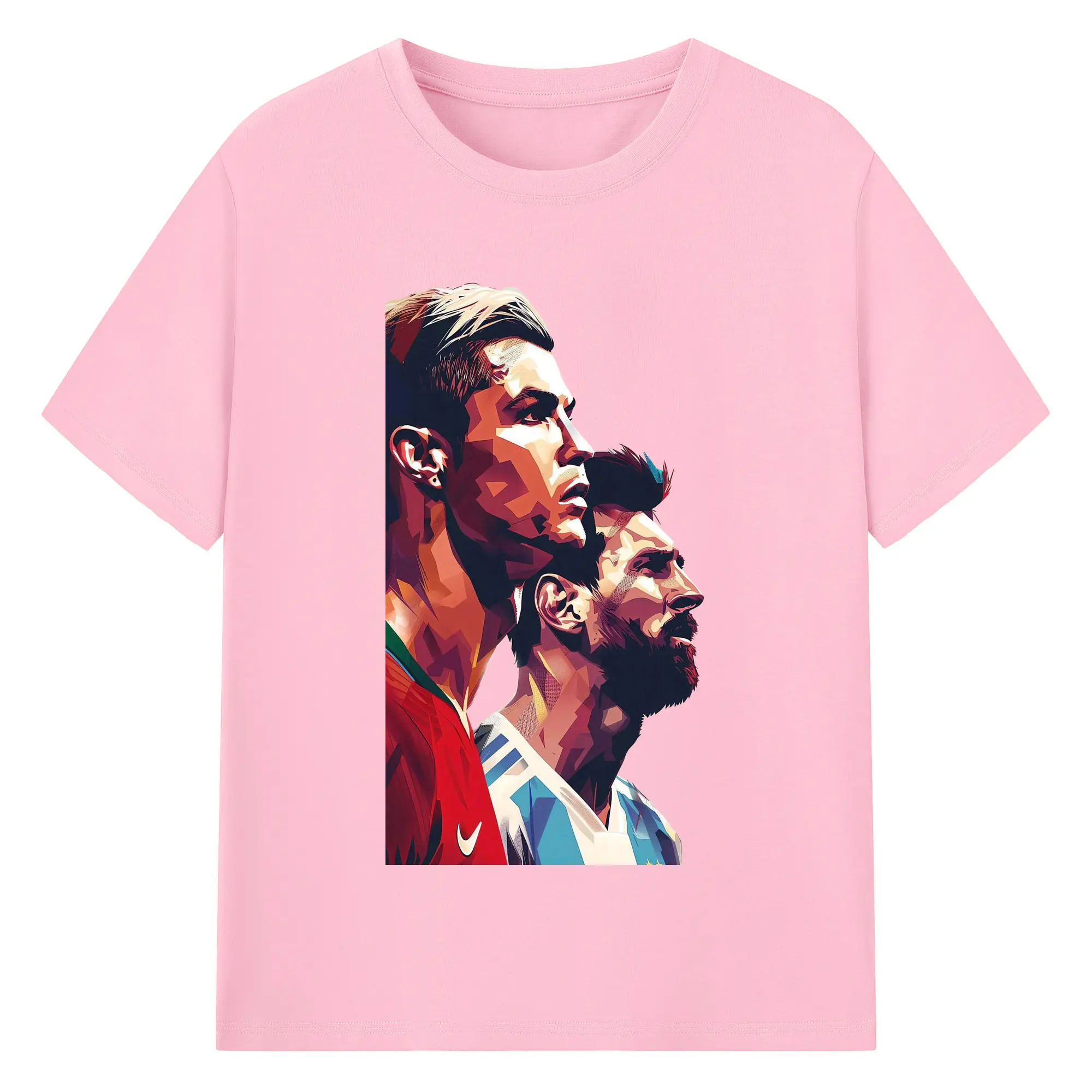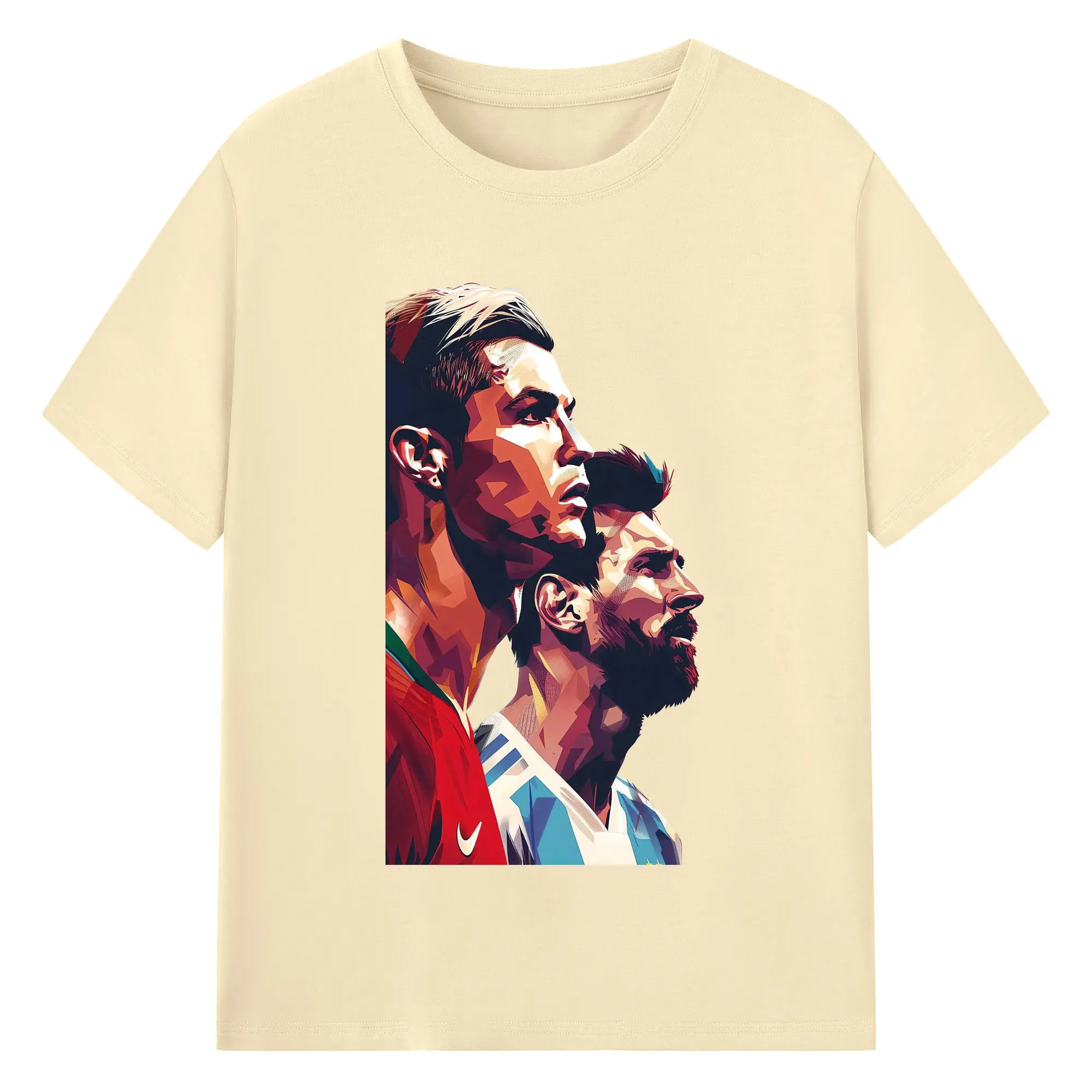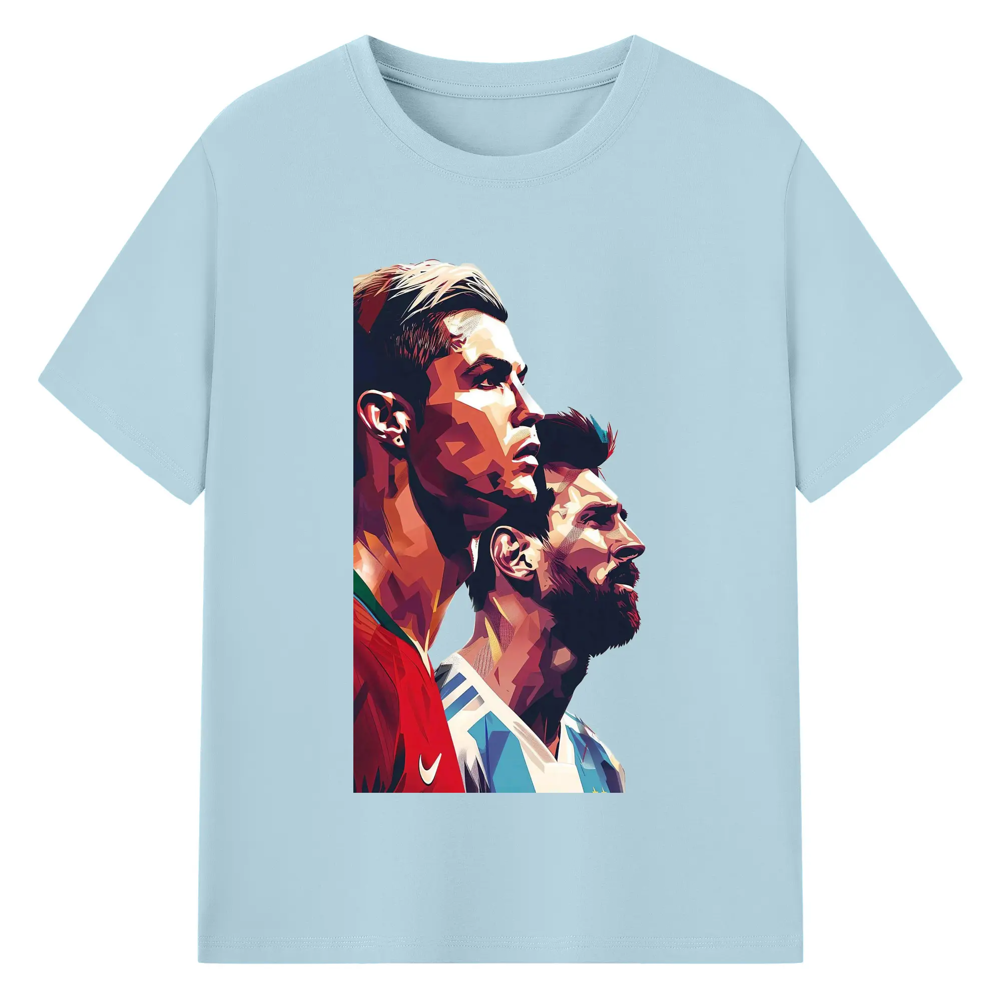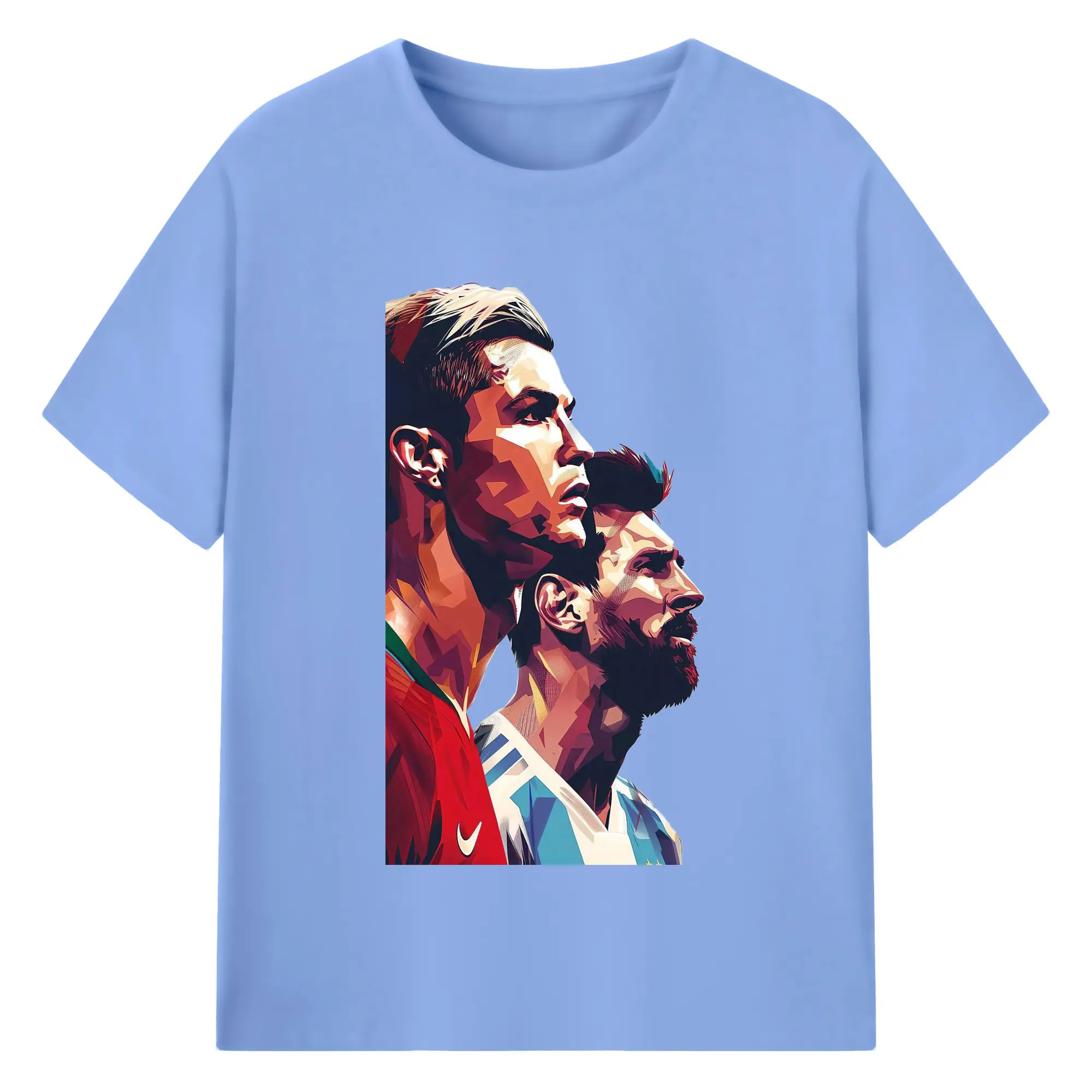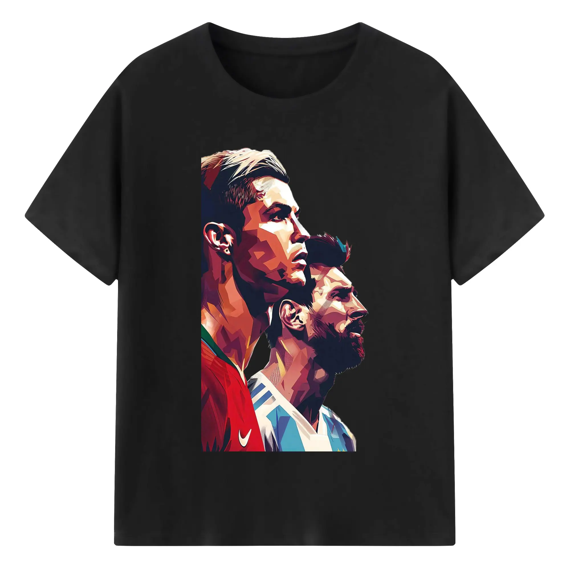 Lionel Messi & Cristiano Ronaldo Soccer Legends Art DIY Shirt - 180g Cotton T-Shirt With Front Heat Transfer Print – Soft, Lightweight, Fitted Design – Comfortable Casual Wear For Sports & Everyday Use
