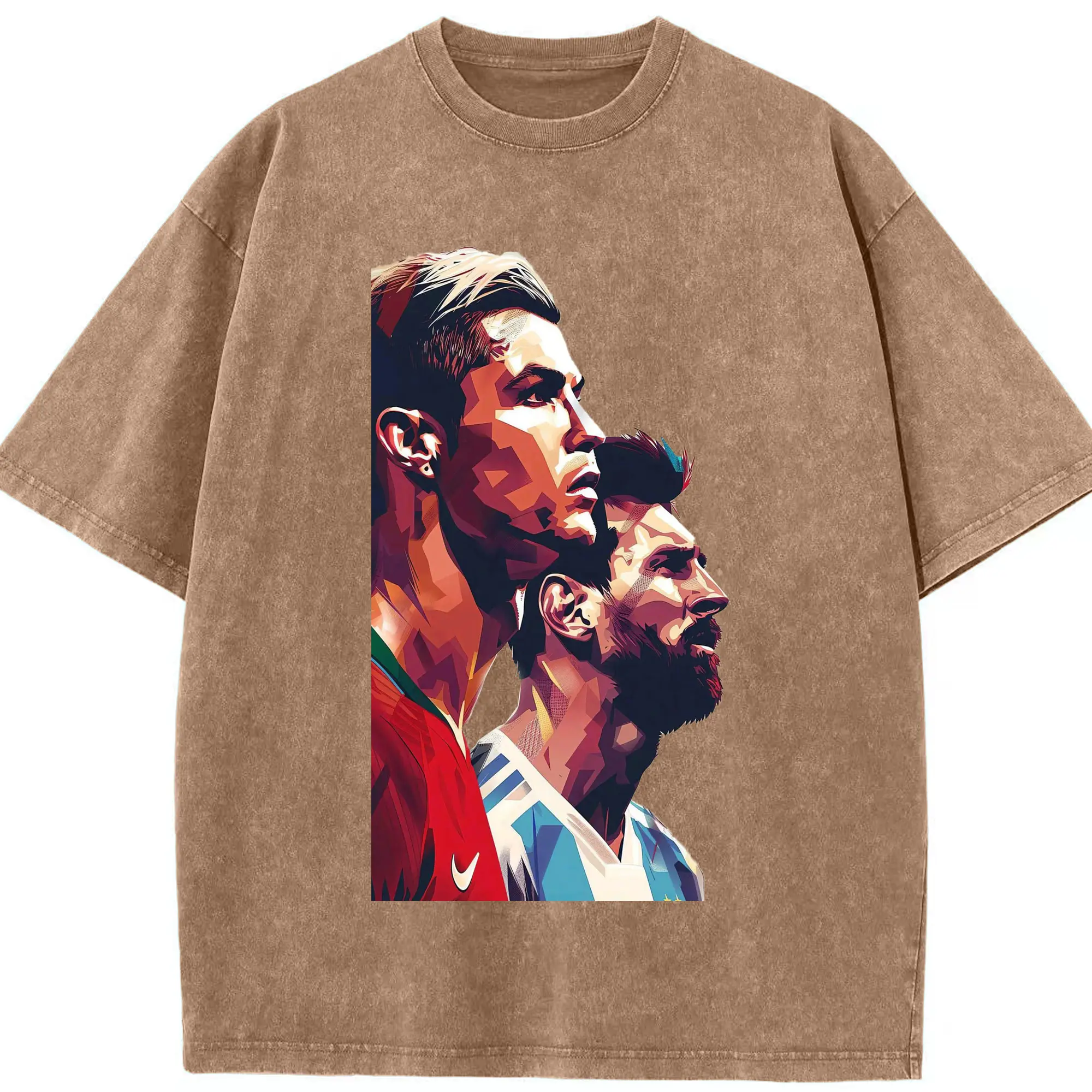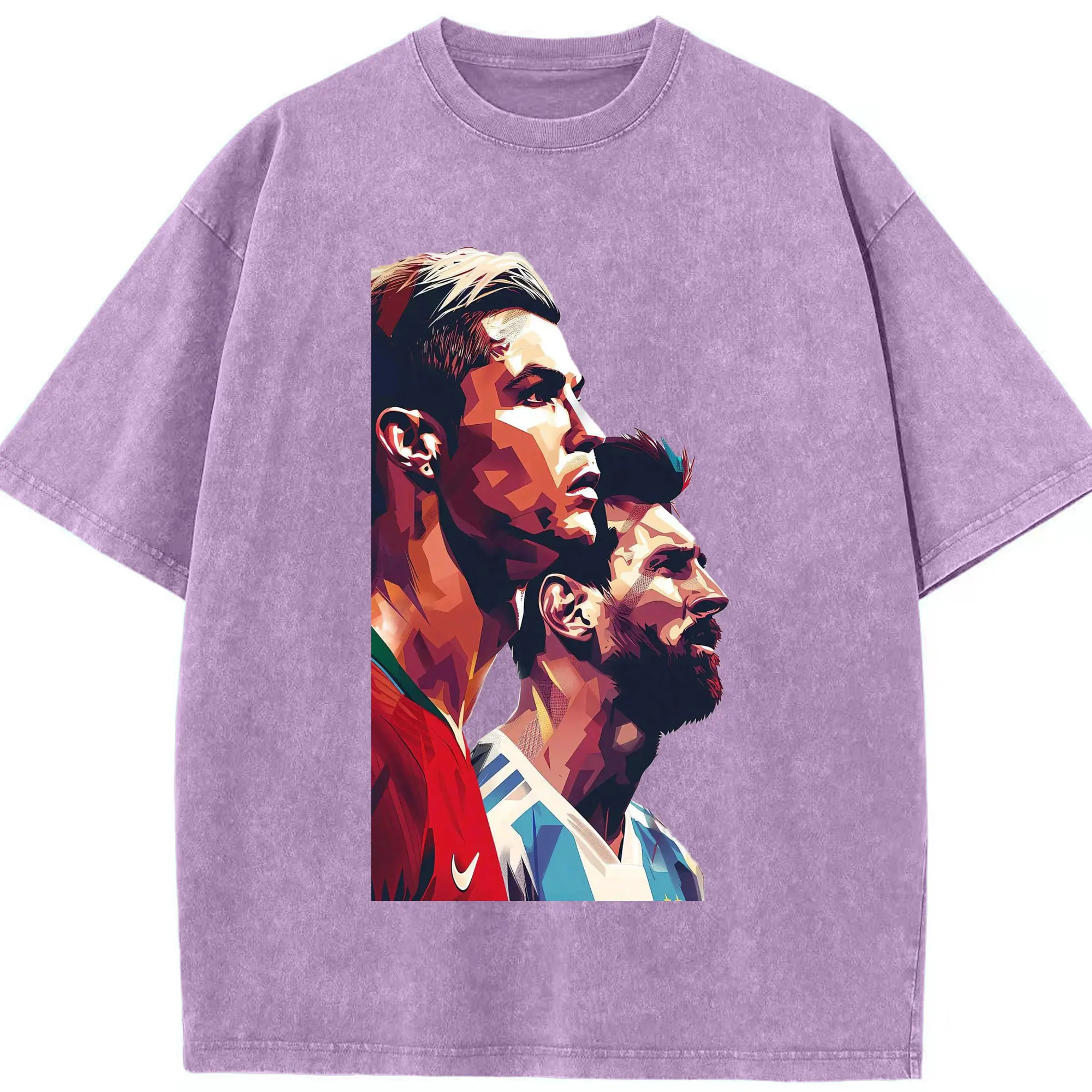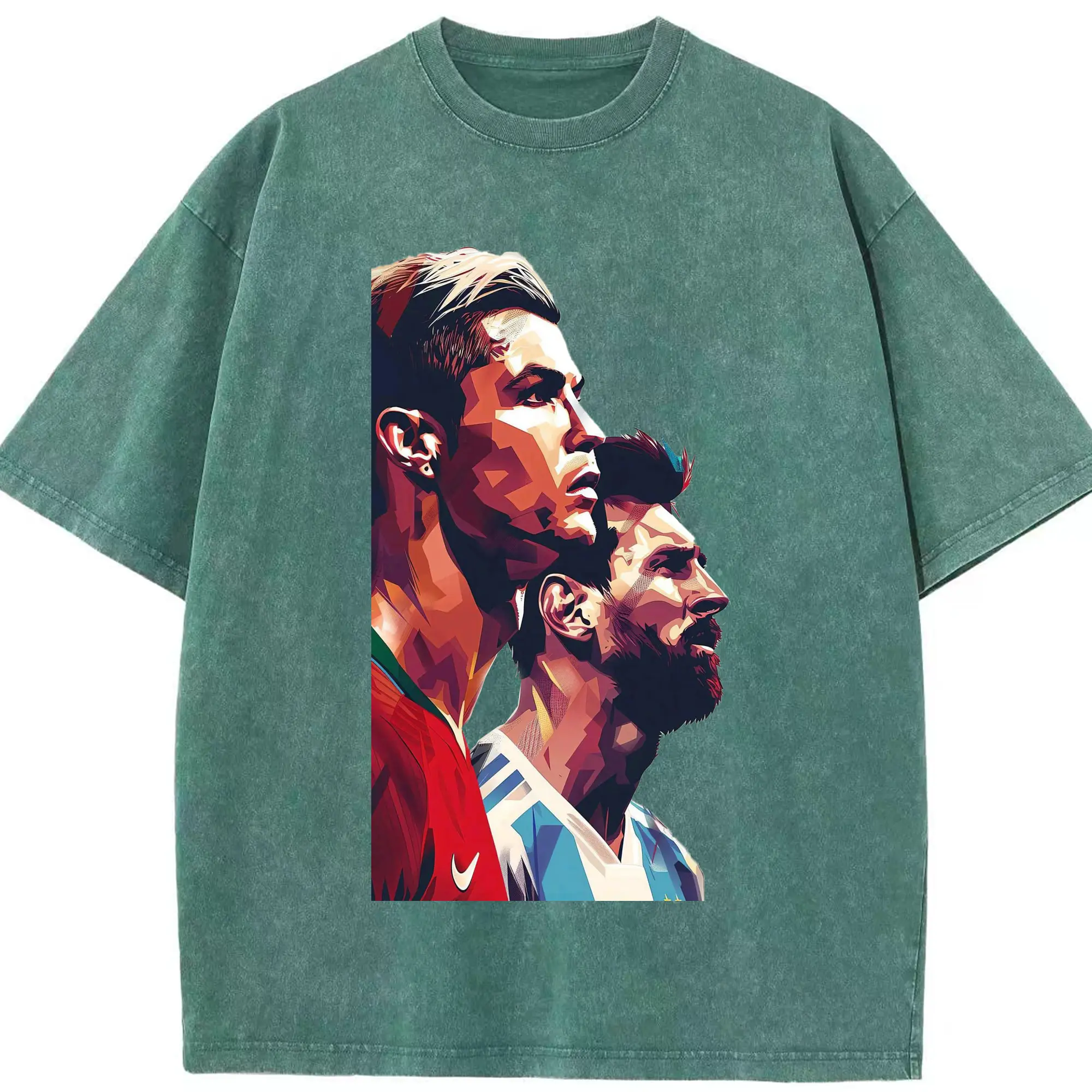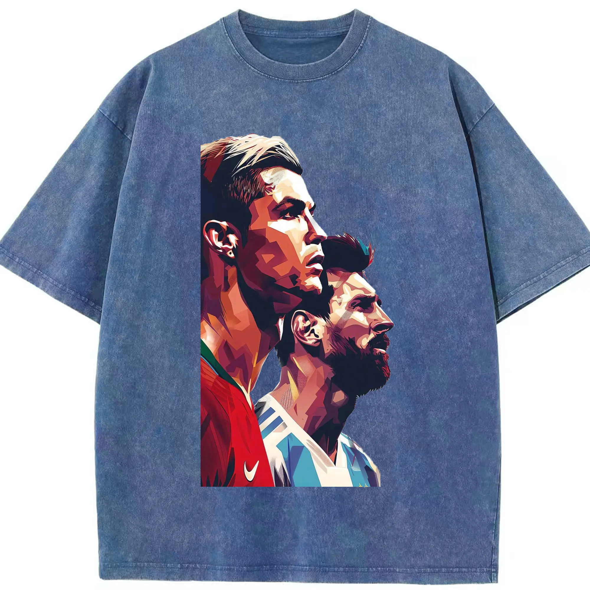 Lionel Messi & Cristiano Ronaldo Soccer Legends Art DIY Shirt - Washed Vintage Look 230g Cotton Oversized T-Shirt With Front Heat Transfer Print – Soft, Lightweight, Stylish Fit – Comfortable Casual Wear For Sports & Everyday Use
