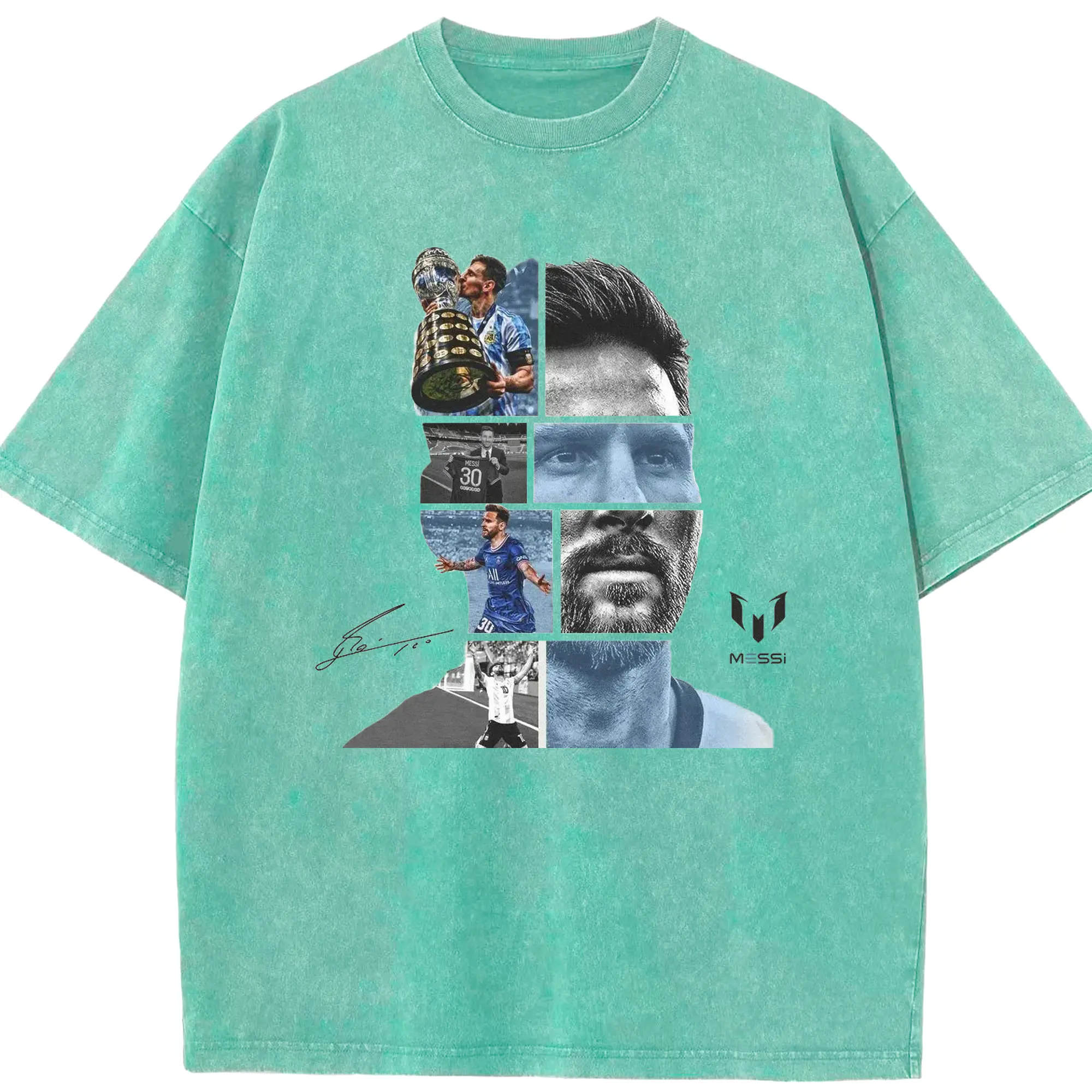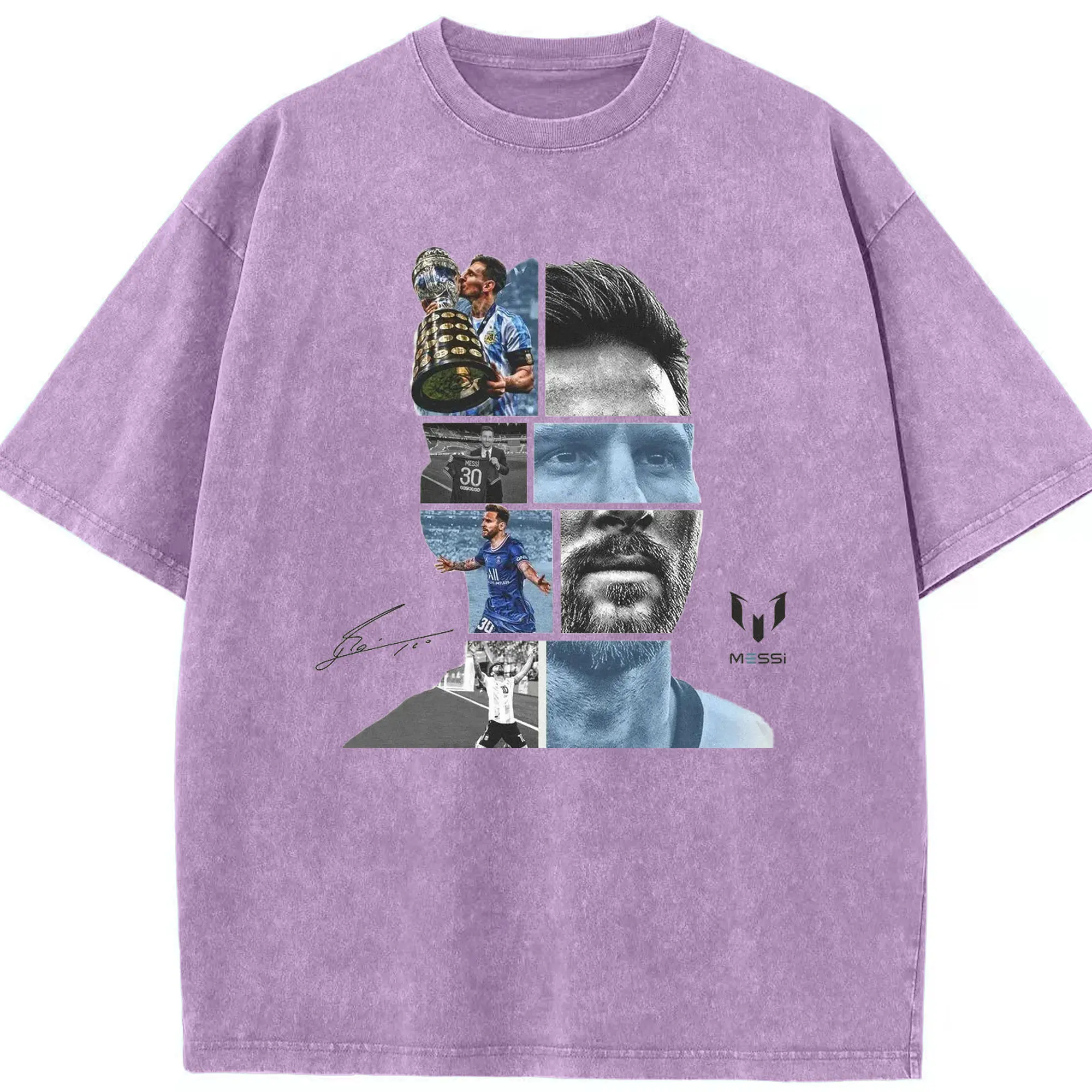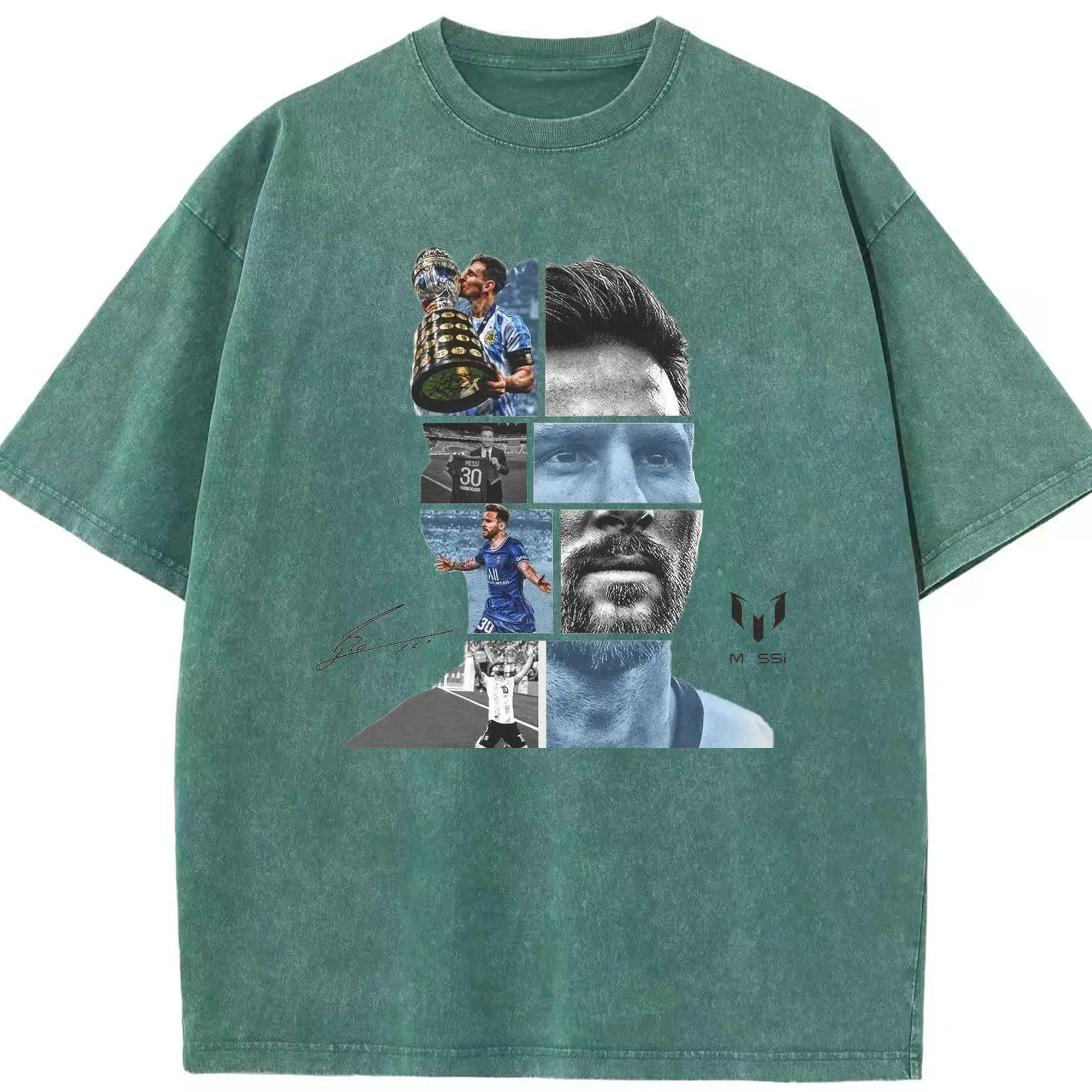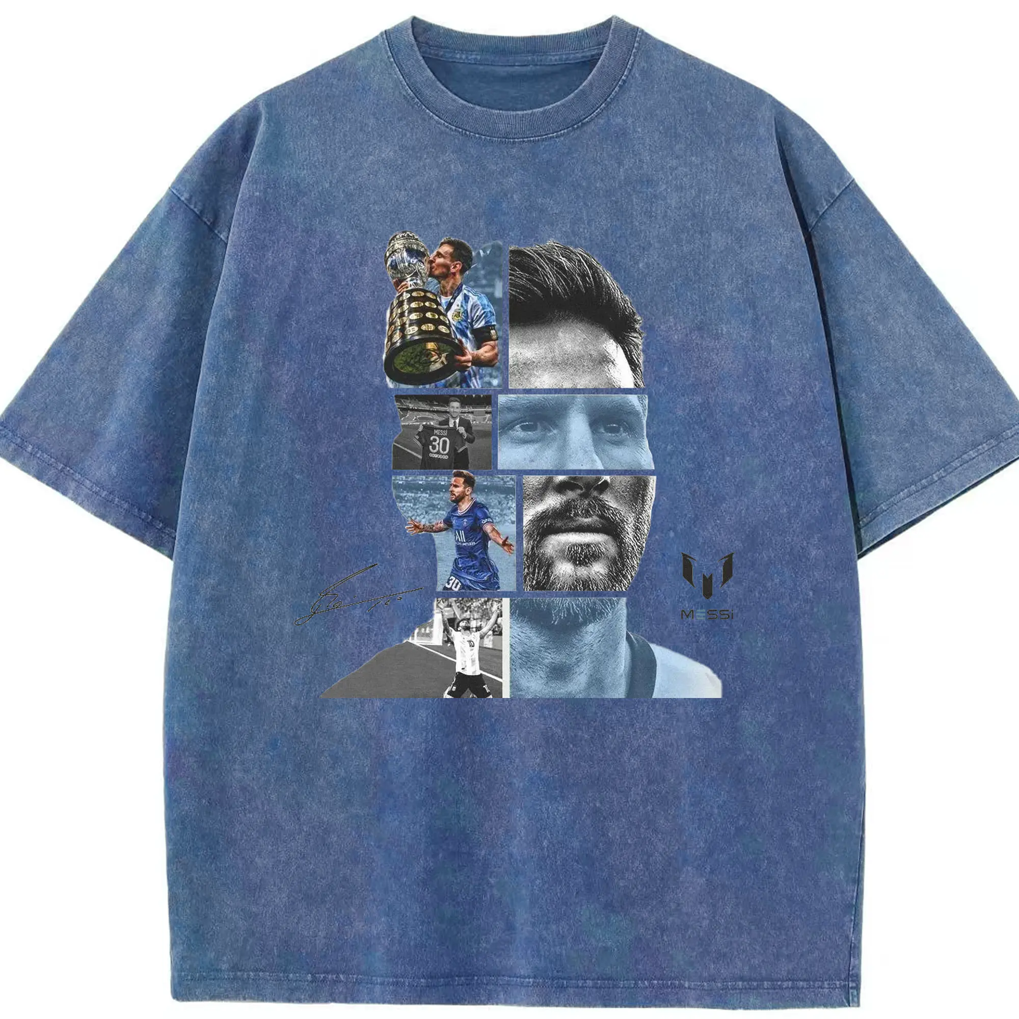 Lionel Messi Soccer Legend Collage DIY Shirt - Washed Vintage Look 230g Cotton Oversized T-Shirt With Front Heat Transfer Print – Soft, Lightweight, Stylish Fit – Comfortable Casual Wear For Sports & Everyday Use