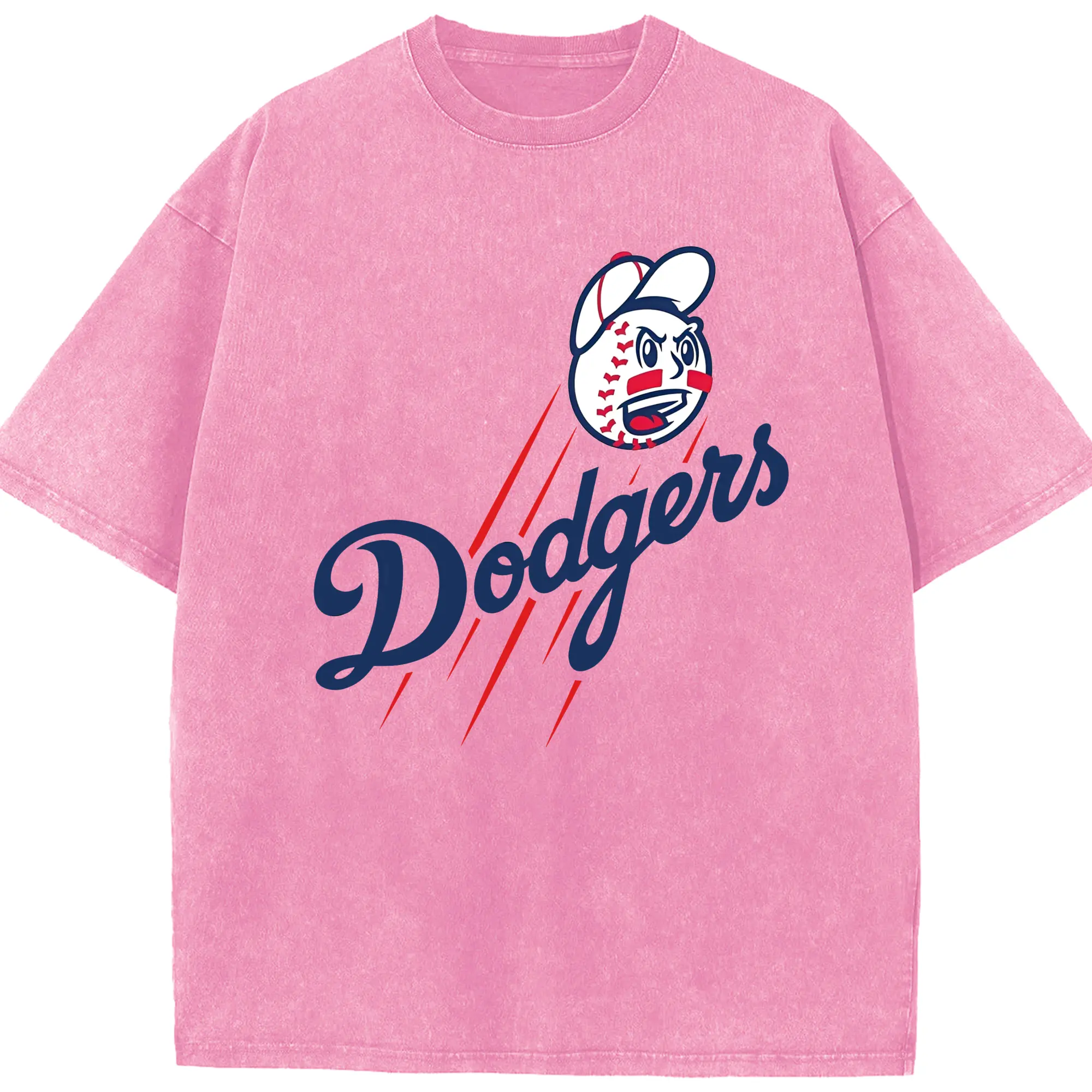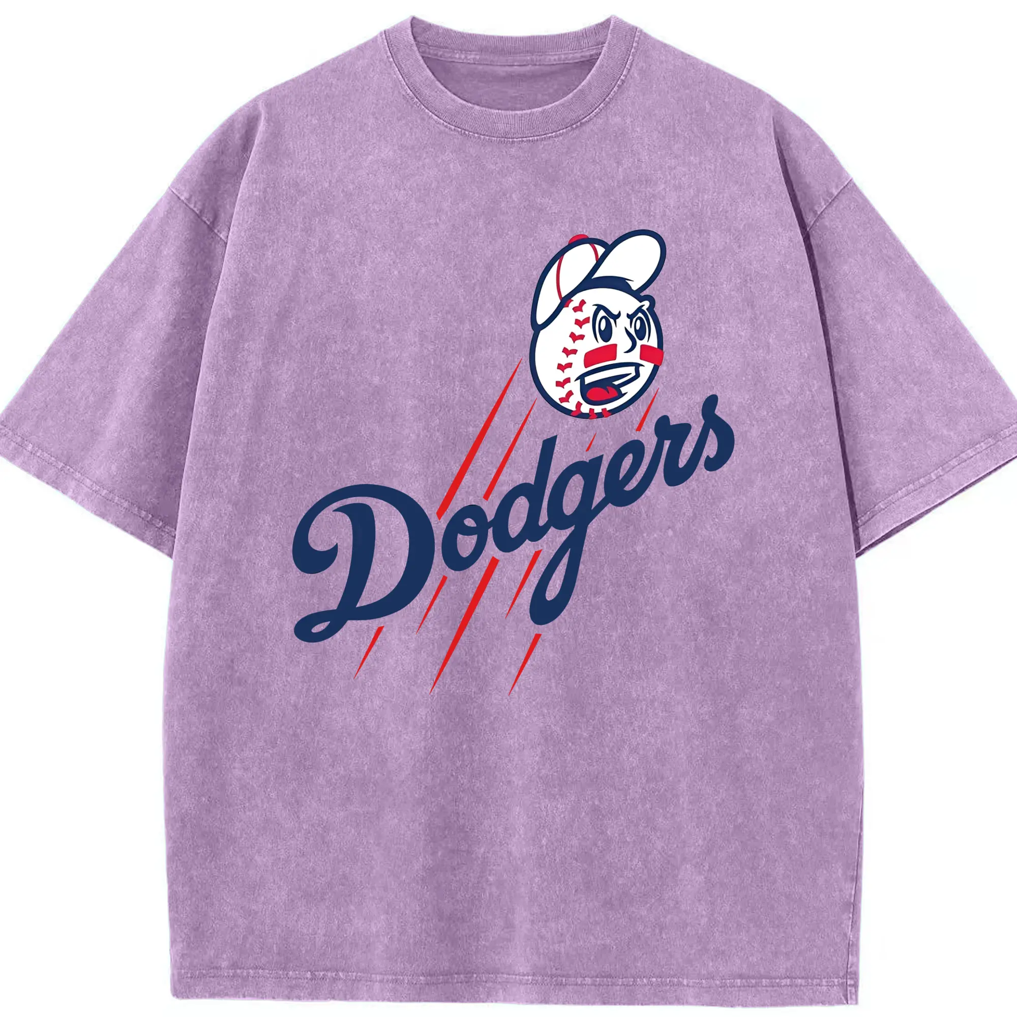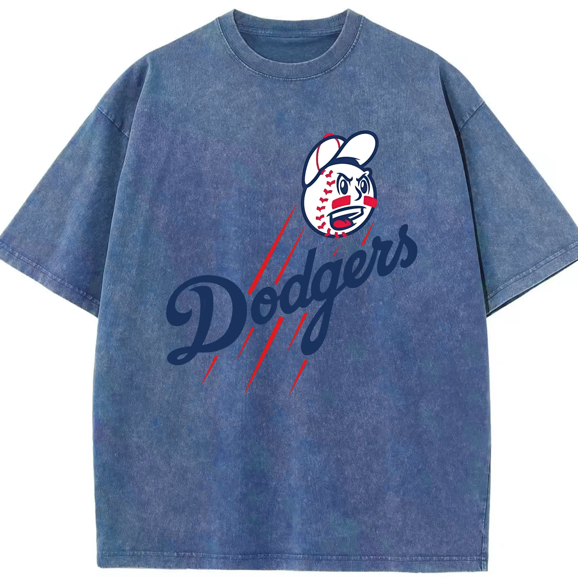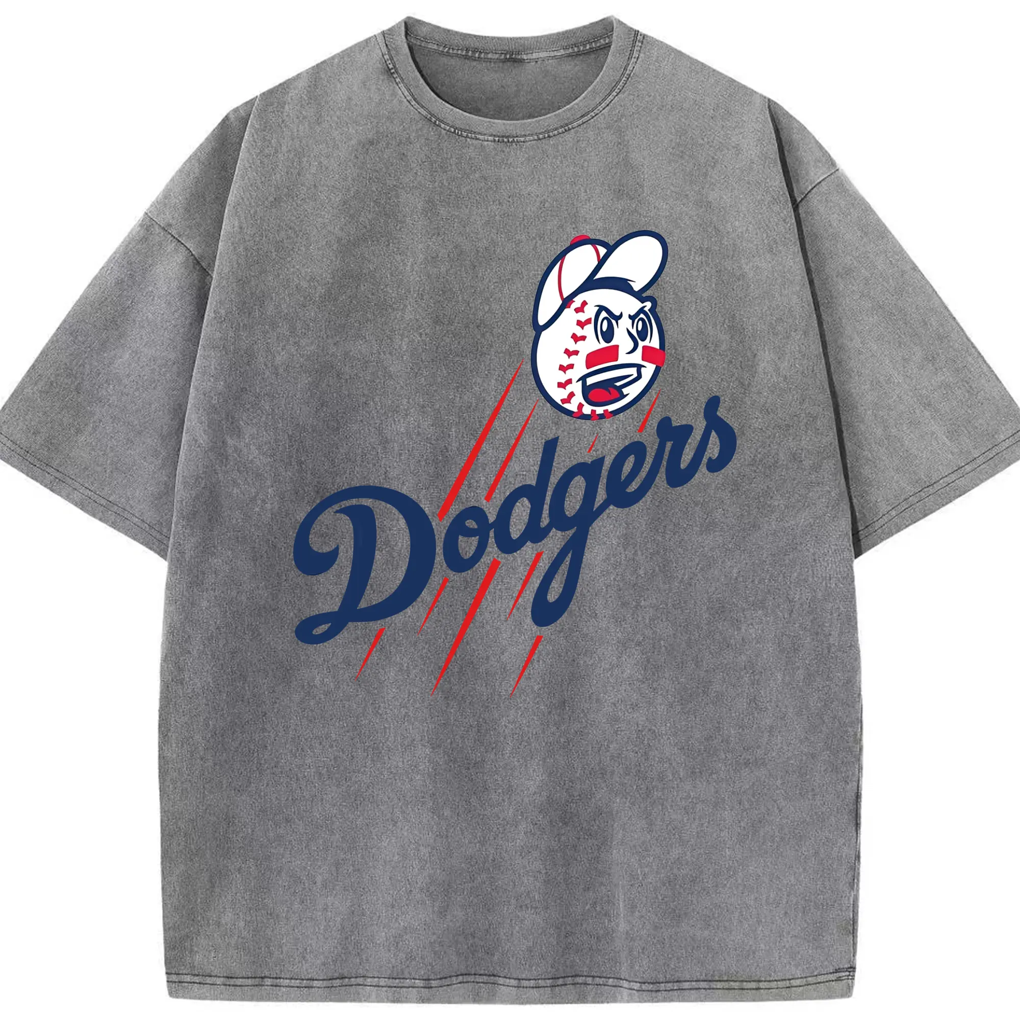 Los Angeles Dodgers Cartoon Baseball DIY Shirt - Washed Vintage Look 230g Cotton Oversized T-Shirt With Front Heat Transfer Print – Soft, Lightweight, Stylish Fit – Comfortable Casual Wear For Sports & Everyday Use
