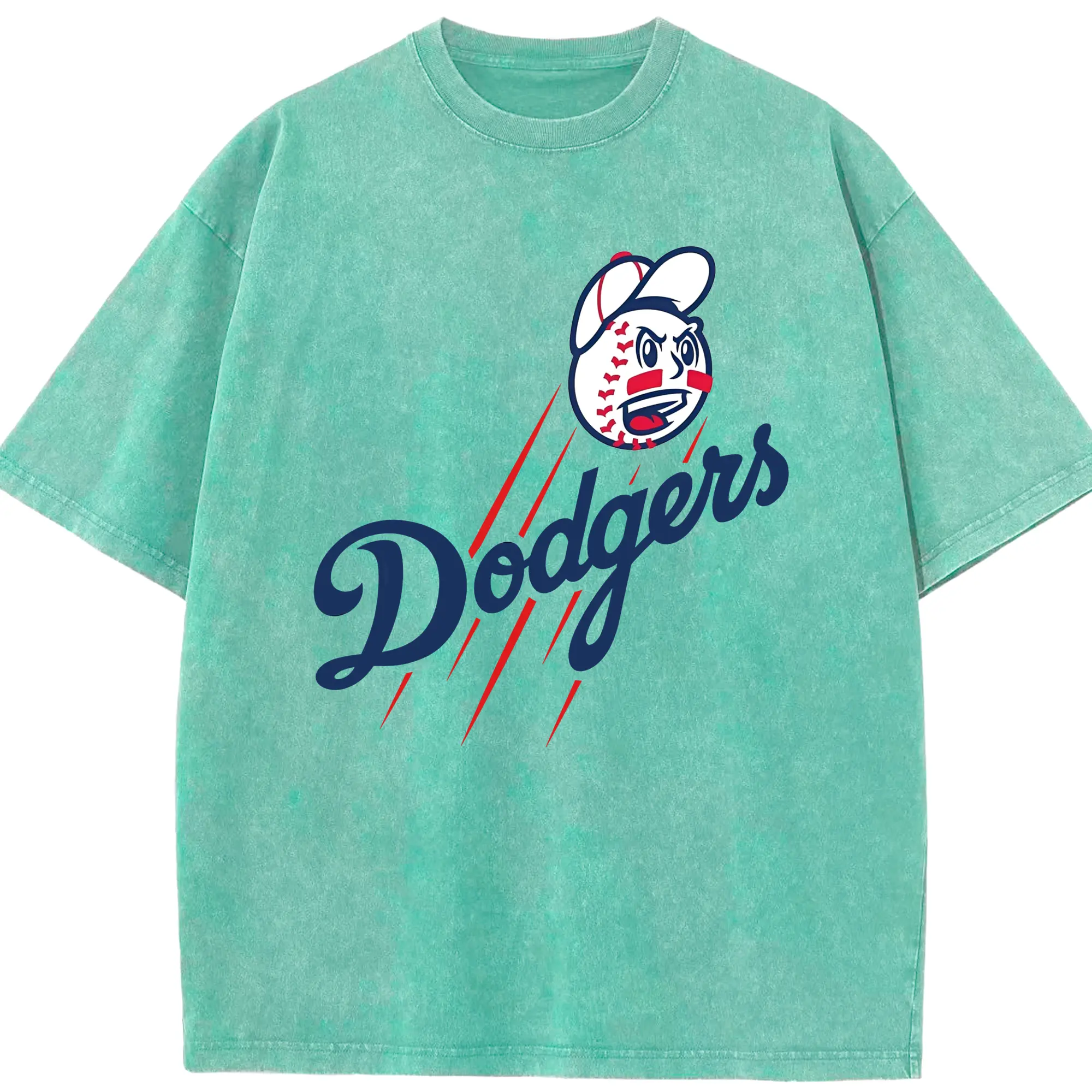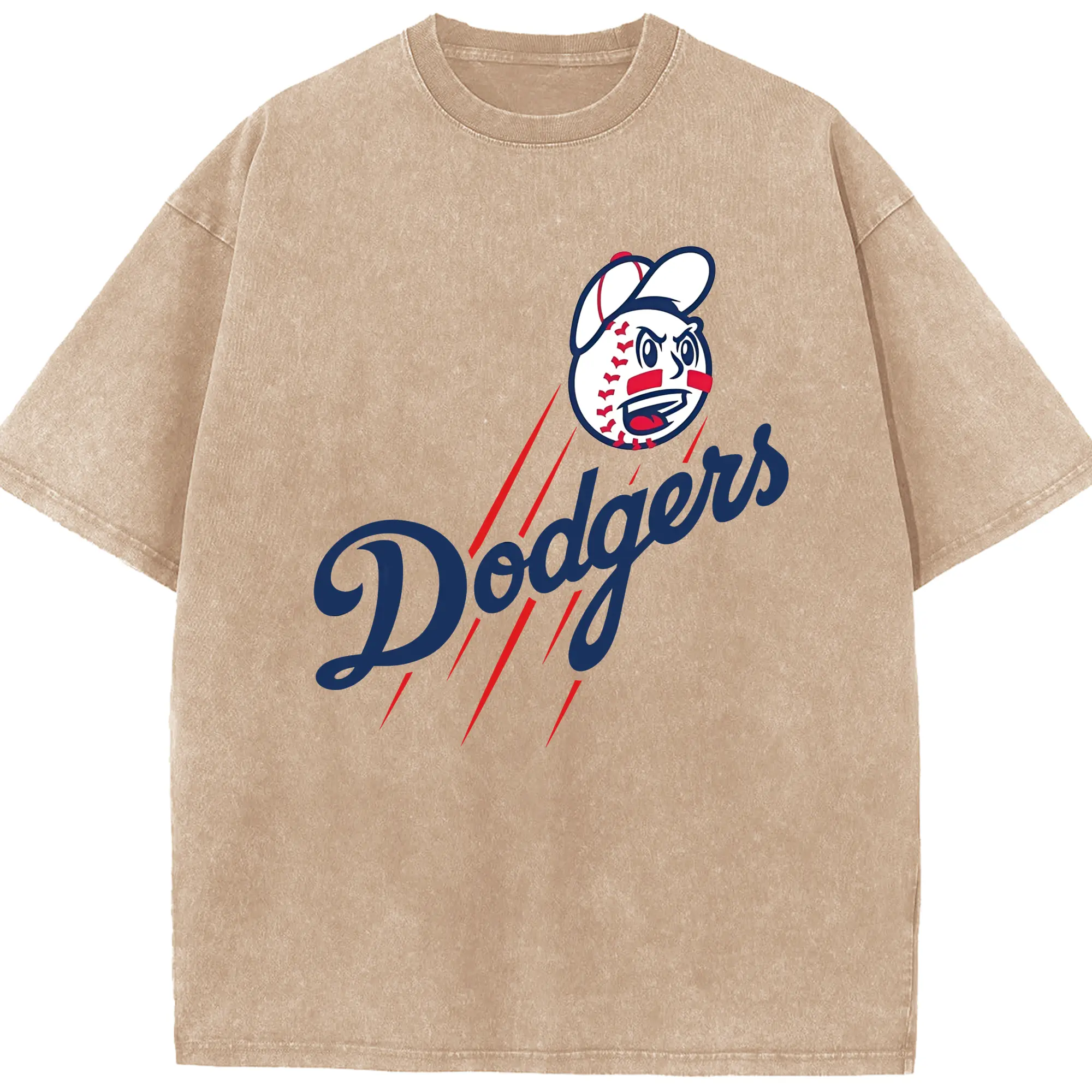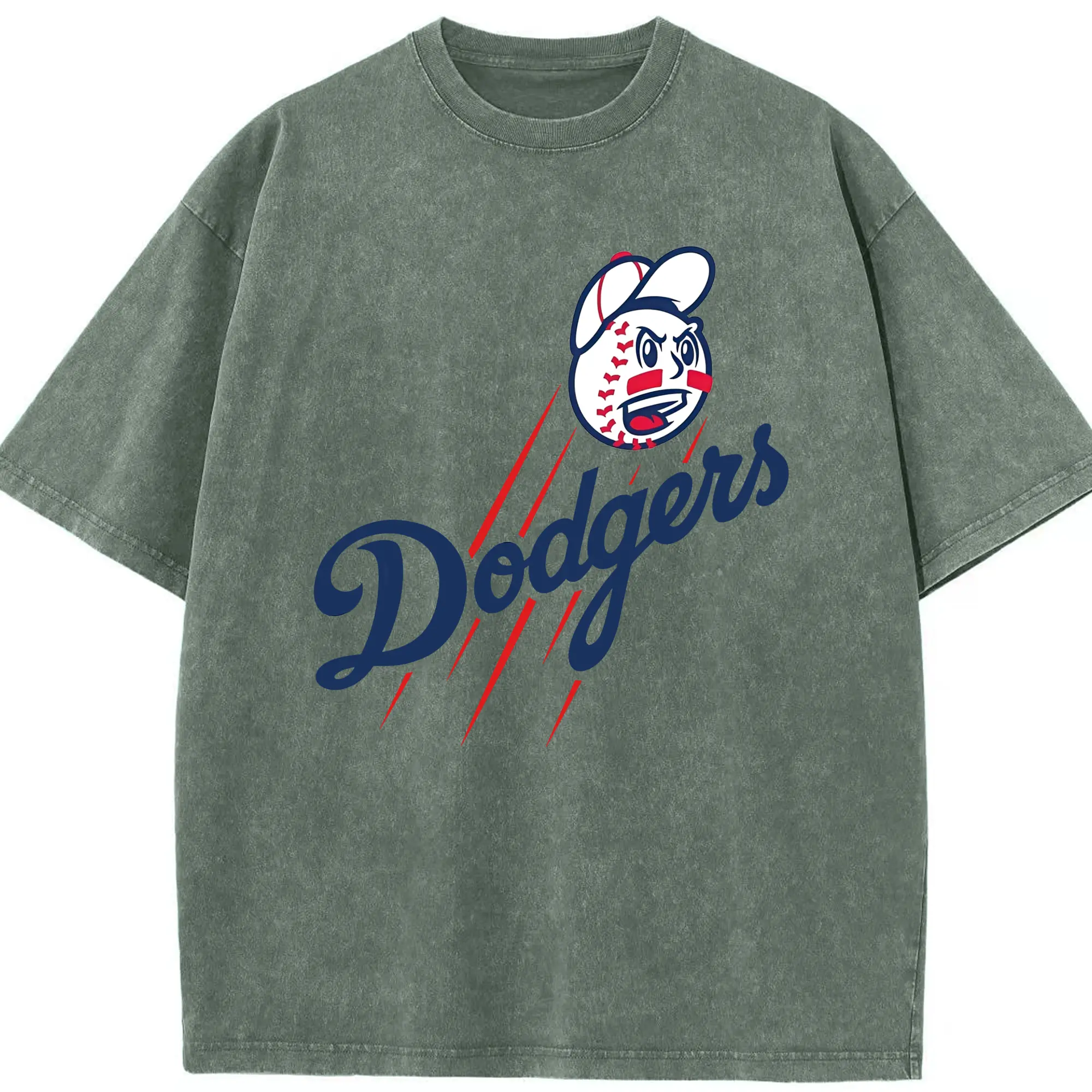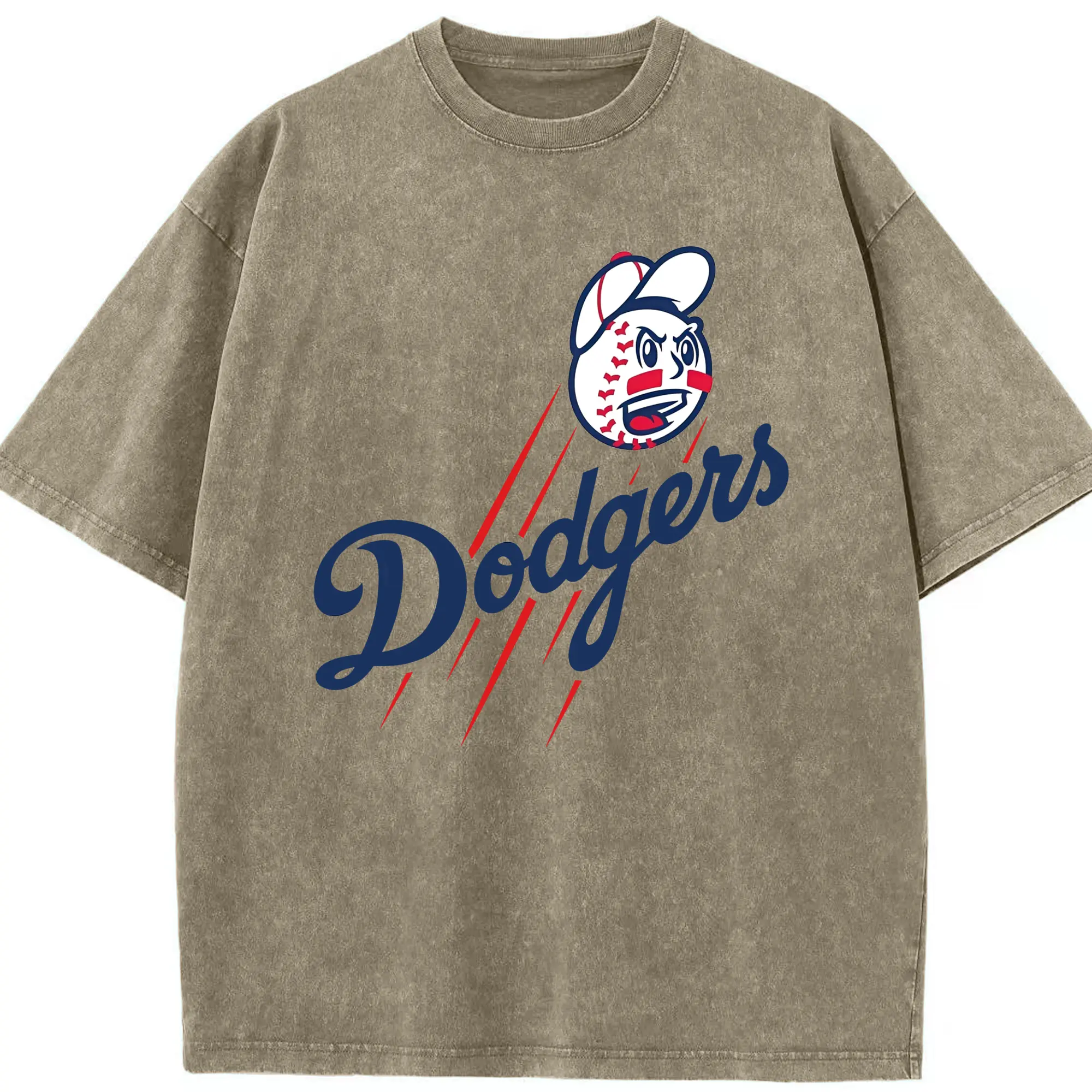 Los Angeles Dodgers Cartoon Baseball DIY Shirt - Washed Vintage Look 230g Cotton Oversized T-Shirt With Front Heat Transfer Print – Soft, Lightweight, Stylish Fit – Comfortable Casual Wear For Sports & Everyday Use