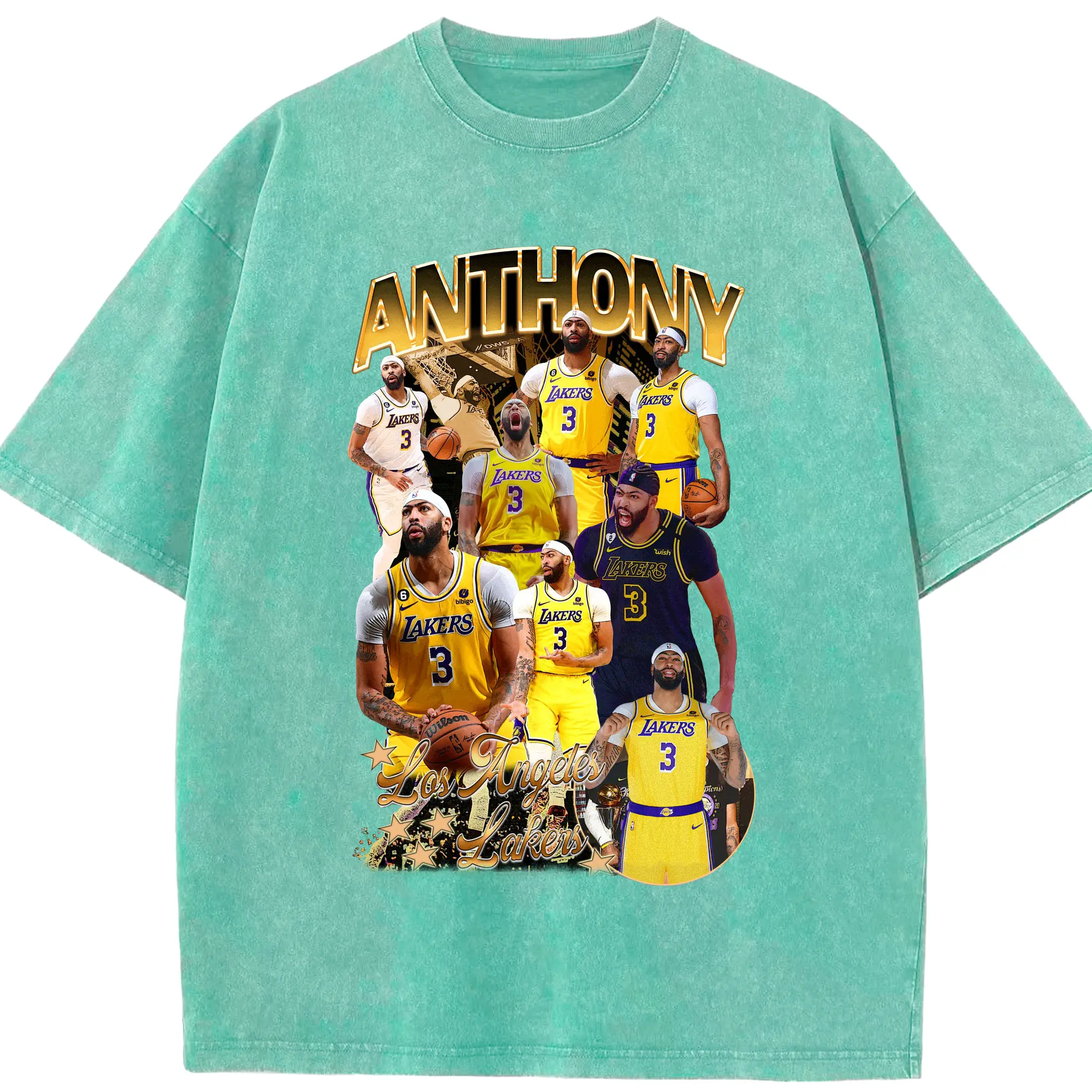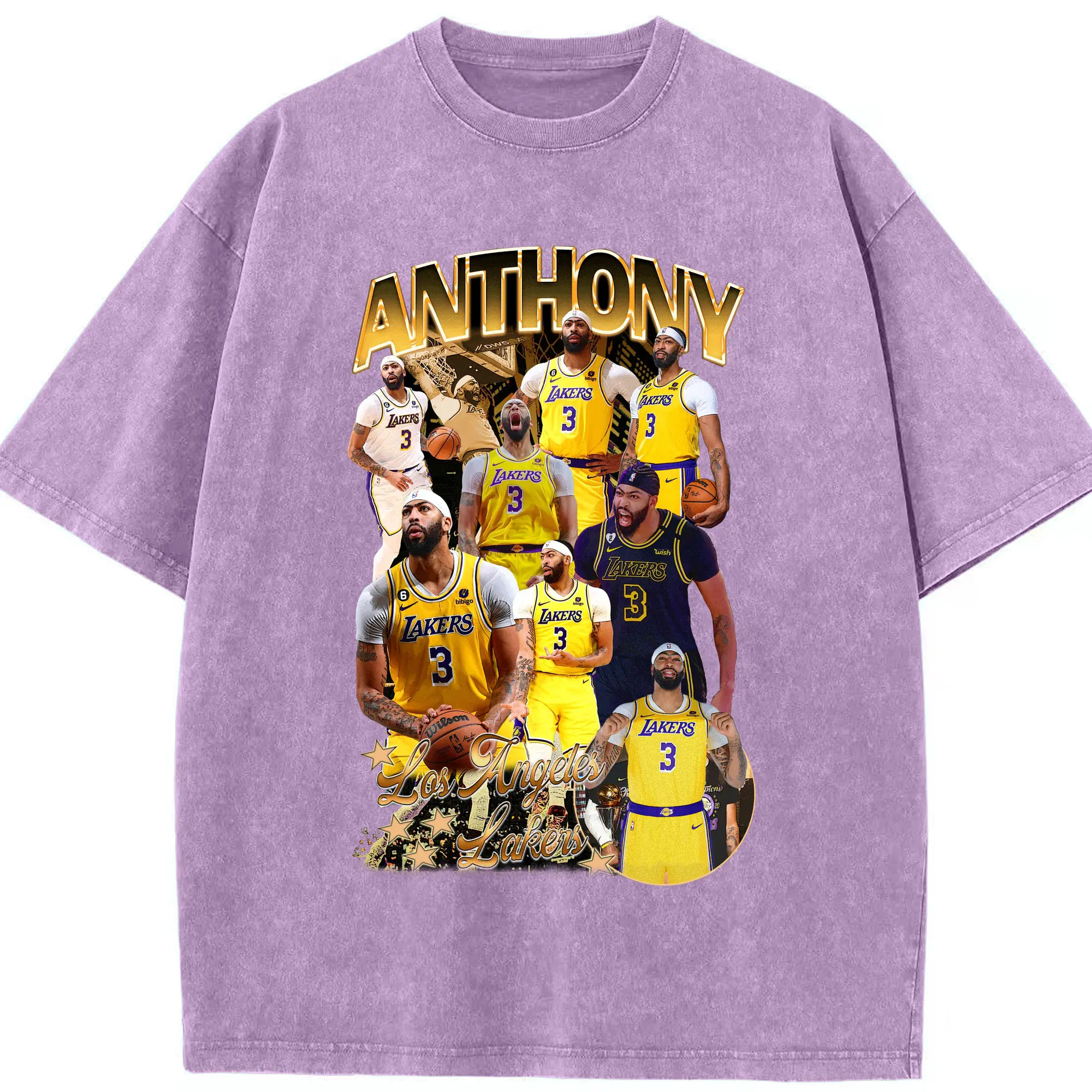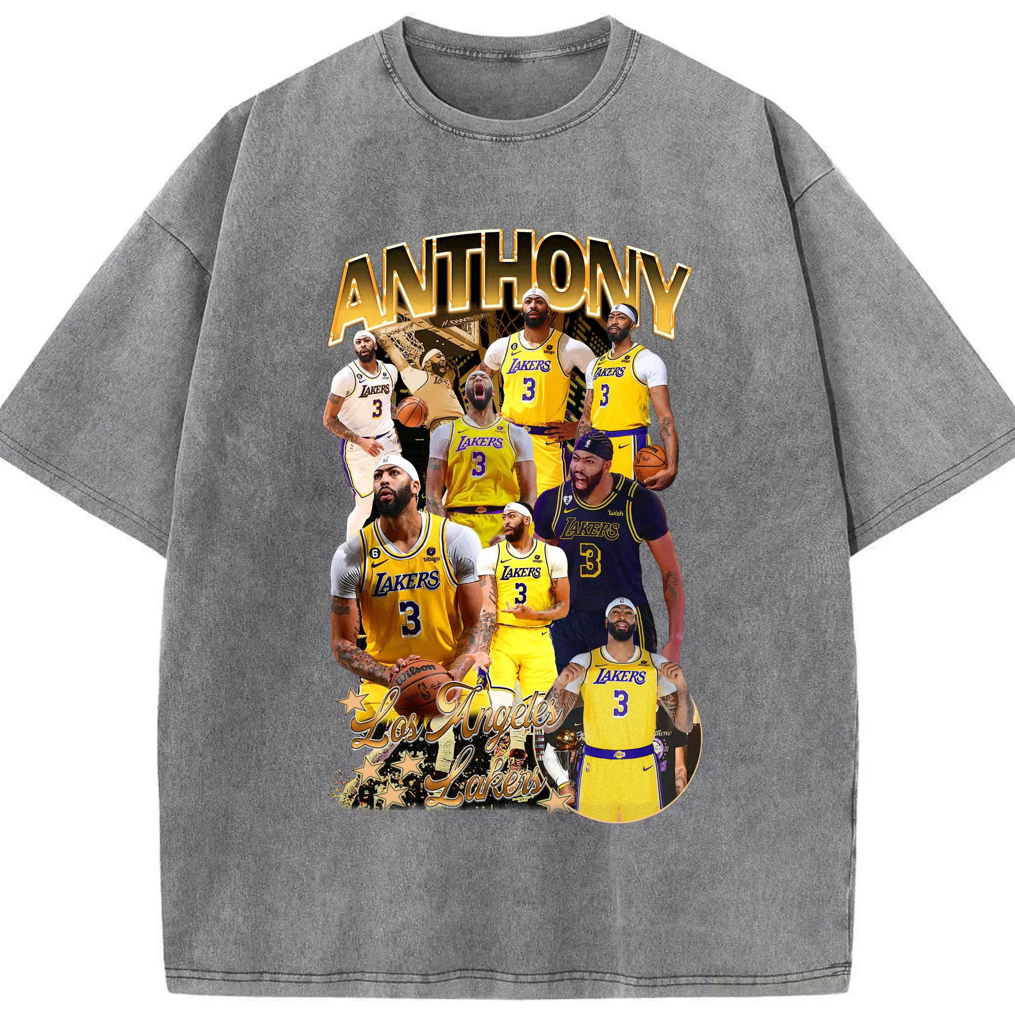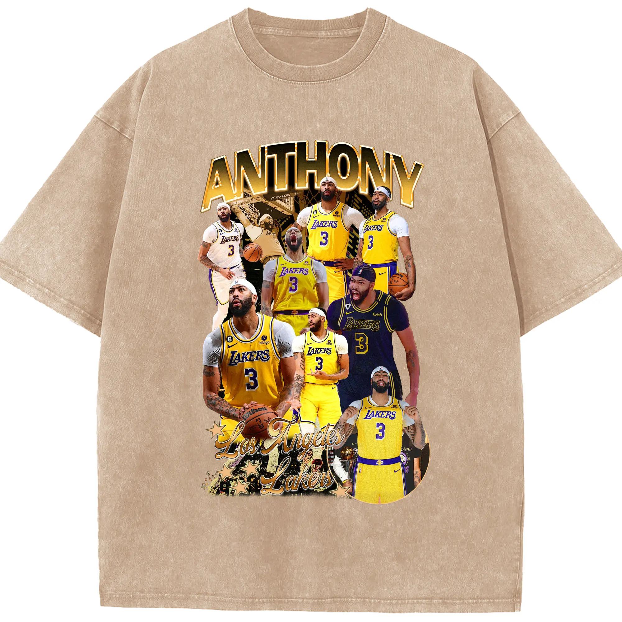 Los Angeles Lakers Anthony Davis Multi-Moment Shirt - Washed Vintage Look 230g Cotton Oversized T-Shirt With Front Heat Transfer Print – Soft, Lightweight, Stylish Fit – Comfortable Casual Wear For Sports & Everyday Use