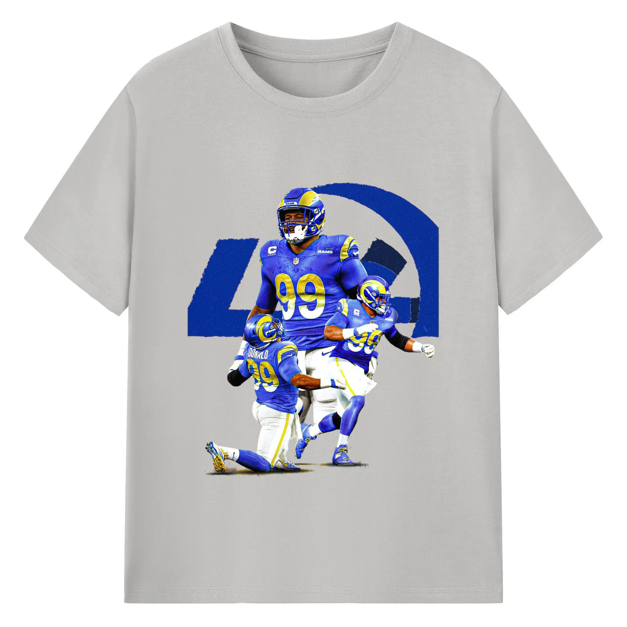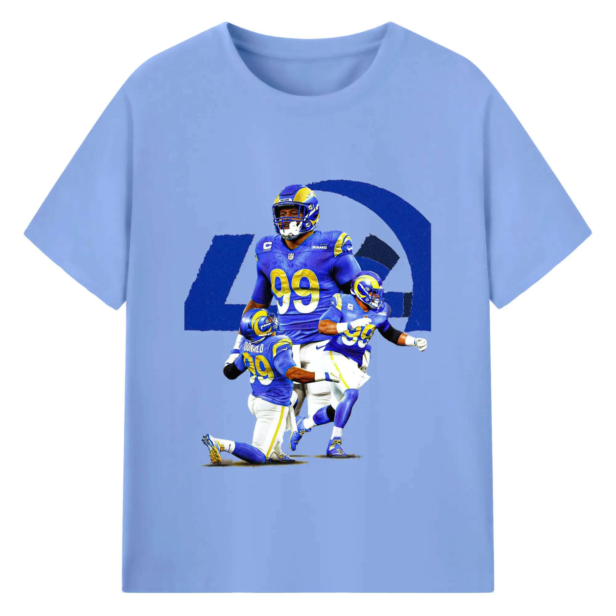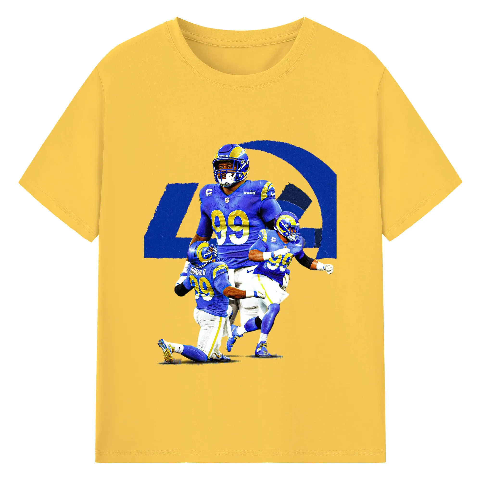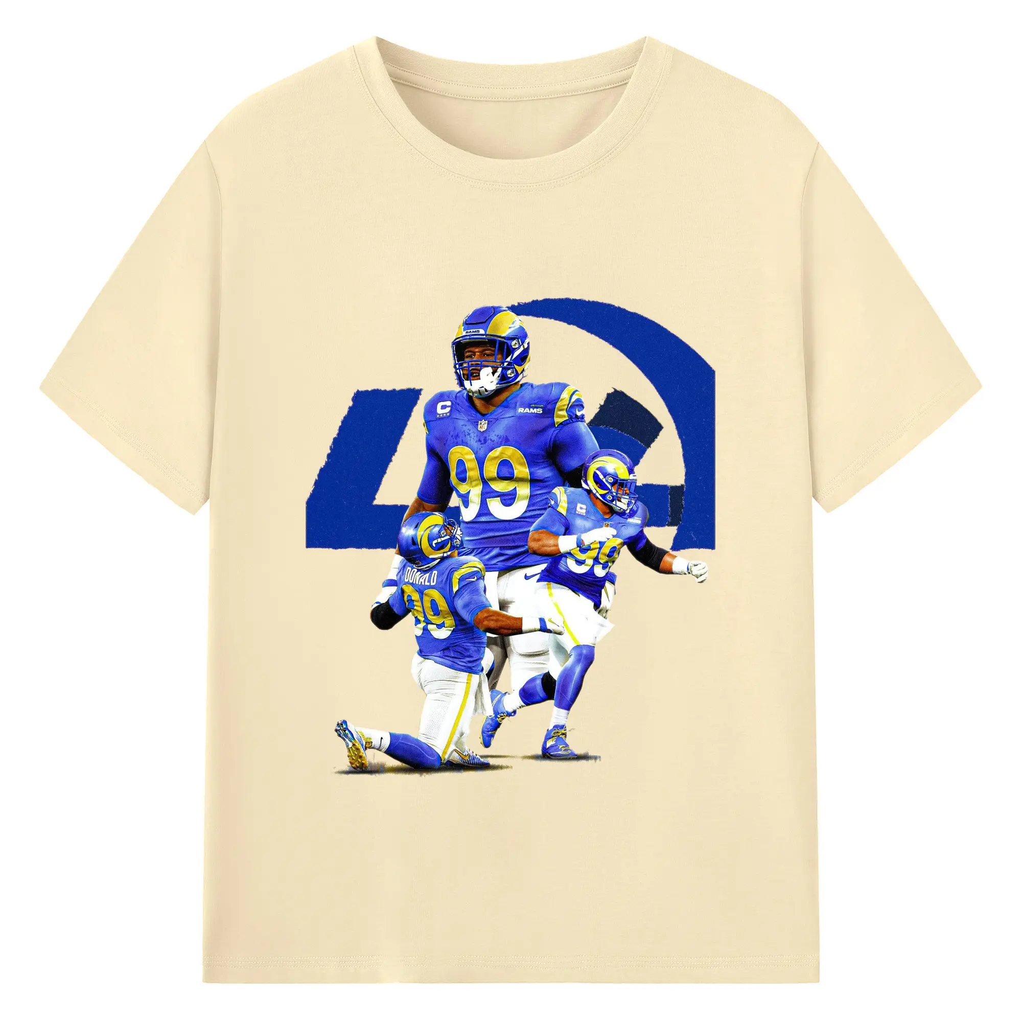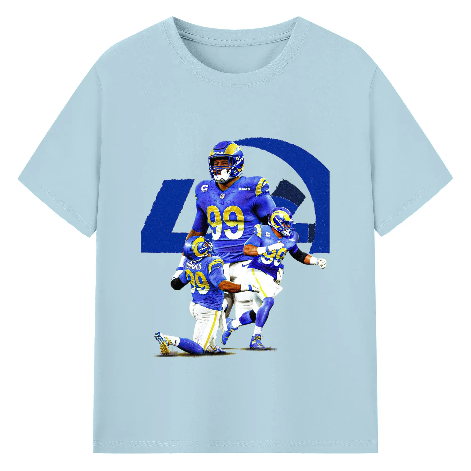 Los Angeles Rams Aaron Donald #99 NFL Star Collage DIY Shirt - 180g Cotton T-Shirt With Front Heat Transfer Print – Soft, Lightweight, Fitted Design – Comfortable Casual Wear For Sports & Everyday Use