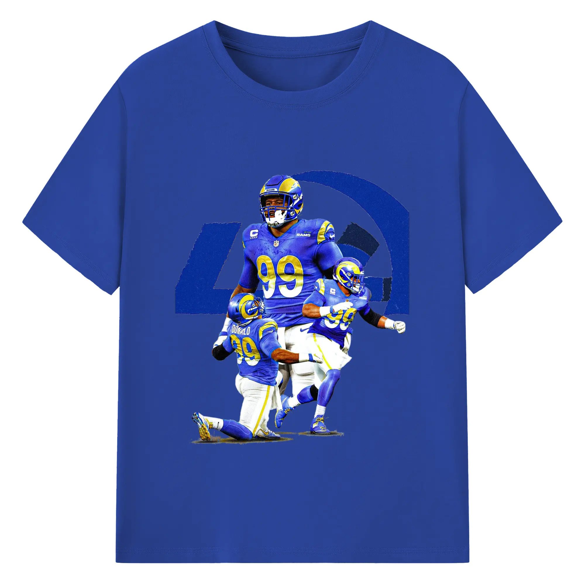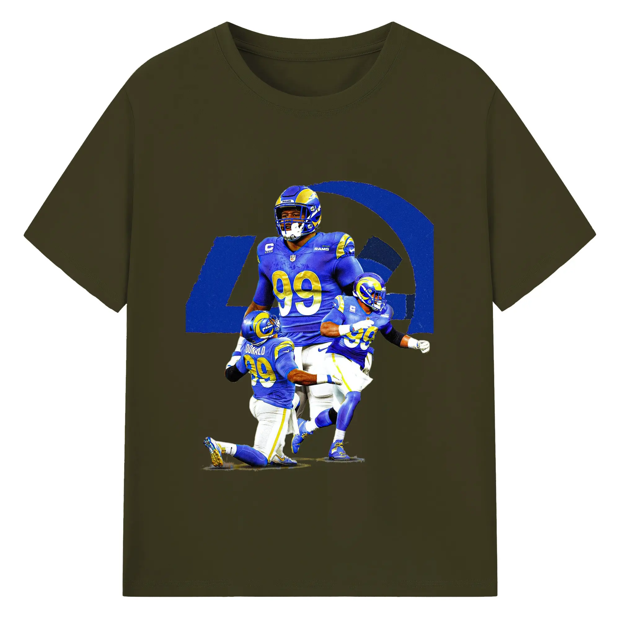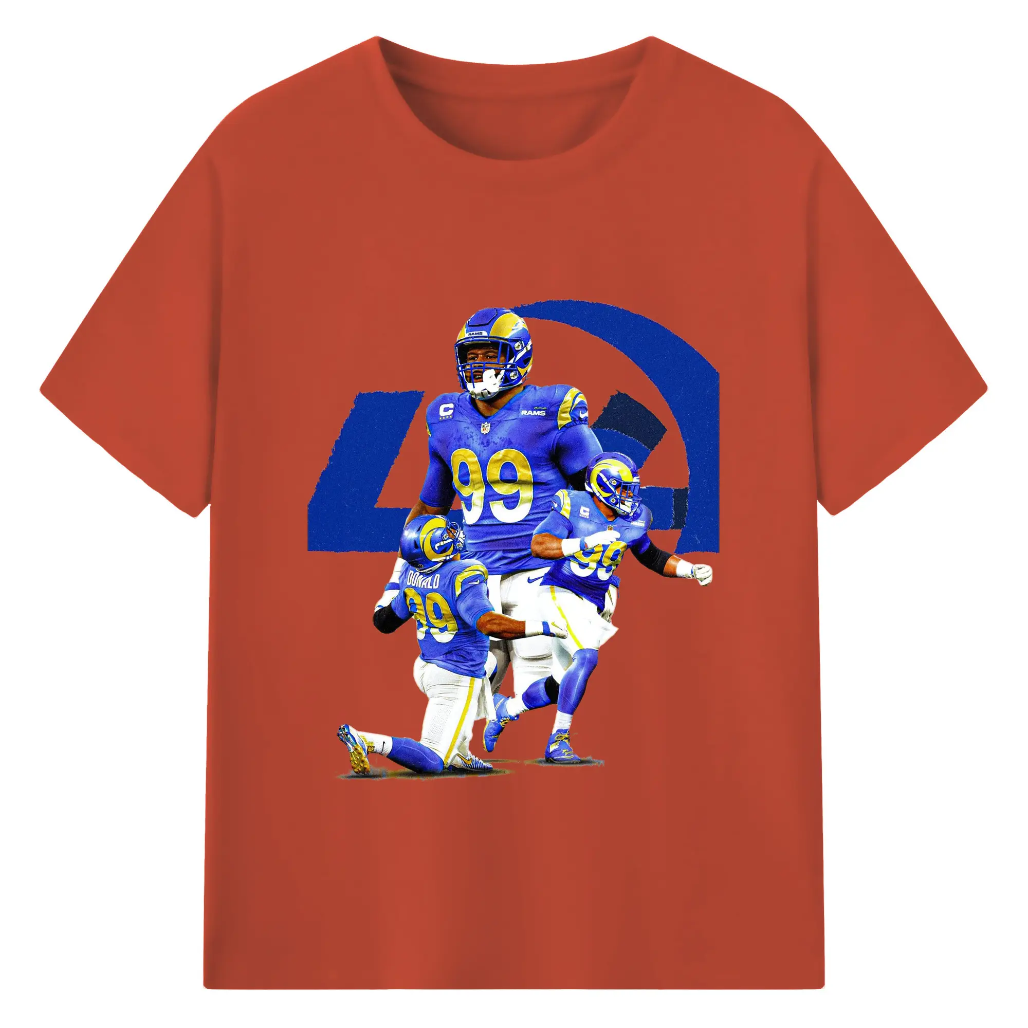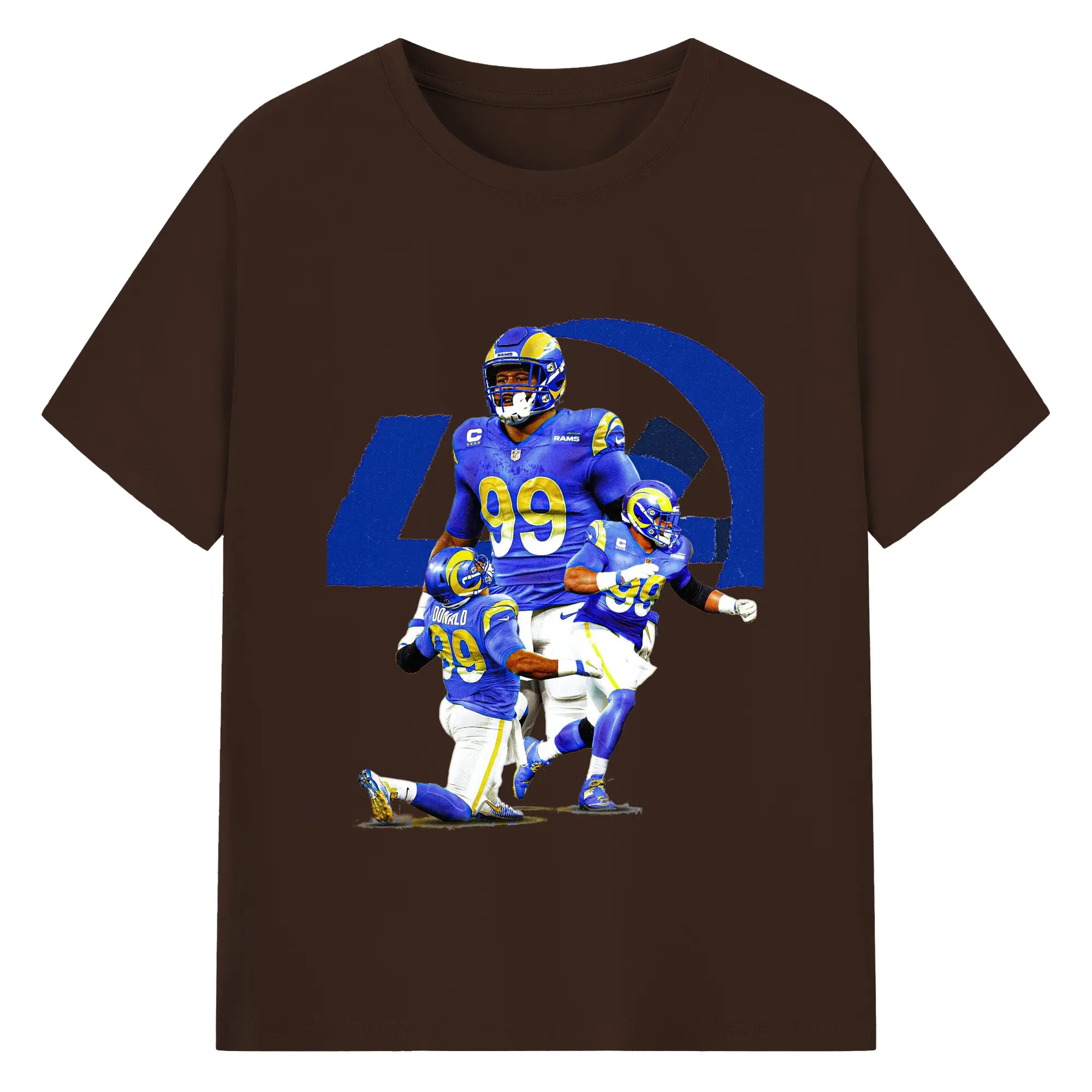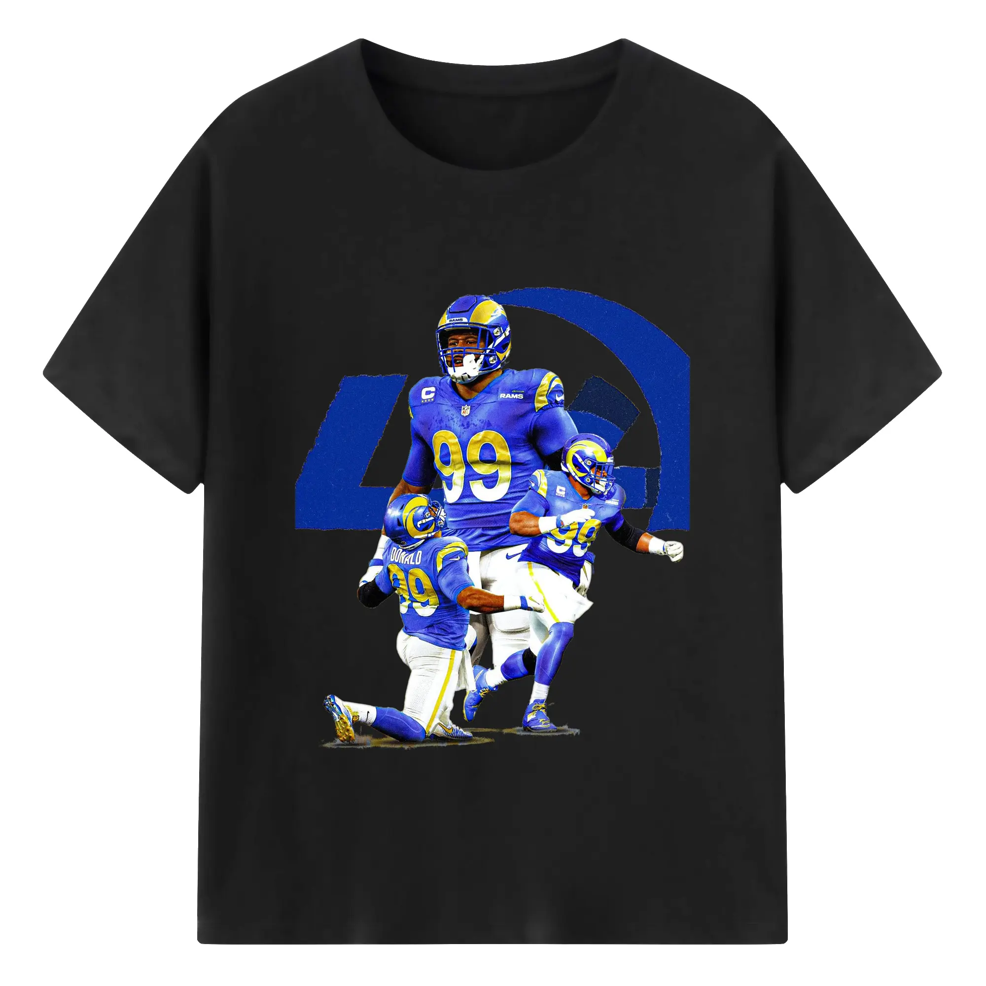 Los Angeles Rams Aaron Donald #99 NFL Star Collage DIY Shirt - 180g Cotton T-Shirt With Front Heat Transfer Print – Soft, Lightweight, Fitted Design – Comfortable Casual Wear For Sports & Everyday Use