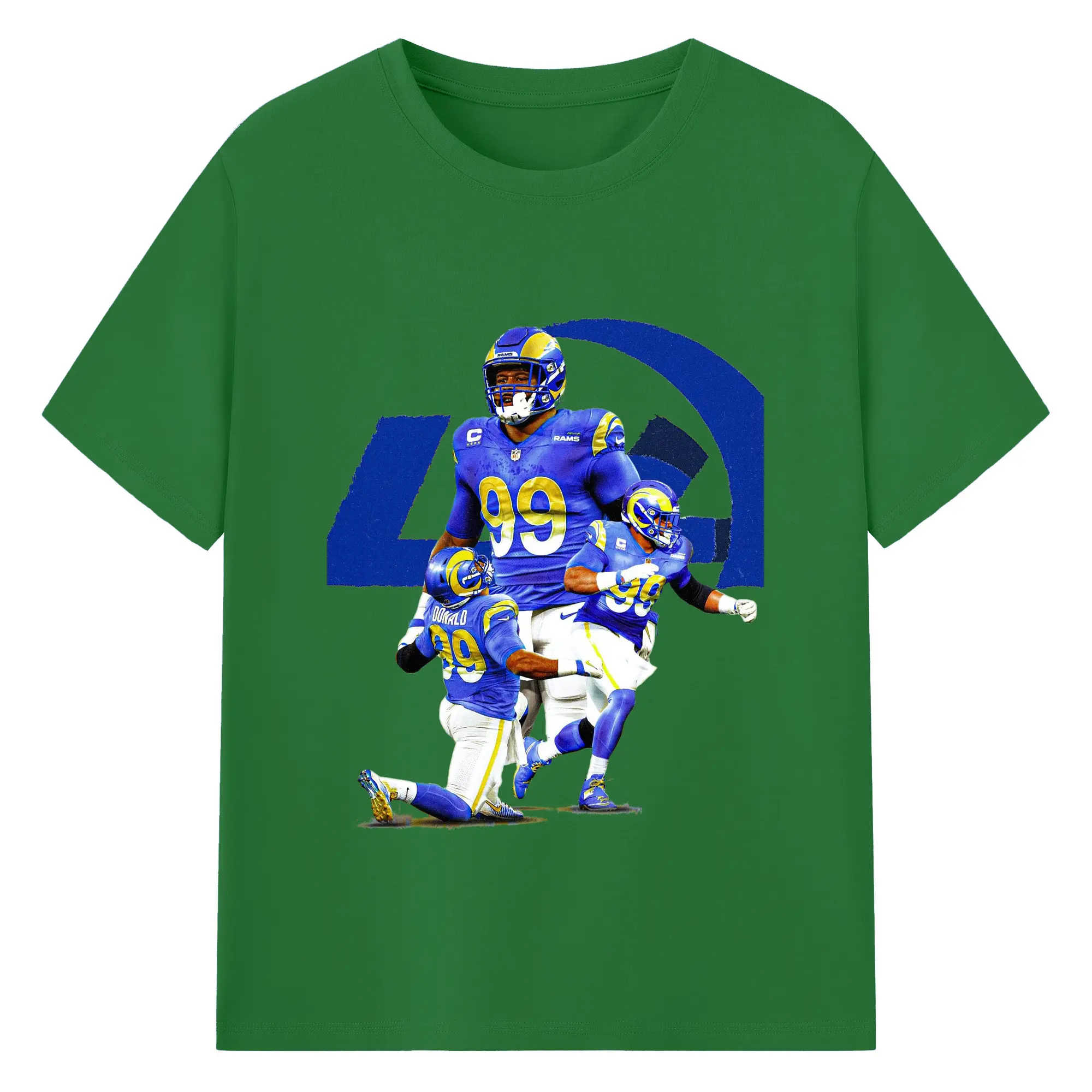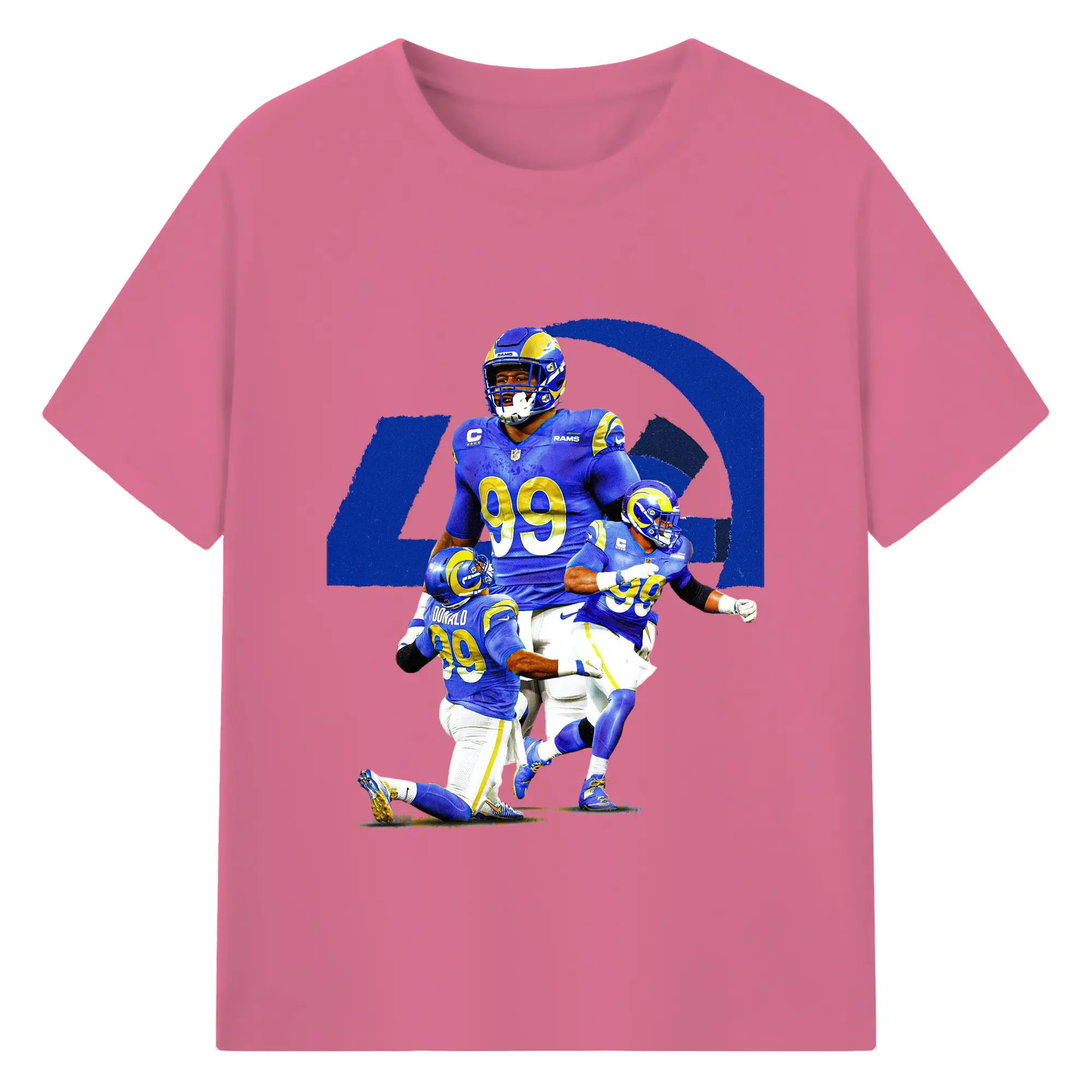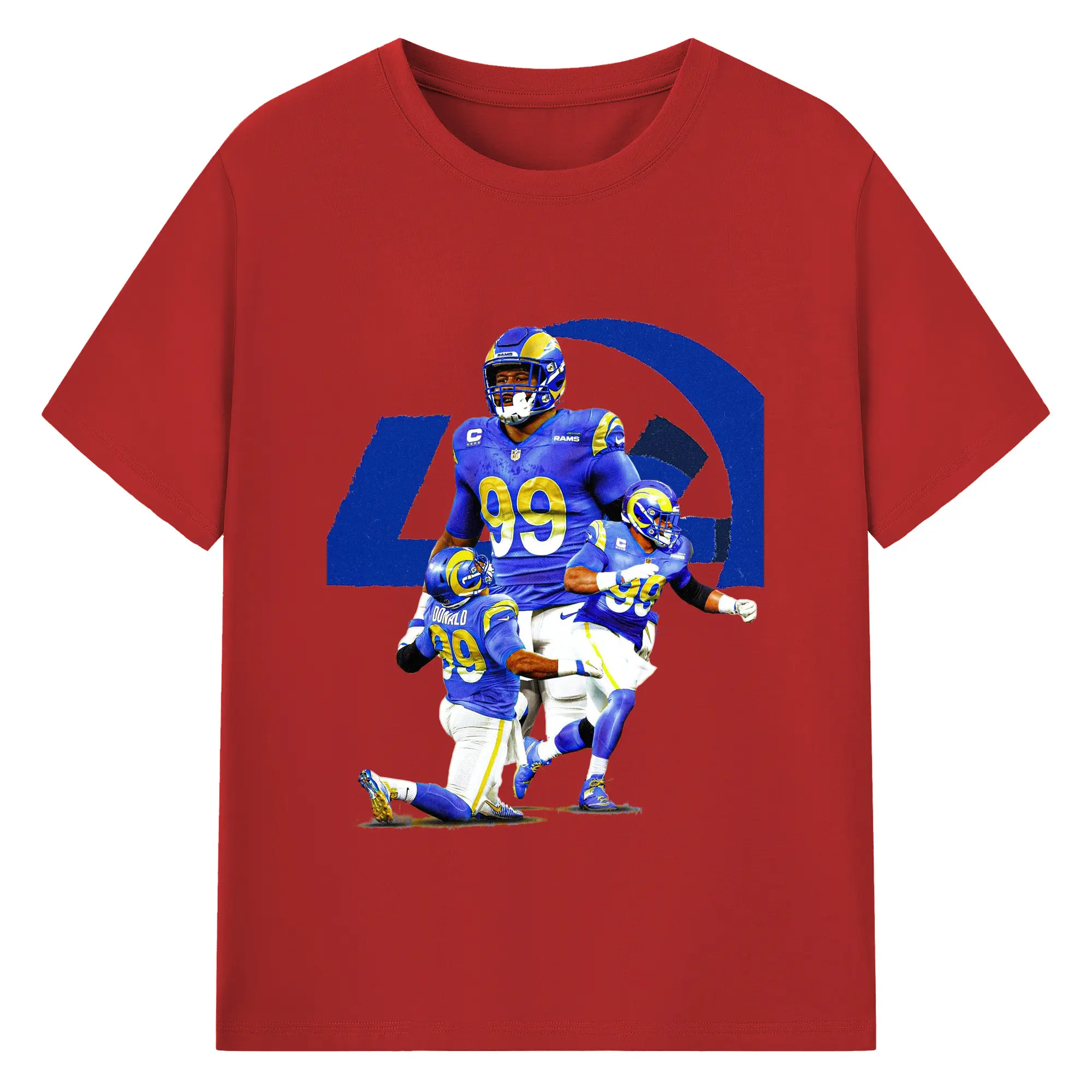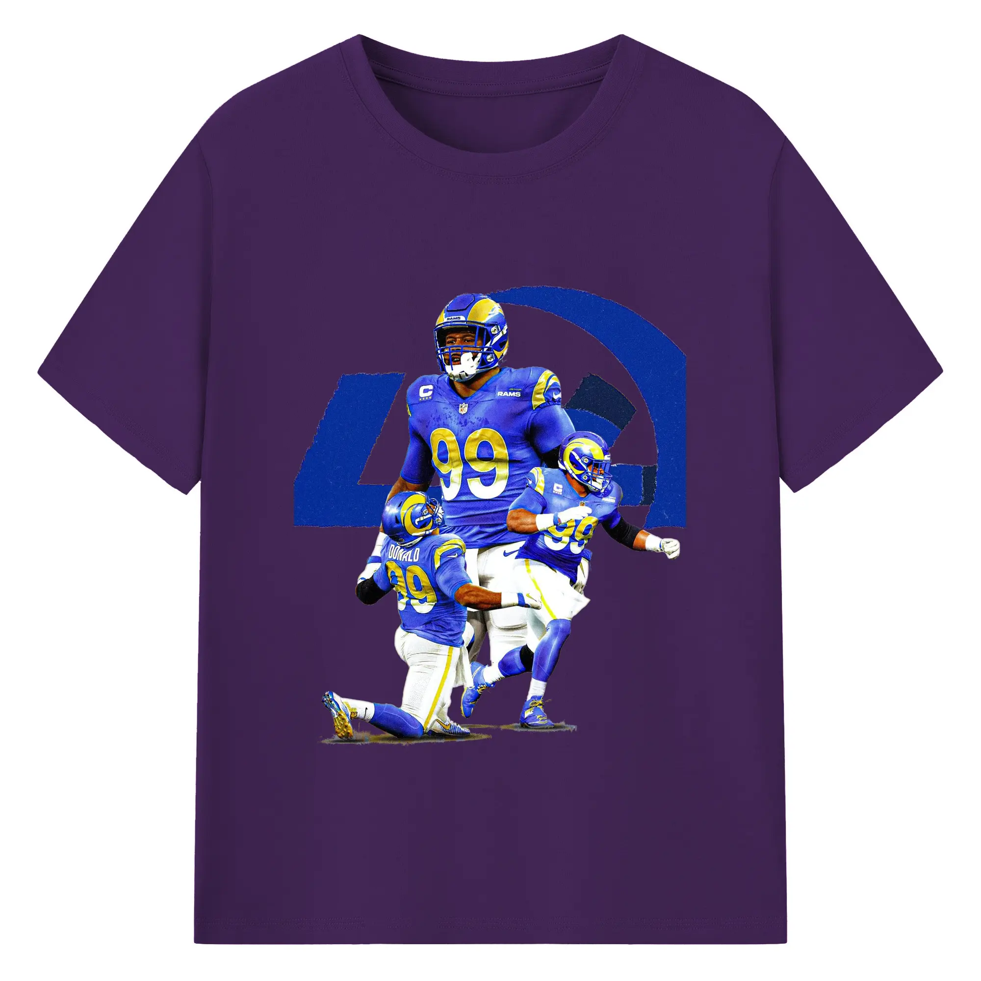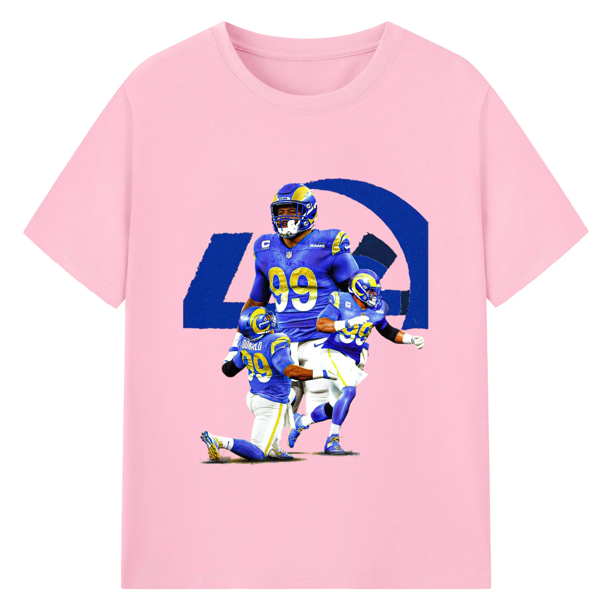 Los Angeles Rams Aaron Donald #99 NFL Star Collage DIY Shirt - 180g Cotton T-Shirt With Front Heat Transfer Print – Soft, Lightweight, Fitted Design – Comfortable Casual Wear For Sports & Everyday Use