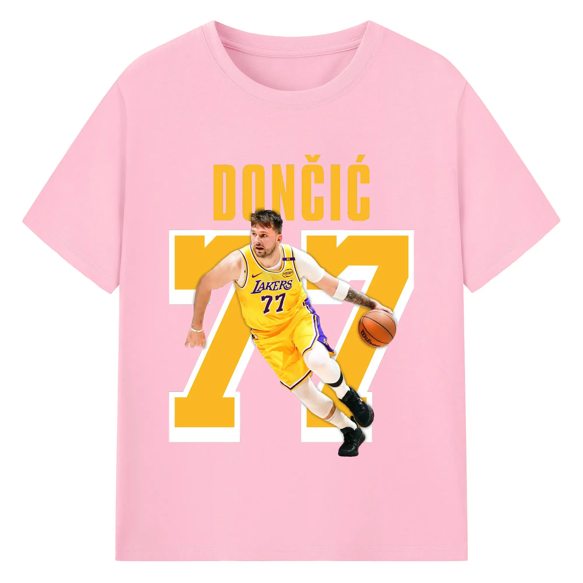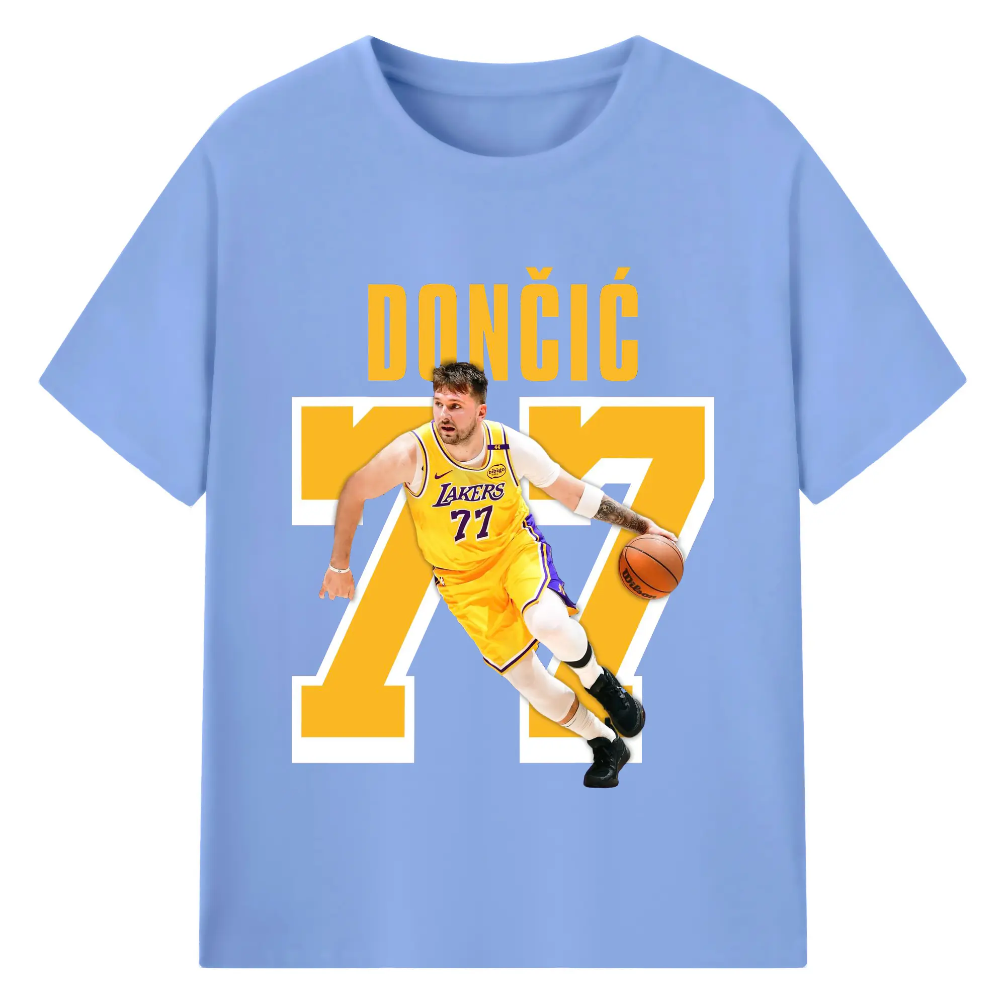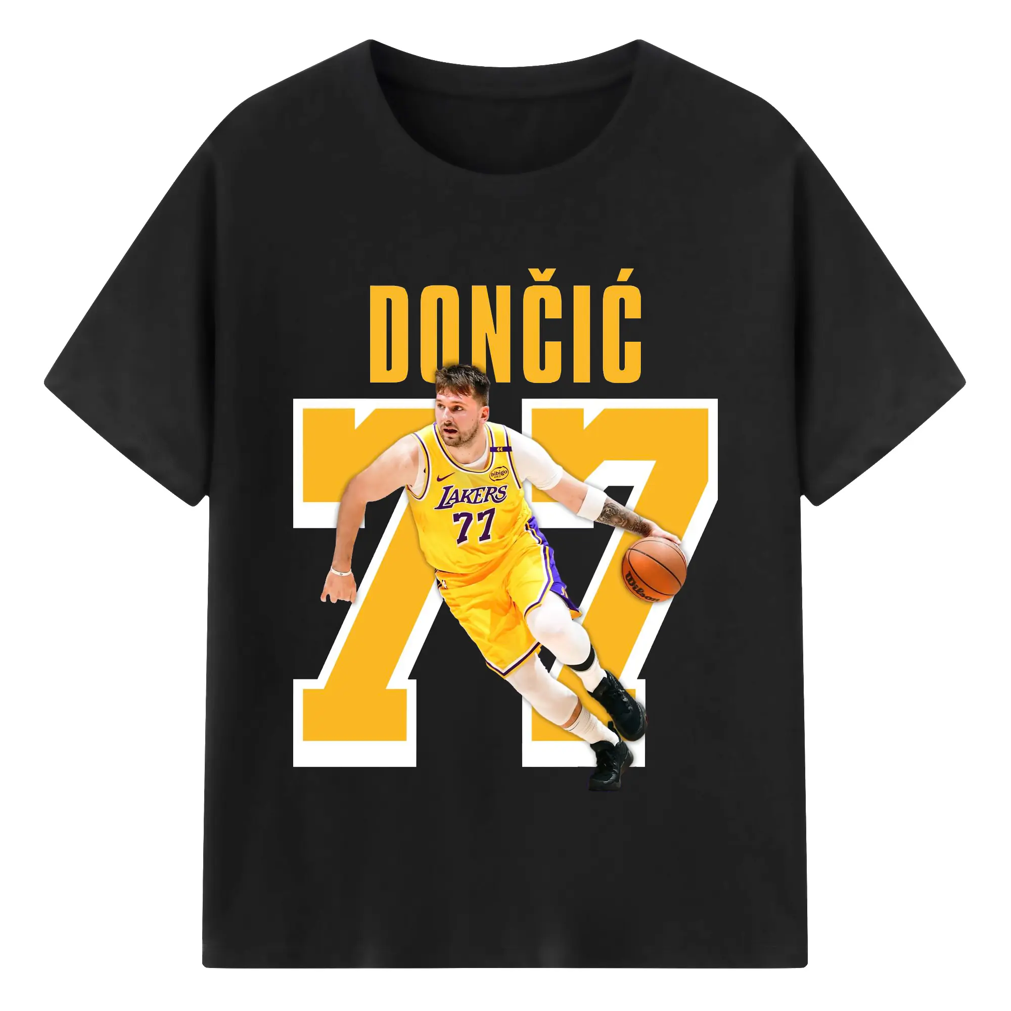 Luka Dončić #77 Lakers Shirt - 180g Cotton T-Shirt With Front Heat Transfer Print – Soft, Lightweight, Fitted Design – Comfortable Casual Wear For Sports & Everyday Use