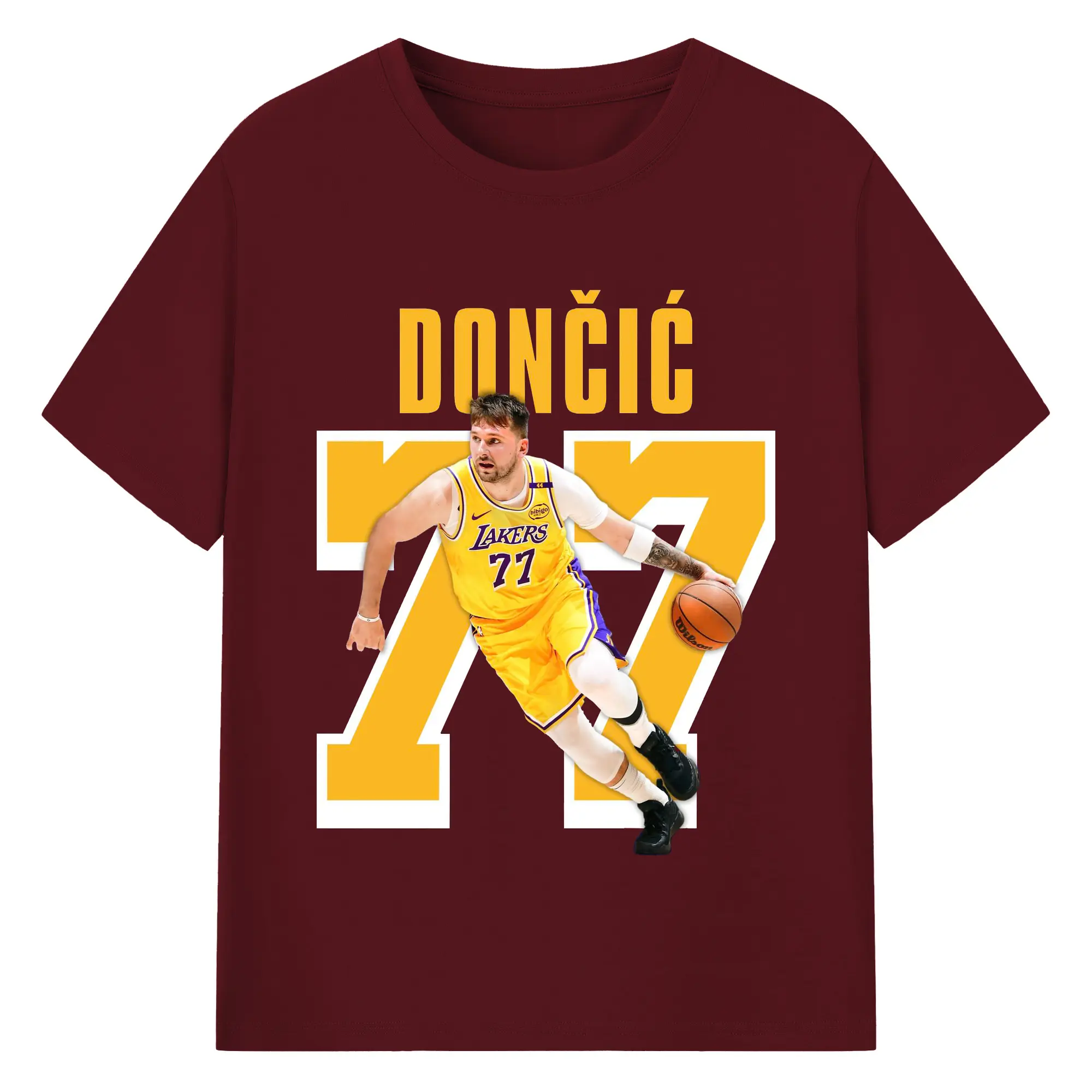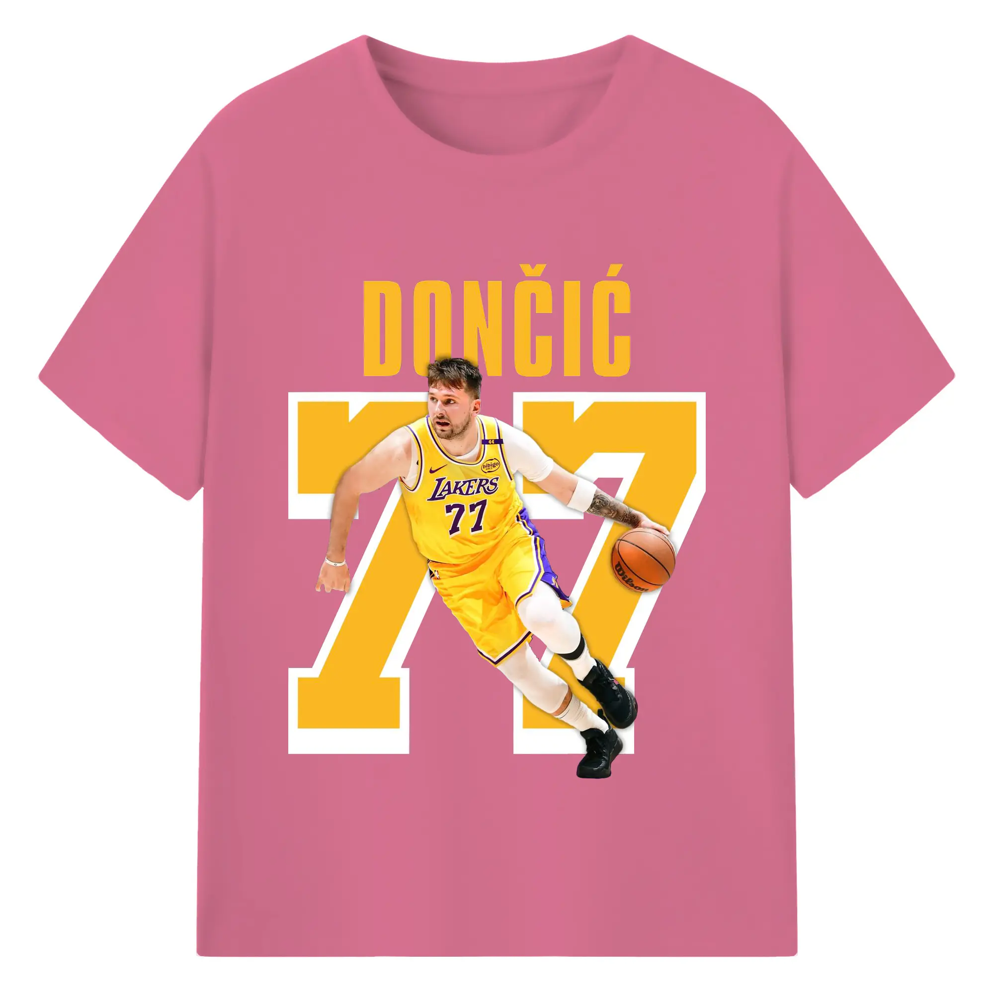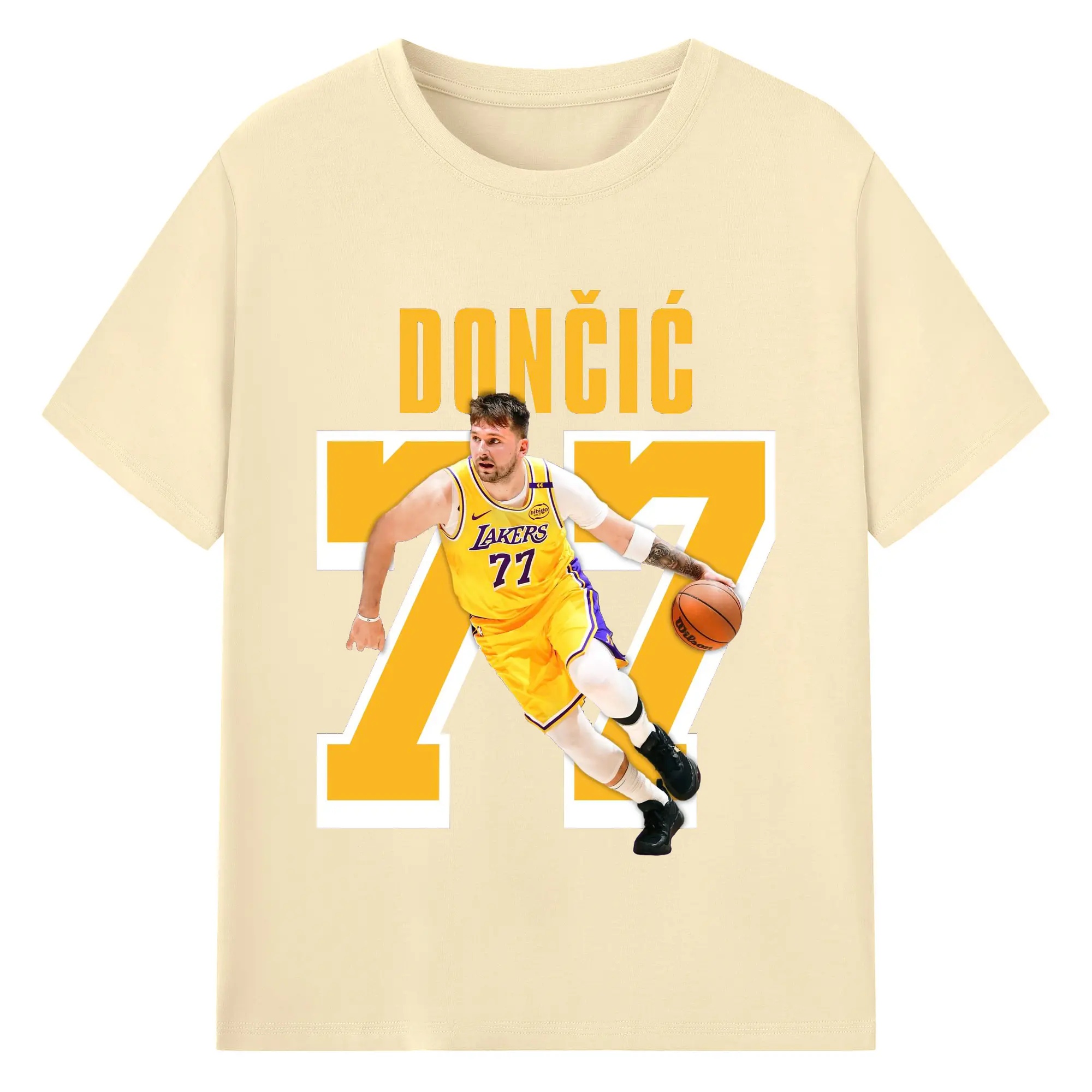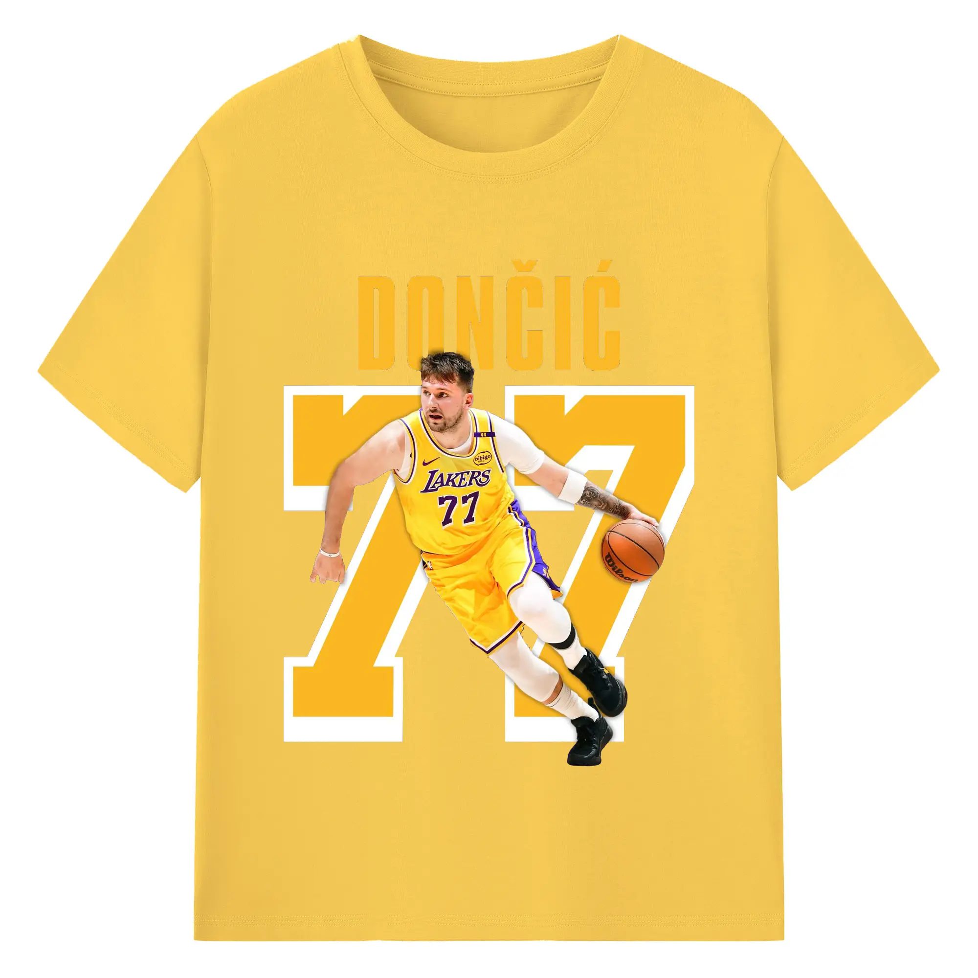 Luka Dončić #77 Lakers Shirt - 180g Cotton T-Shirt With Front Heat Transfer Print – Soft, Lightweight, Fitted Design – Comfortable Casual Wear For Sports & Everyday Use