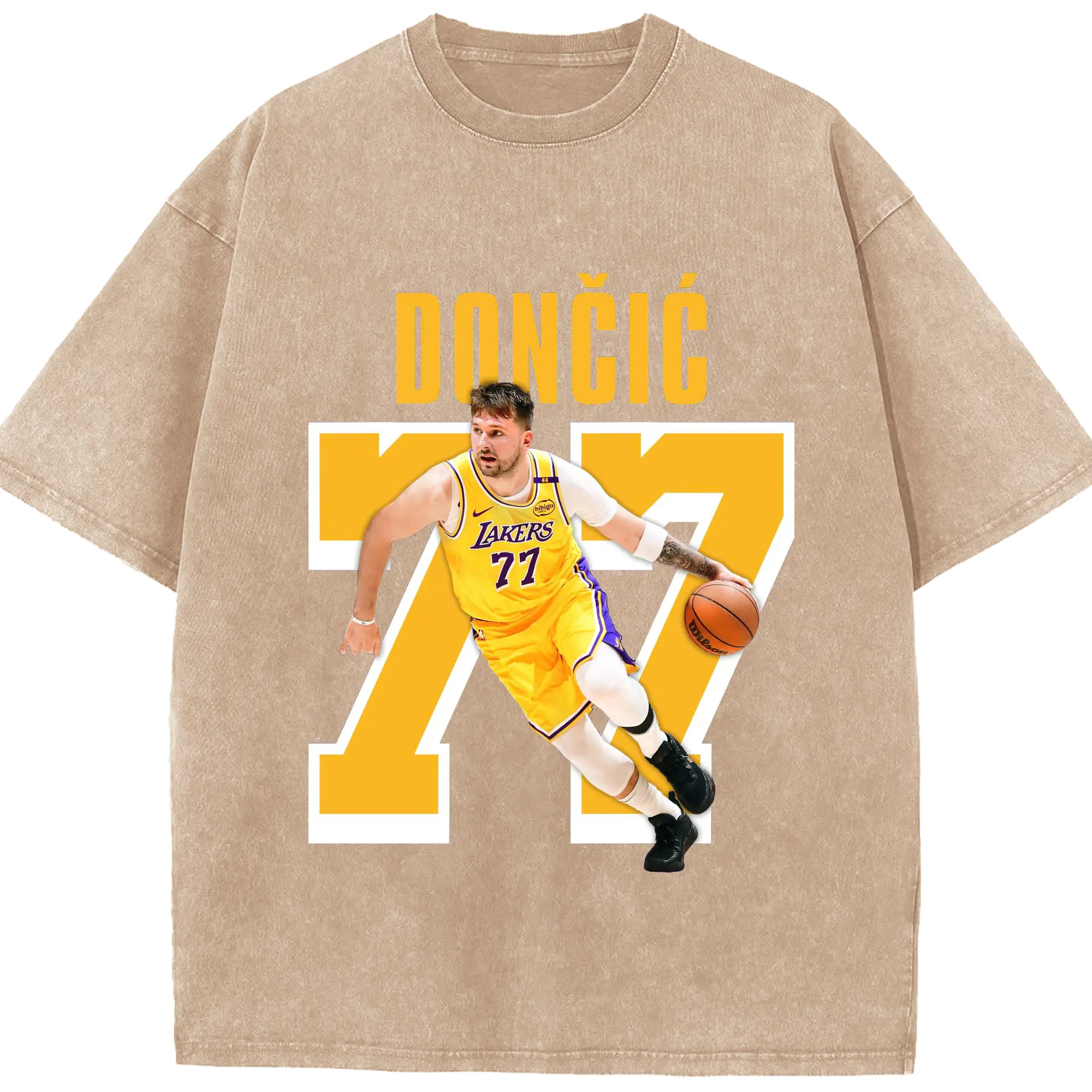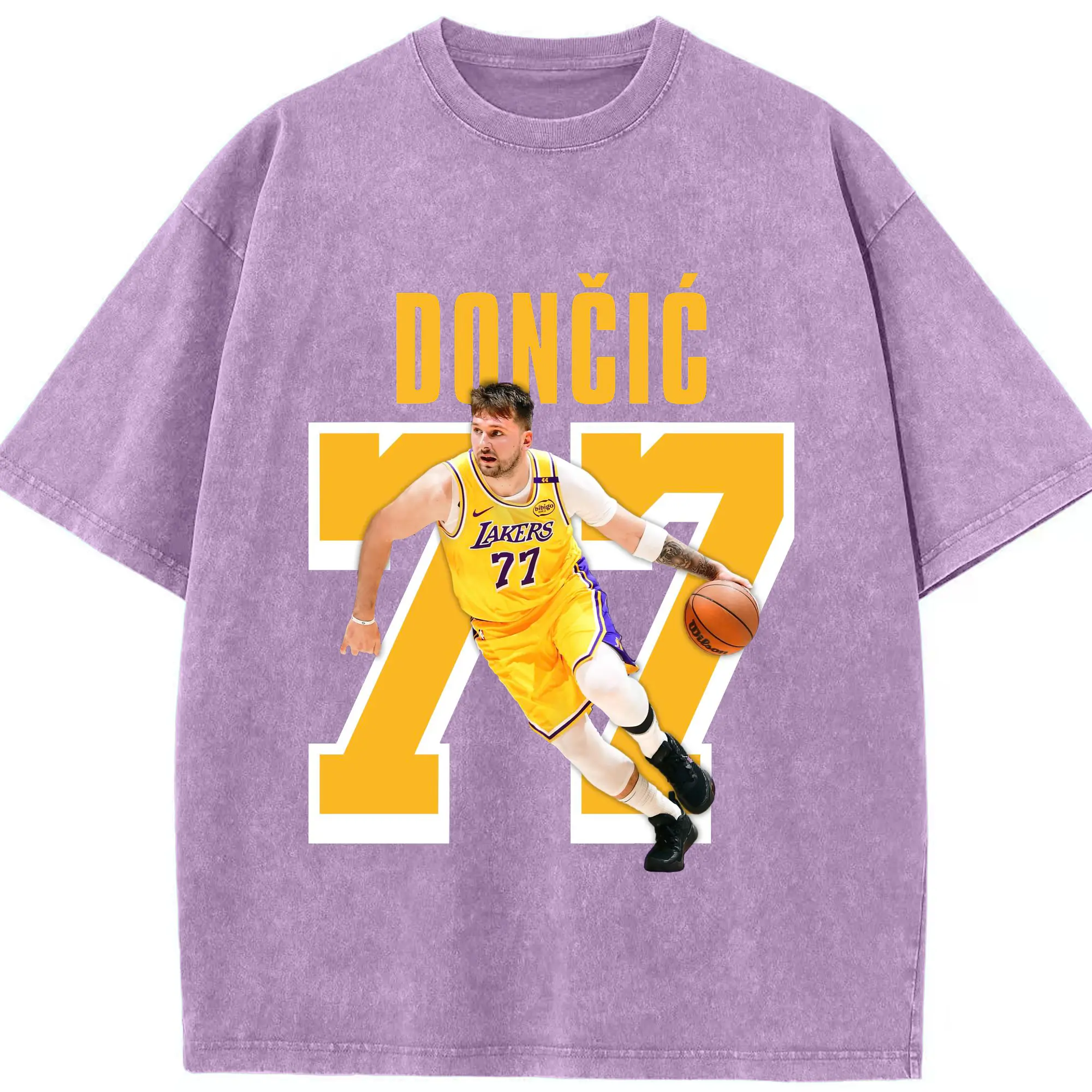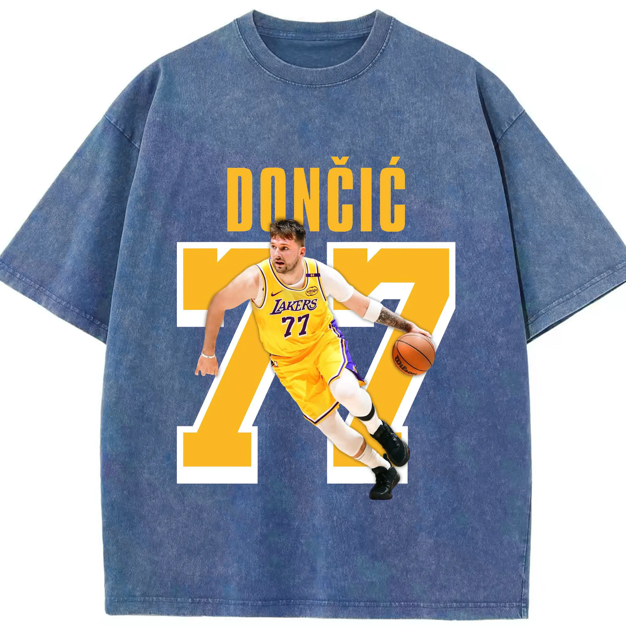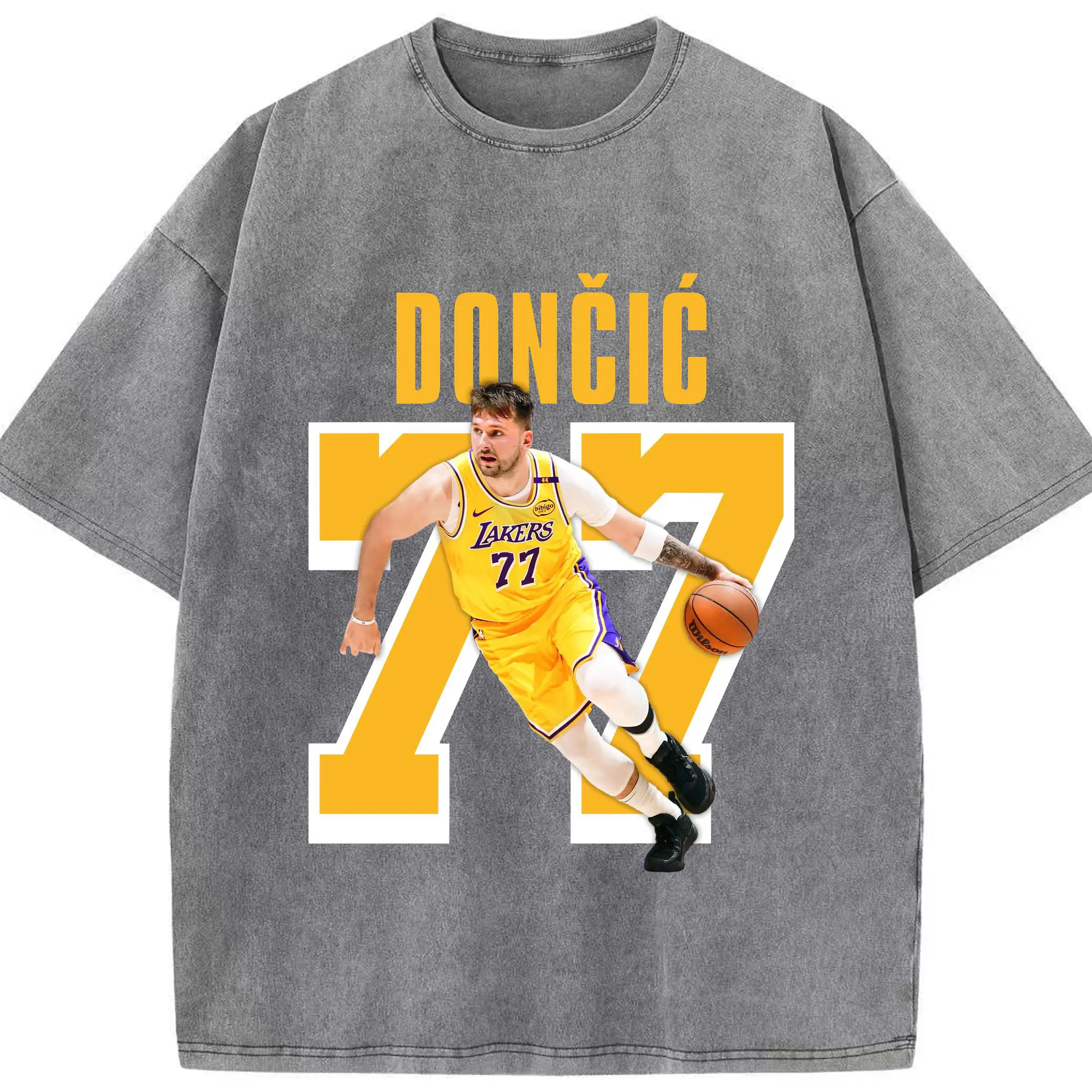 Luka Dončić #77 Lakers Shirt - Washed Vintage Look 230g Cotton Oversized T-Shirt With Front Heat Transfer Print – Soft, Lightweight, Stylish Fit – Comfortable Casual Wear For Sports & Everyday Use