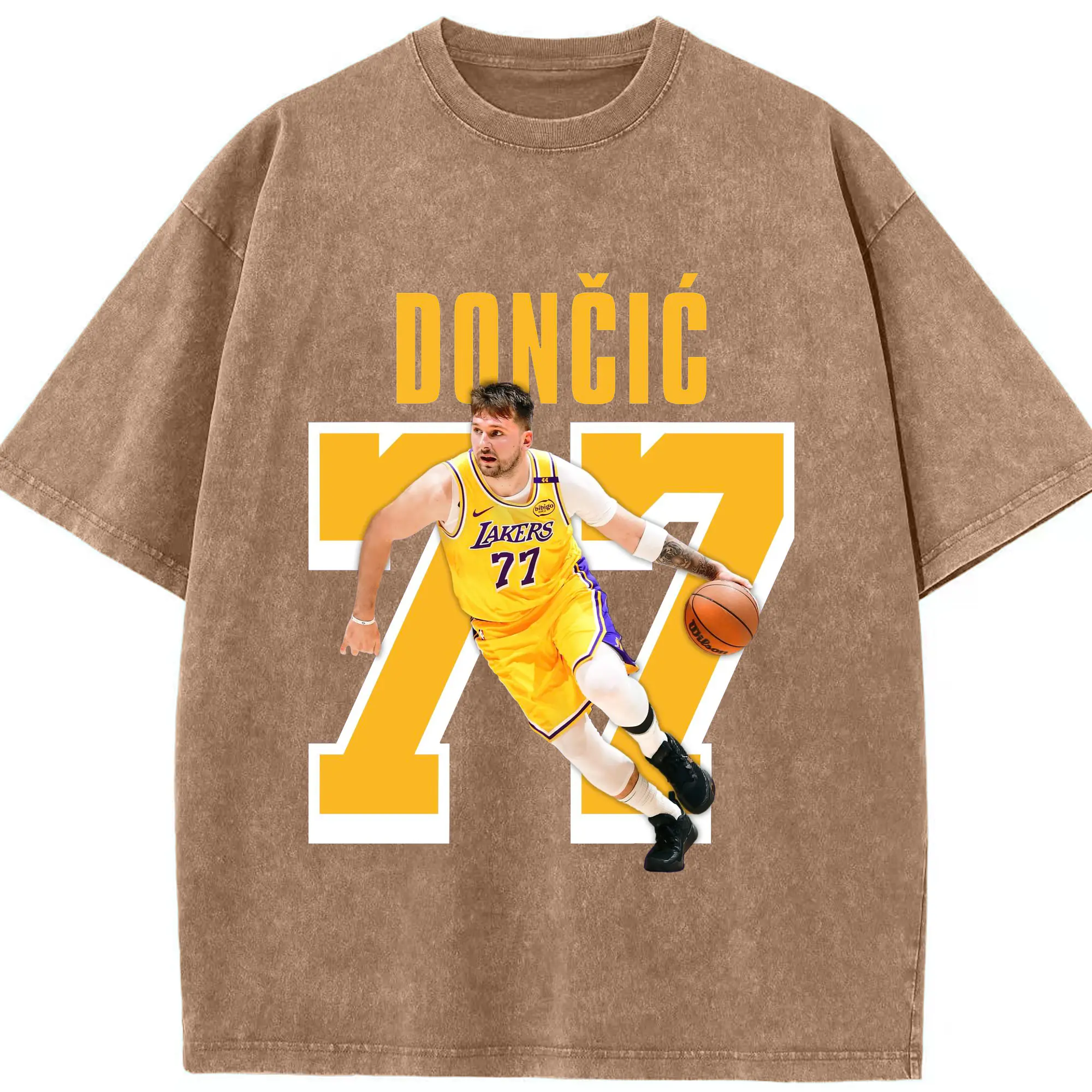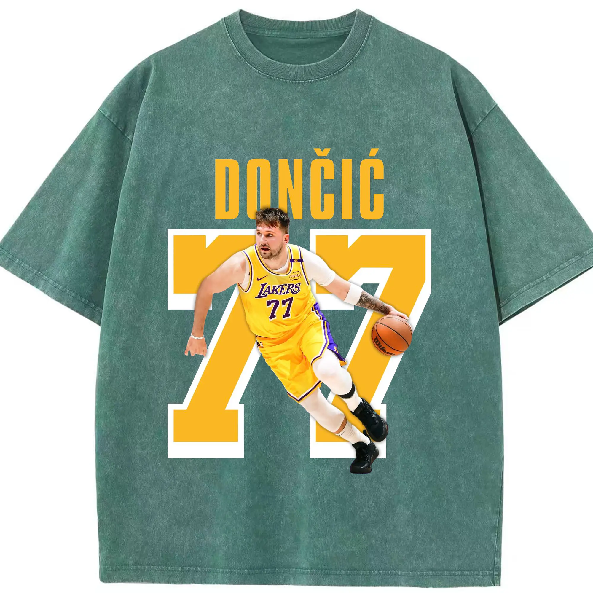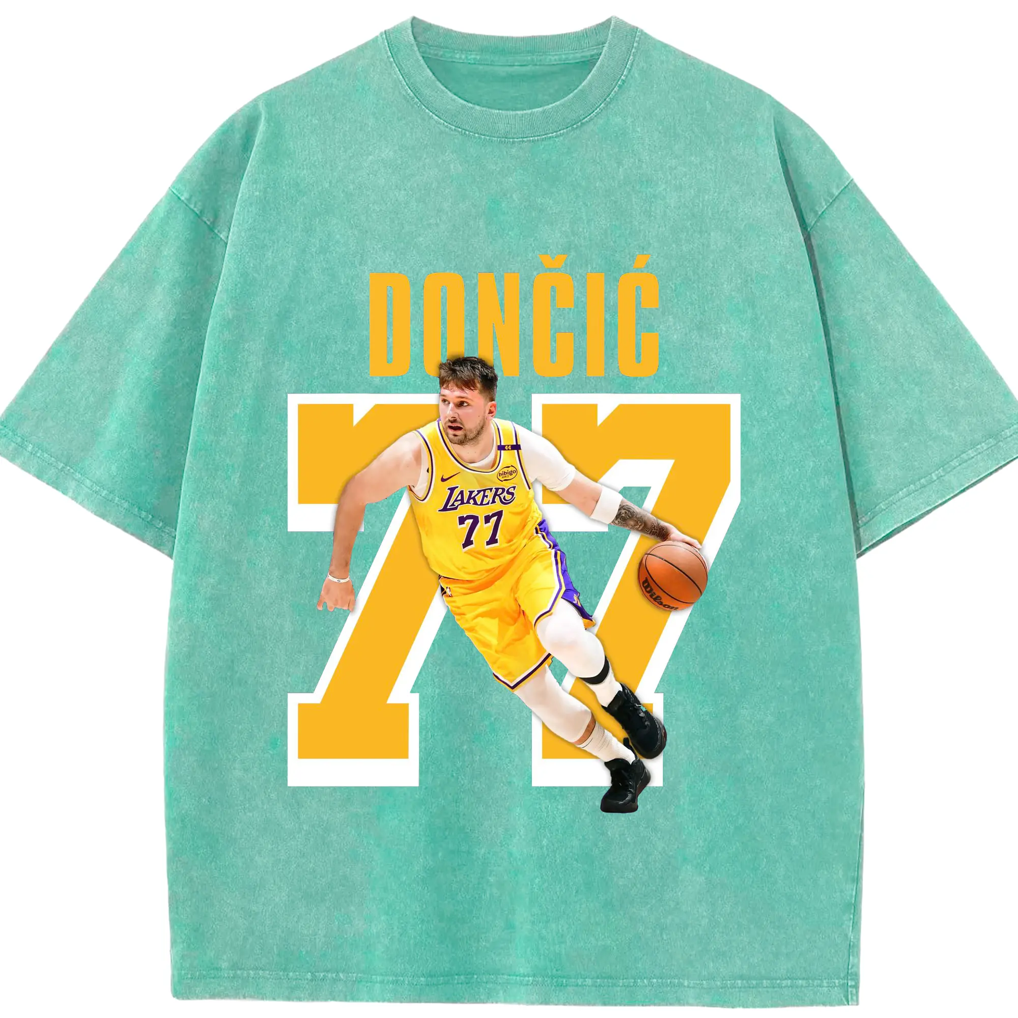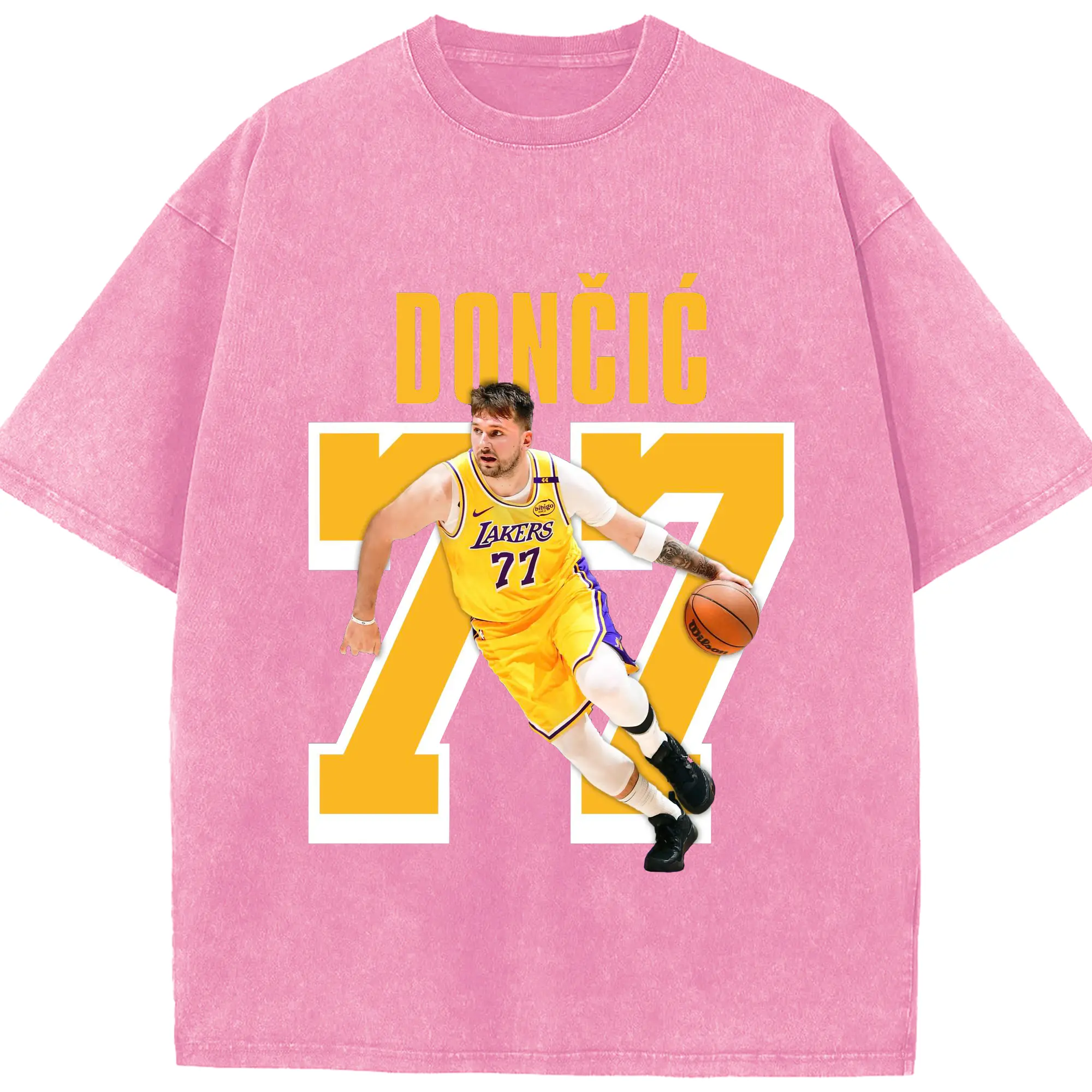 Luka Dončić #77 Lakers Shirt - Washed Vintage Look 230g Cotton Oversized T-Shirt With Front Heat Transfer Print – Soft, Lightweight, Stylish Fit – Comfortable Casual Wear For Sports & Everyday Use