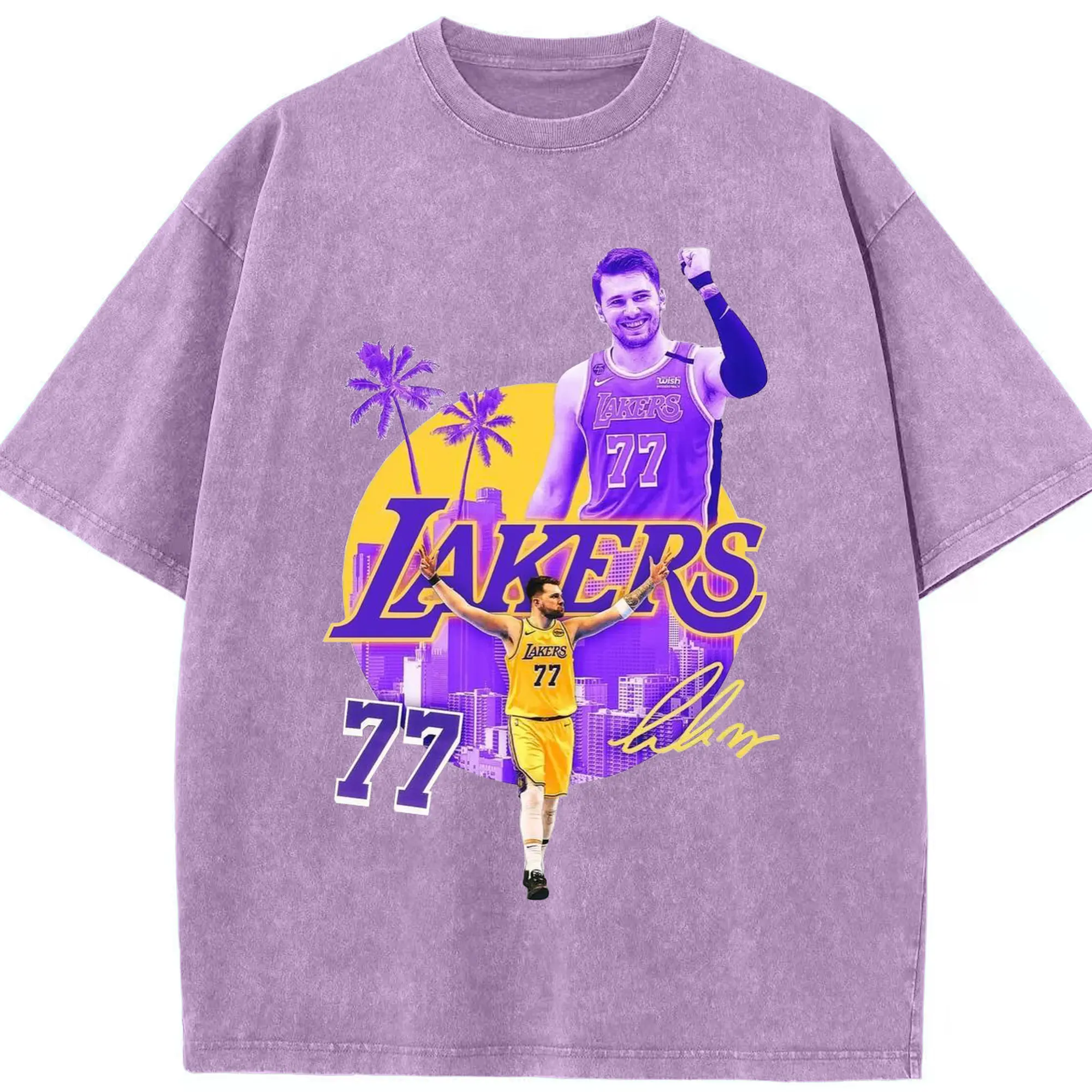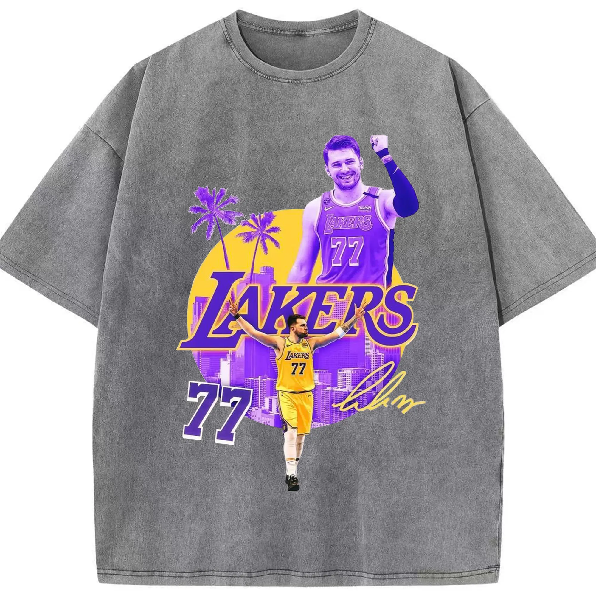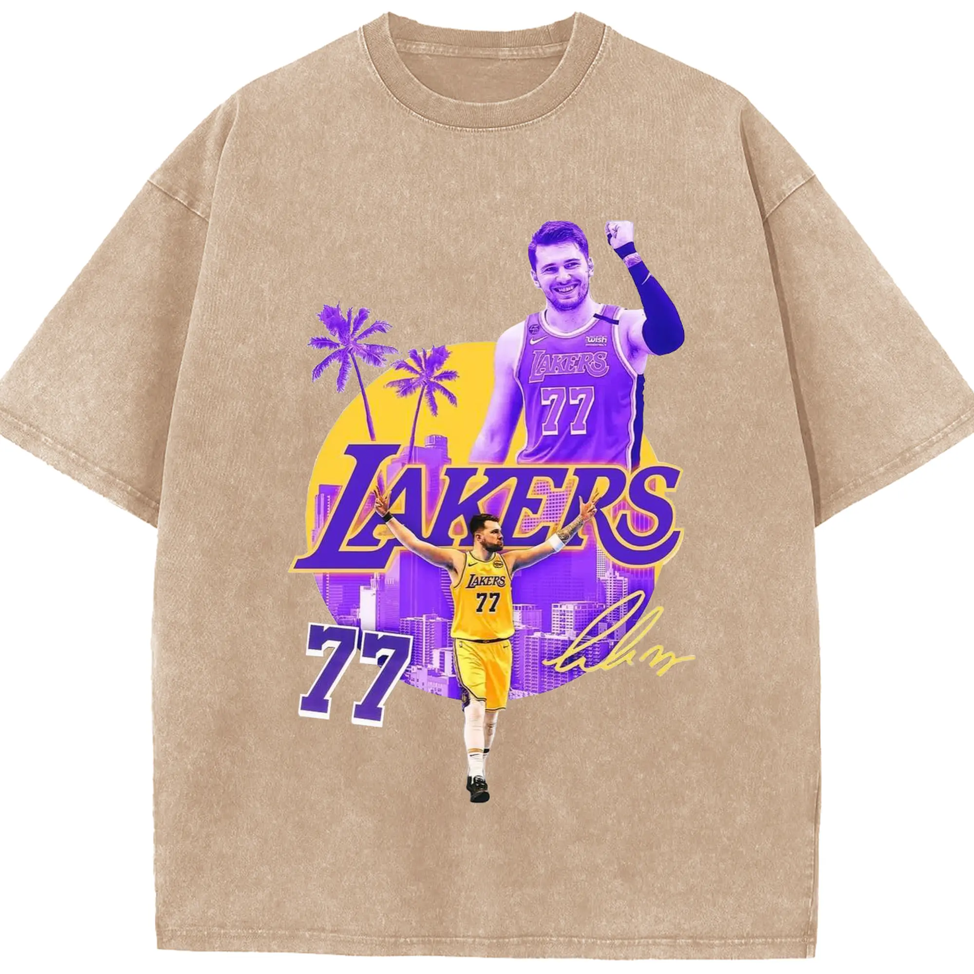 Luka Dončić Los Angeles City Shirt - Washed Vintage Look 230g Cotton Oversized T-Shirt With Front Heat Transfer Print – Soft, Lightweight, Stylish Fit – Comfortable Casual Wear For Sports & Everyday Use