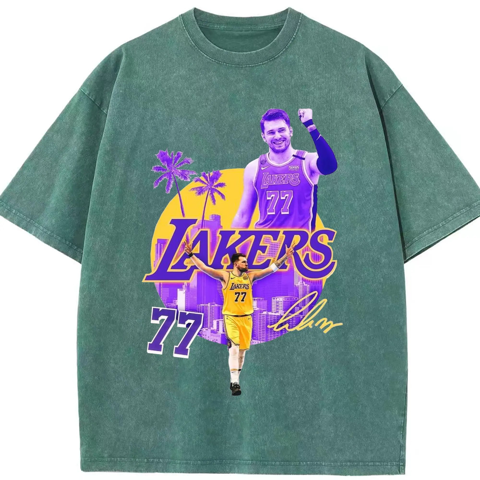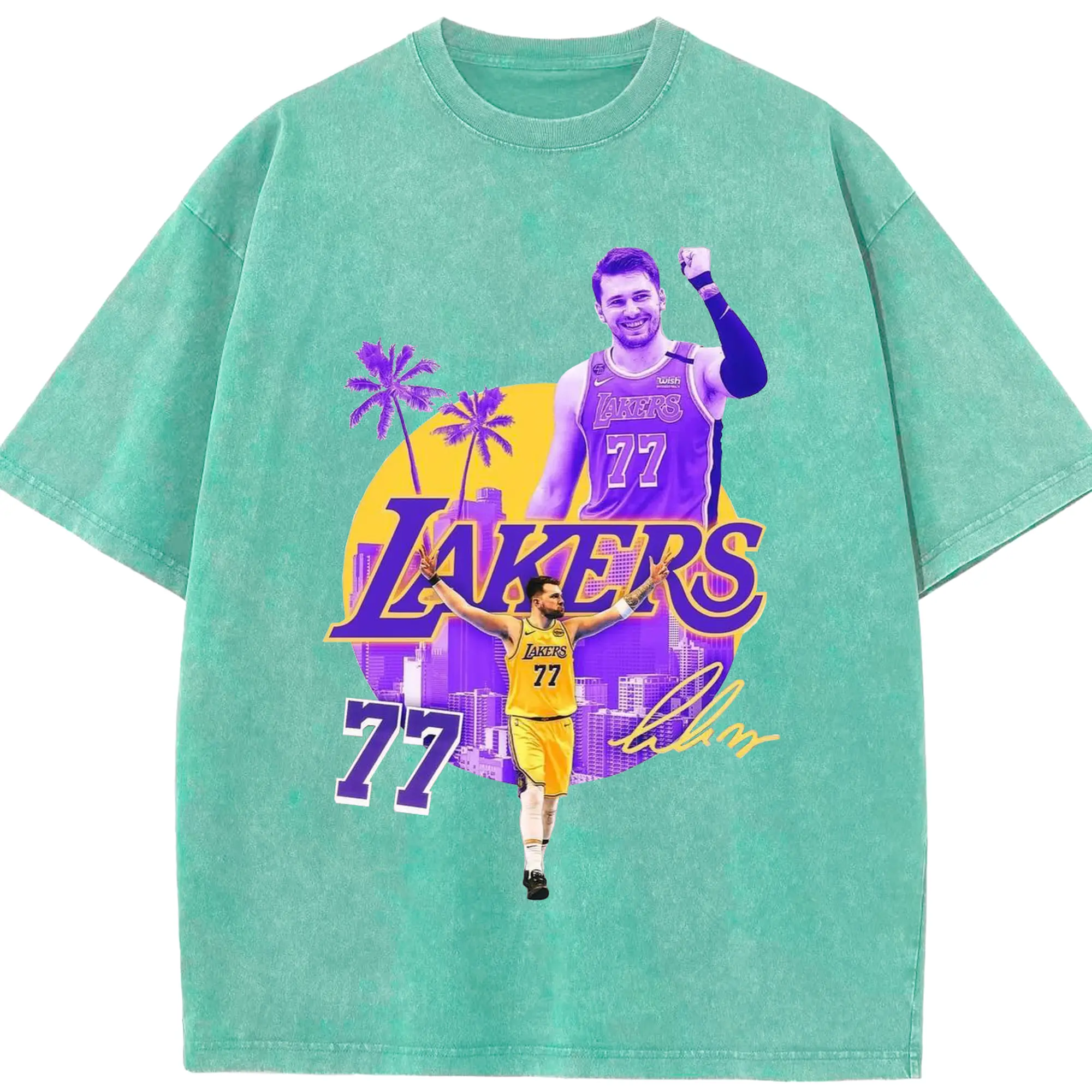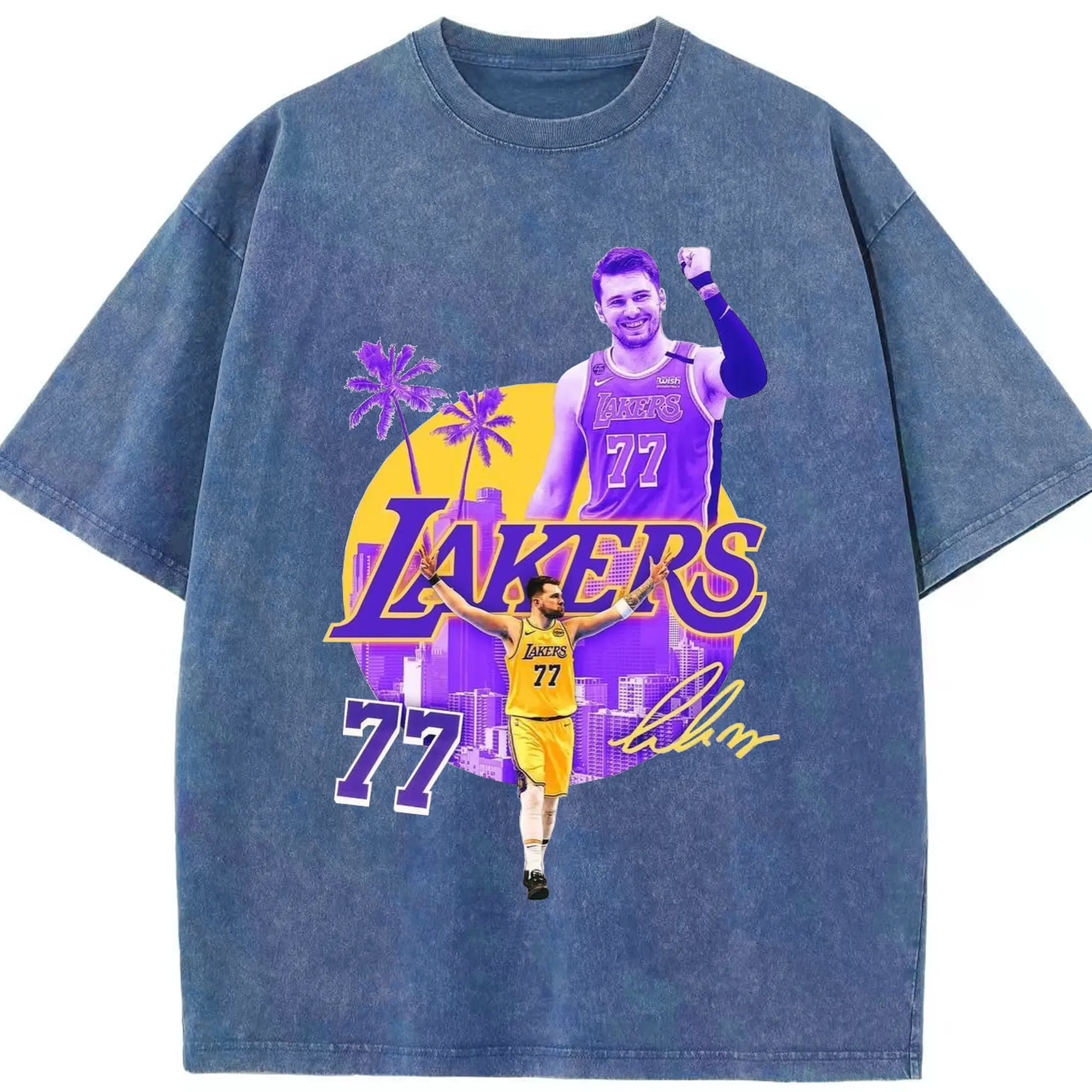 Luka Dončić Los Angeles City Shirt - Washed Vintage Look 230g Cotton Oversized T-Shirt With Front Heat Transfer Print – Soft, Lightweight, Stylish Fit – Comfortable Casual Wear For Sports & Everyday Use