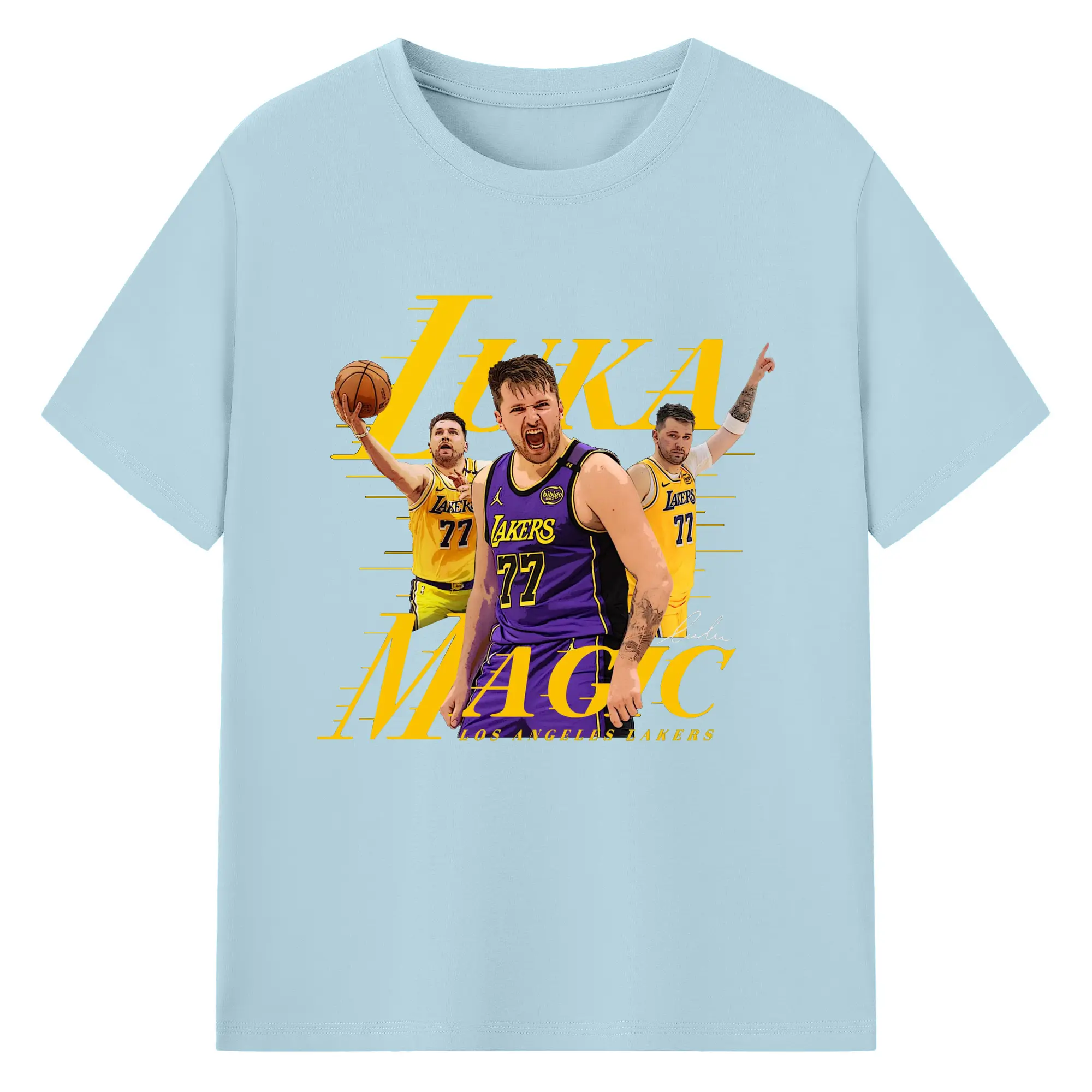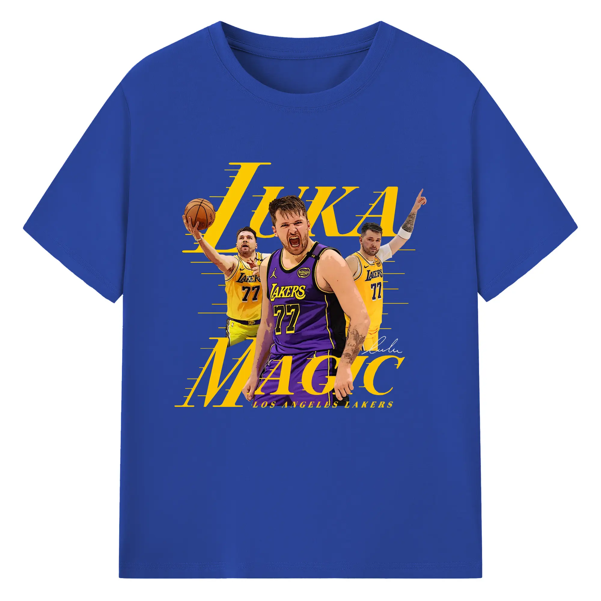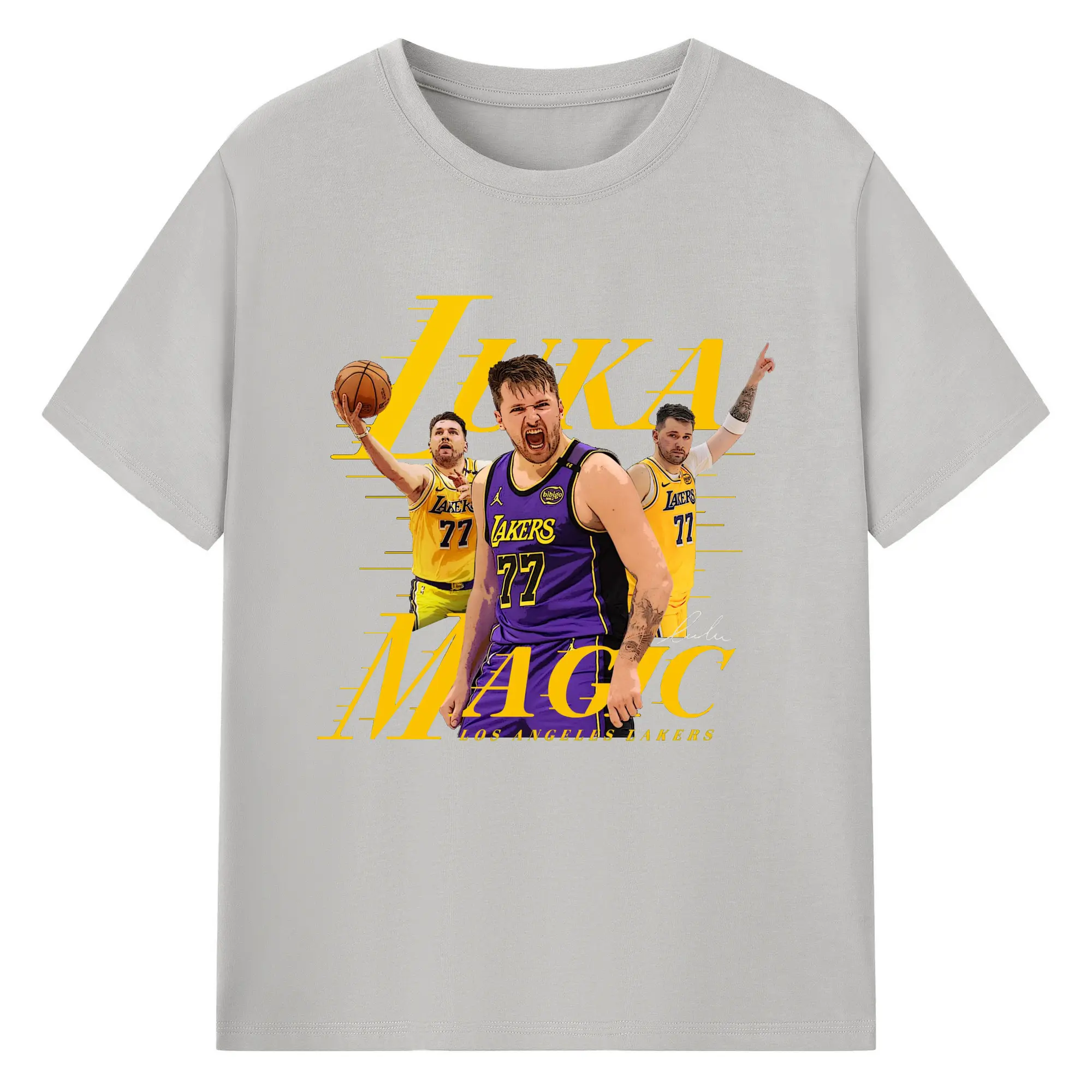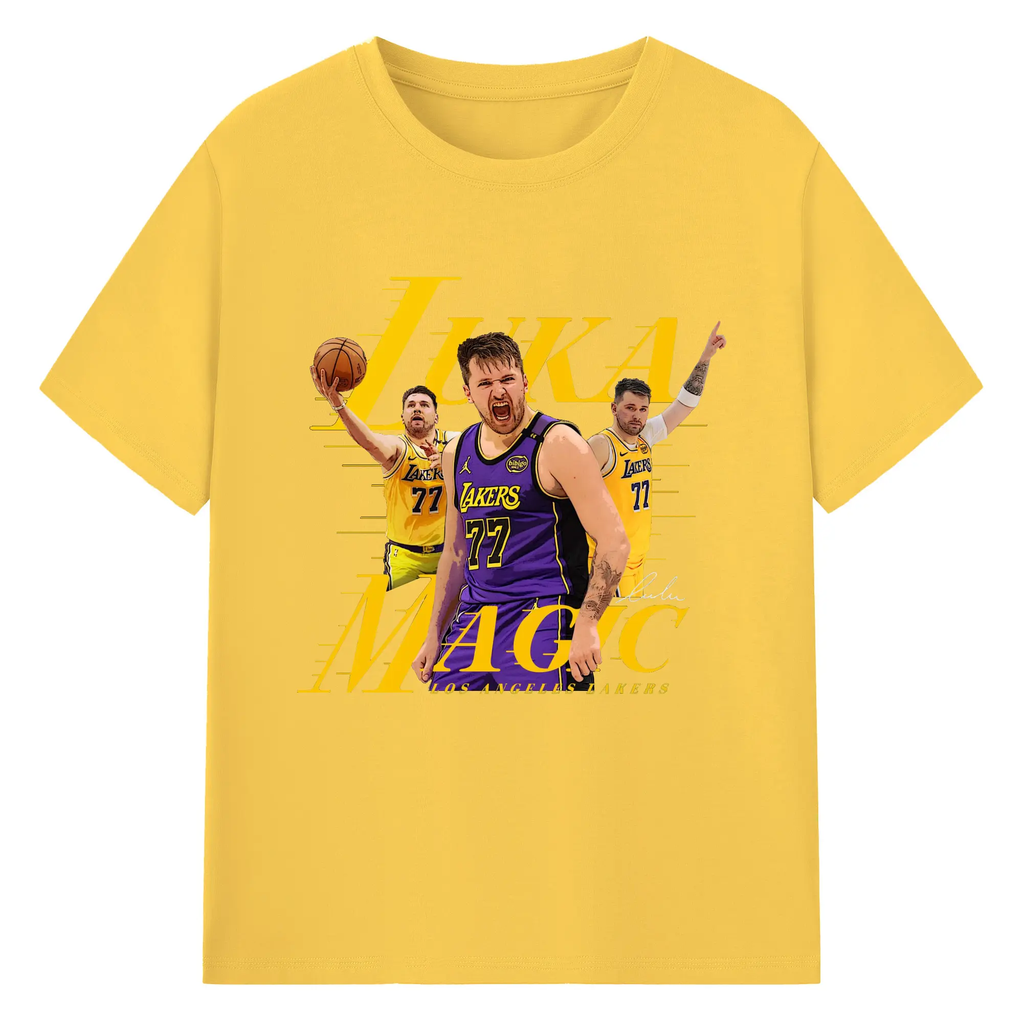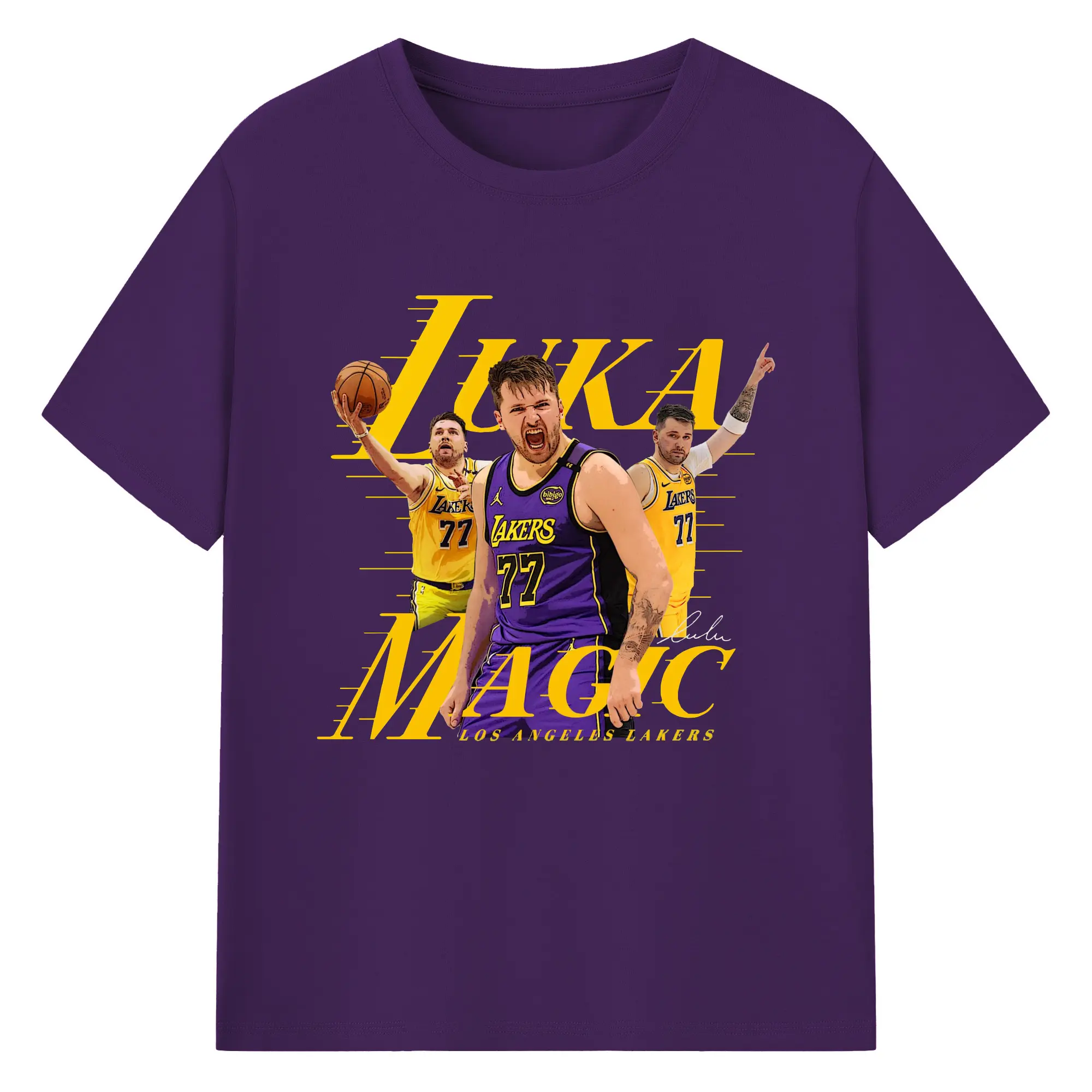 Luka Magic 77 Lakers Jersey Shirt - 180g Cotton T-Shirt With Front Heat Transfer Print – Soft, Lightweight, Fitted Design – Comfortable Casual Wear For Sports & Everyday Use