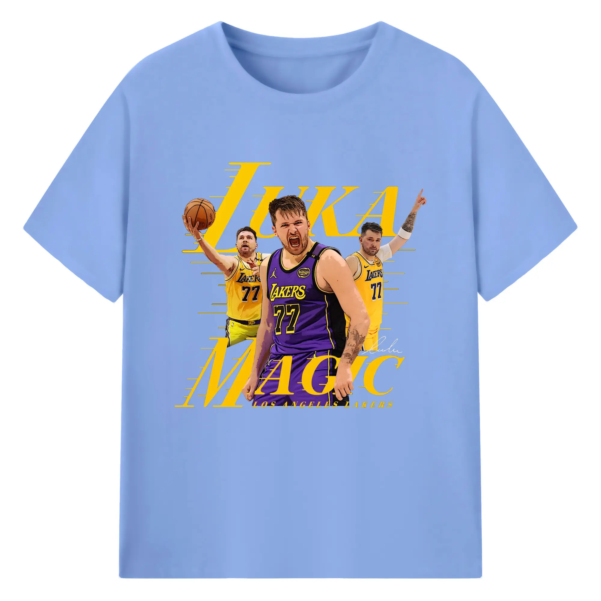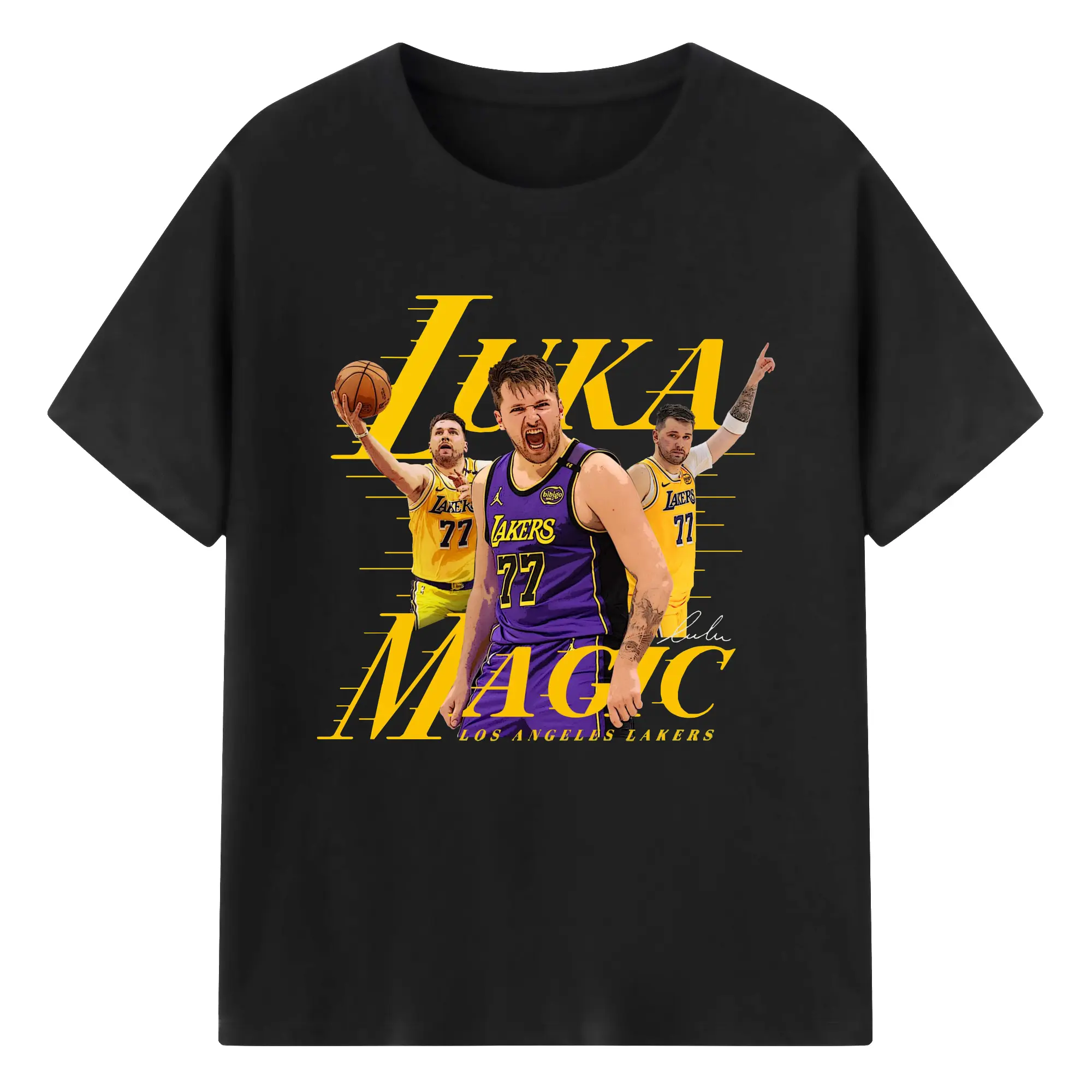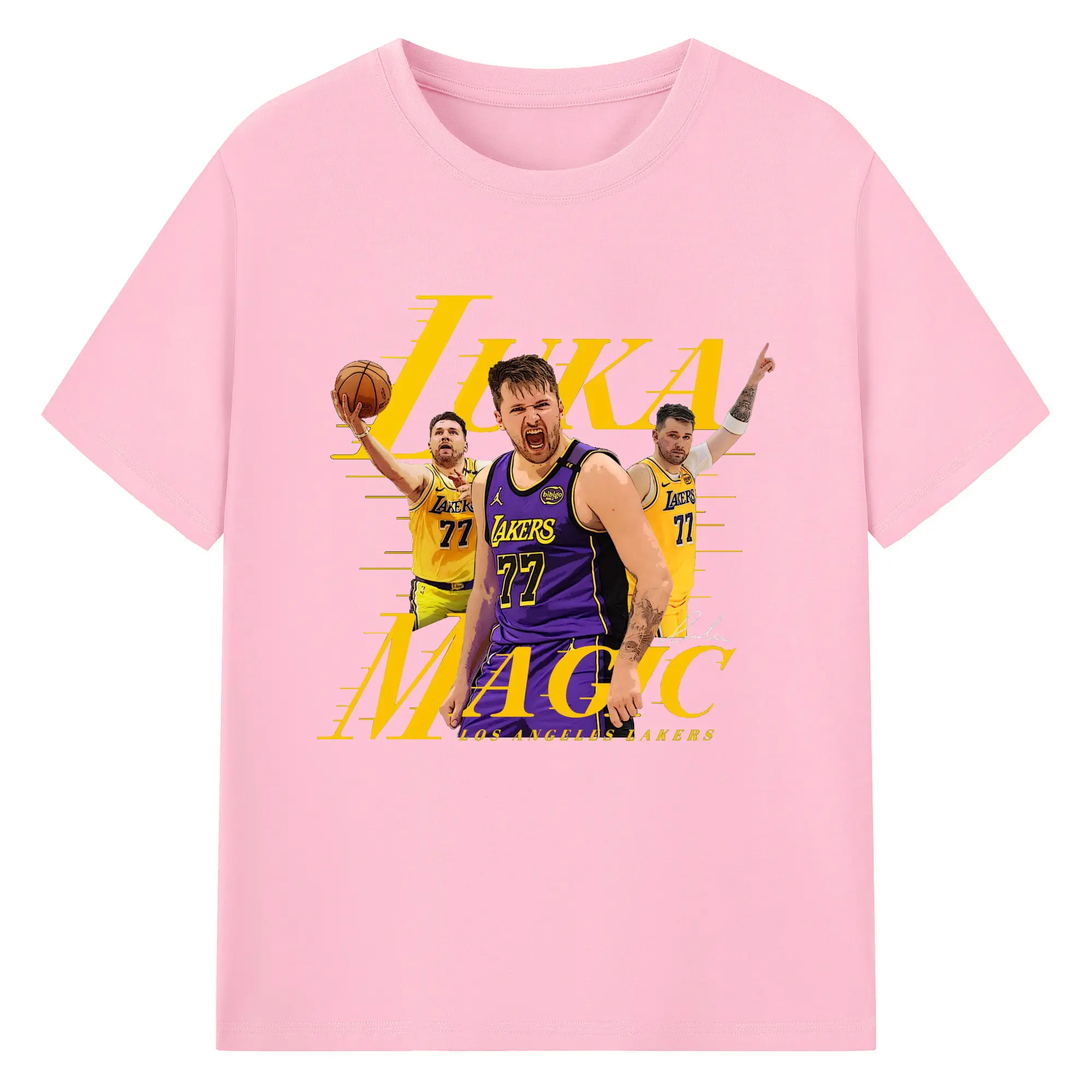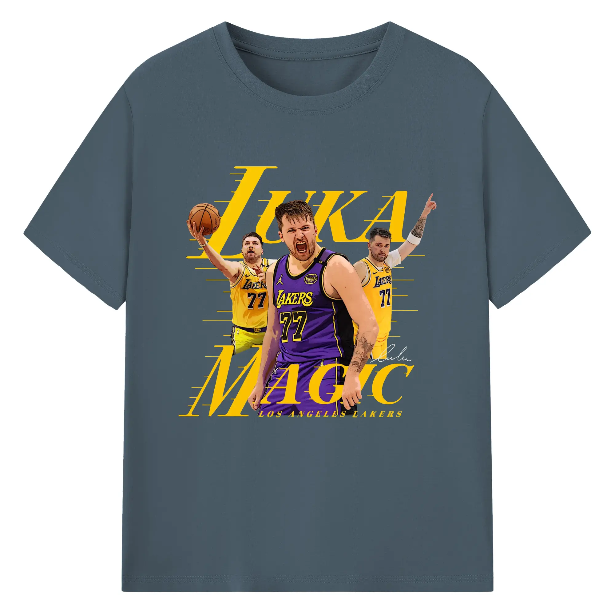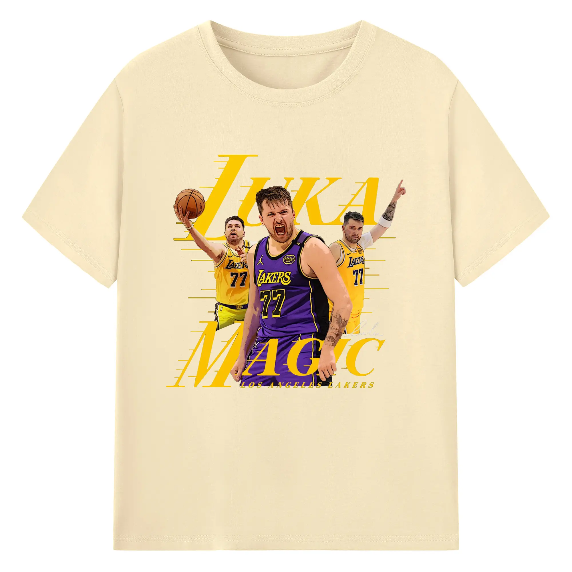 Luka Magic 77 Lakers Jersey Shirt - 180g Cotton T-Shirt With Front Heat Transfer Print – Soft, Lightweight, Fitted Design – Comfortable Casual Wear For Sports & Everyday Use