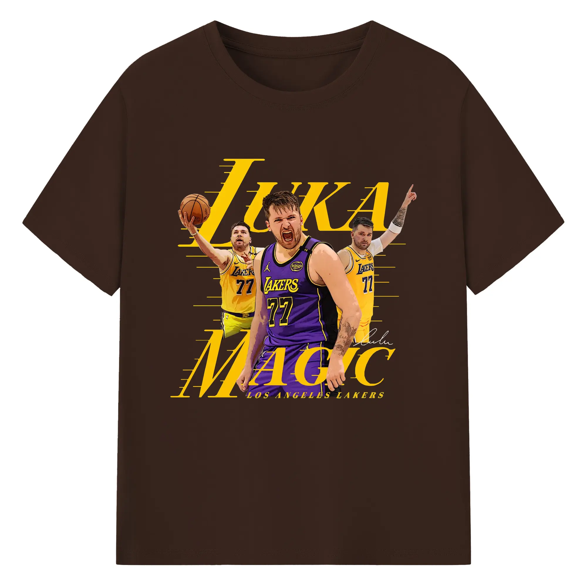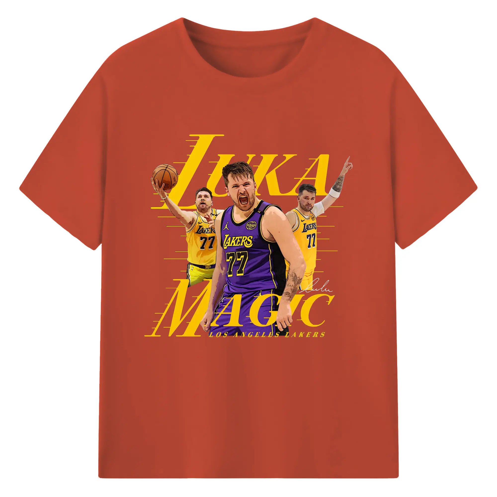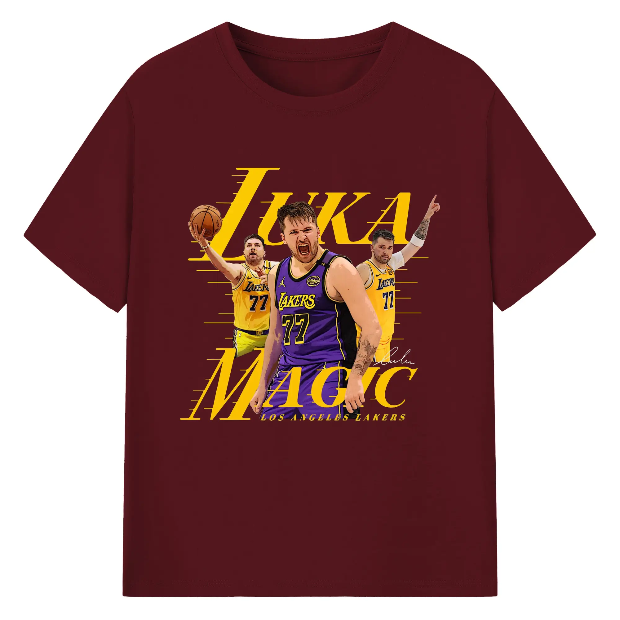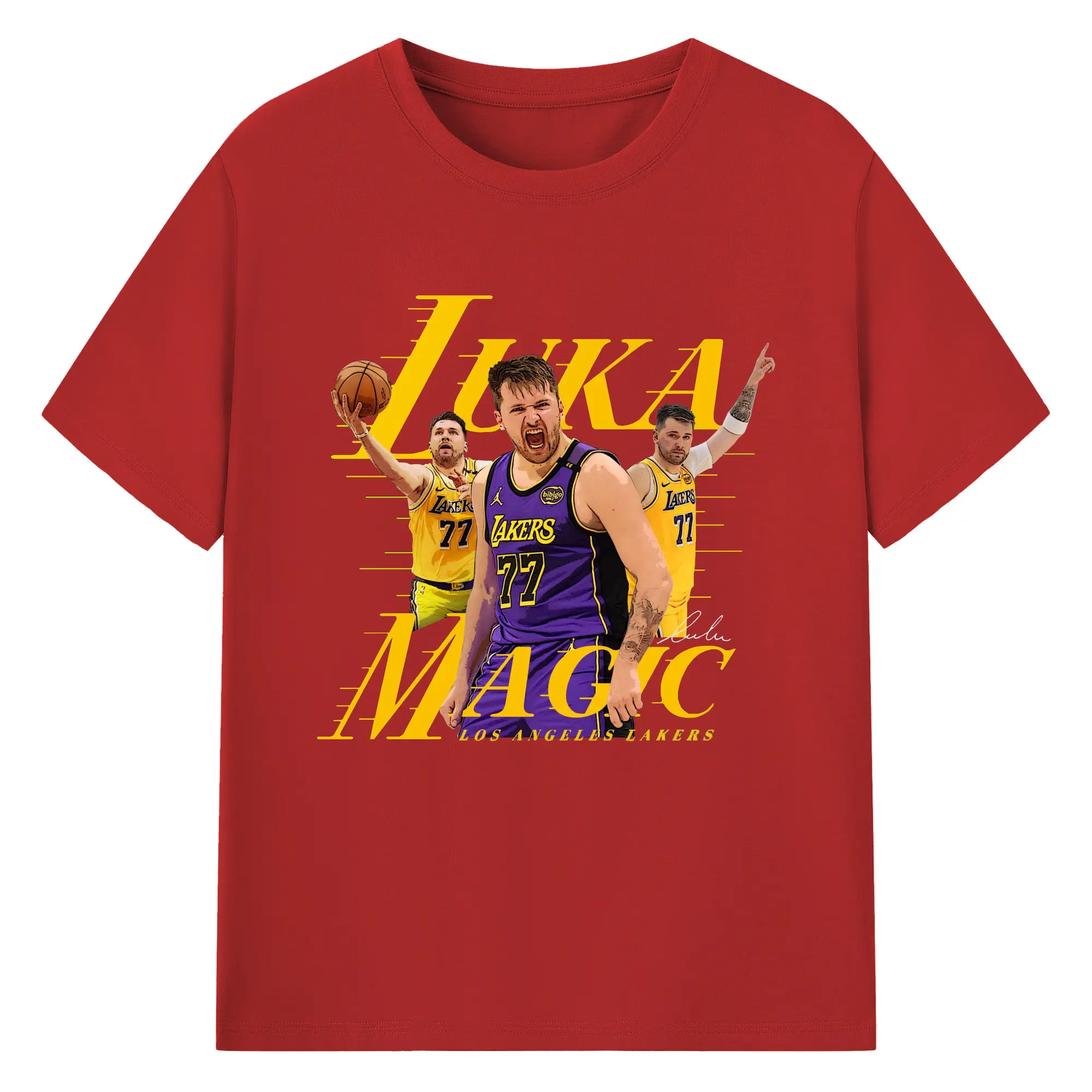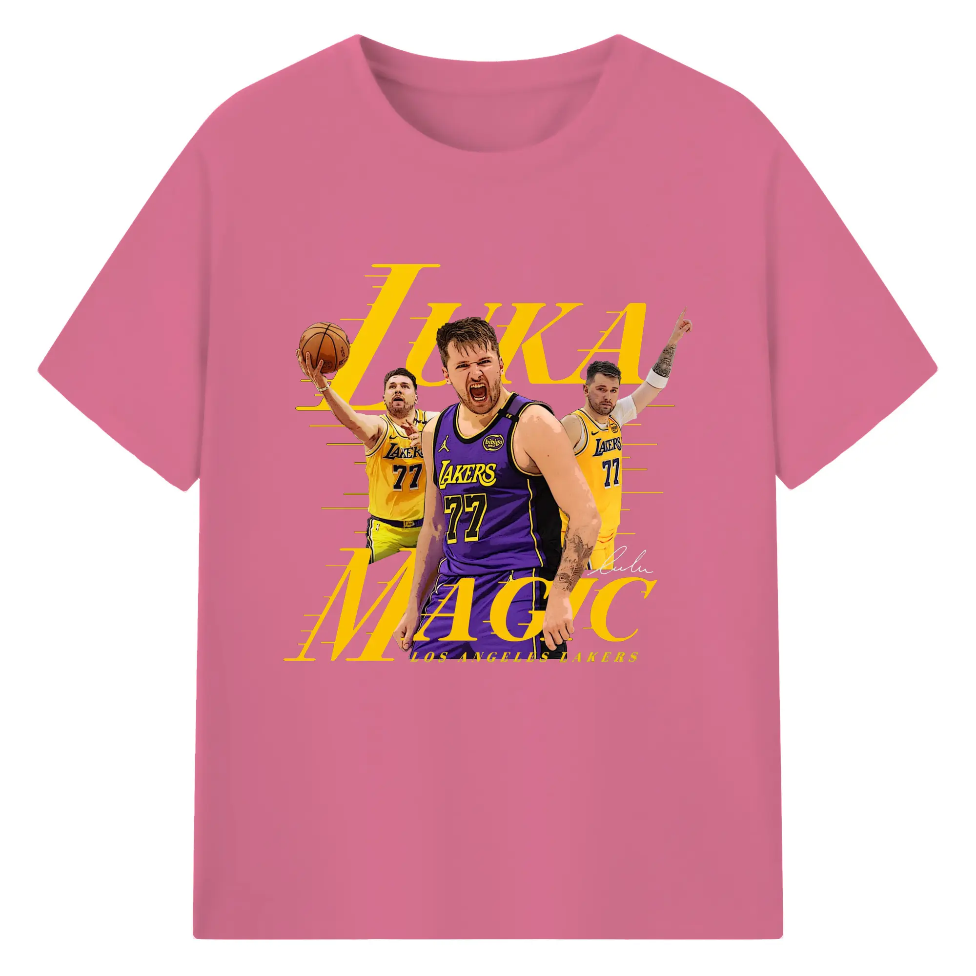 Luka Magic 77 Lakers Jersey Shirt - 180g Cotton T-Shirt With Front Heat Transfer Print – Soft, Lightweight, Fitted Design – Comfortable Casual Wear For Sports & Everyday Use