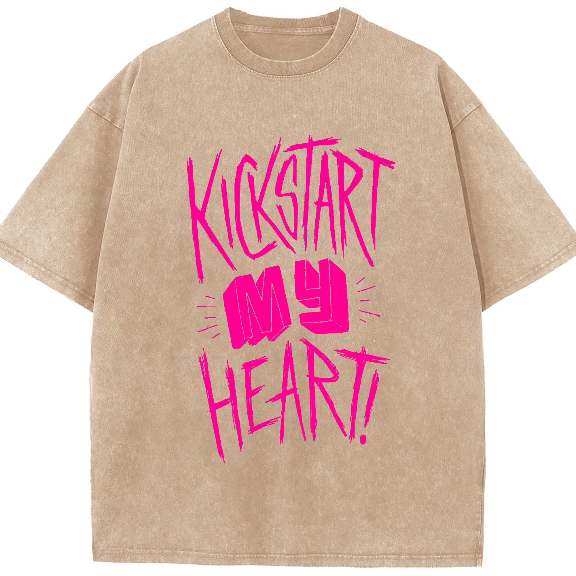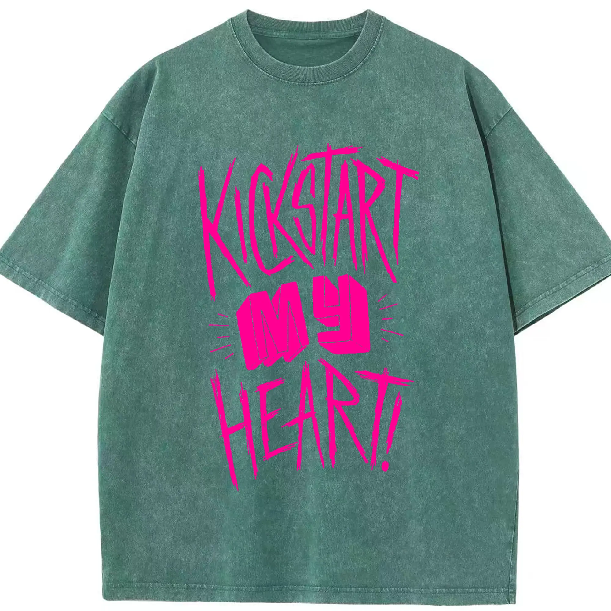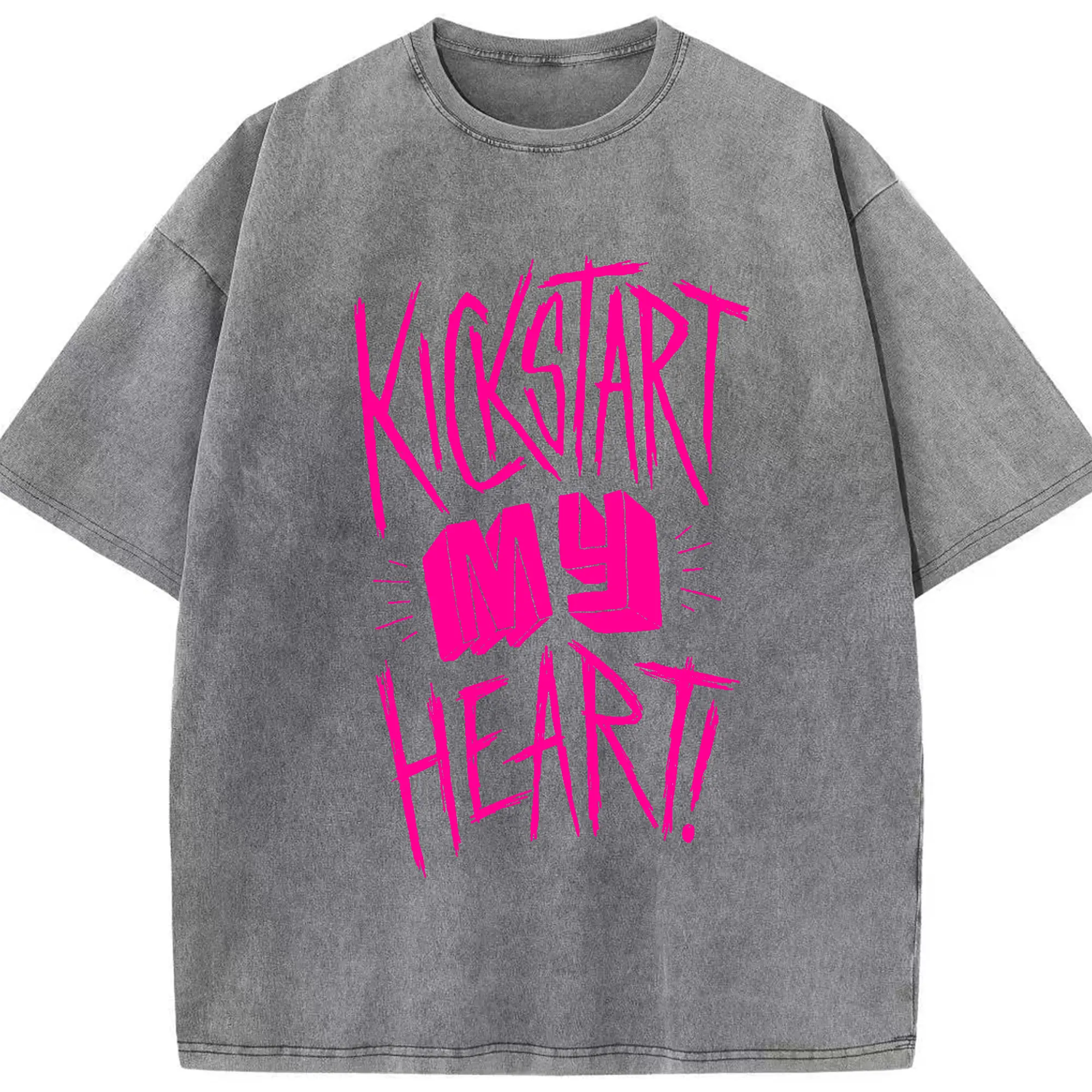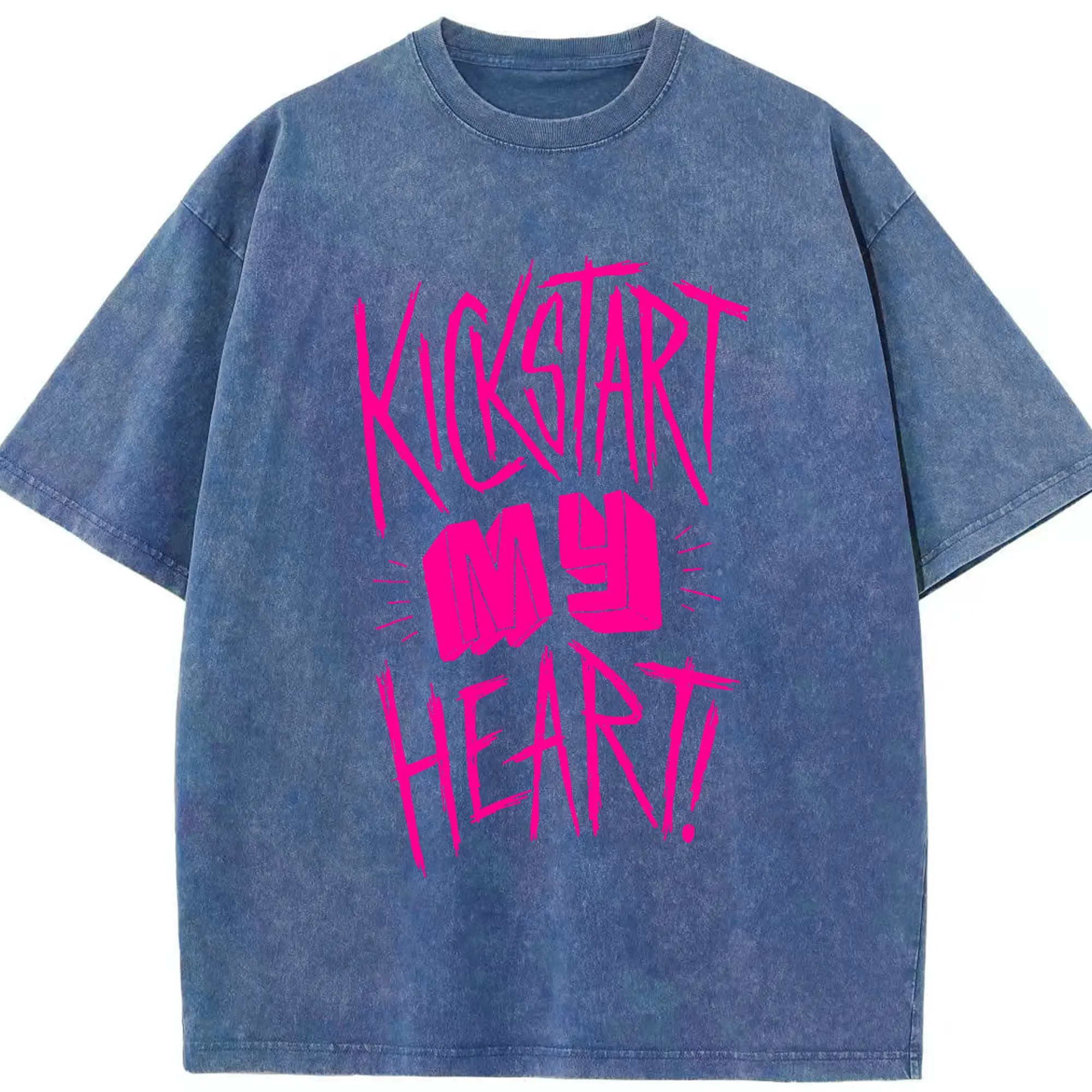 Mötley Crüe Kickstart My Heart Punk Rock DIY - Washed Vintage Look 230g Cotton Oversized T-Shirt With Front Heat Transfer Print – Soft, Lightweight, Stylish Fit – Comfortable Casual Wear For Sports & Everyday Use