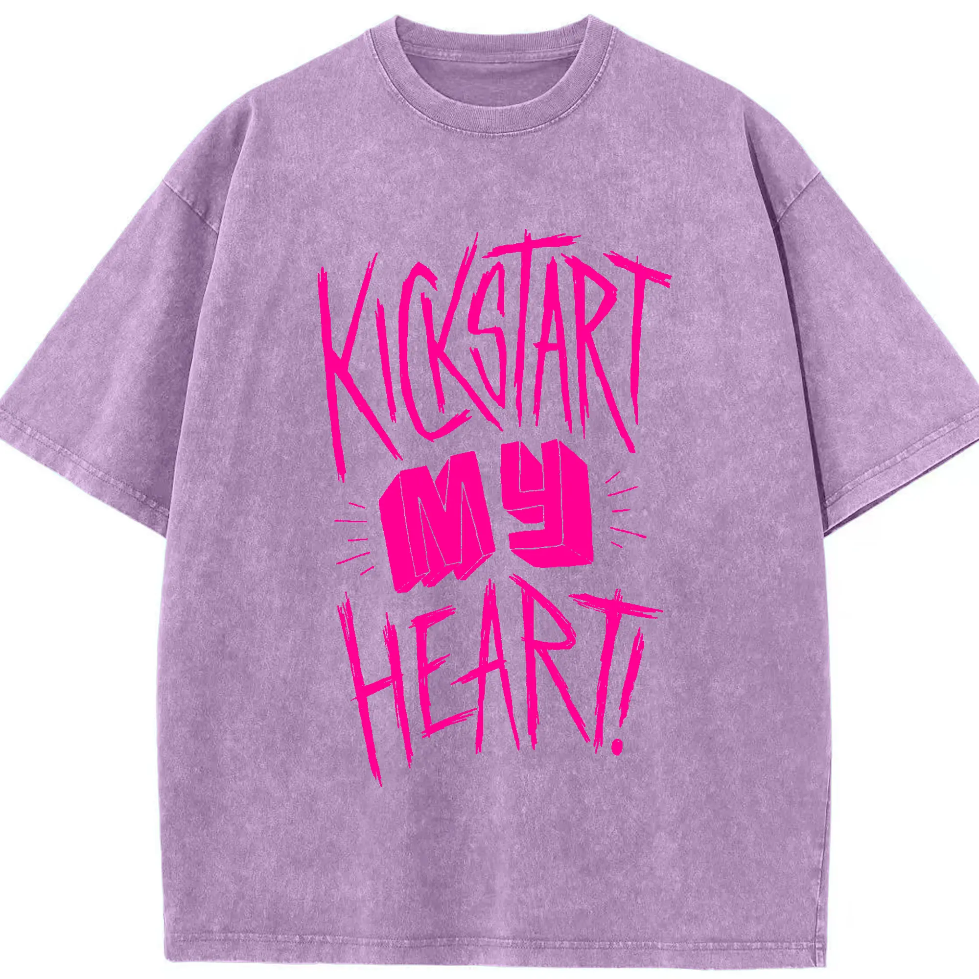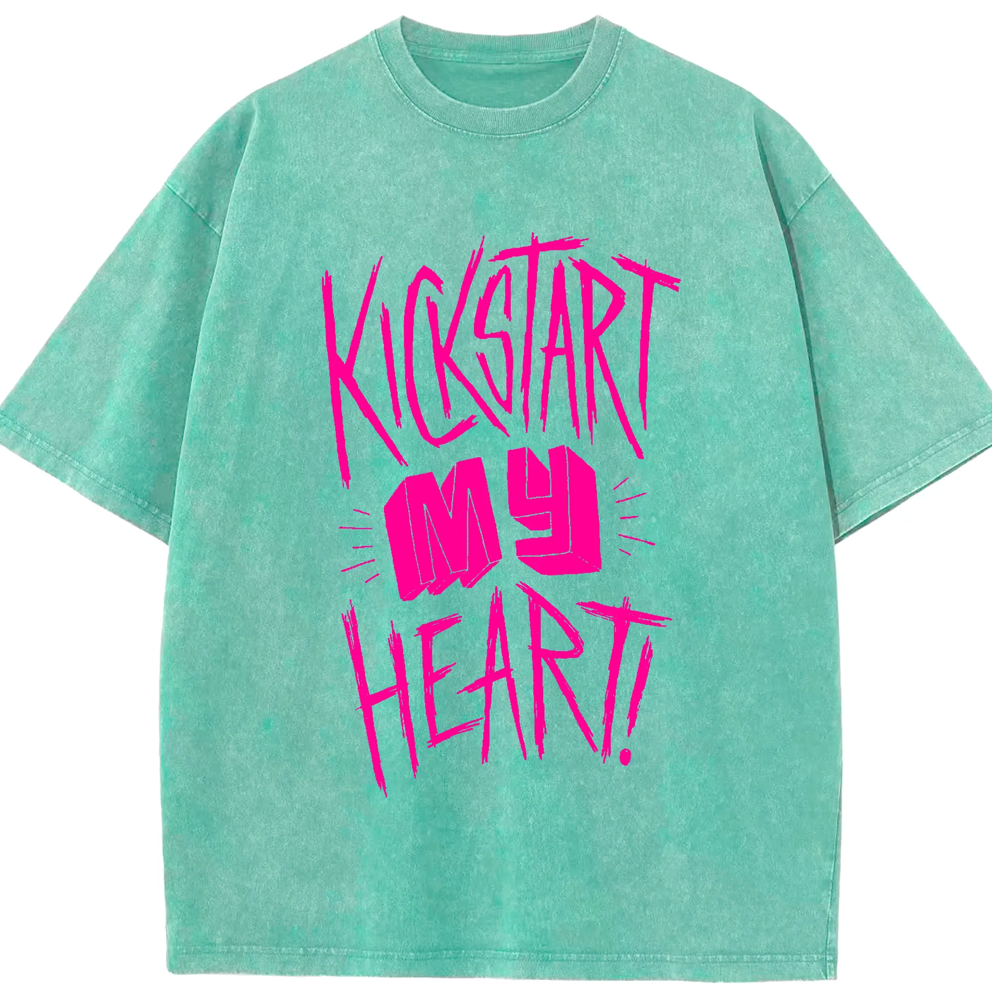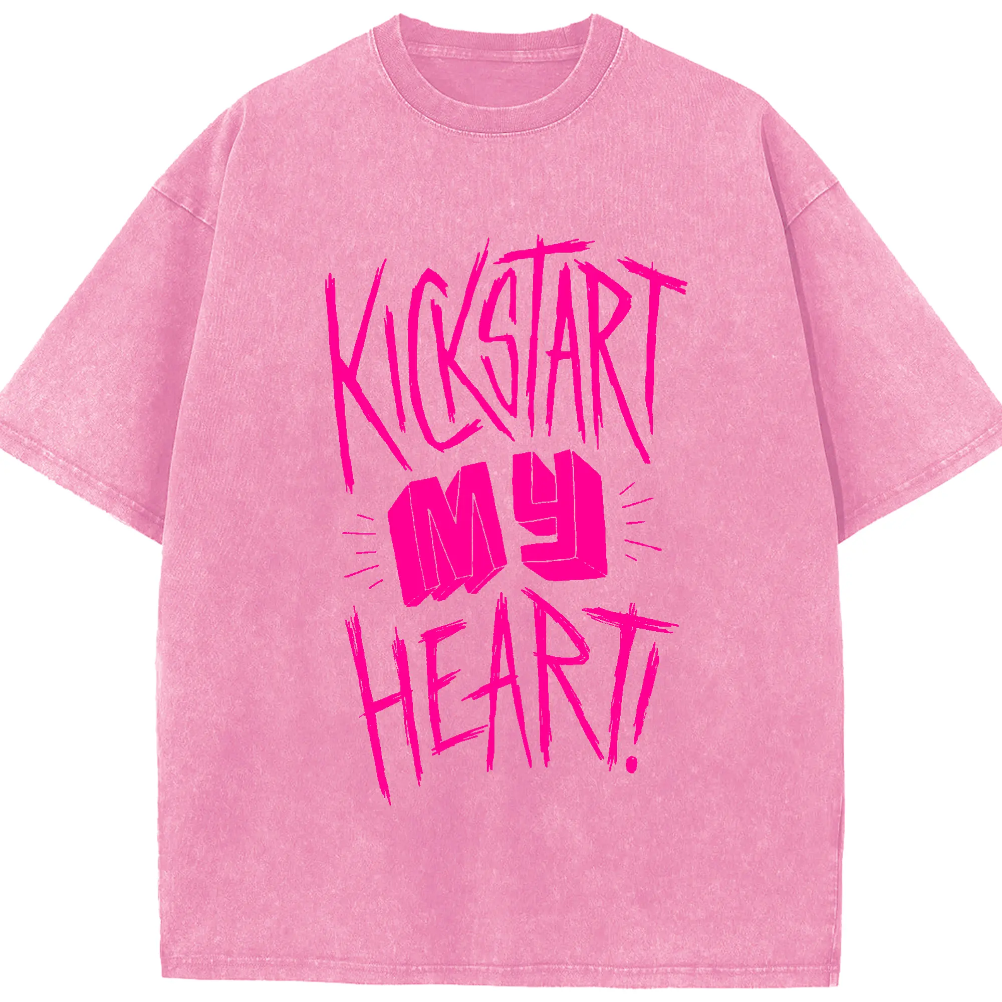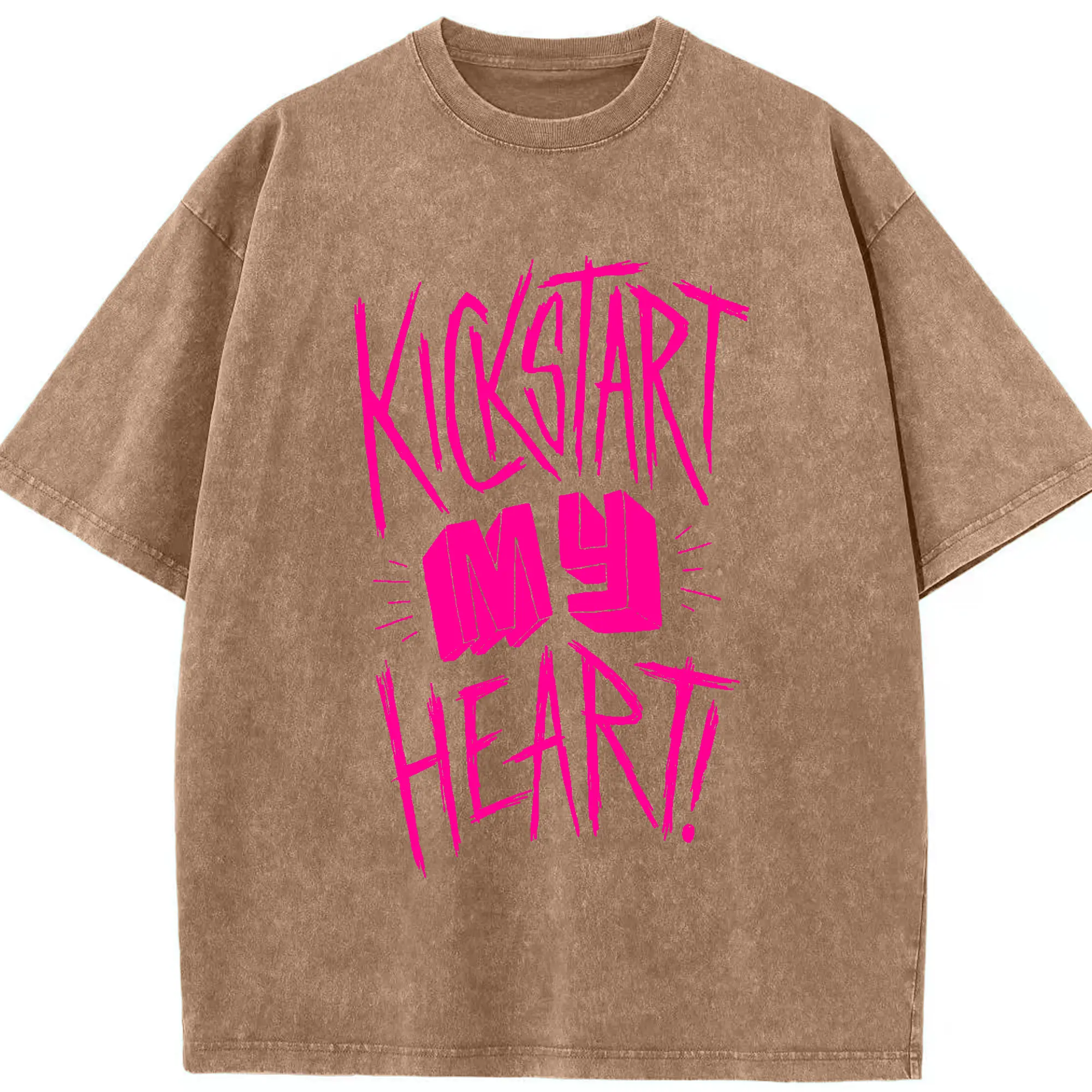 Mötley Crüe Kickstart My Heart Punk Rock DIY - Washed Vintage Look 230g Cotton Oversized T-Shirt With Front Heat Transfer Print – Soft, Lightweight, Stylish Fit – Comfortable Casual Wear For Sports & Everyday Use