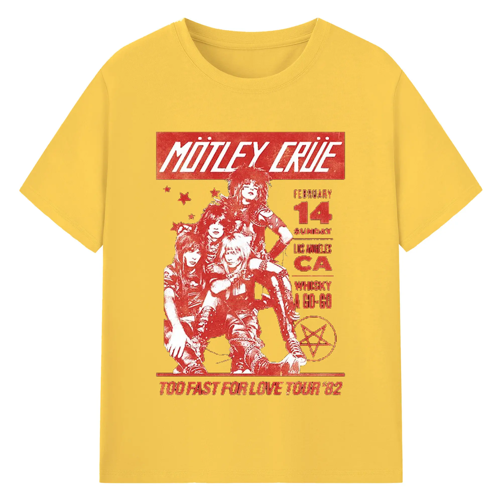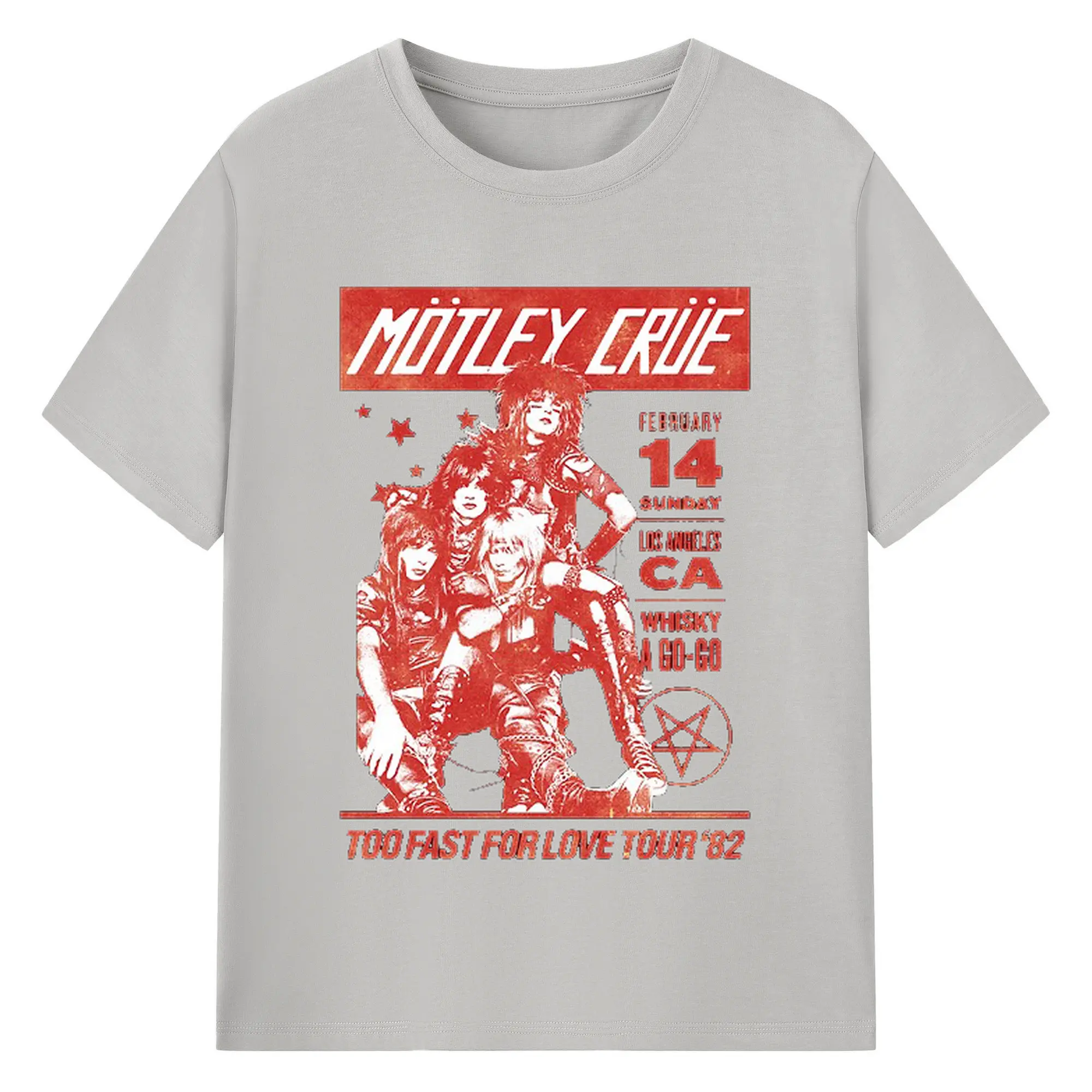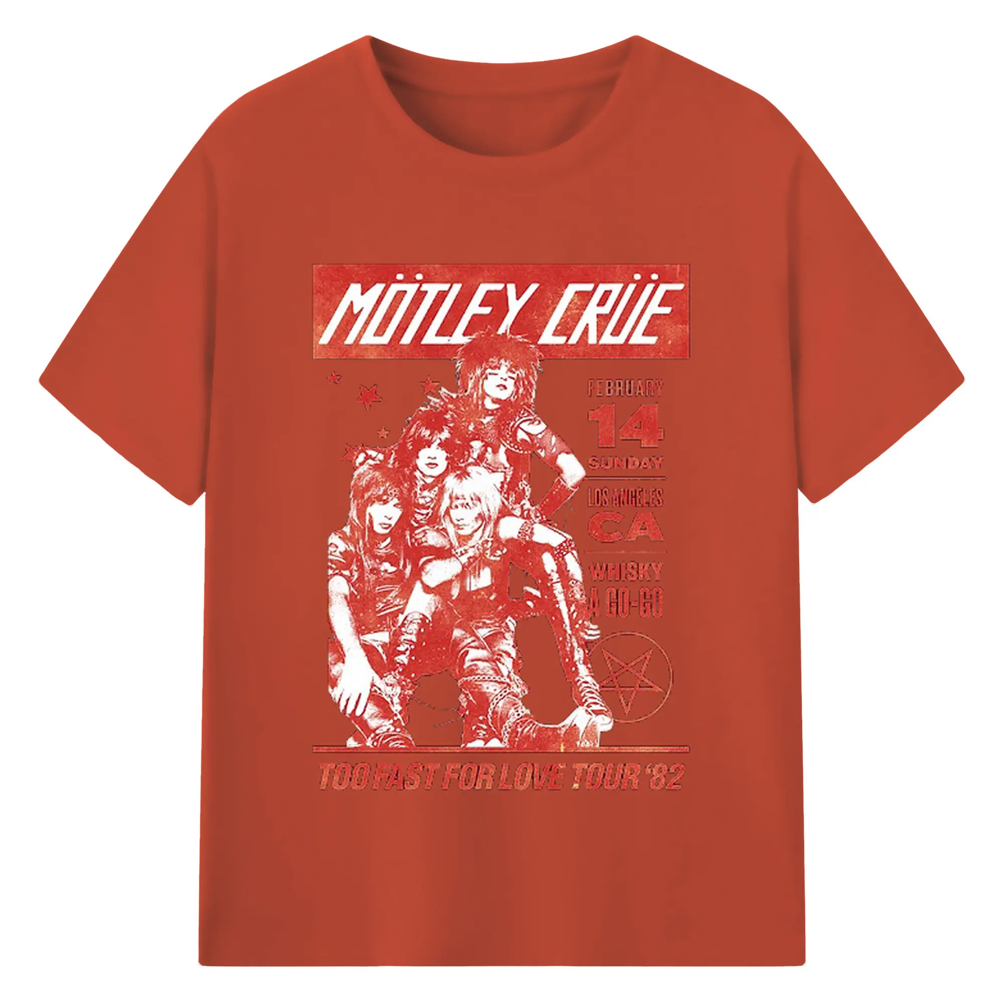 Mötley Crüe “TOO FAST FOR LOVE TOUR '82” - 180g Cotton T-Shirt With Front Heat Transfer Print – Soft, Lightweight, Fitted Design – Comfortable Casual Wear For Sports & Everyday Use