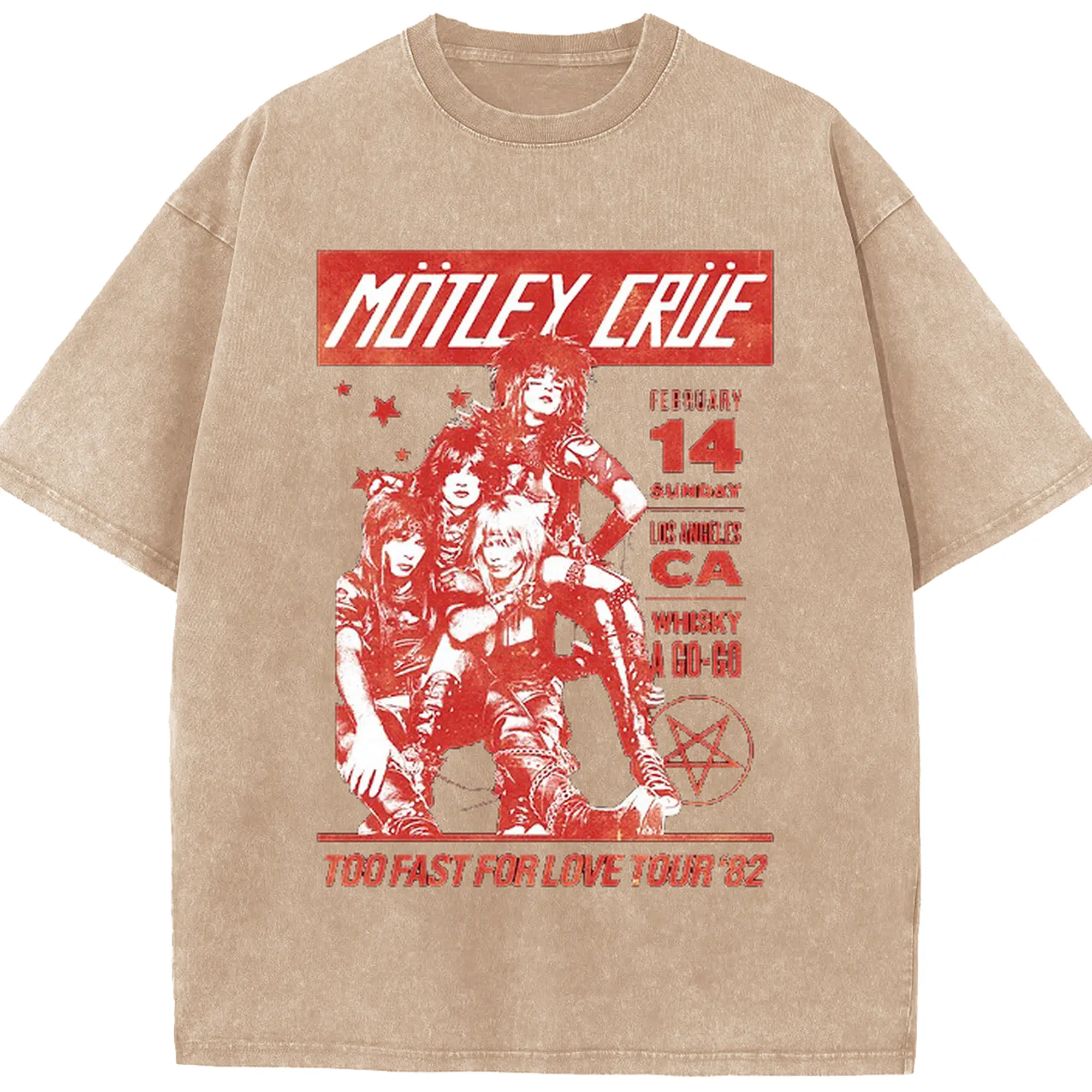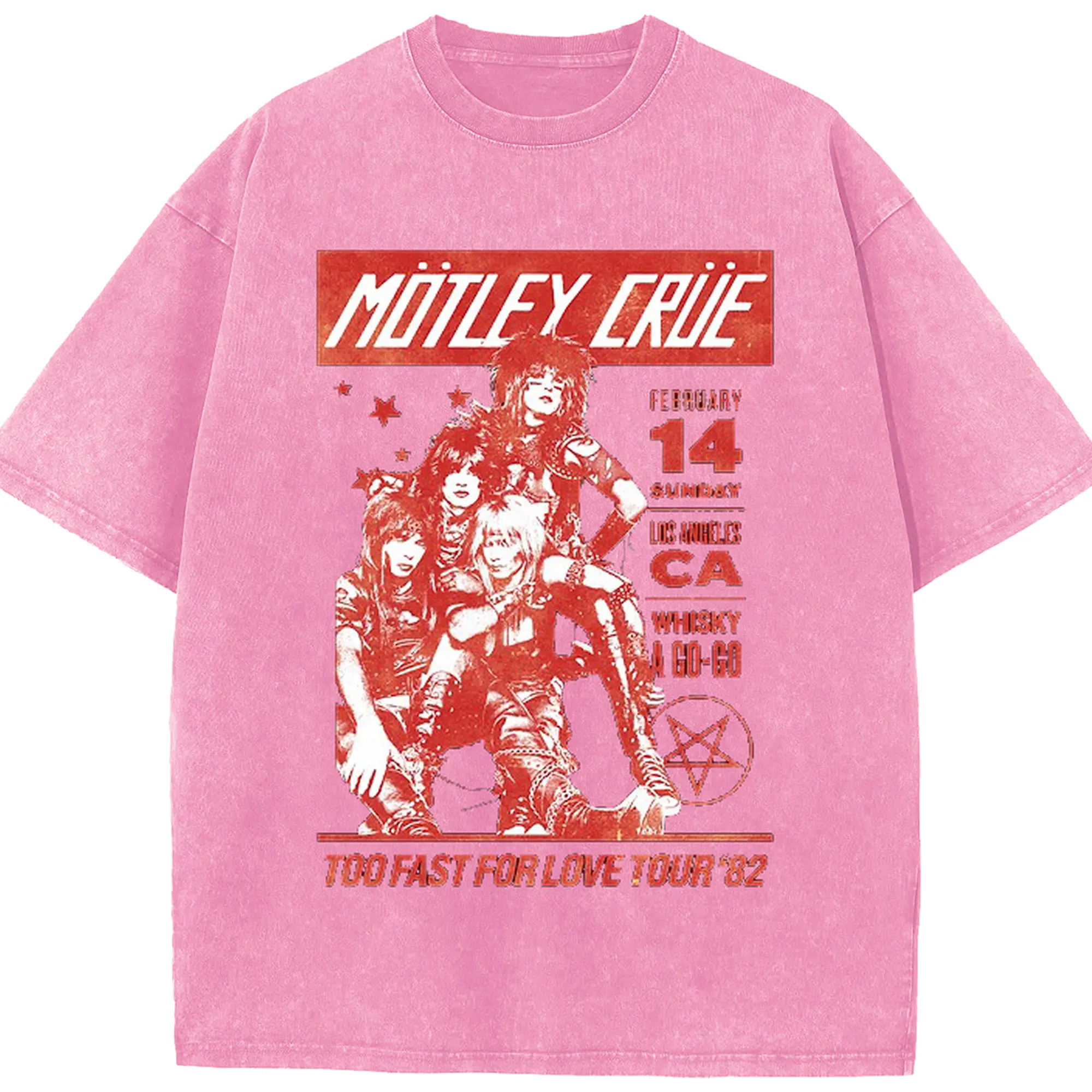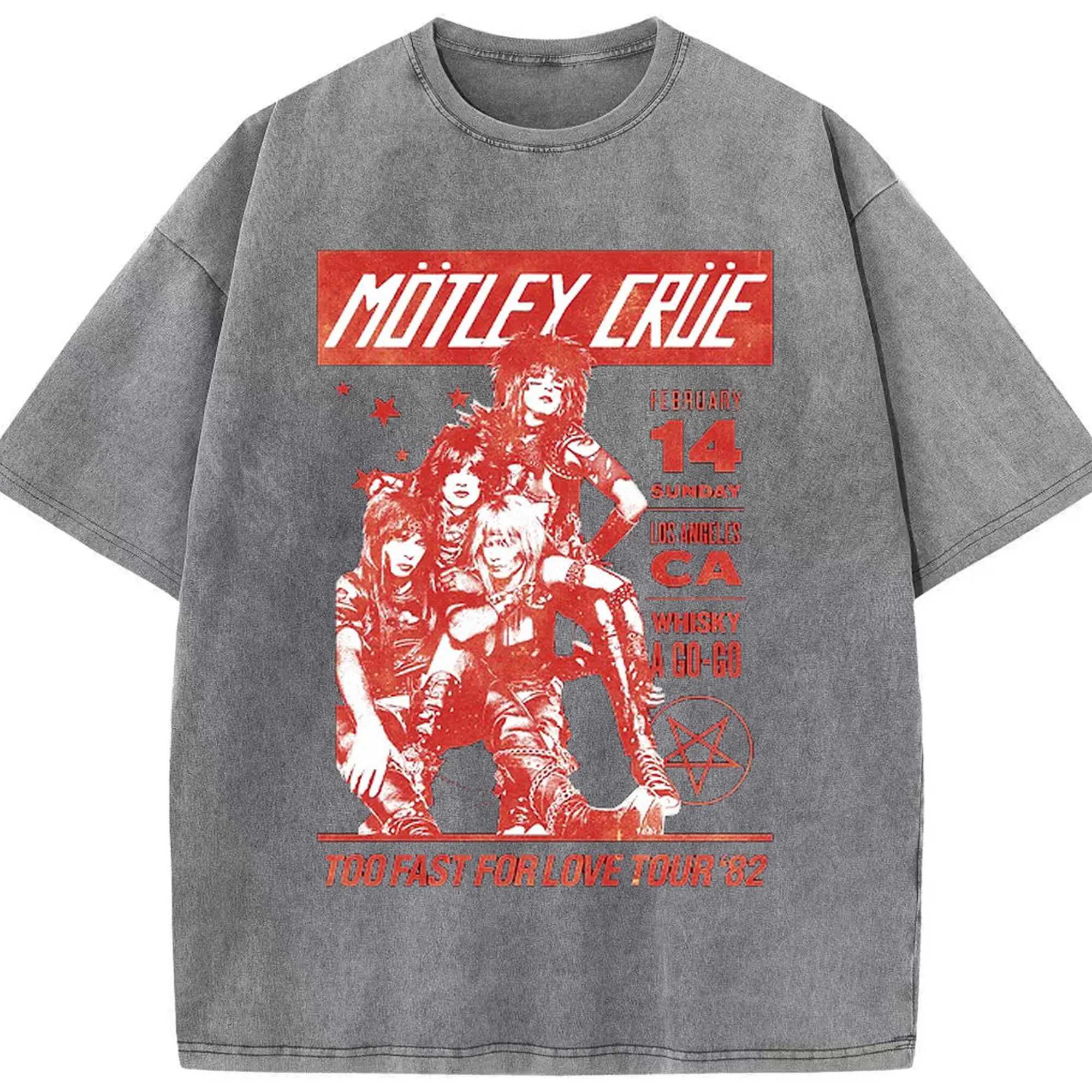 Mötley Crüe “TOO FAST FOR LOVE TOUR '82” - Washed Vintage Look 230g Cotton Oversized T-Shirt With Front Heat Transfer Print – Soft, Lightweight, Stylish Fit – Comfortable Casual Wear For Sports & Everyday Use