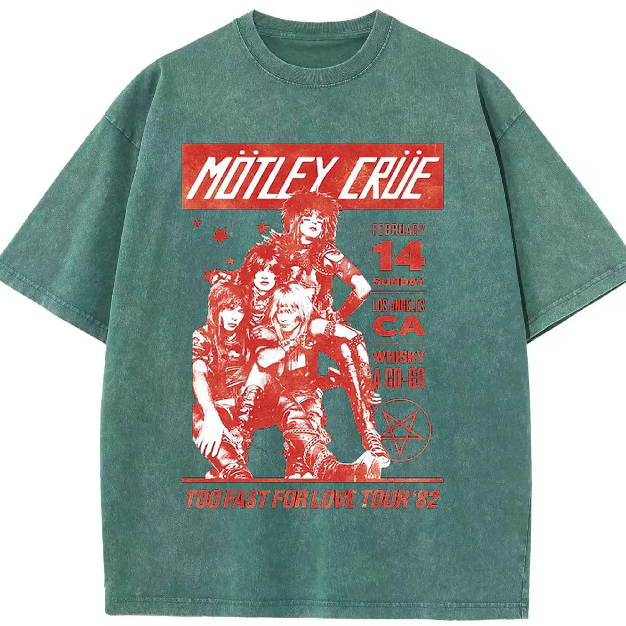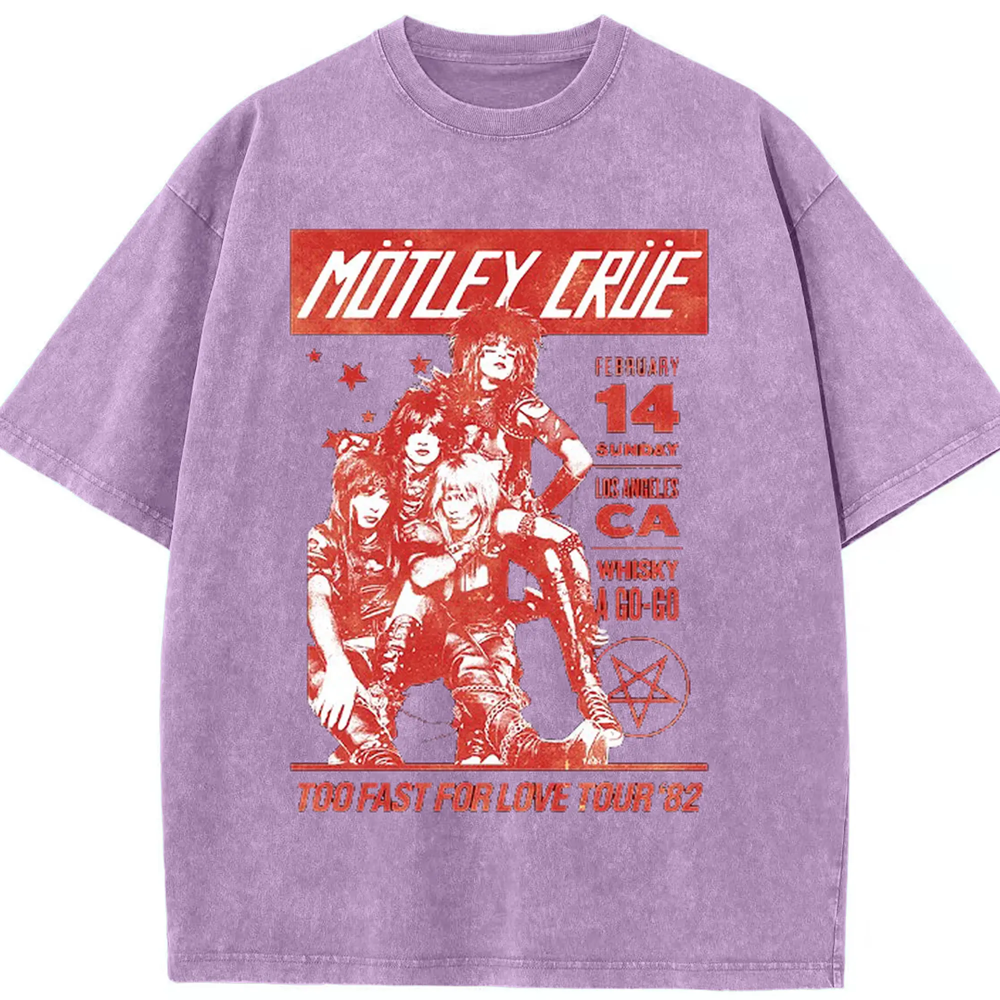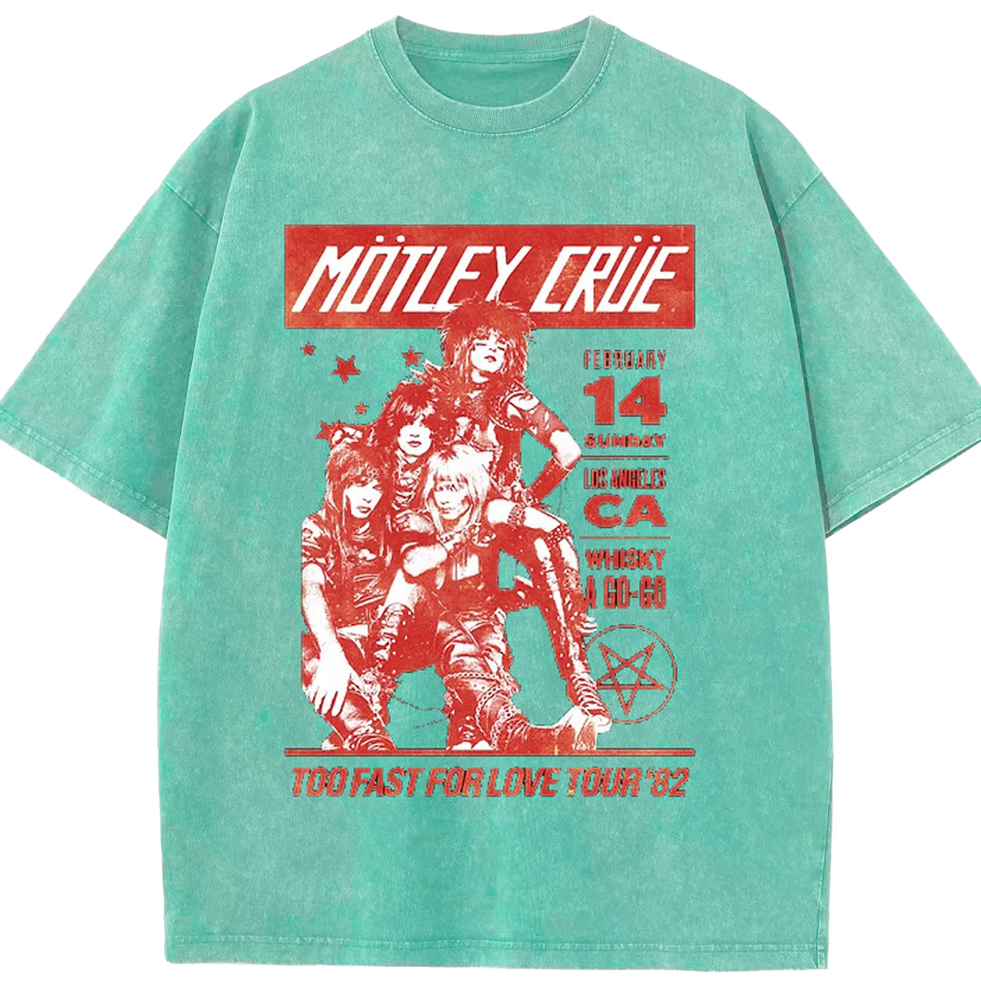 Mötley Crüe “TOO FAST FOR LOVE TOUR '82” - Washed Vintage Look 230g Cotton Oversized T-Shirt With Front Heat Transfer Print – Soft, Lightweight, Stylish Fit – Comfortable Casual Wear For Sports & Everyday Use