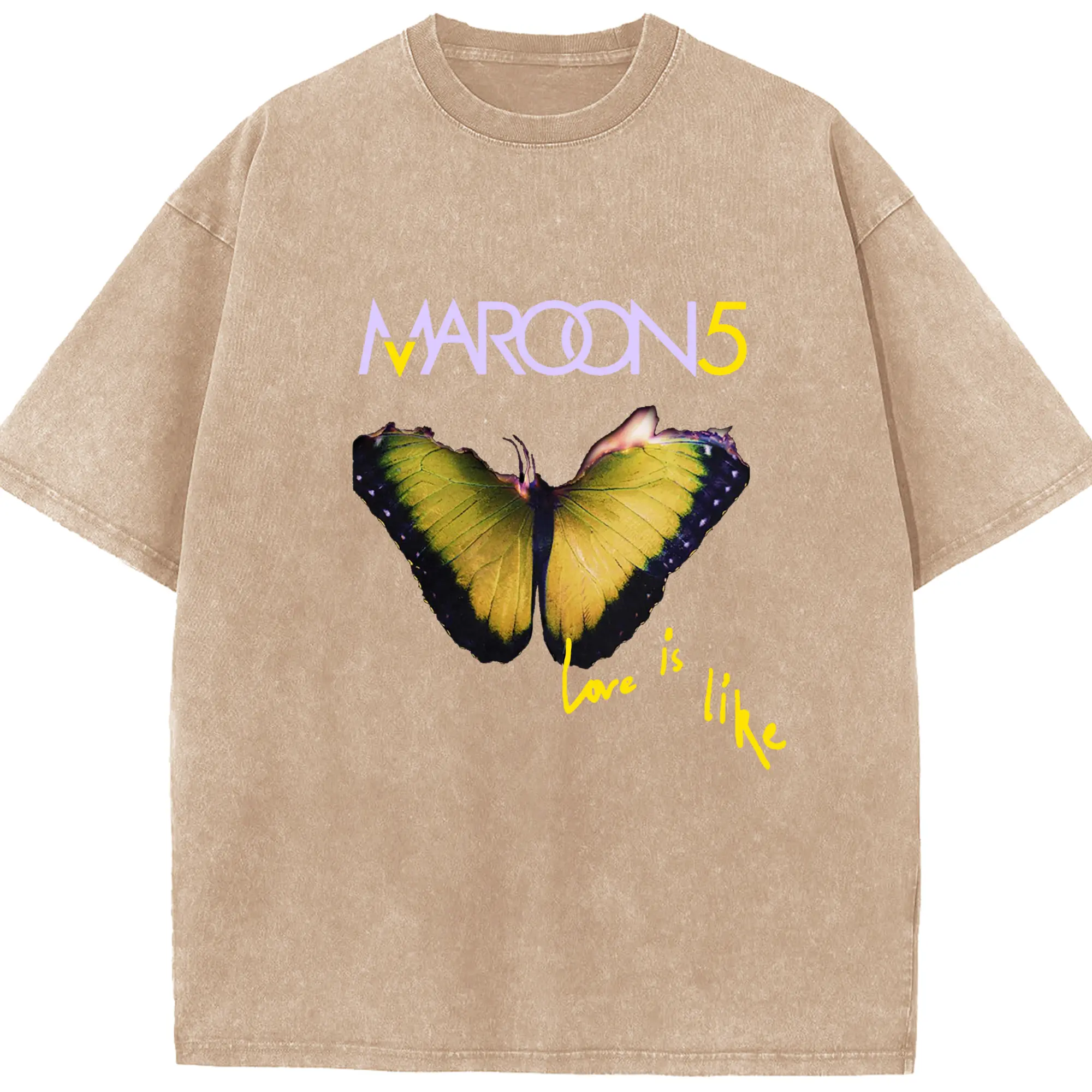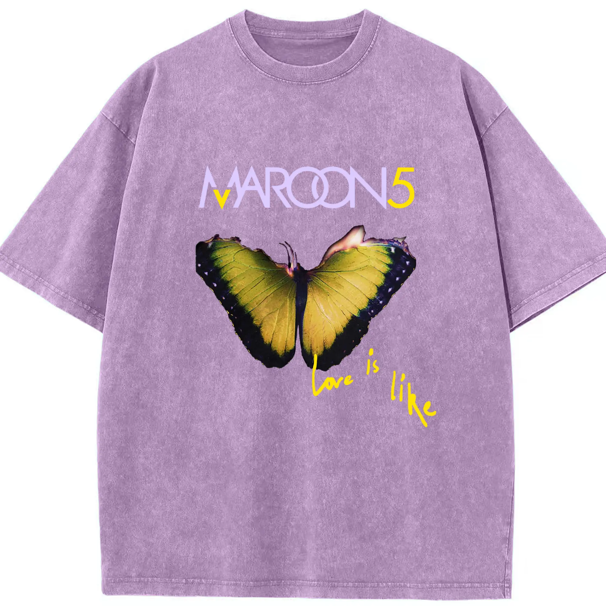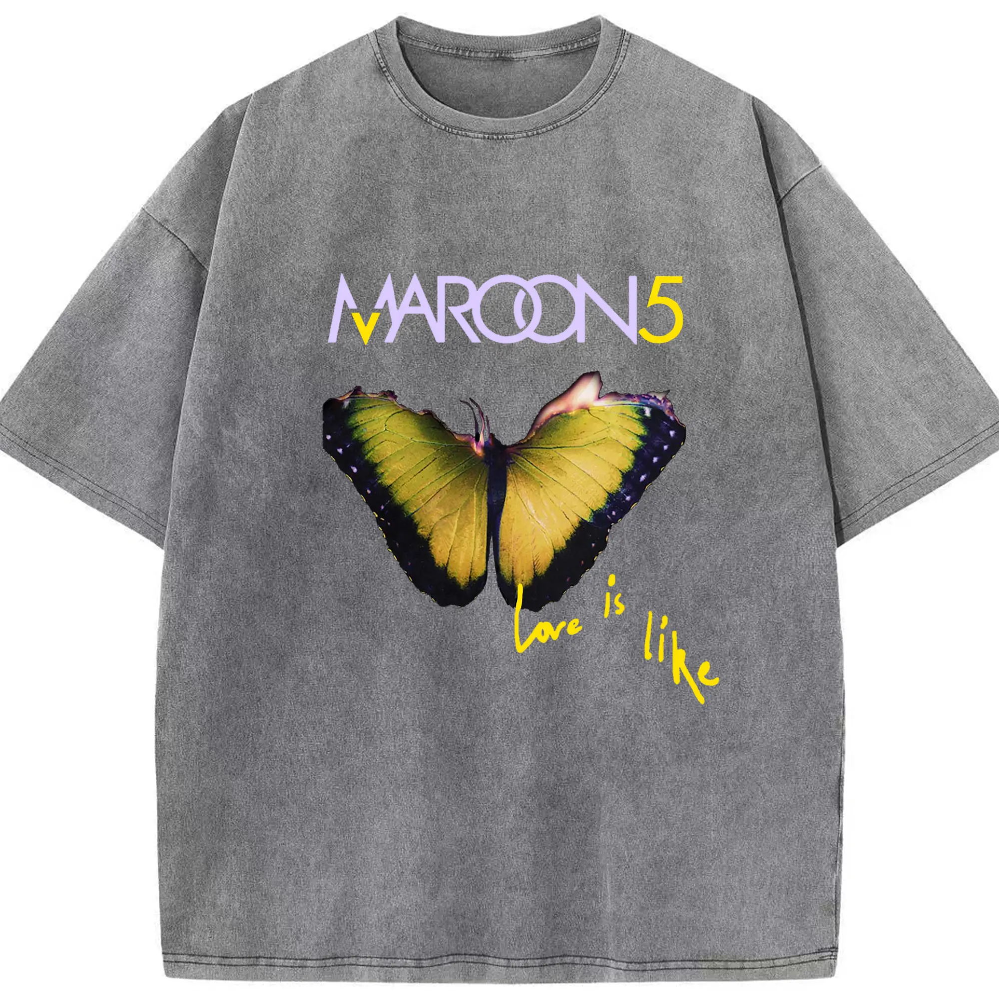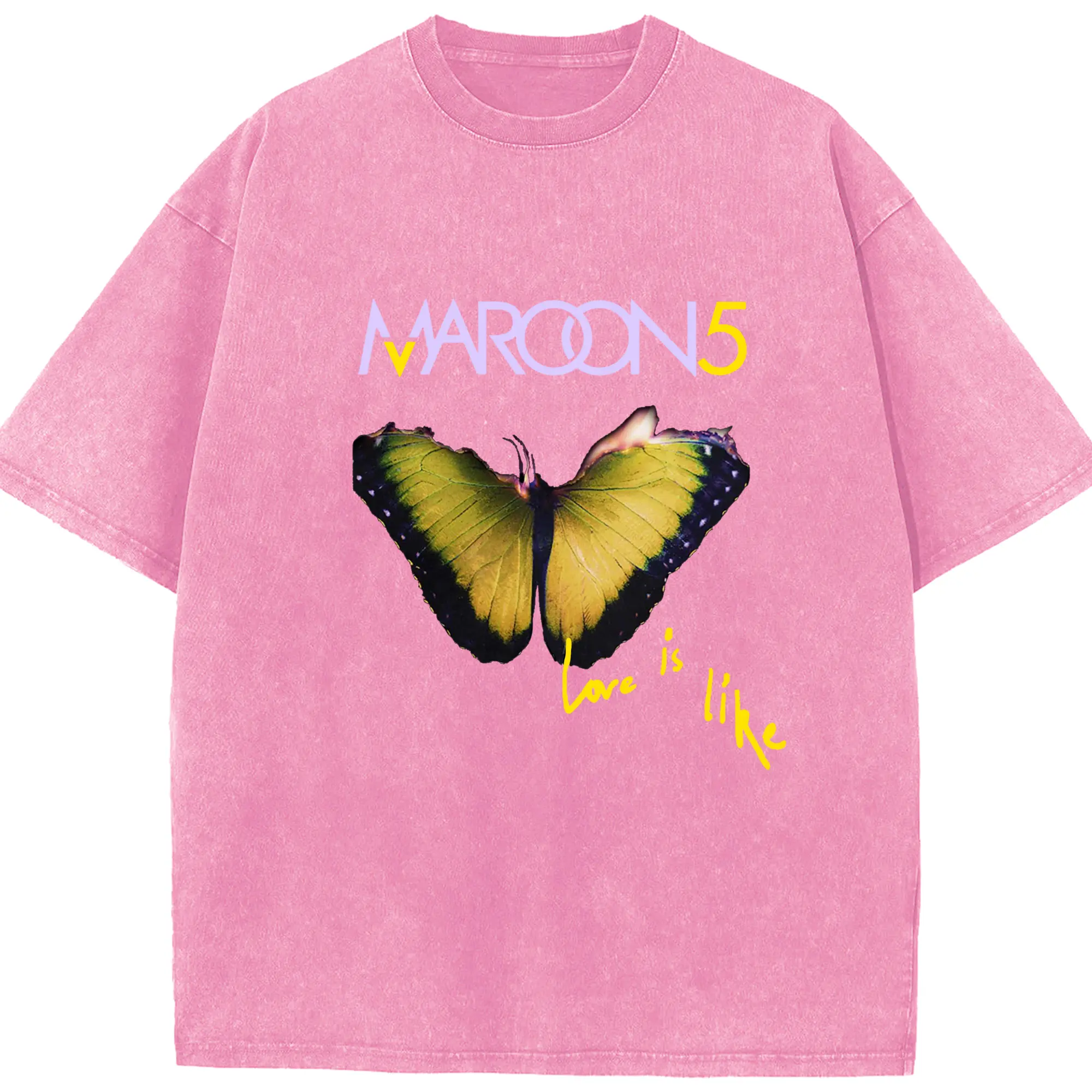 Maroon 5 Romantic Butterfly DIY - Washed Vintage Look 230g Cotton Oversized T-Shirt With Front Heat Transfer Print – Soft, Lightweight, Stylish Fit – Comfortable Casual Wear For Sports & Everyday Use