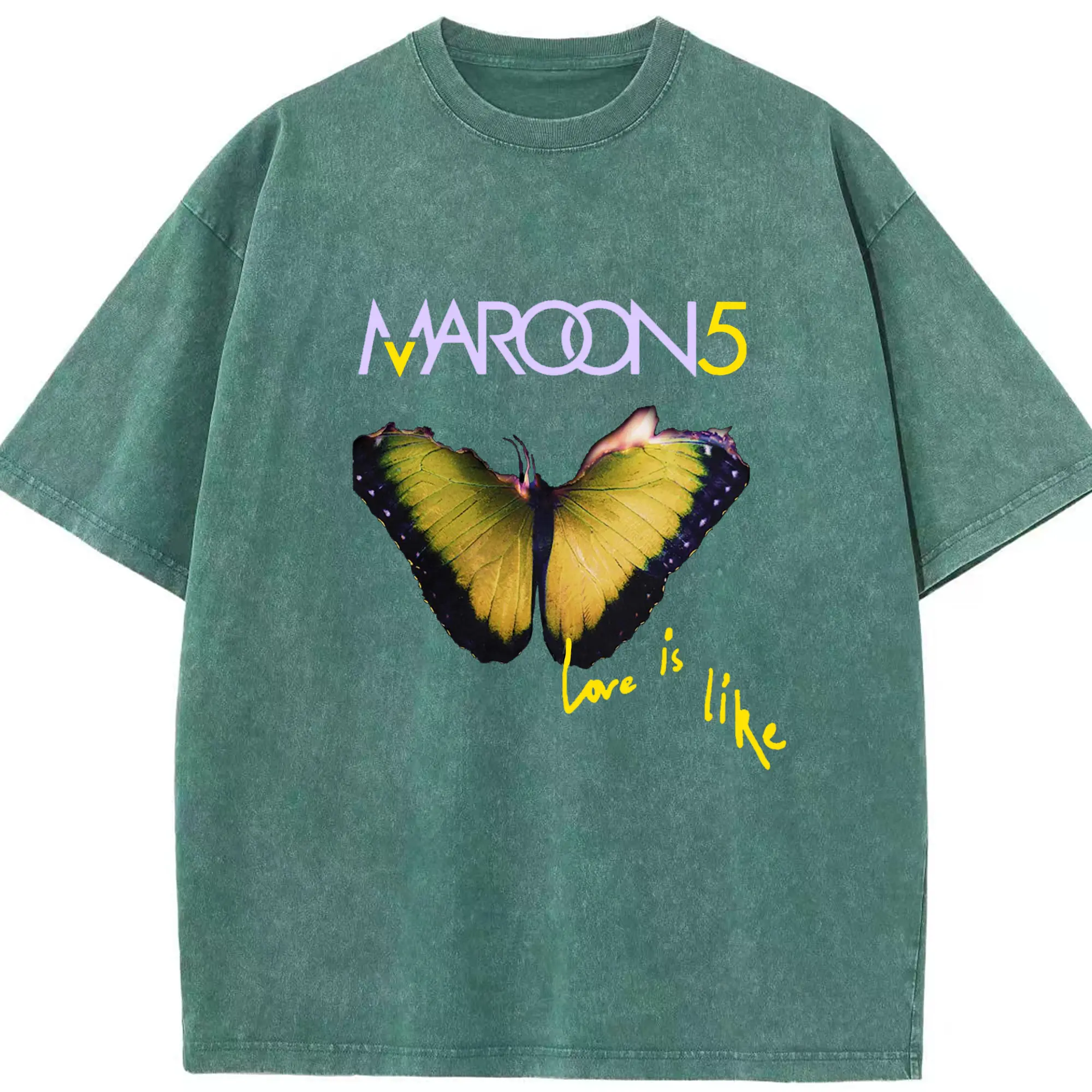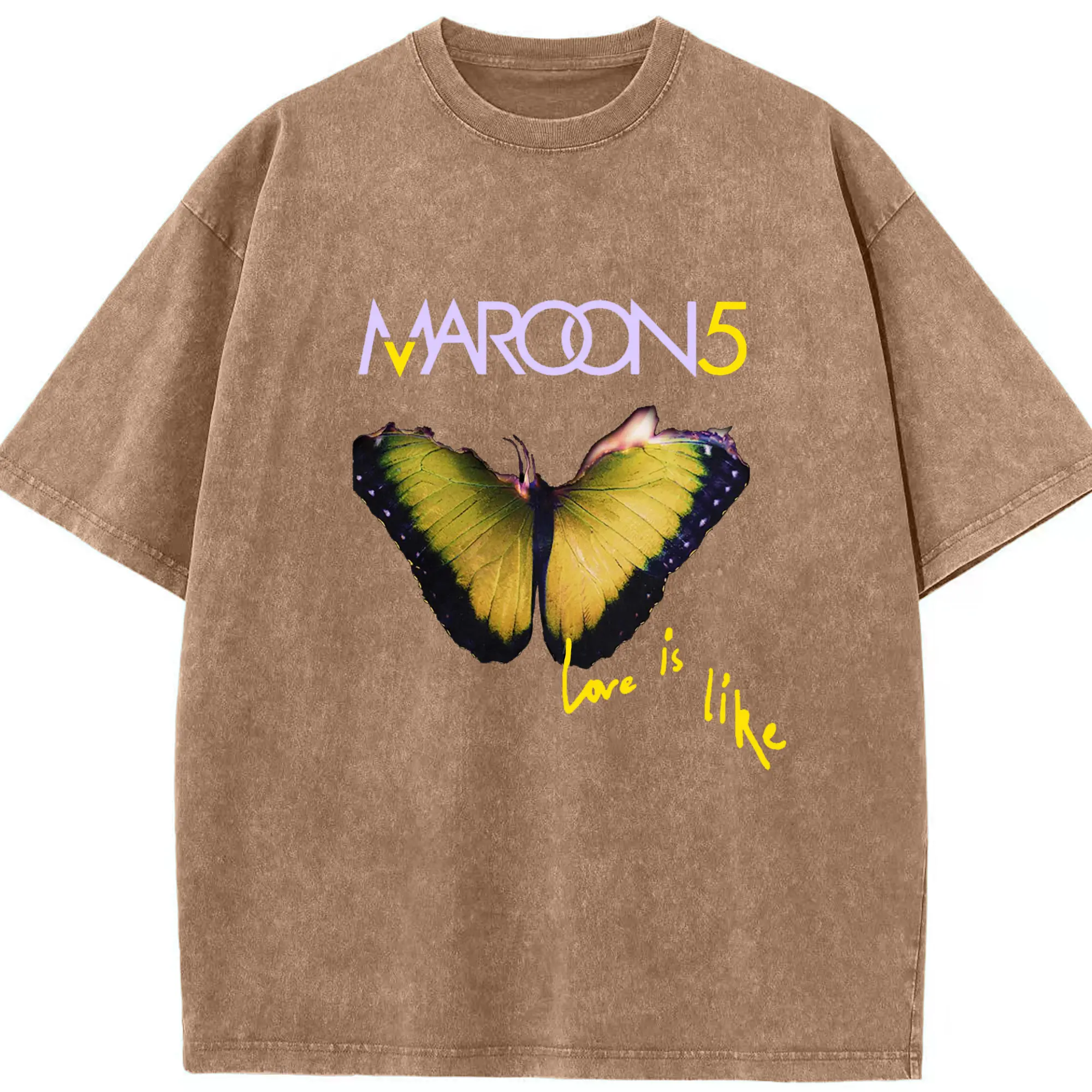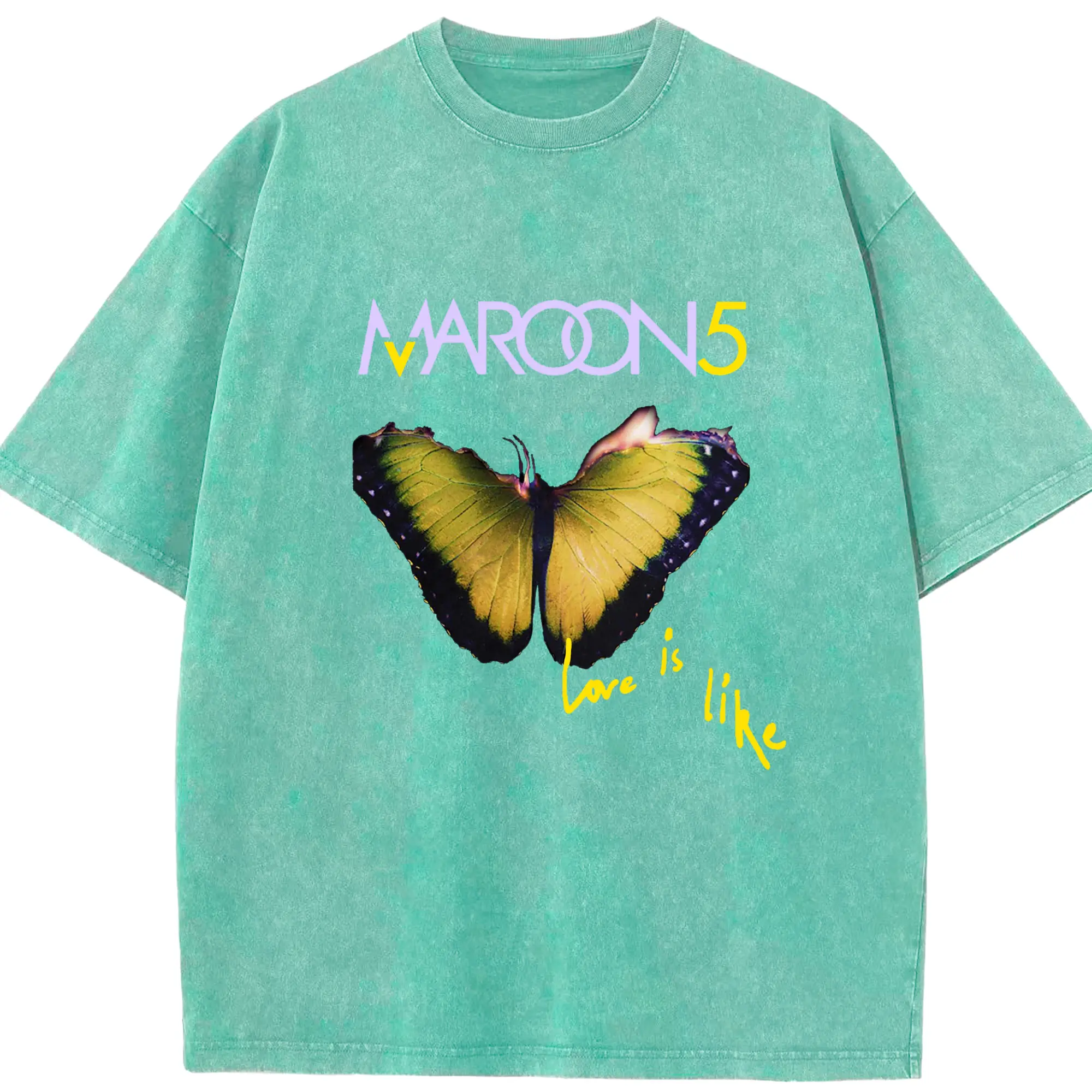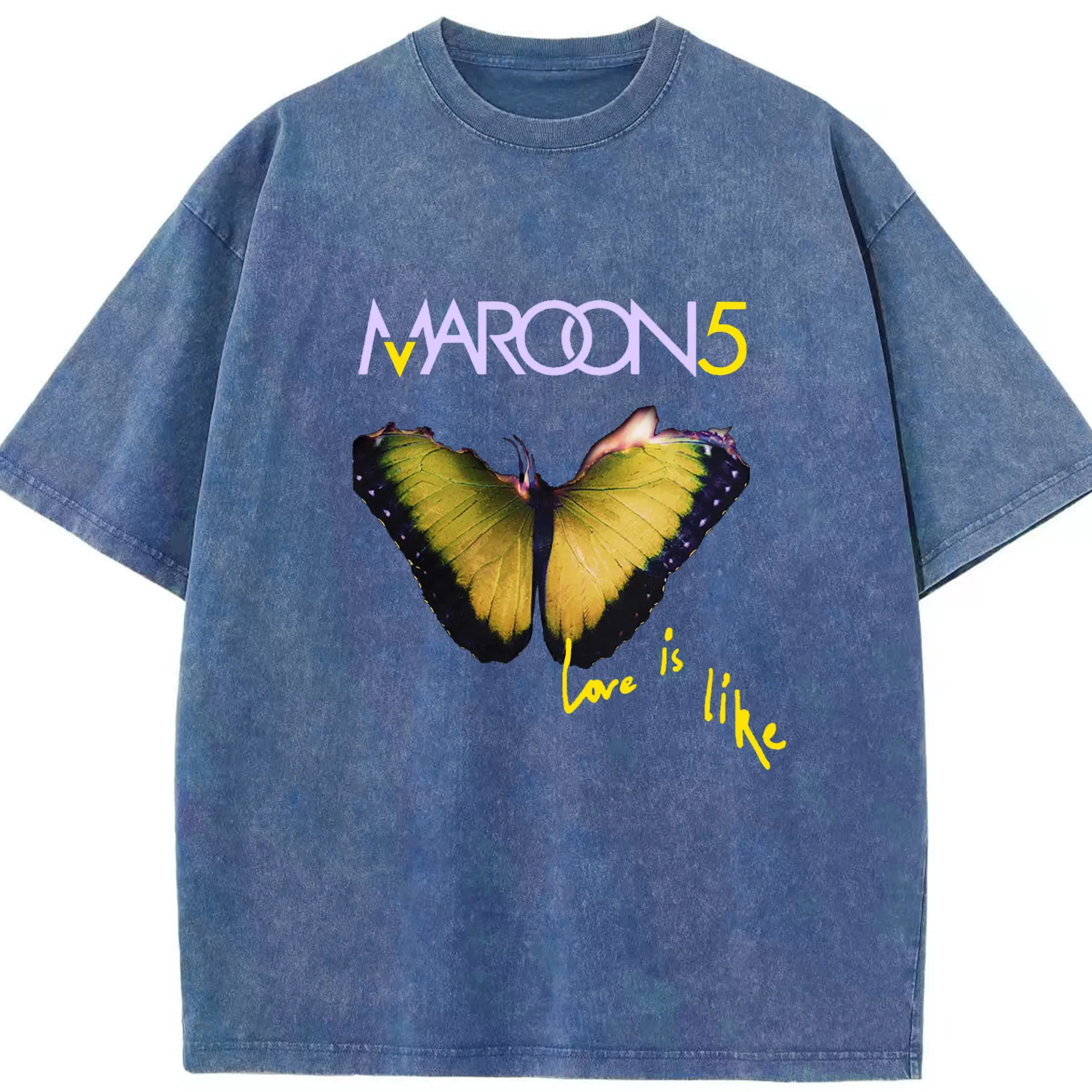 Maroon 5 Romantic Butterfly DIY - Washed Vintage Look 230g Cotton Oversized T-Shirt With Front Heat Transfer Print – Soft, Lightweight, Stylish Fit – Comfortable Casual Wear For Sports & Everyday Use