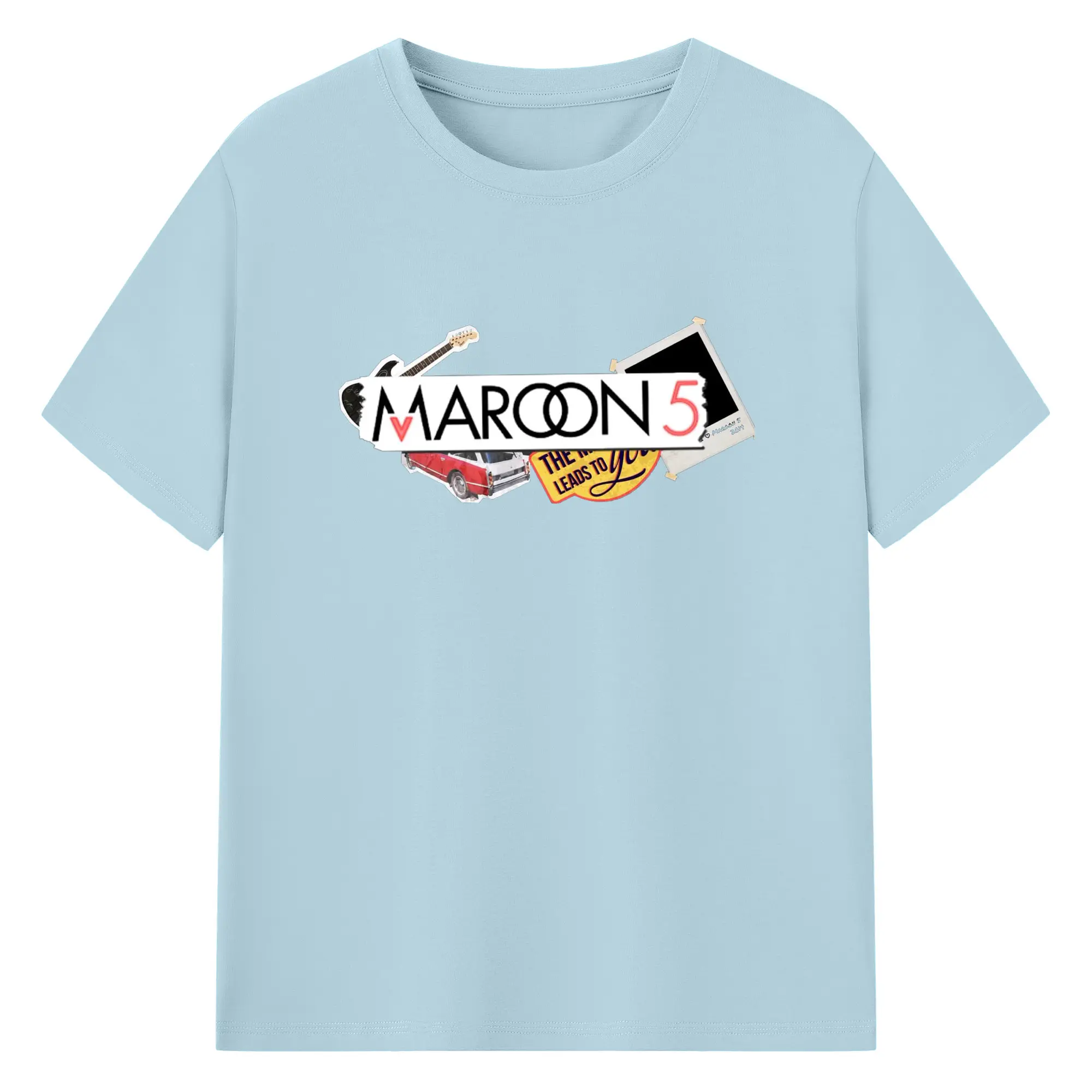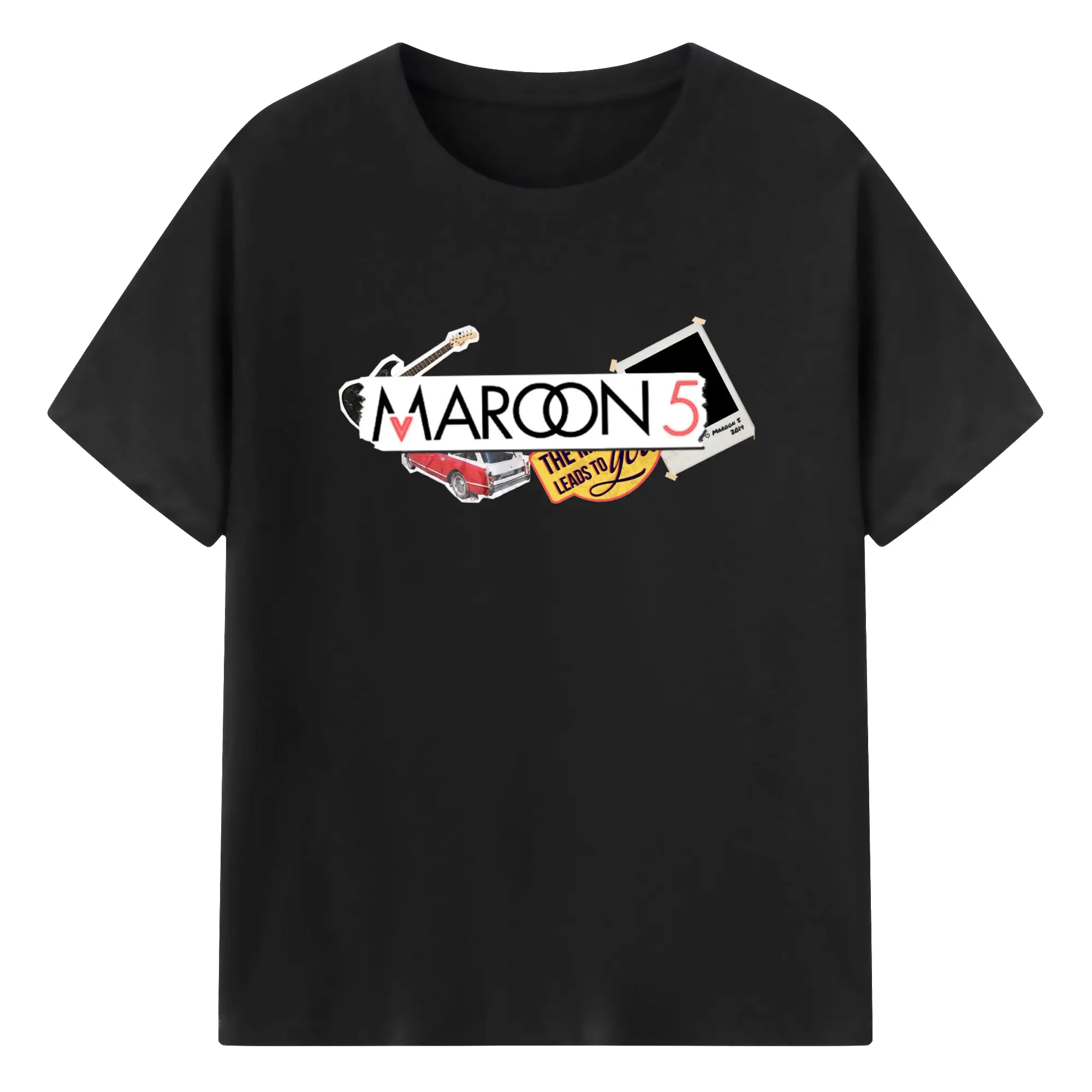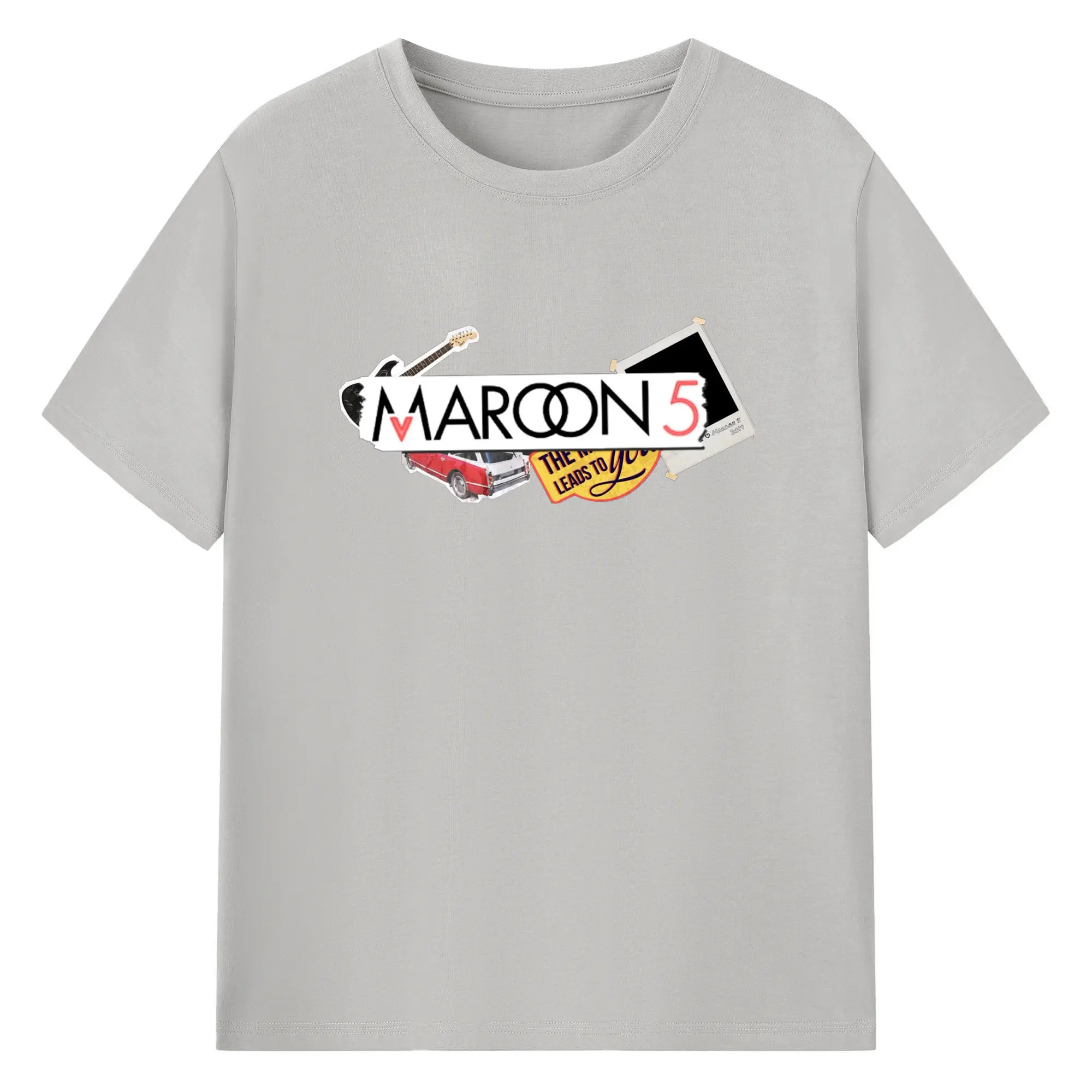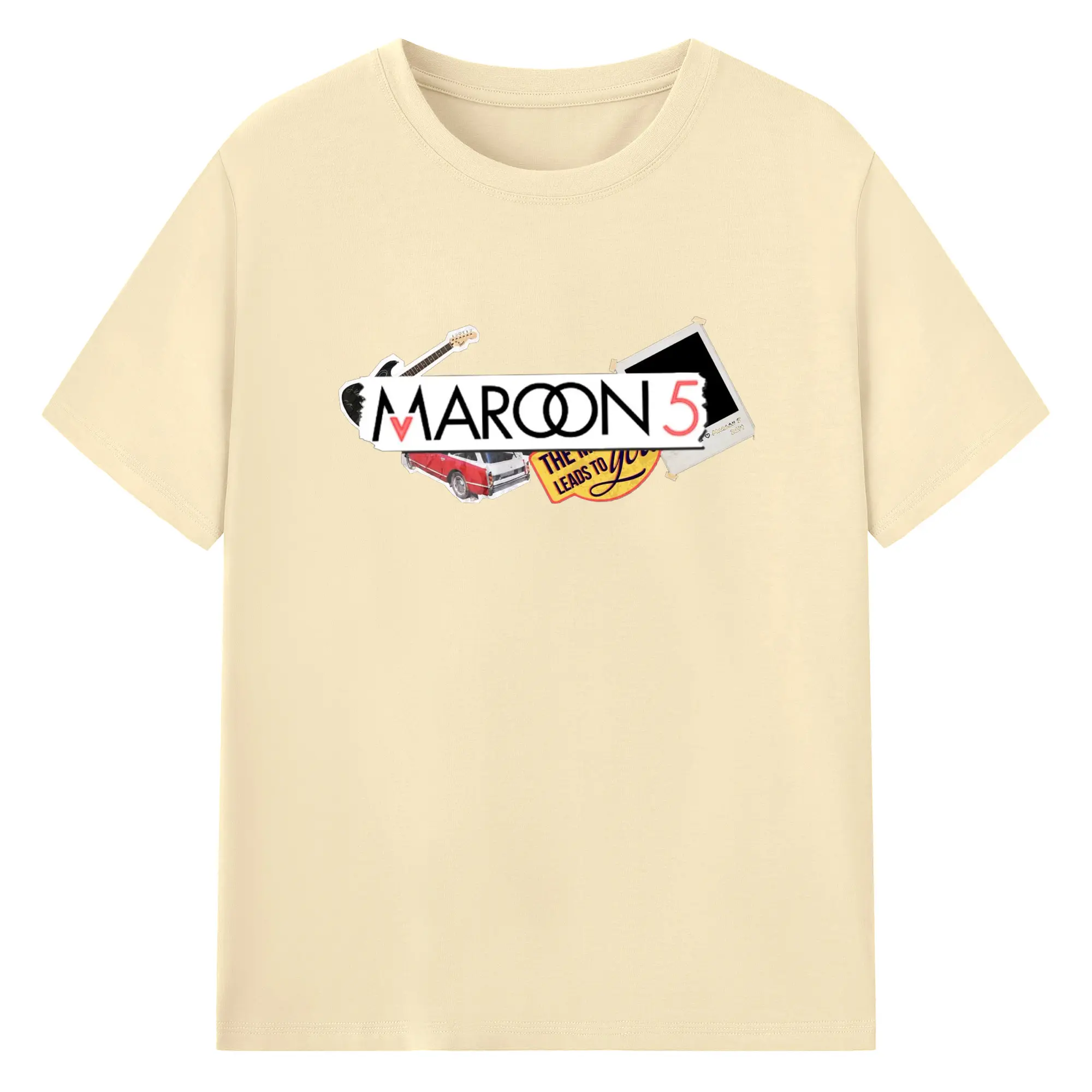 Maroon 5 Vintage Collage Pop Rock DIY - 180g Cotton T-Shirt With Front Heat Transfer Print – Soft, Lightweight, Fitted Design – Comfortable Casual Wear For Sports & Everyday Use