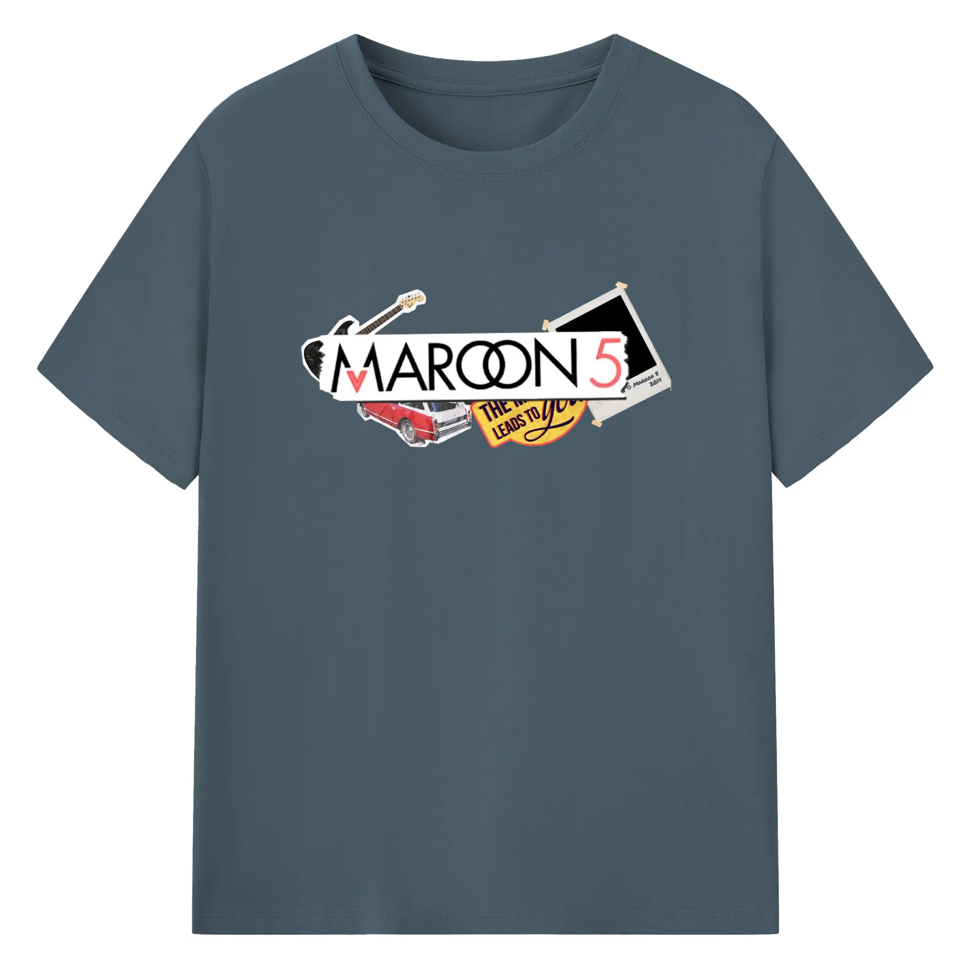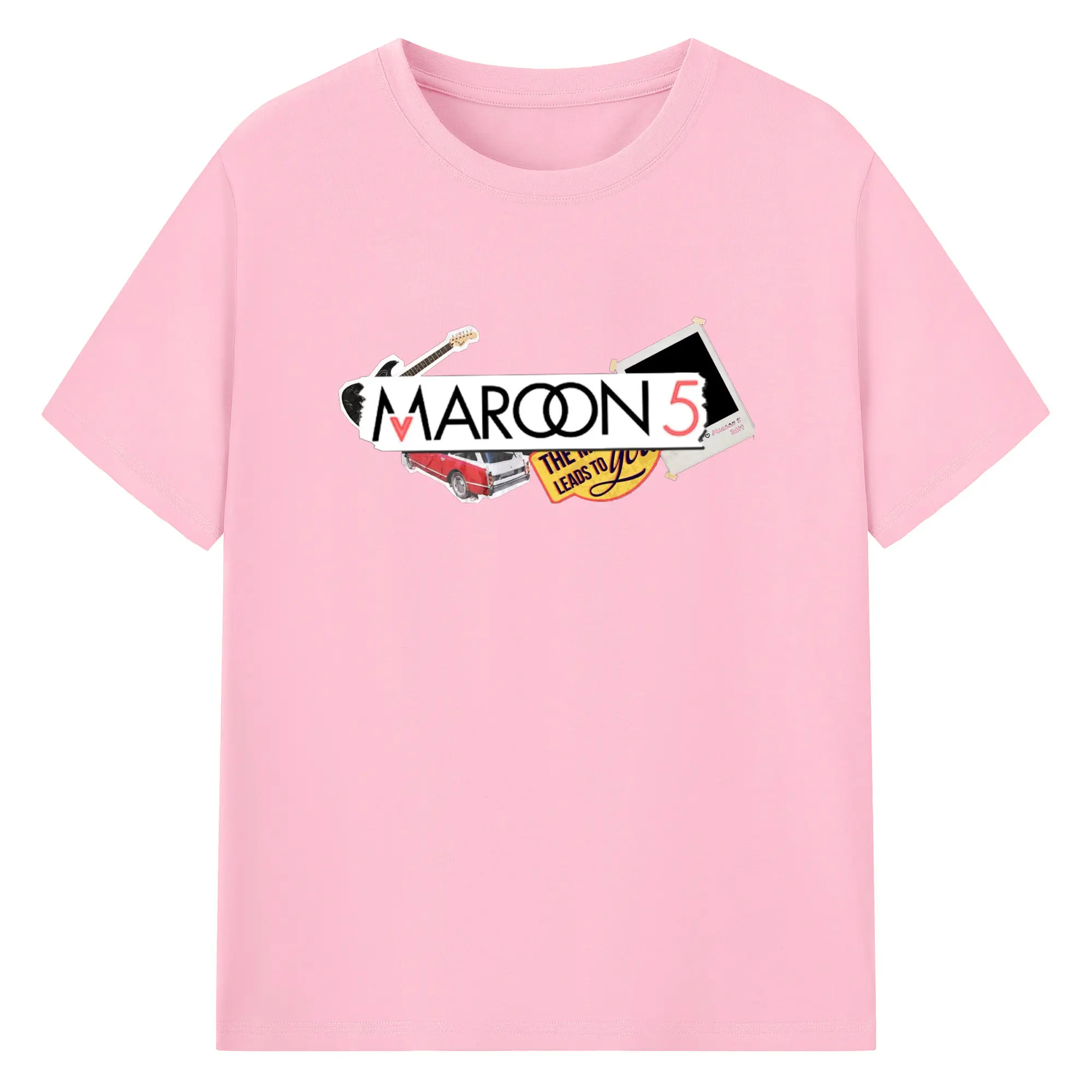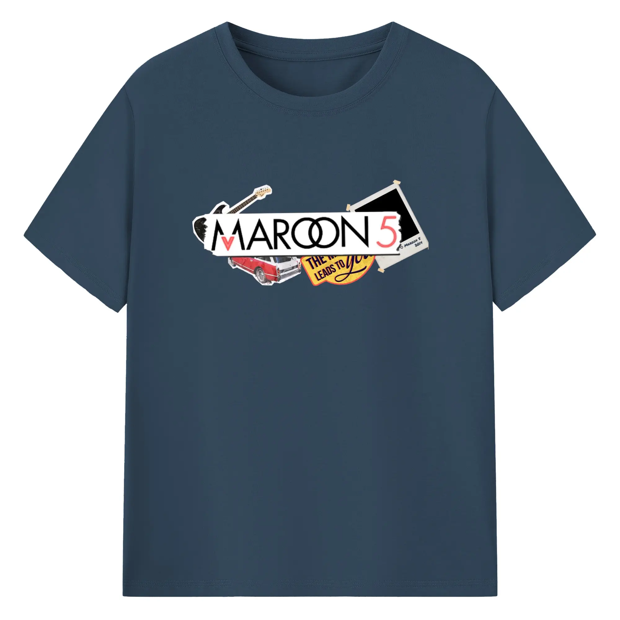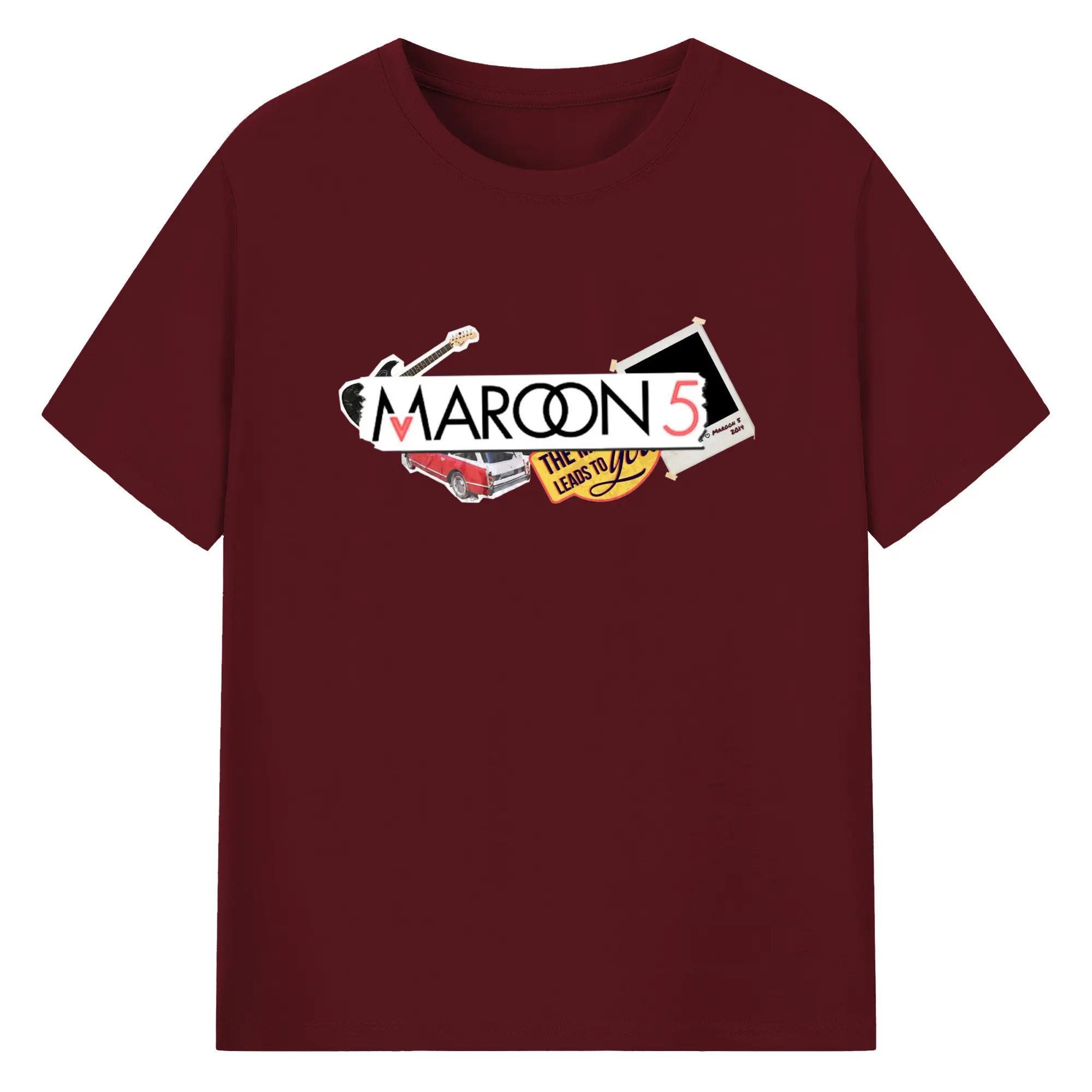 Maroon 5 Vintage Collage Pop Rock DIY - 180g Cotton T-Shirt With Front Heat Transfer Print – Soft, Lightweight, Fitted Design – Comfortable Casual Wear For Sports & Everyday Use
