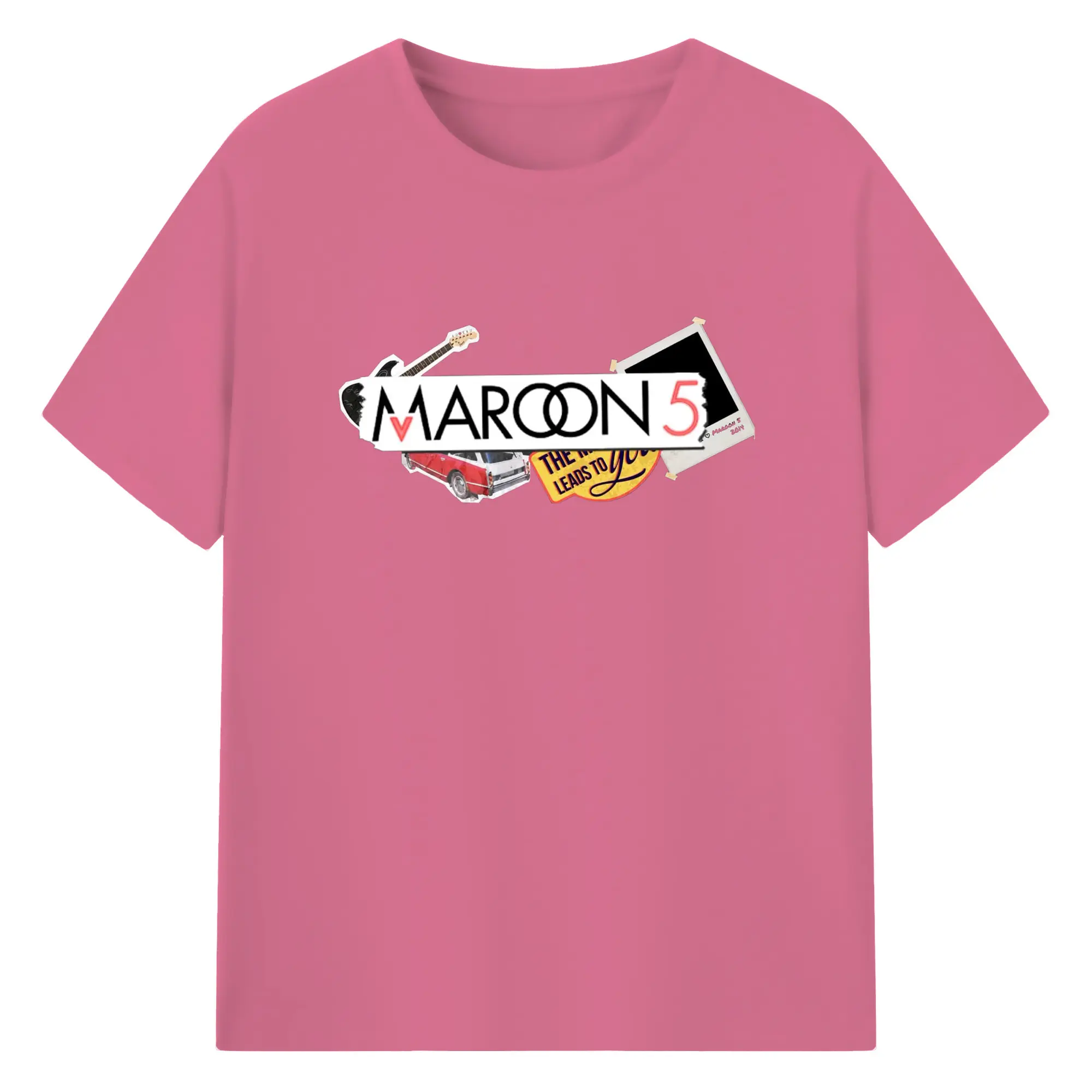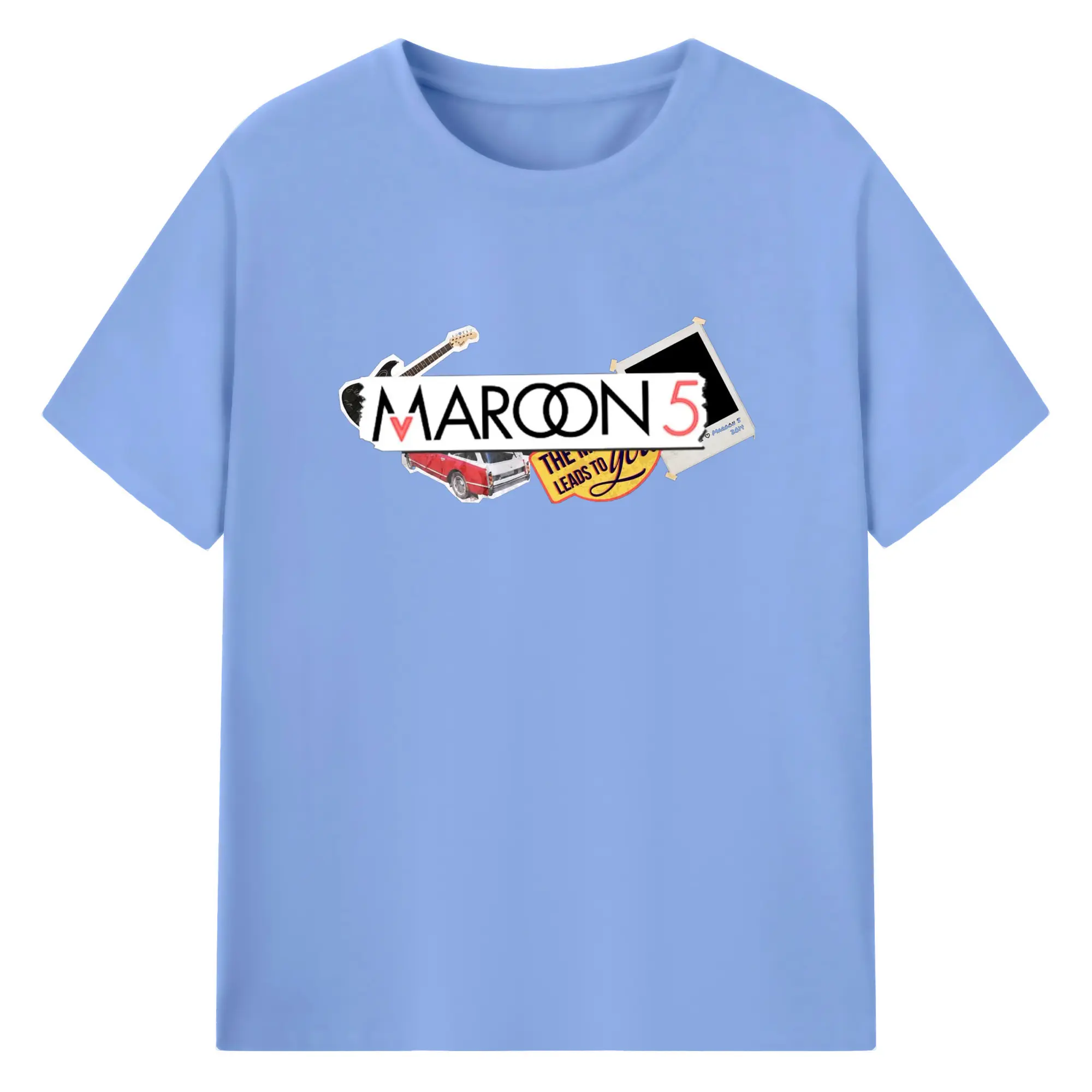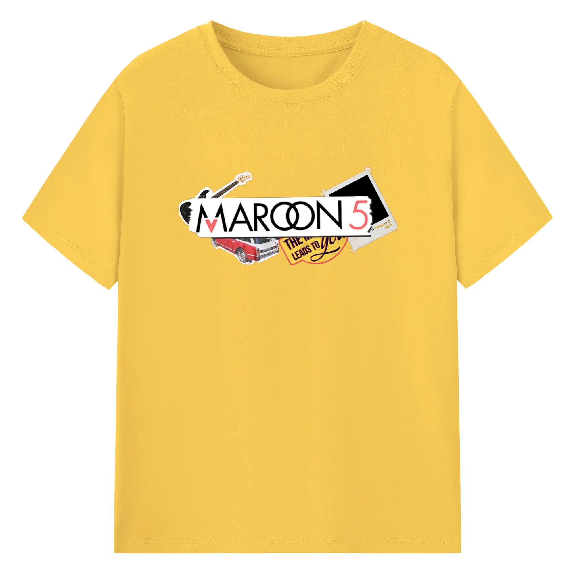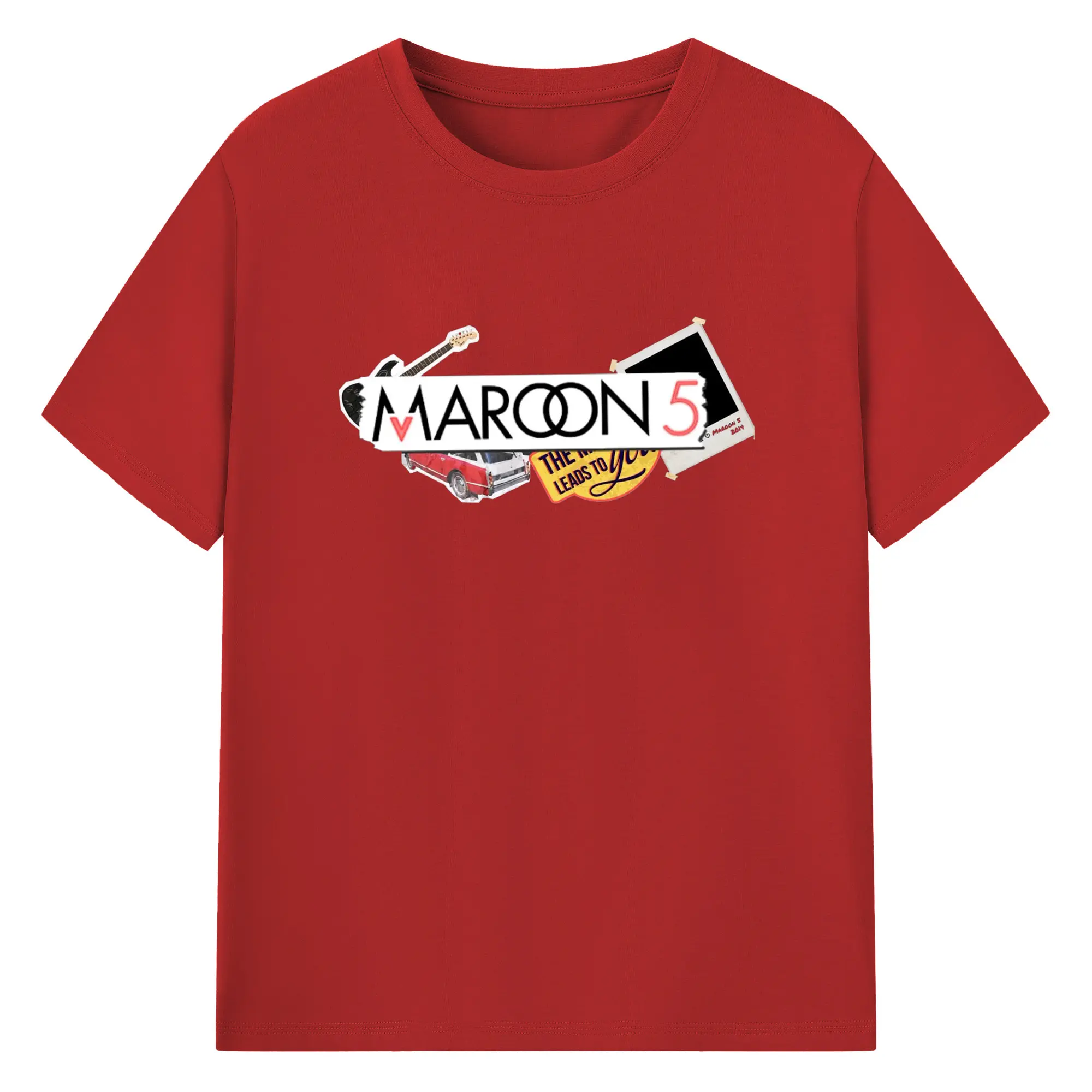 Maroon 5 Vintage Collage Pop Rock DIY - 180g Cotton T-Shirt With Front Heat Transfer Print – Soft, Lightweight, Fitted Design – Comfortable Casual Wear For Sports & Everyday Use