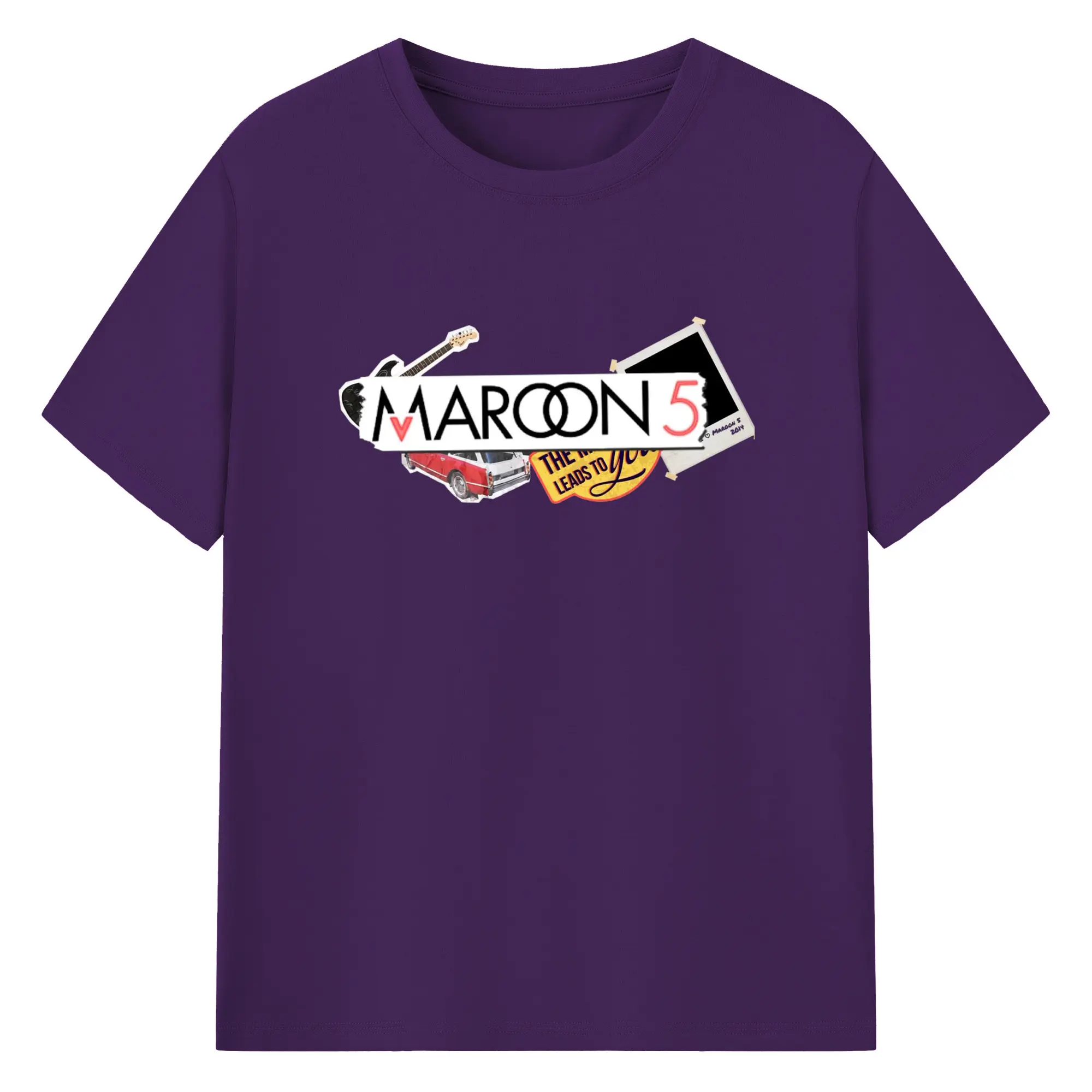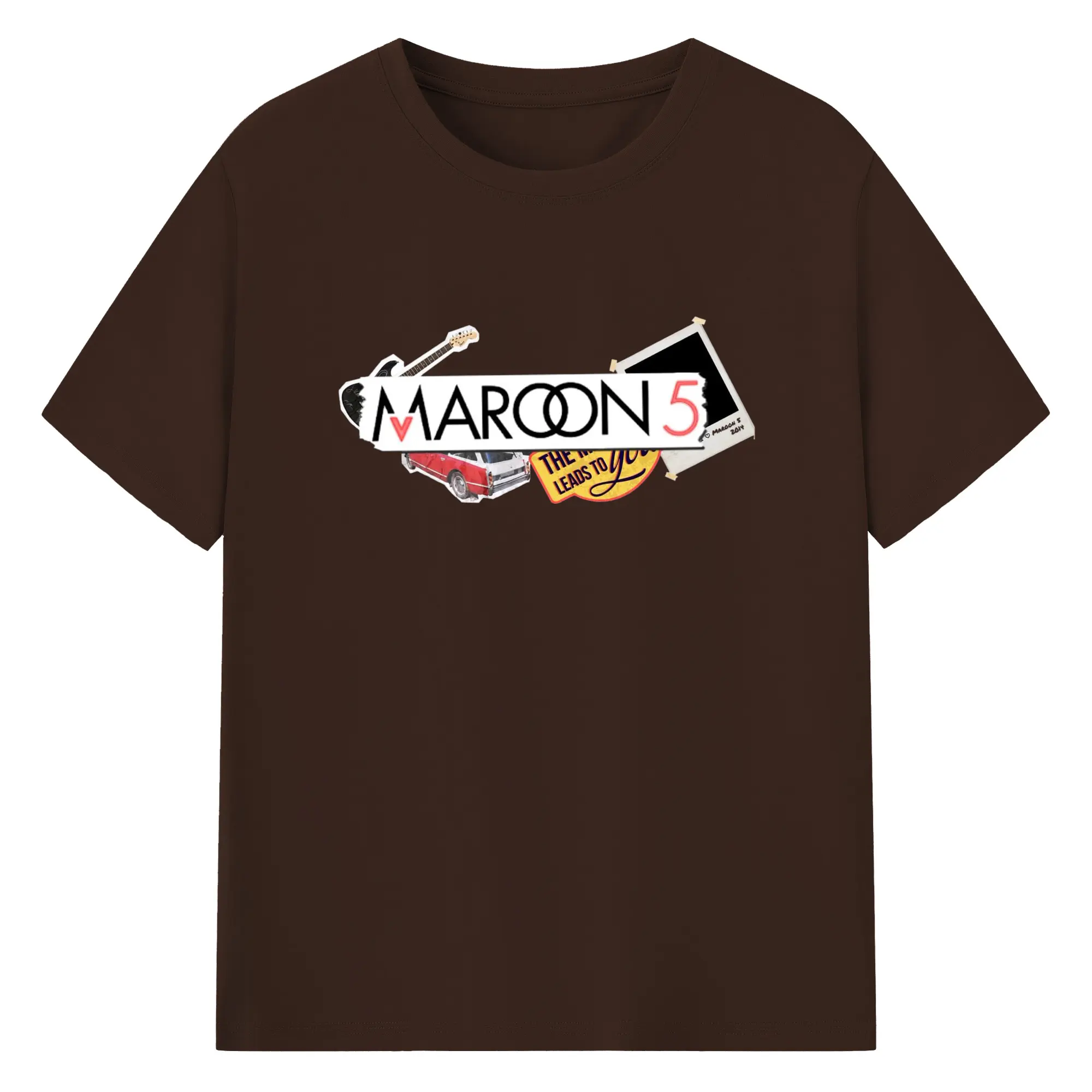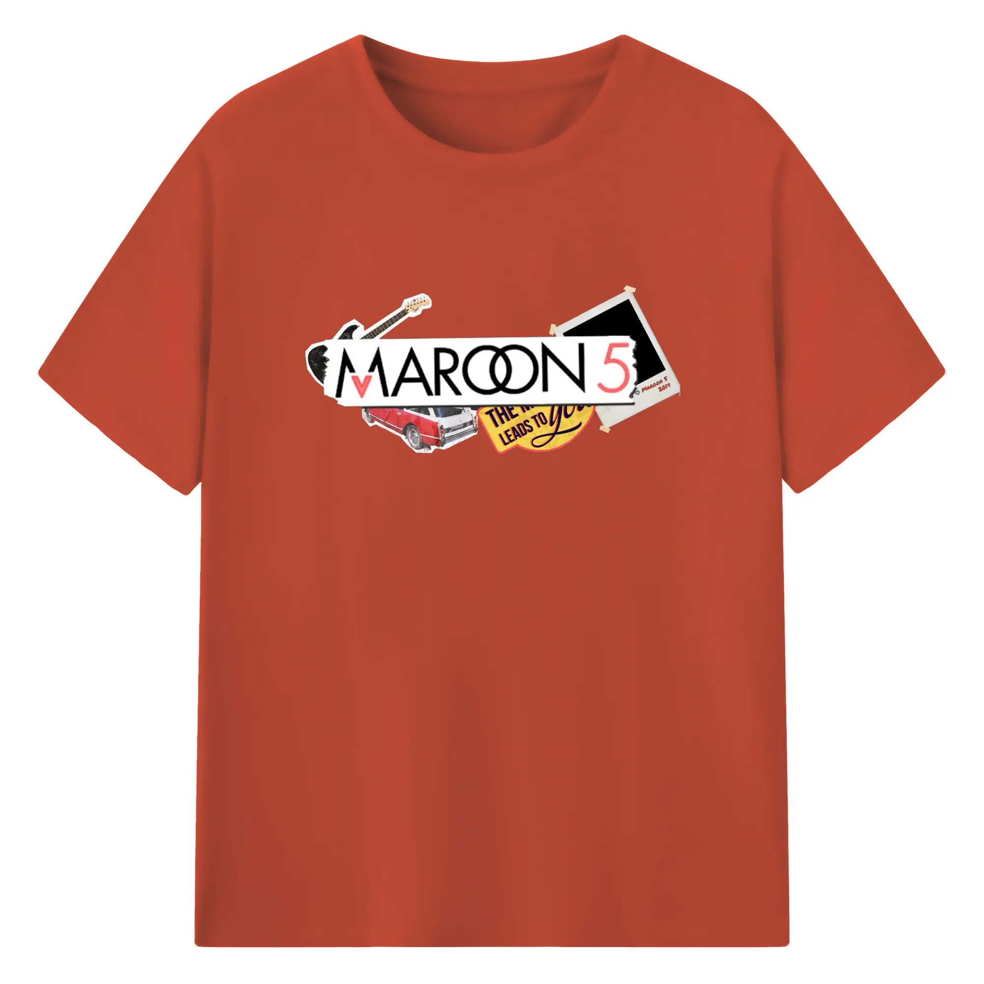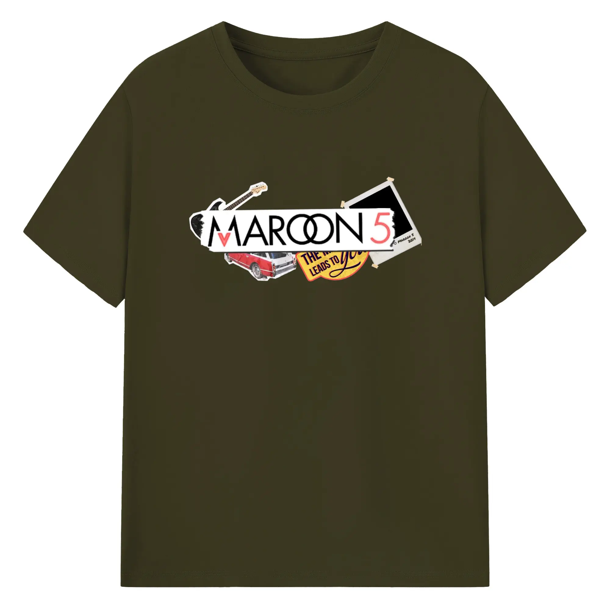 Maroon 5 Vintage Collage Pop Rock DIY - 180g Cotton T-Shirt With Front Heat Transfer Print – Soft, Lightweight, Fitted Design – Comfortable Casual Wear For Sports & Everyday Use