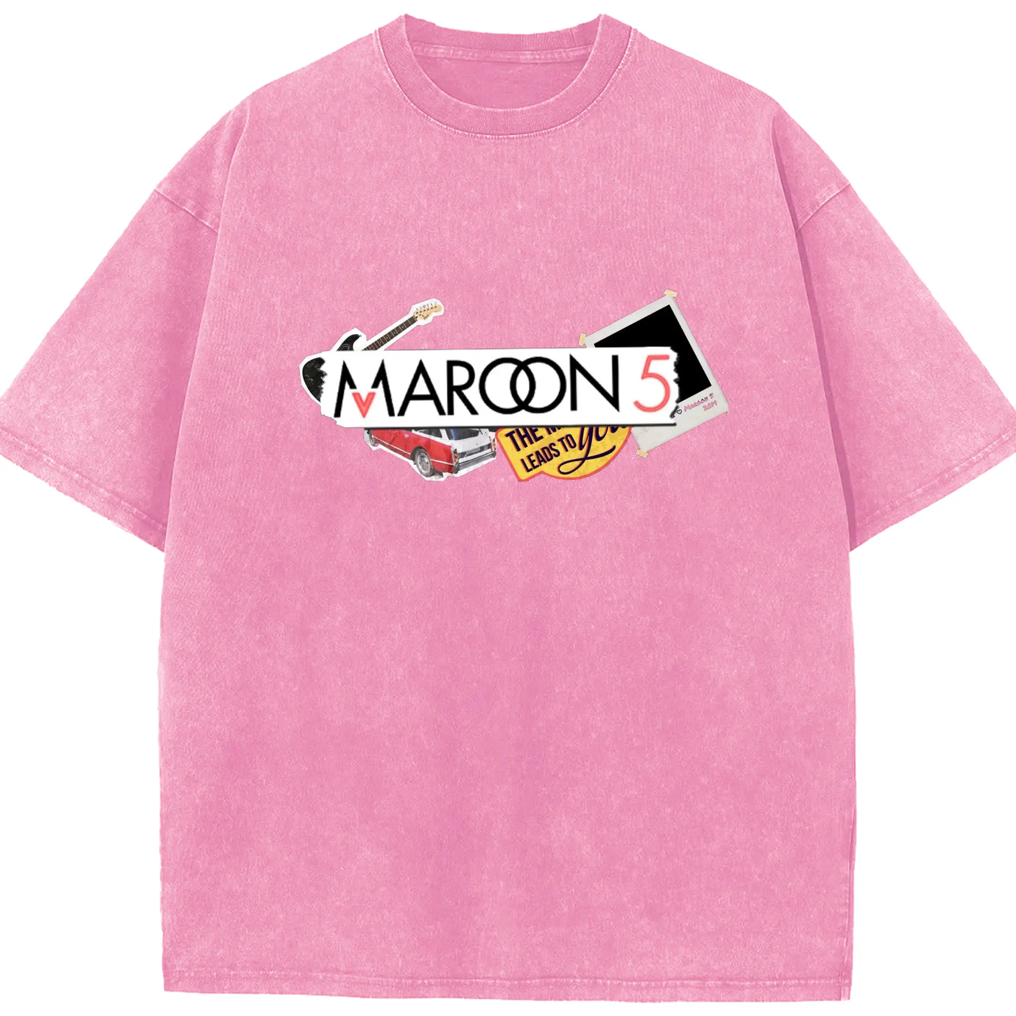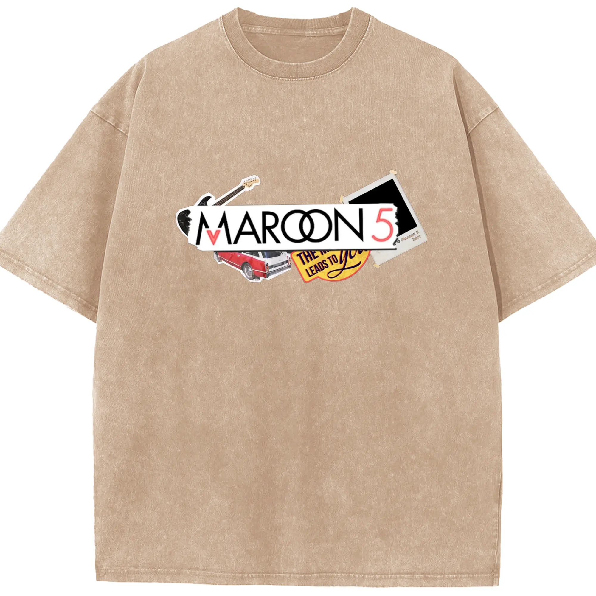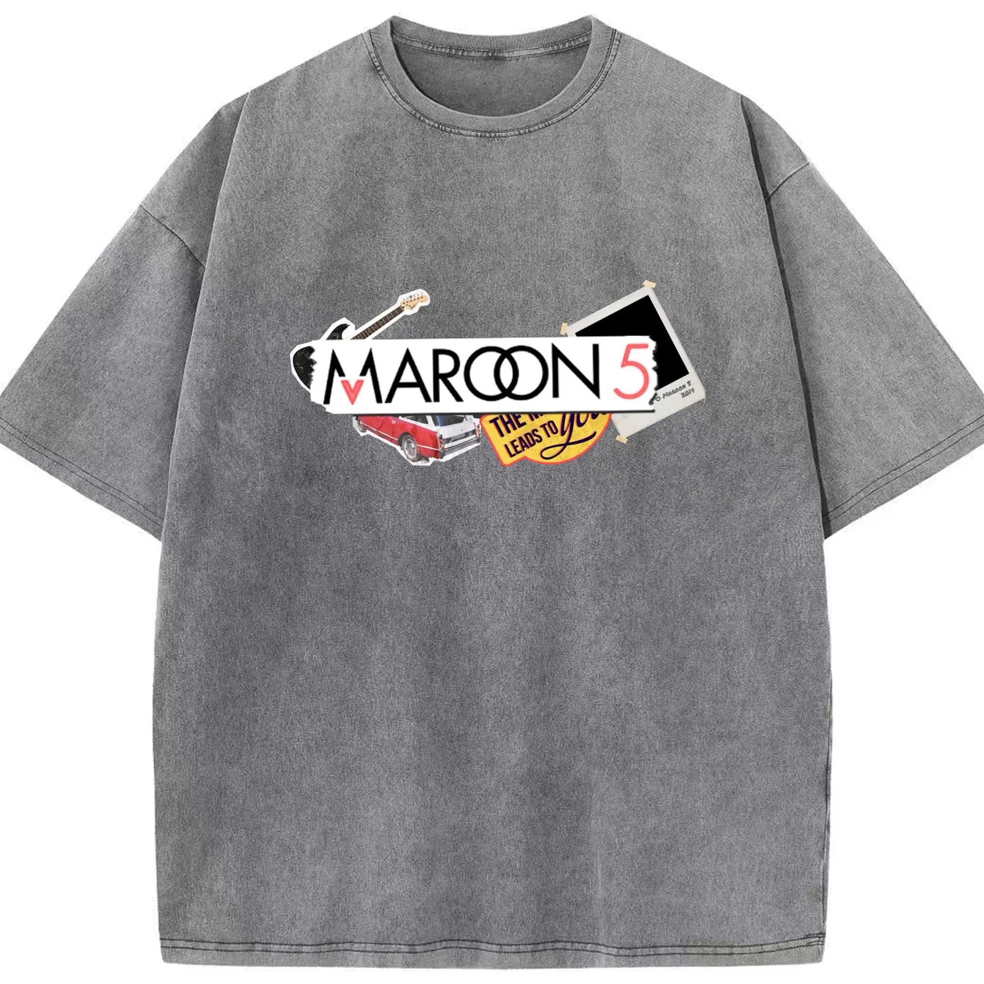 Maroon 5 Vintage Collage Pop Rock DIY - Washed Vintage Look 230g Cotton Oversized T-Shirt With Front Heat Transfer Print – Soft, Lightweight, Stylish Fit – Comfortable Casual Wear For Sports & Everyday Use