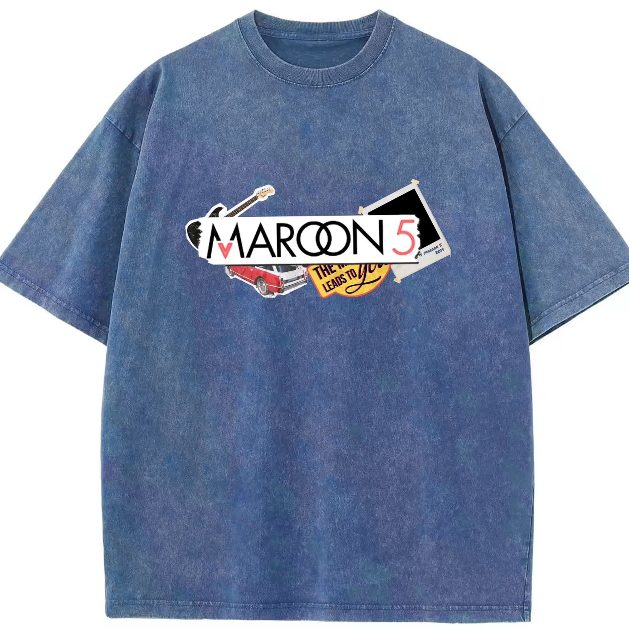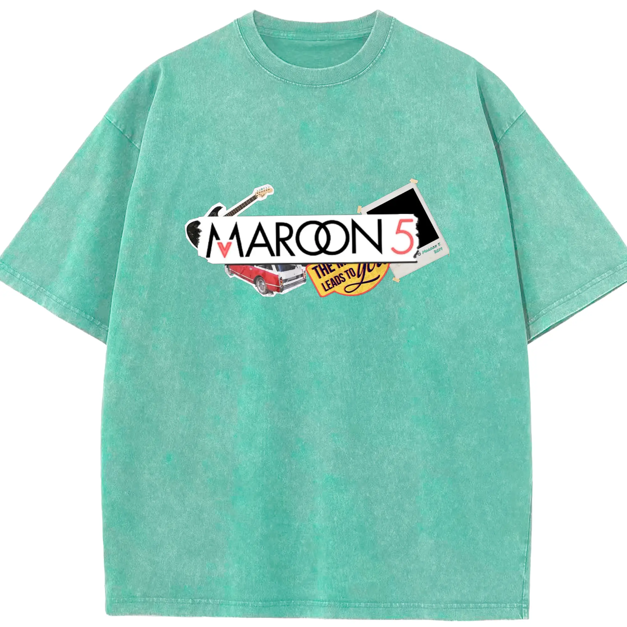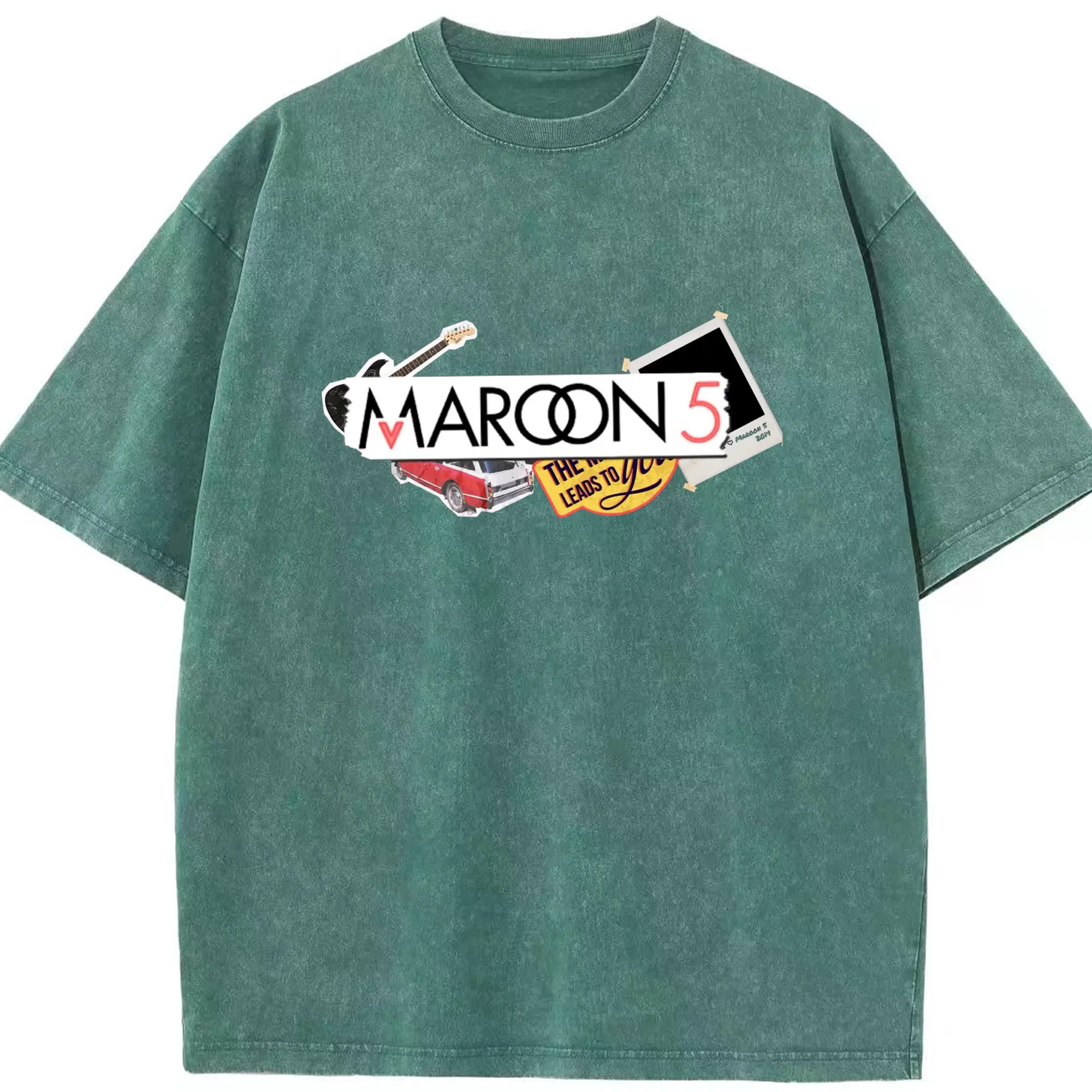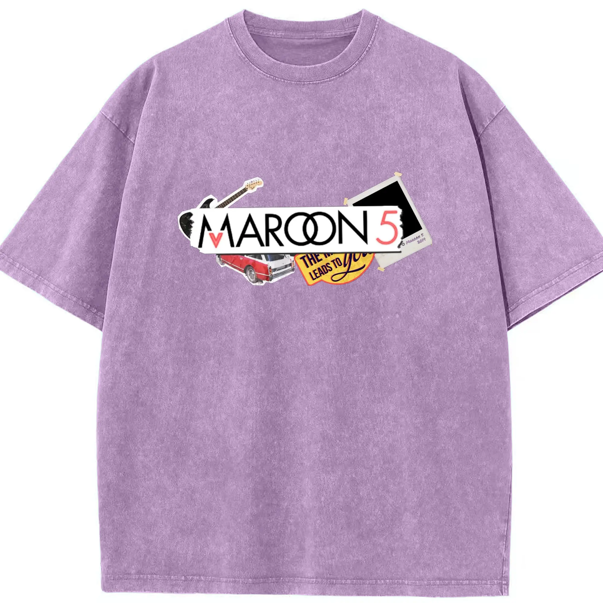Maroon 5 Vintage Collage Pop Rock DIY - Washed Vintage Look 230g Cotton Oversized T-Shirt With Front Heat Transfer Print – Soft, Lightweight, Stylish Fit – Comfortable Casual Wear For Sports & Everyday Use