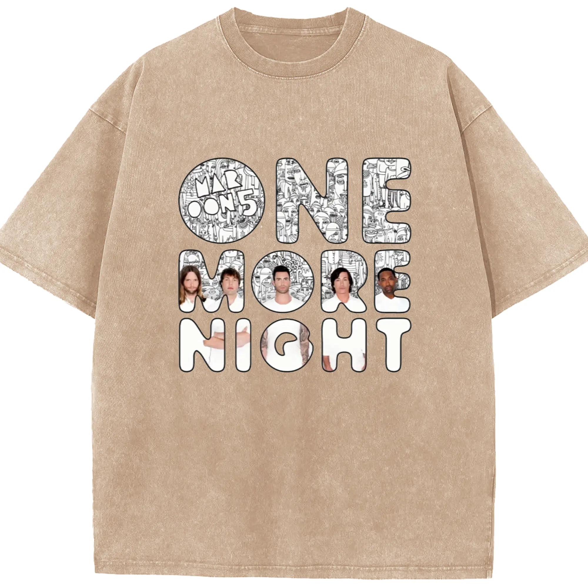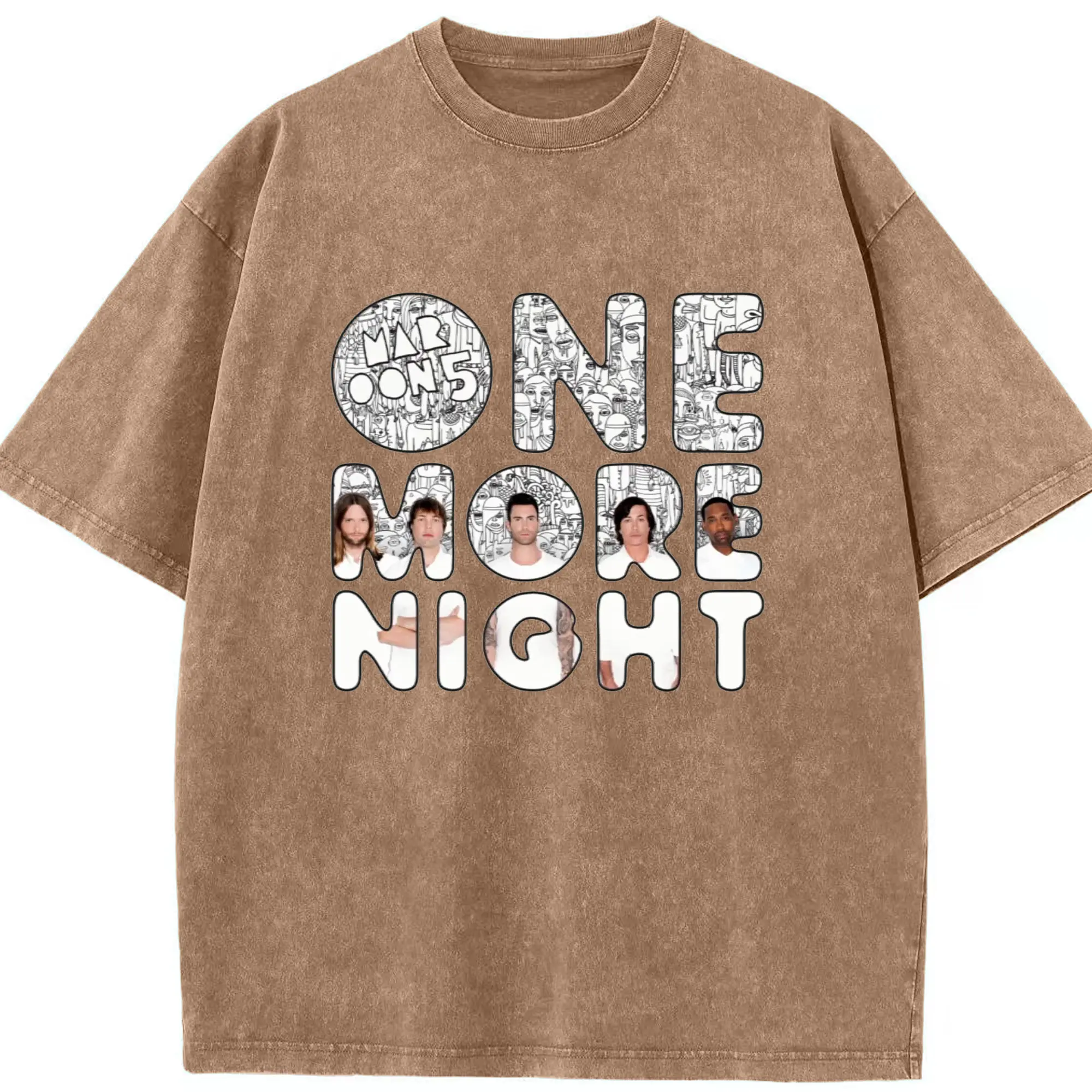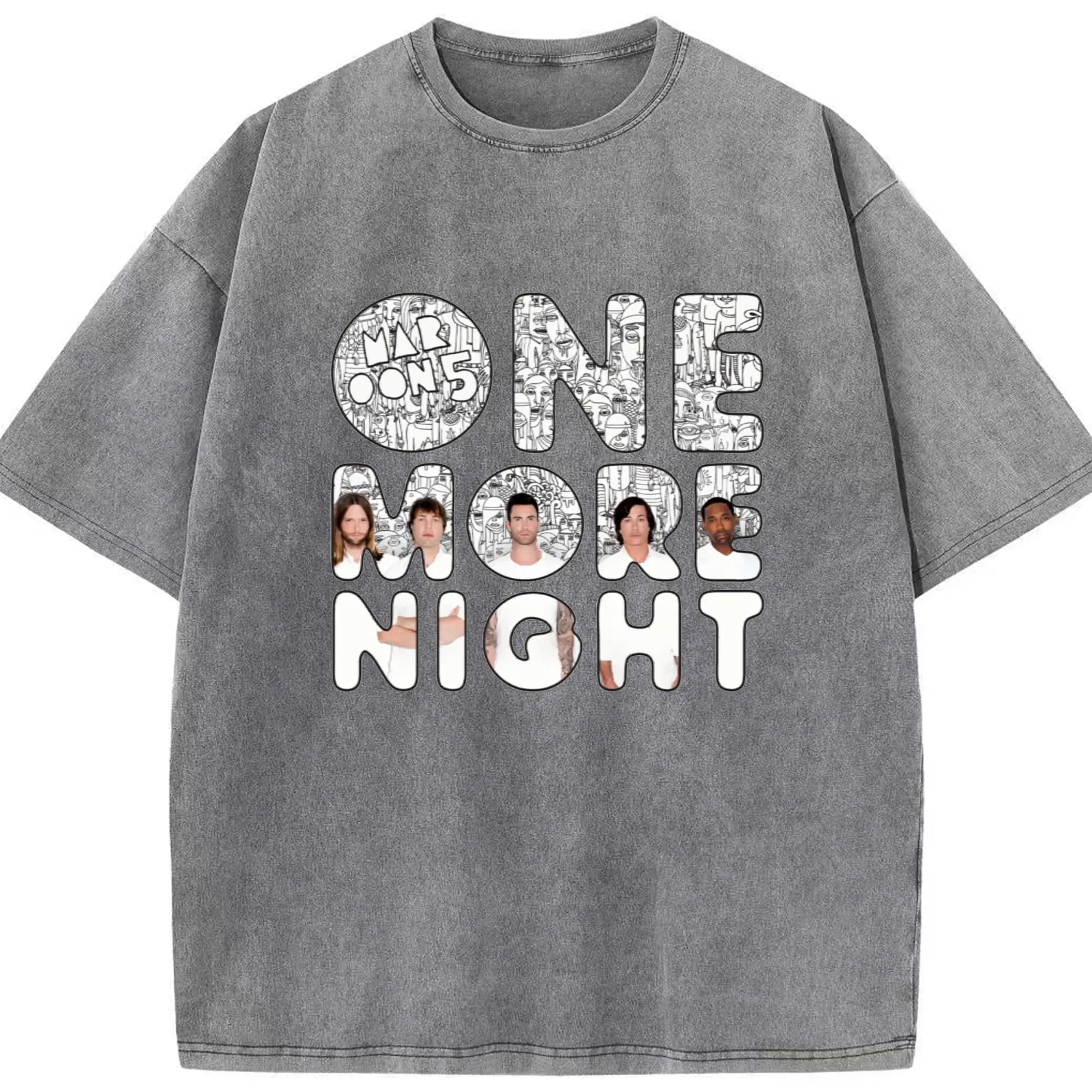 Maroon 5《One More Night》DIY - Washed Vintage Look 230g Cotton Oversized T-Shirt With Front Heat Transfer Print – Soft, Lightweight, Stylish Fit – Comfortable Casual Wear For Sports & Everyday Use