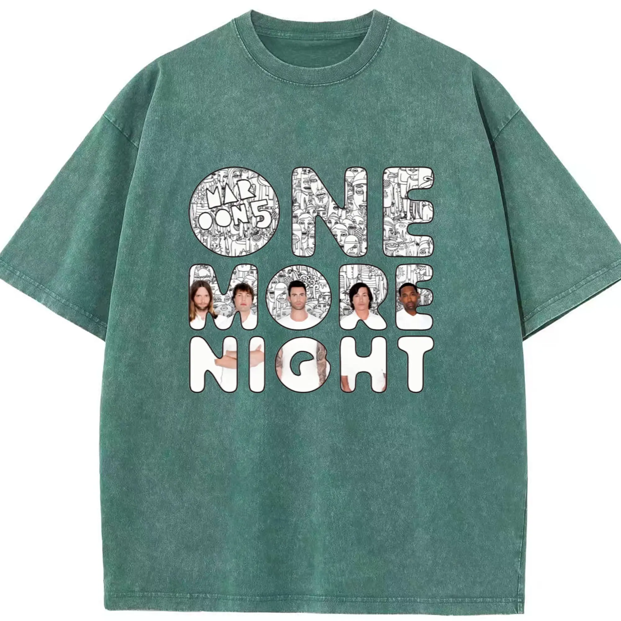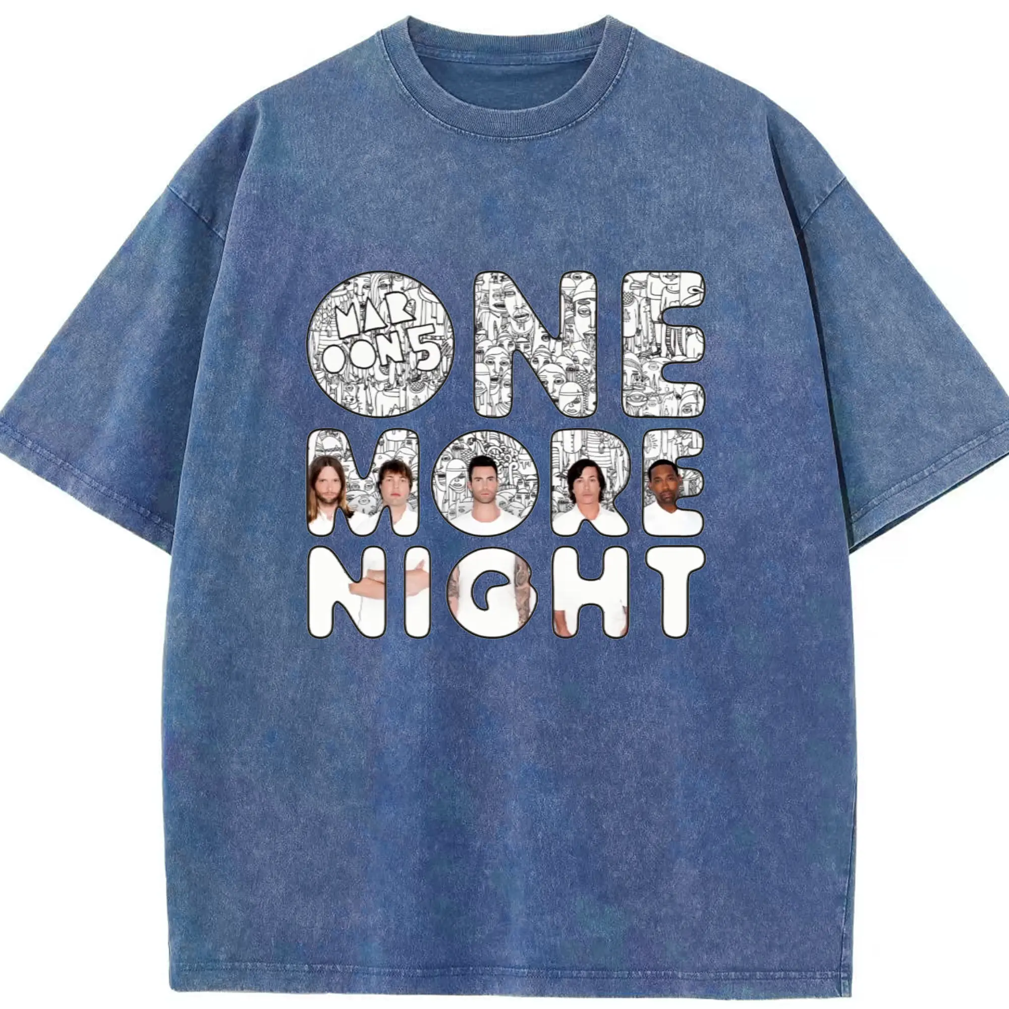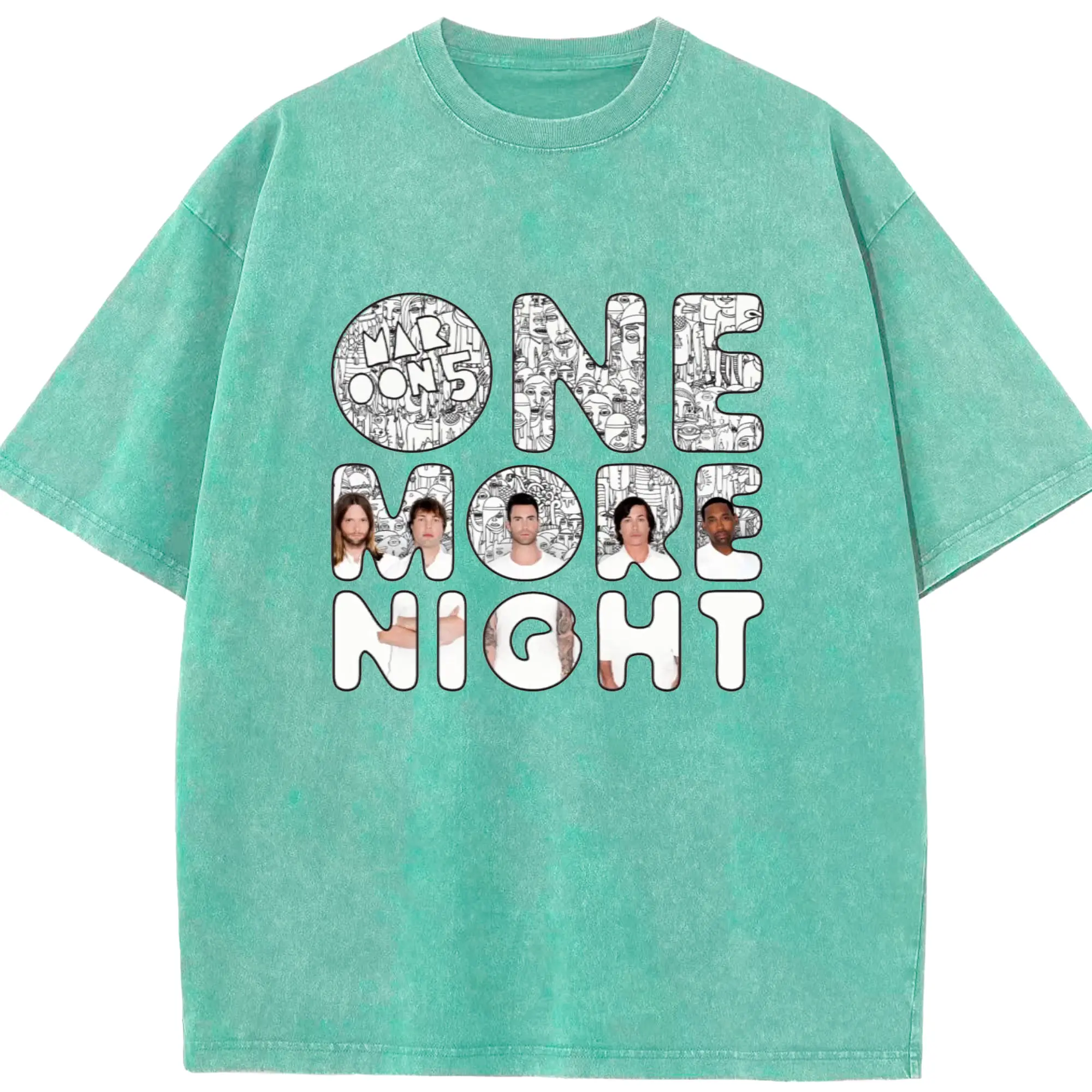 Maroon 5《One More Night》DIY - Washed Vintage Look 230g Cotton Oversized T-Shirt With Front Heat Transfer Print – Soft, Lightweight, Stylish Fit – Comfortable Casual Wear For Sports & Everyday Use