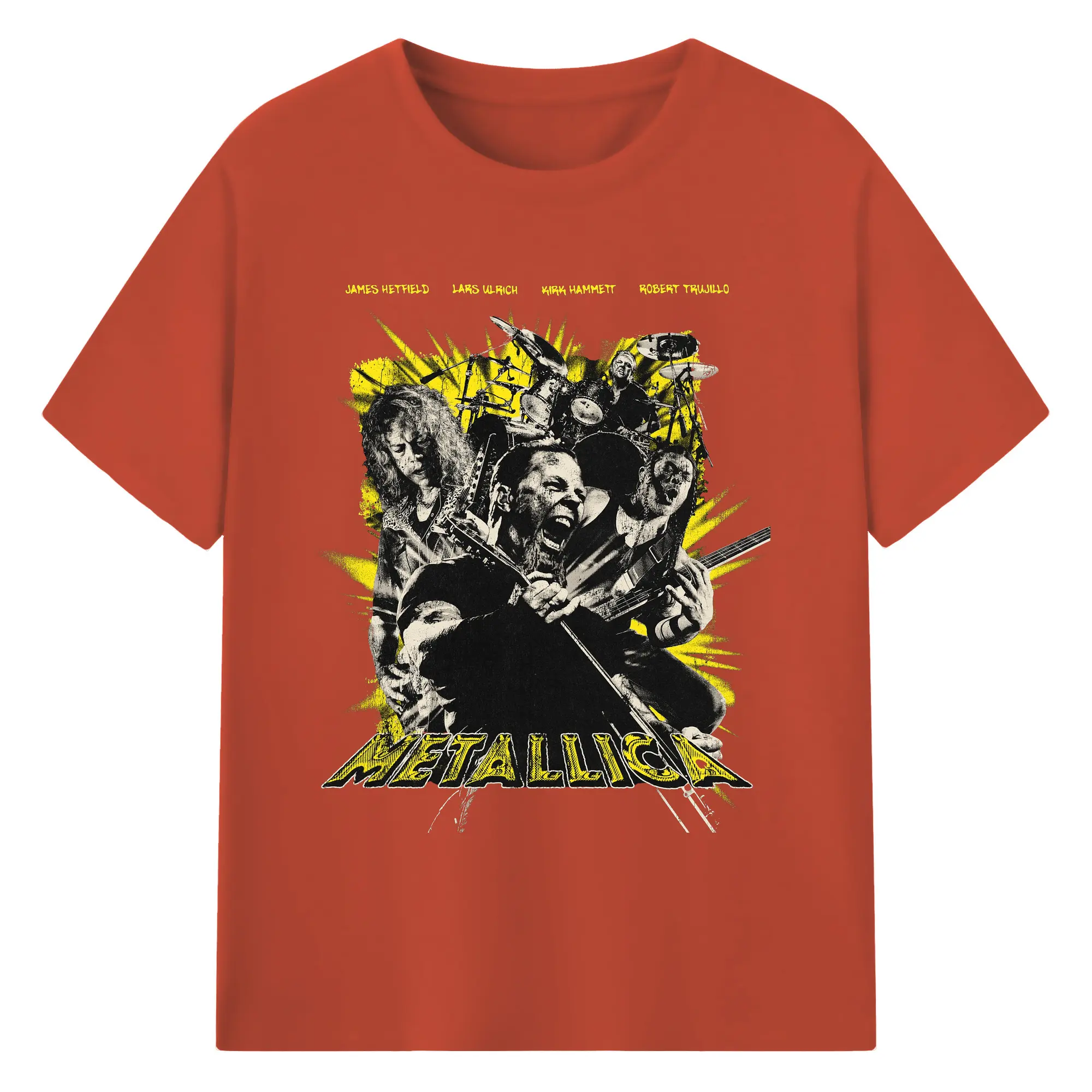 Metallica All Members Heavy Metal Rock Band DIY Shirt - 180g Cotton T-Shirt With Front Heat Transfer Print – Soft, Lightweight, Fitted Design – Comfortable Casual Wear For Sports & Everyday Use