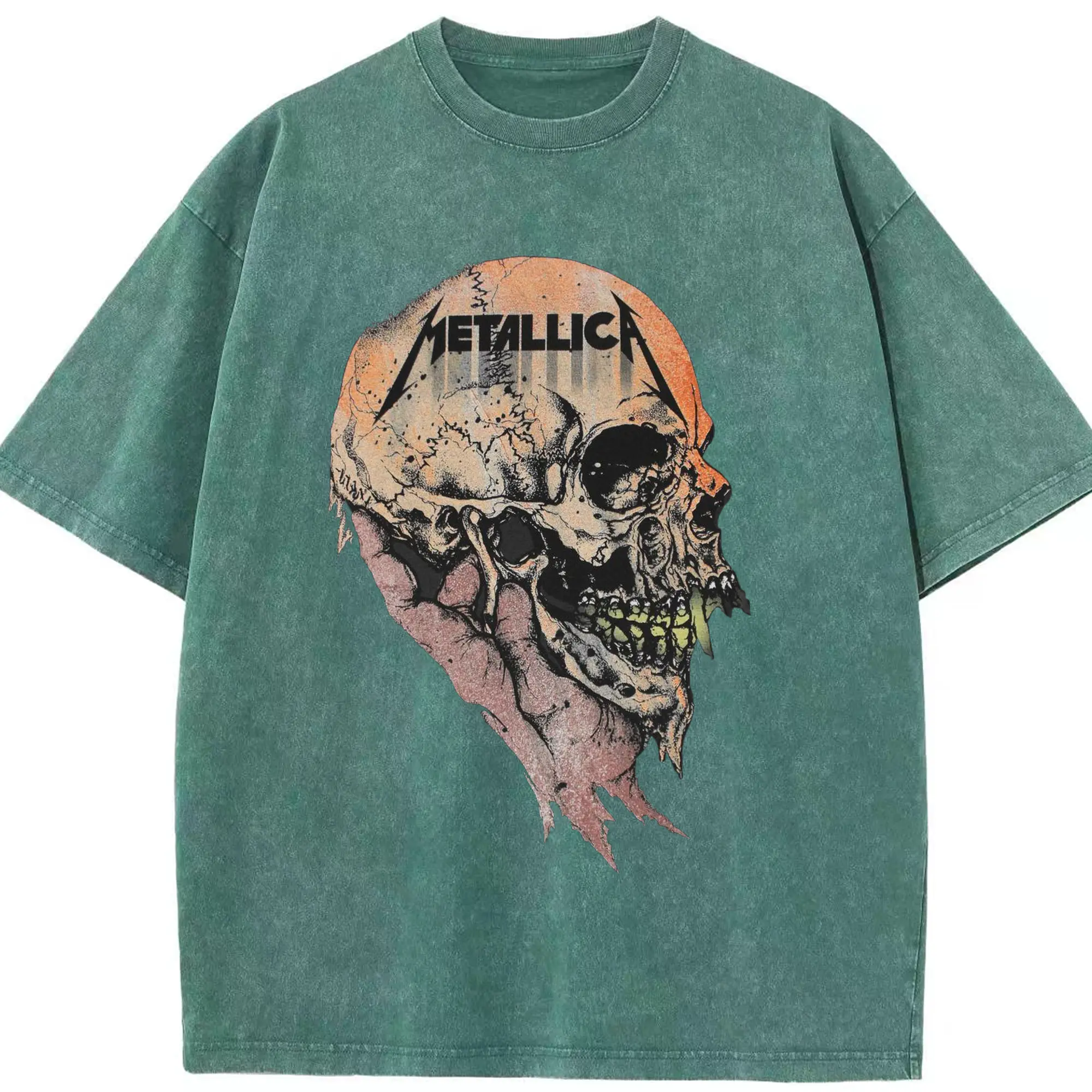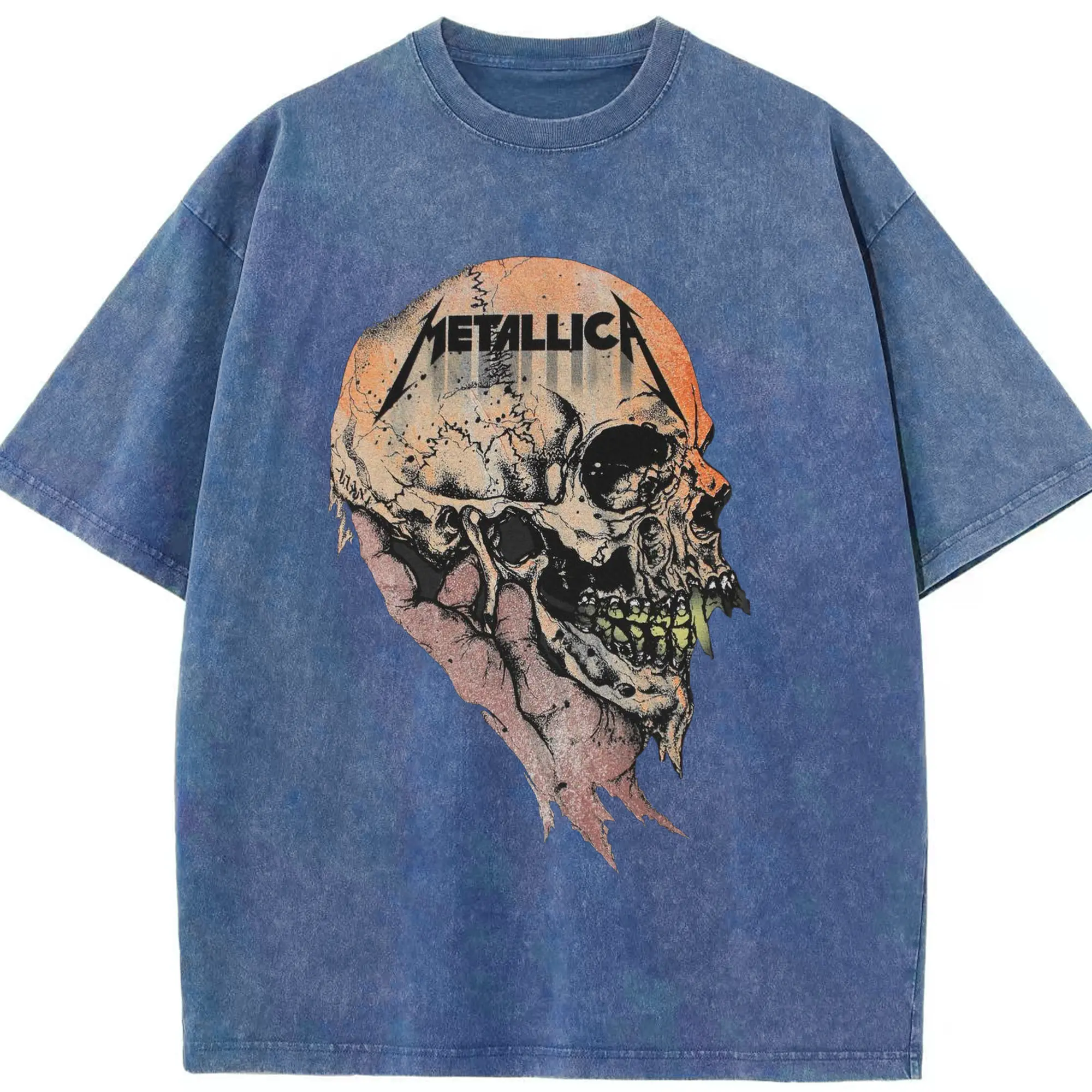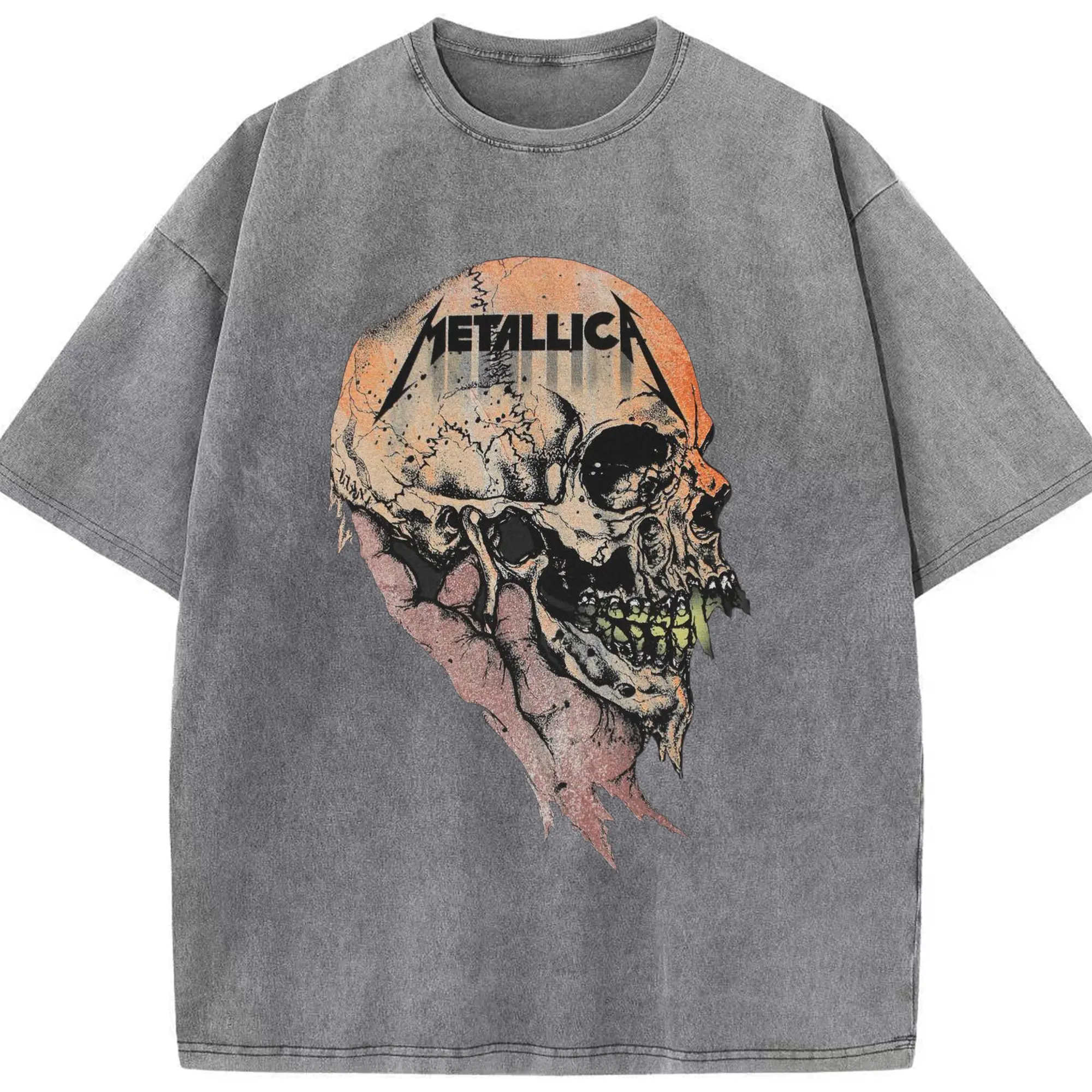 Metallica Dark Heavy Metal Skull DIY Shirt - Washed Vintage Look 230g Cotton Oversized T-Shirt With Front Heat Transfer Print – Soft, Lightweight, Stylish Fit – Comfortable Casual Wear For Sports & Everyday Use