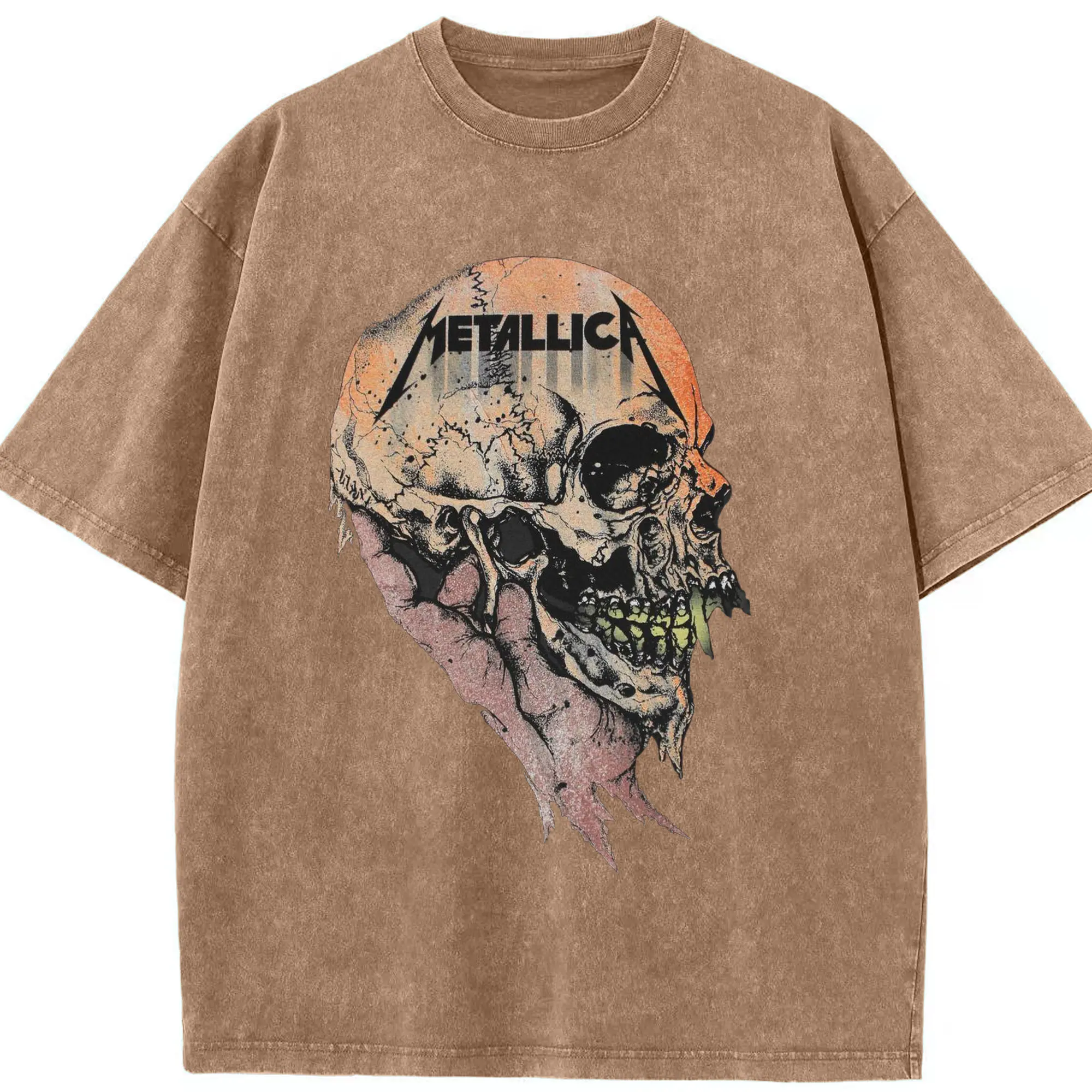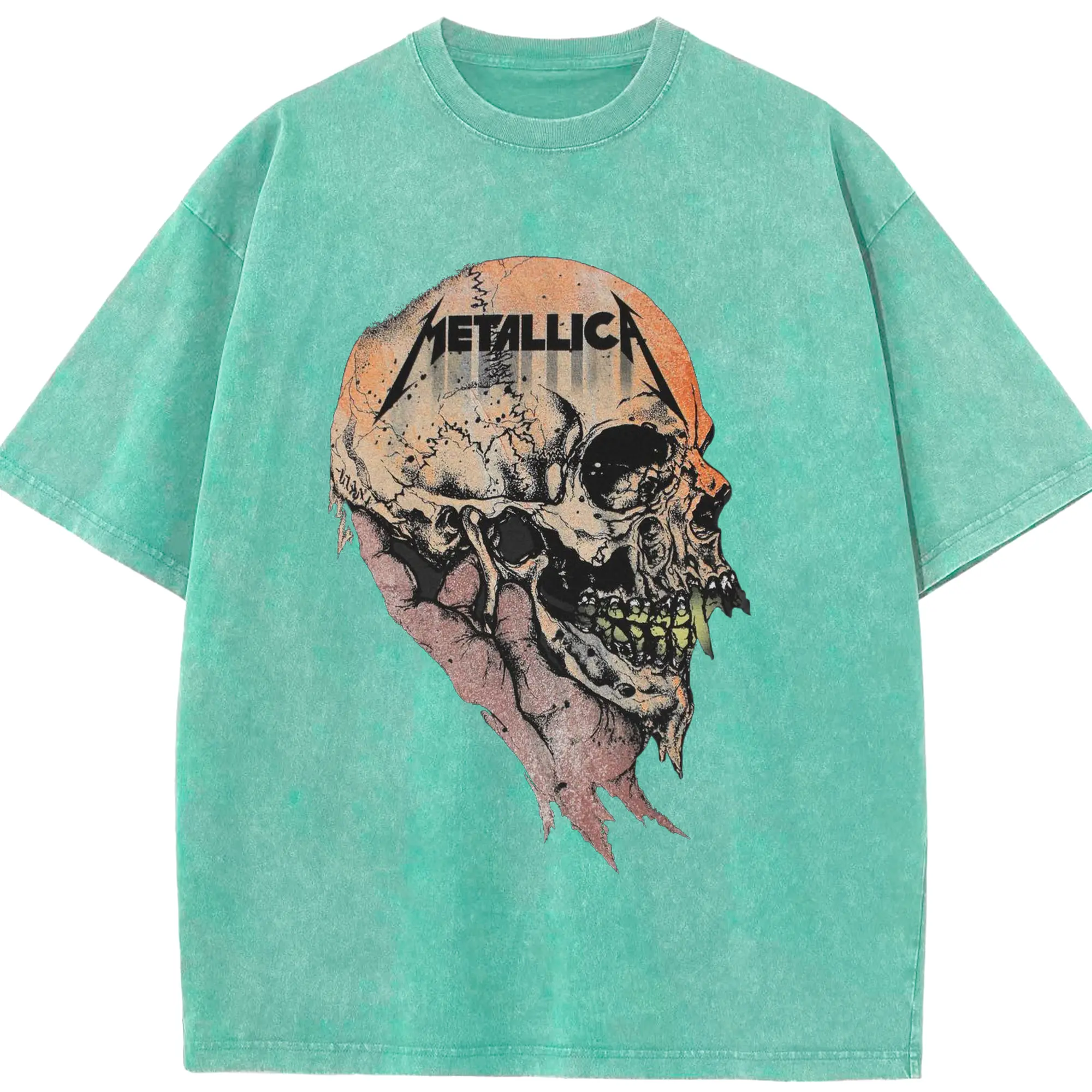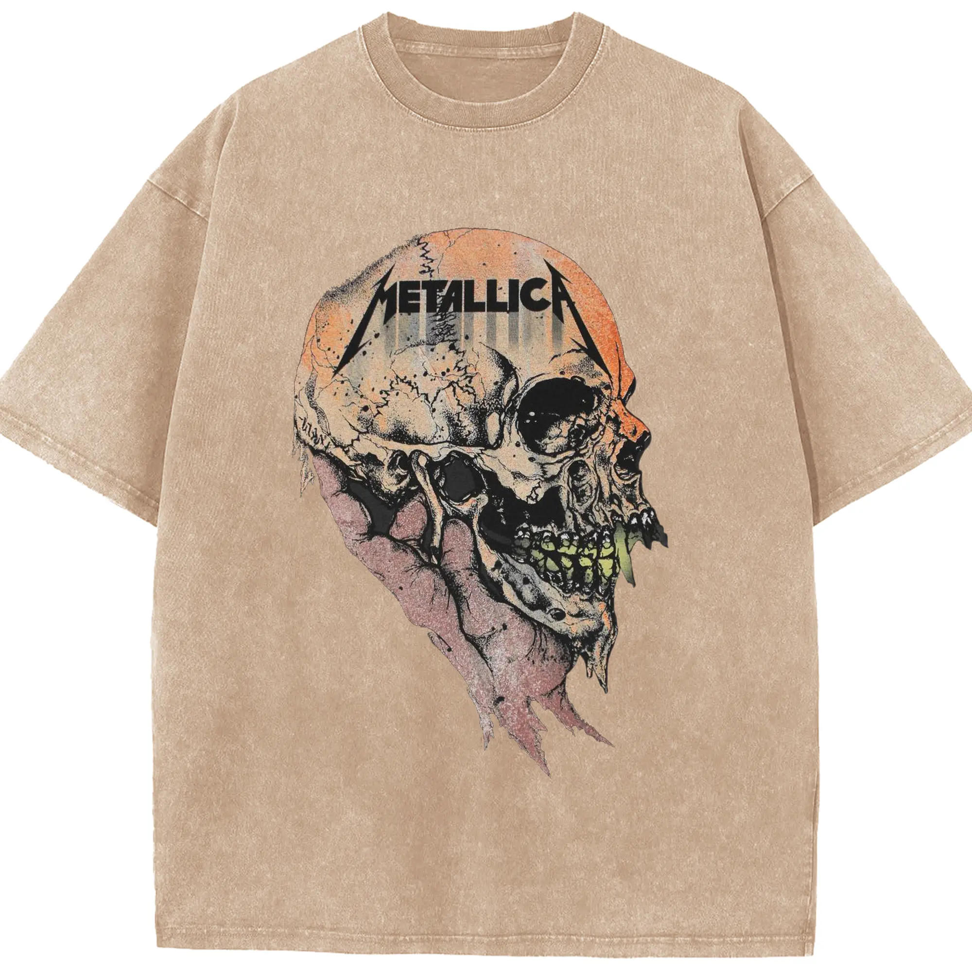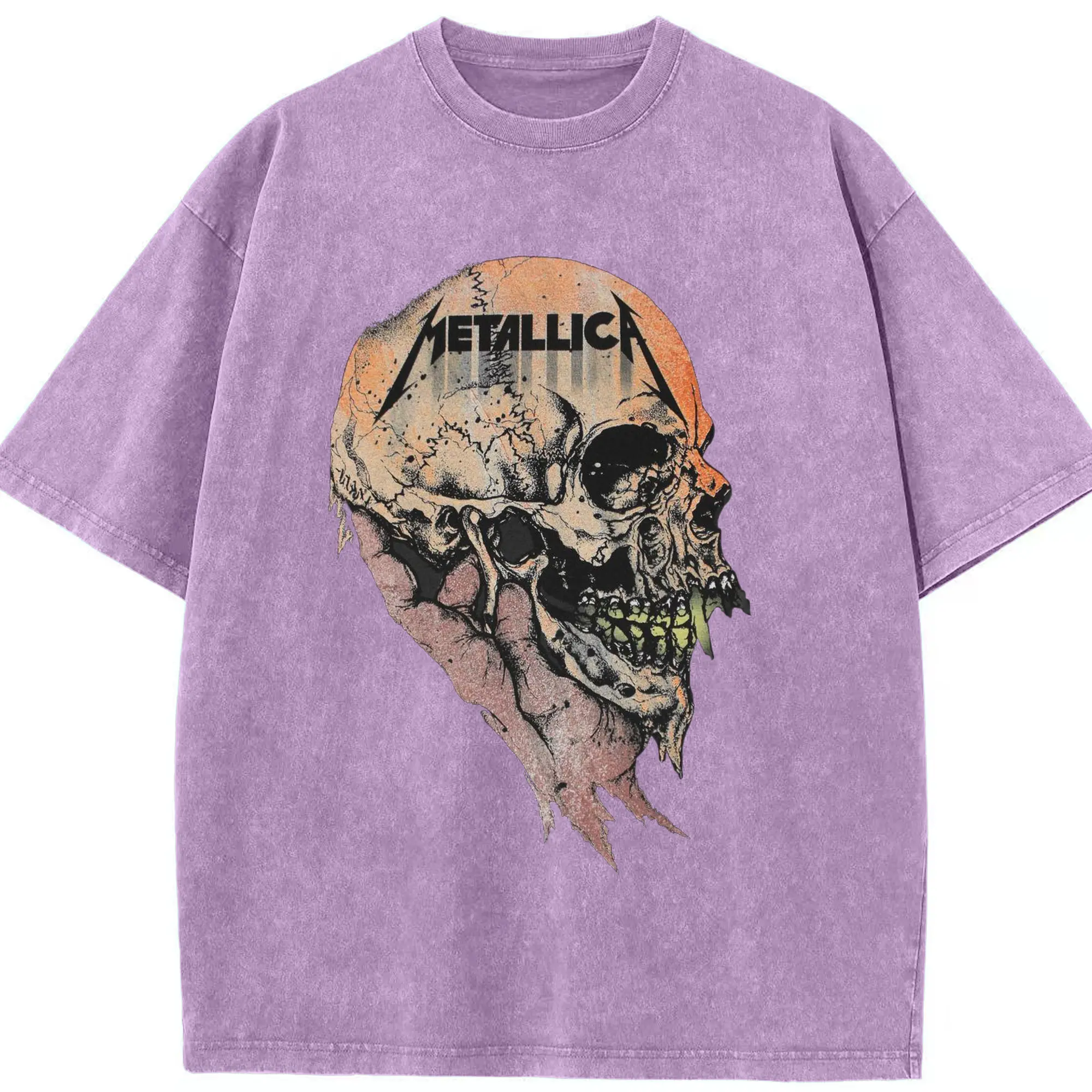 Metallica Dark Heavy Metal Skull DIY Shirt - Washed Vintage Look 230g Cotton Oversized T-Shirt With Front Heat Transfer Print – Soft, Lightweight, Stylish Fit – Comfortable Casual Wear For Sports & Everyday Use