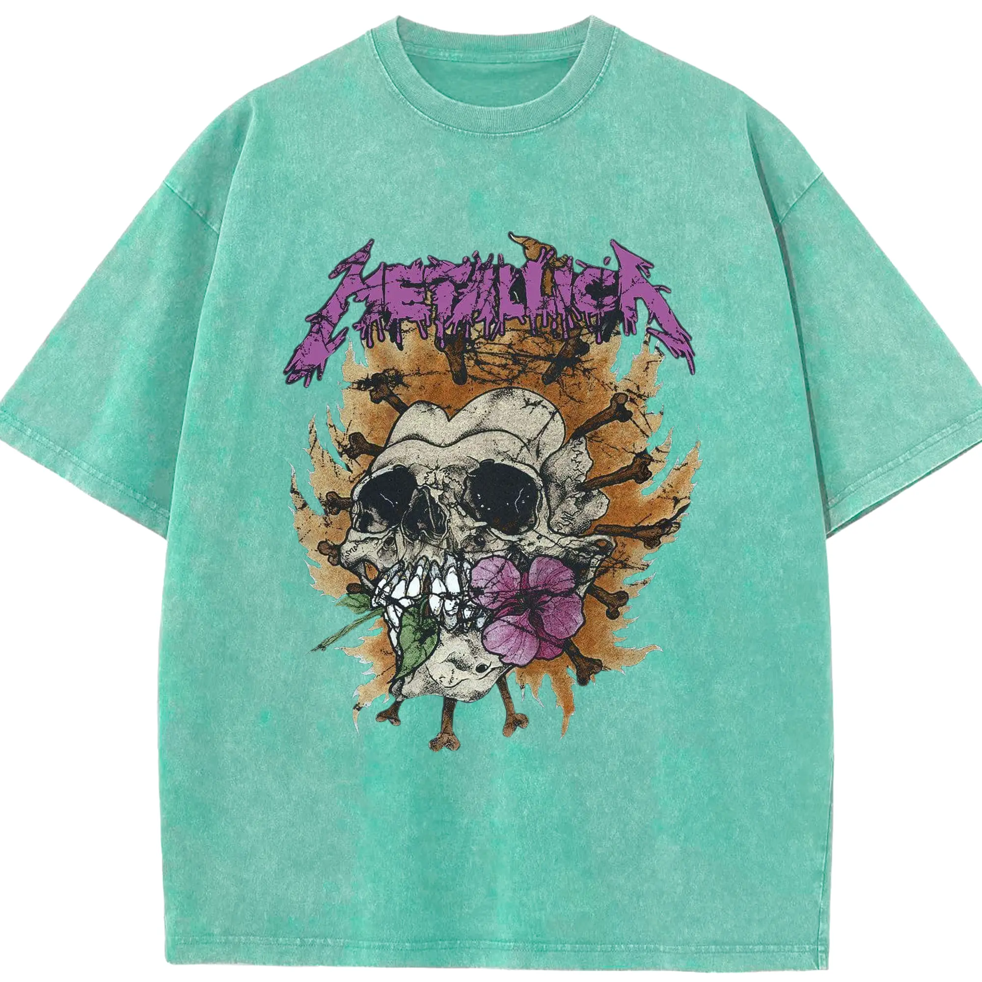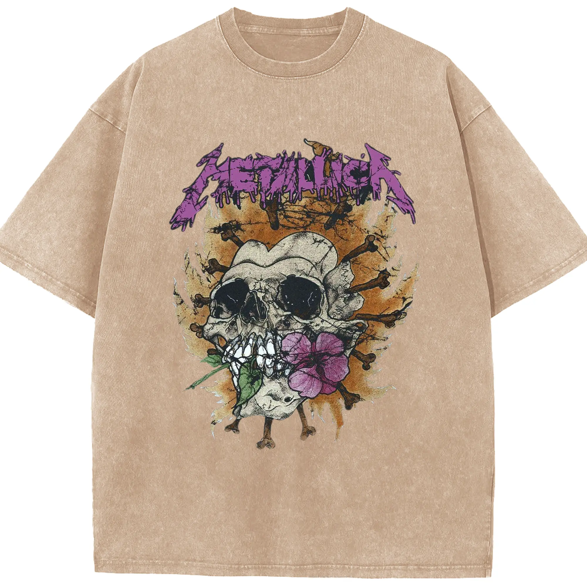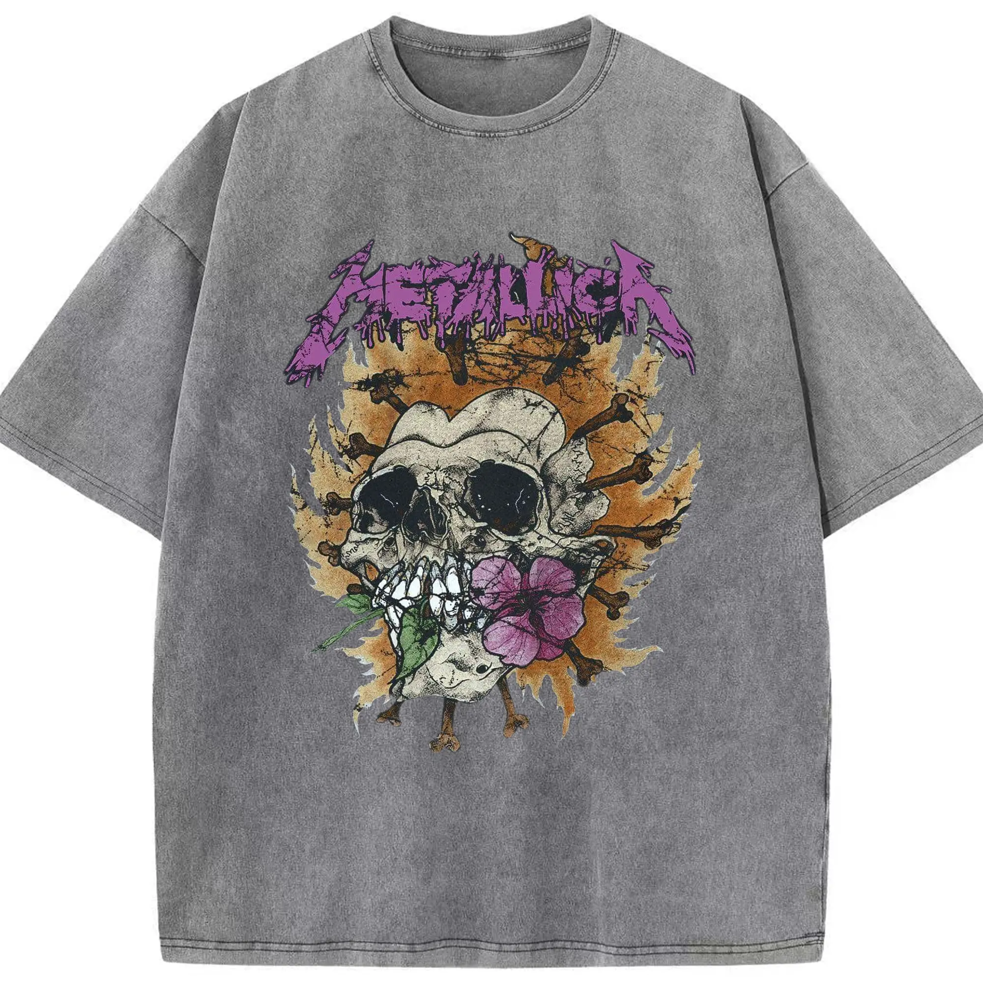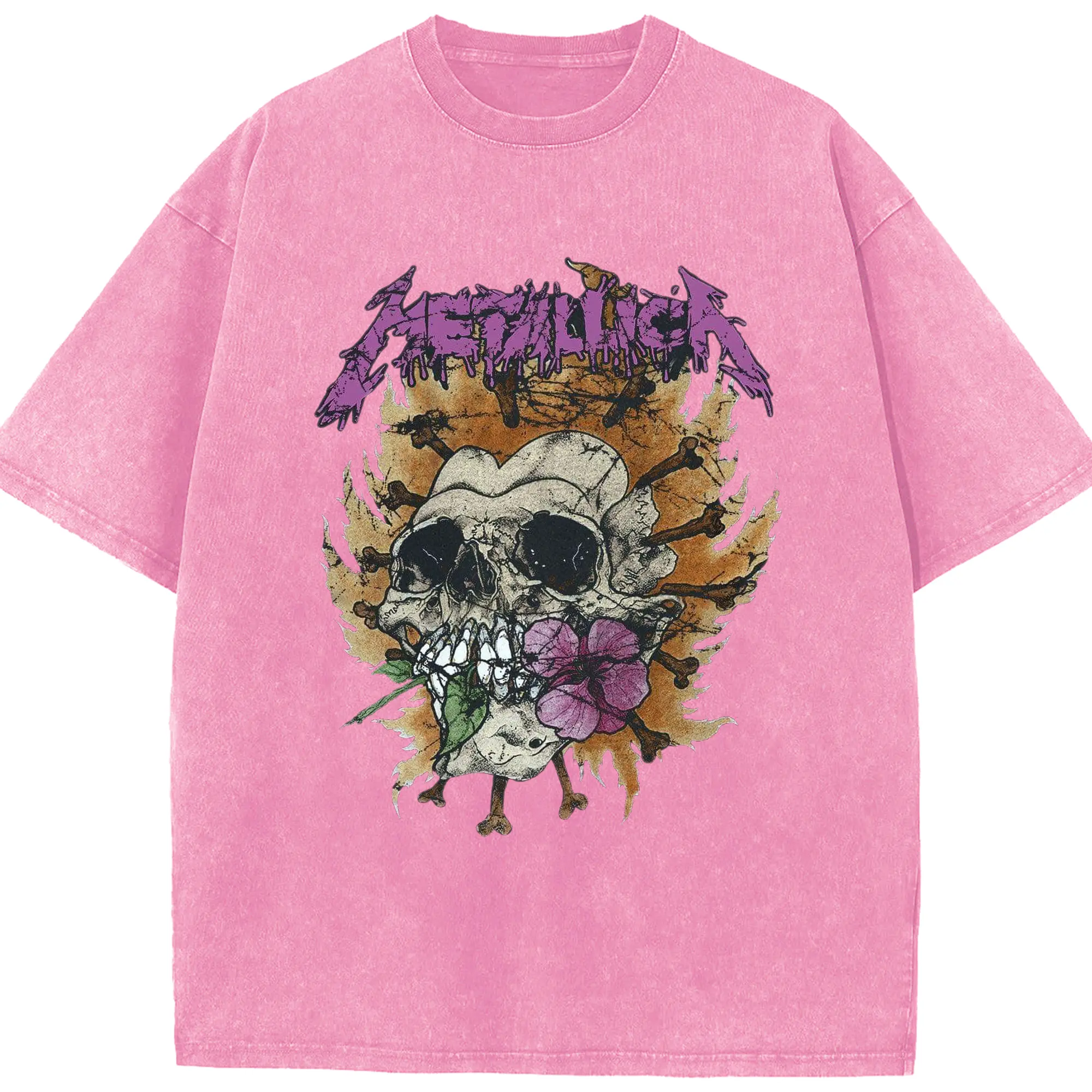 Metallica Dark Rock Skull DIY Shirt - Washed Vintage Look 230g Cotton Oversized T-Shirt With Front Heat Transfer Print – Soft, Lightweight, Stylish Fit – Comfortable Casual Wear For Sports & Everyday Use