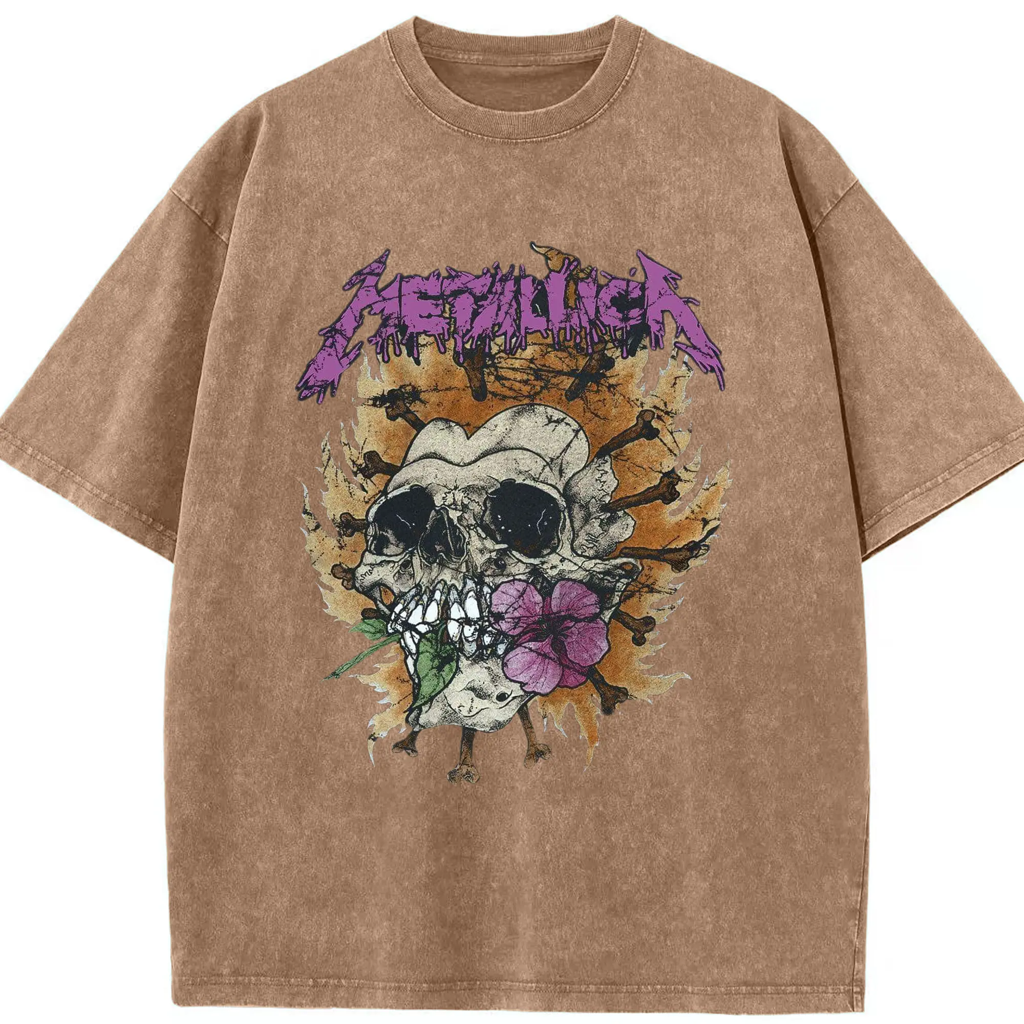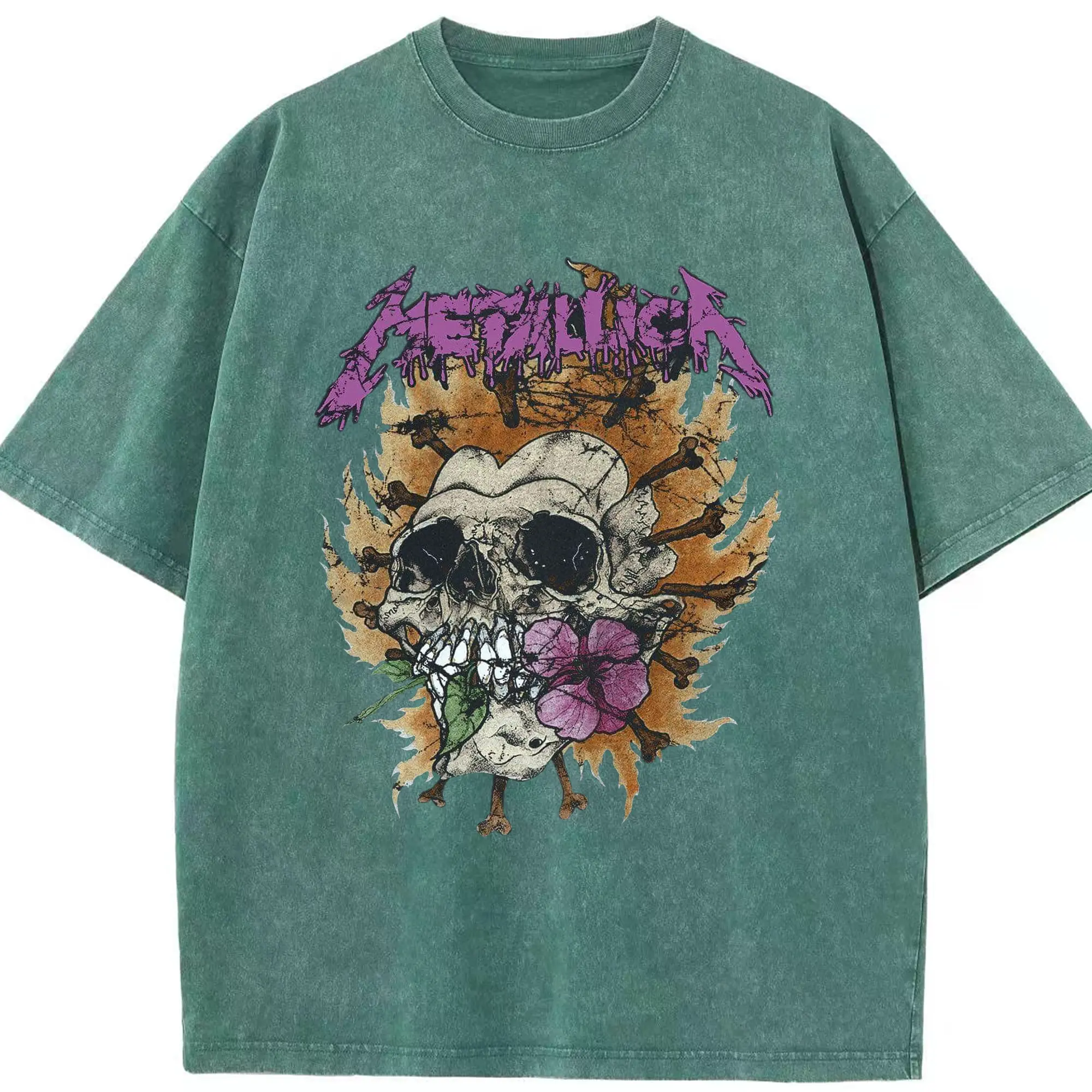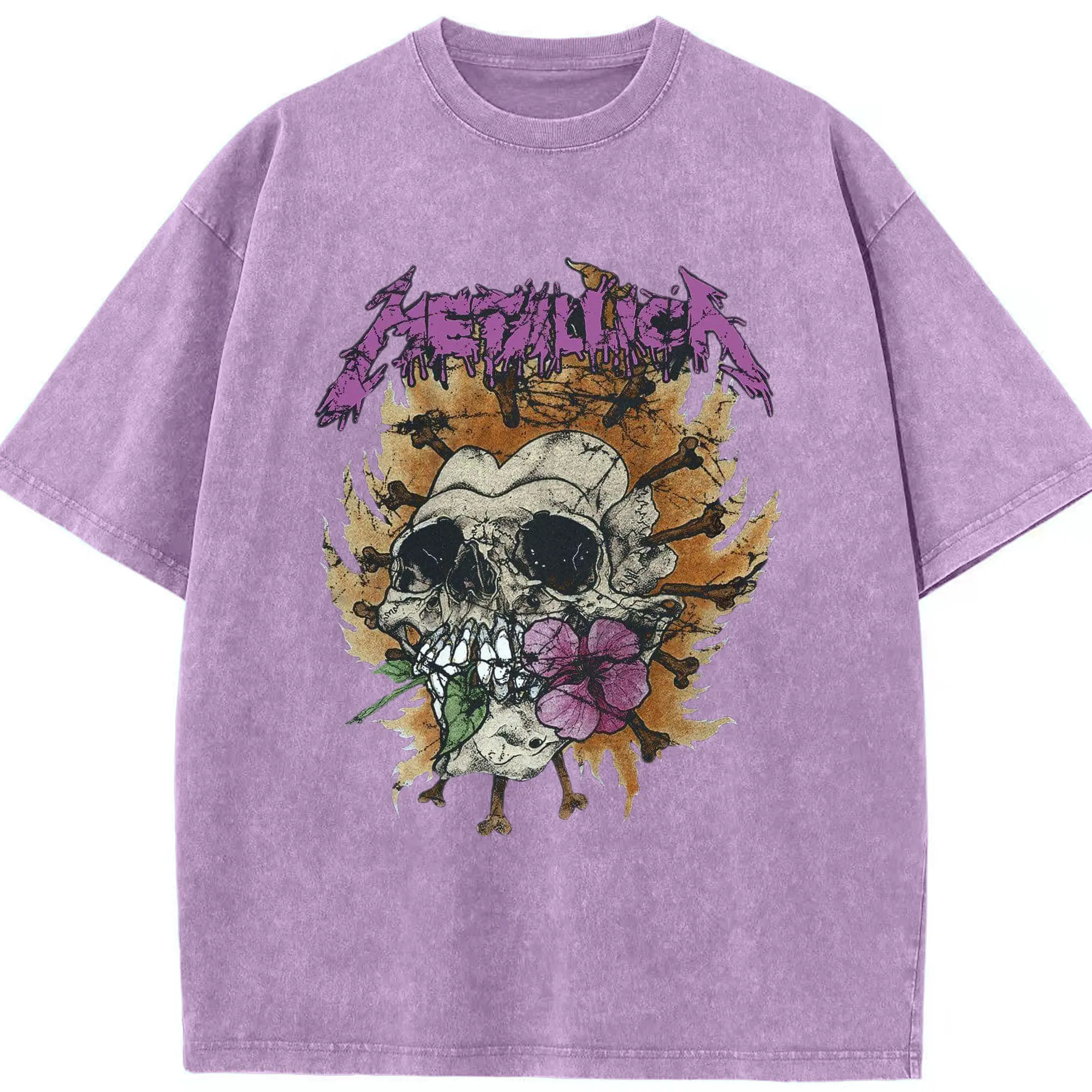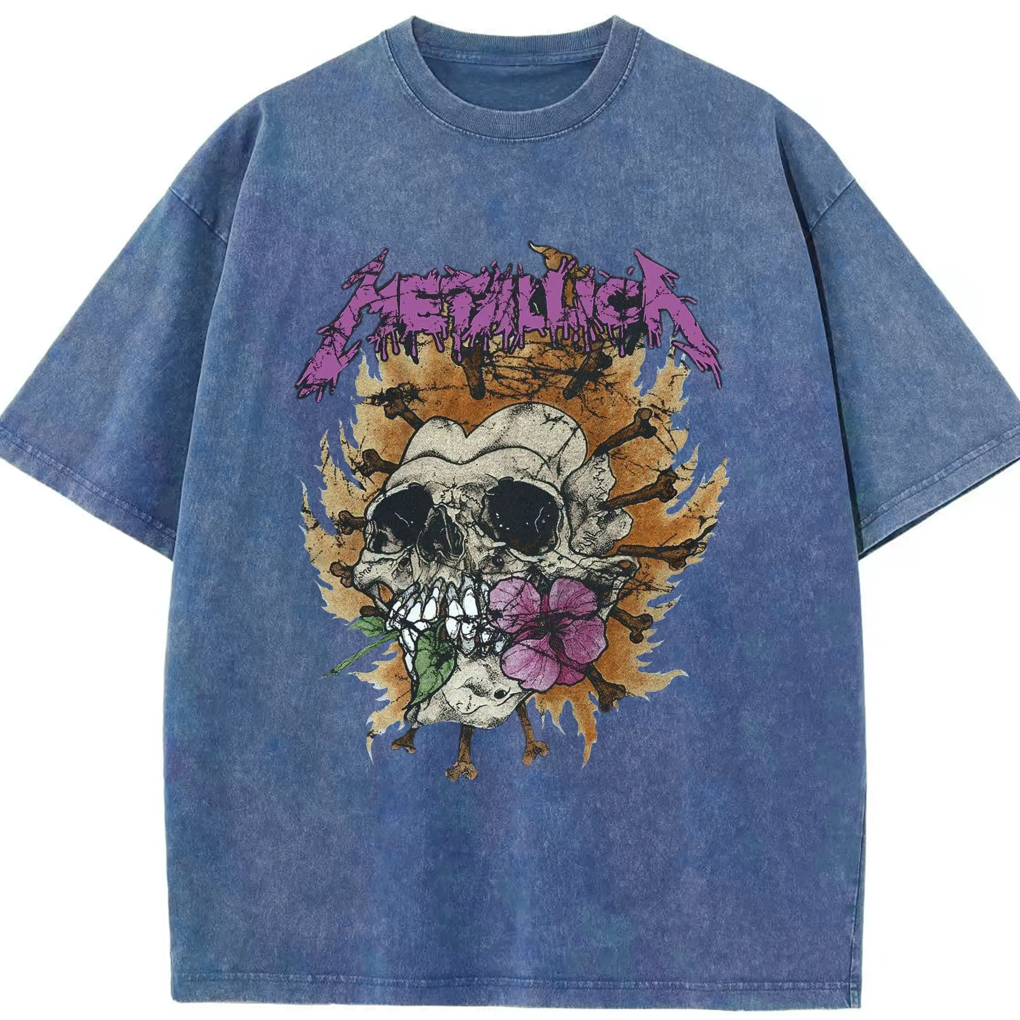 Metallica Dark Rock Skull DIY Shirt - Washed Vintage Look 230g Cotton Oversized T-Shirt With Front Heat Transfer Print – Soft, Lightweight, Stylish Fit – Comfortable Casual Wear For Sports & Everyday Use