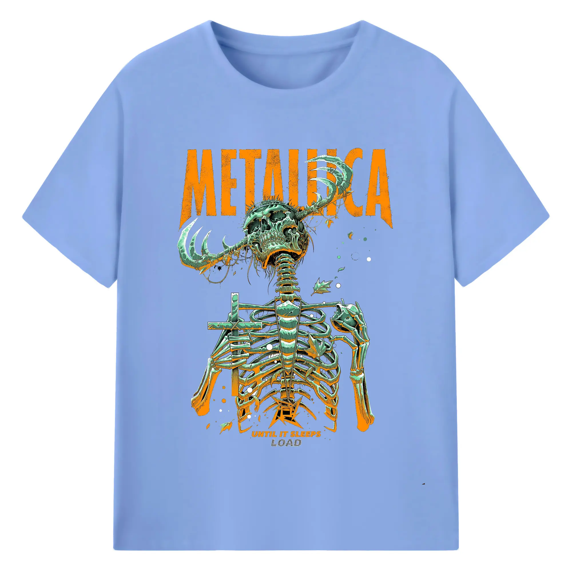 Metallica Horned Skeleton Art DIY Shirt - 180g Cotton T-Shirt With Front Heat Transfer Print – Soft, Lightweight, Fitted Design – Comfortable Casual Wear For Sports & Everyday Use