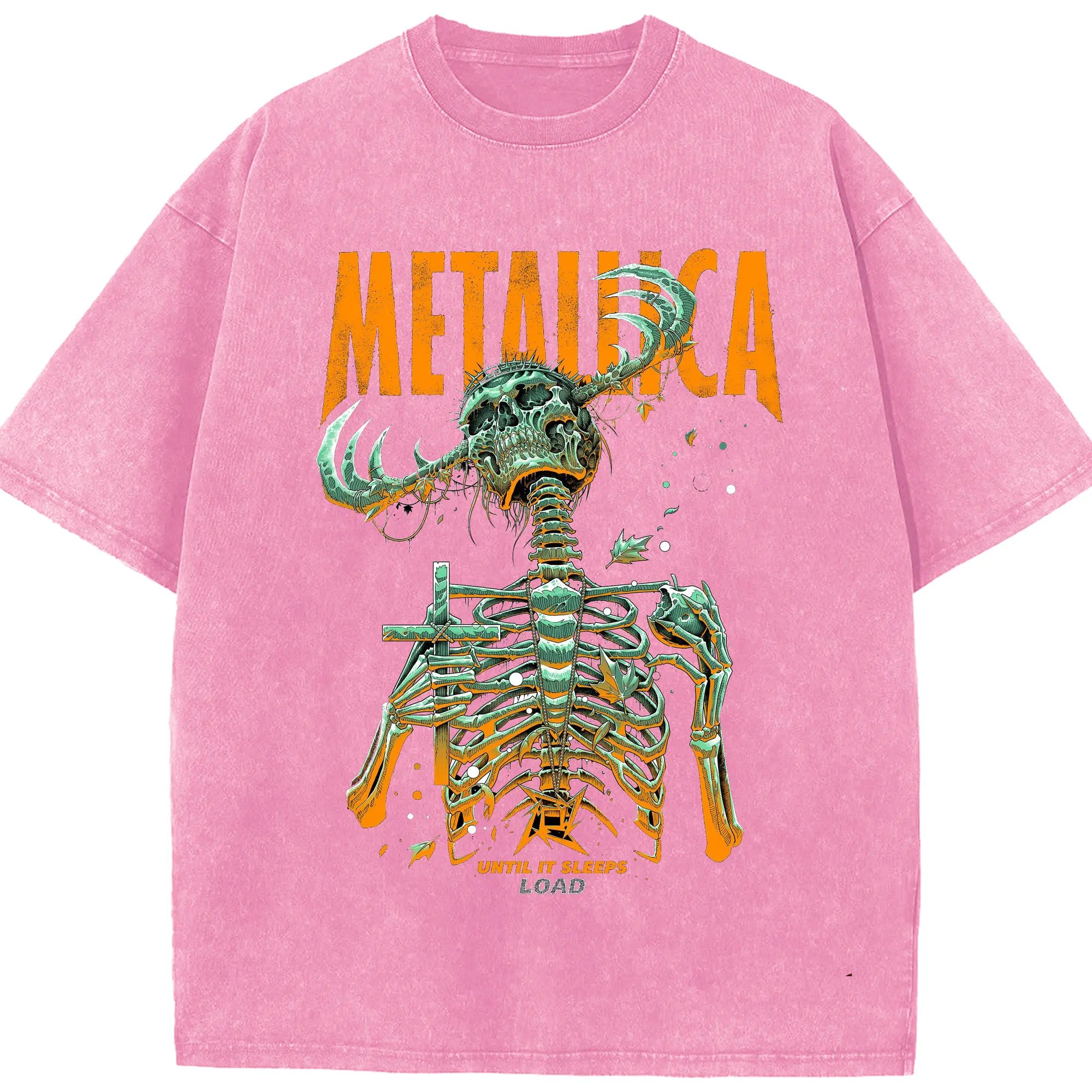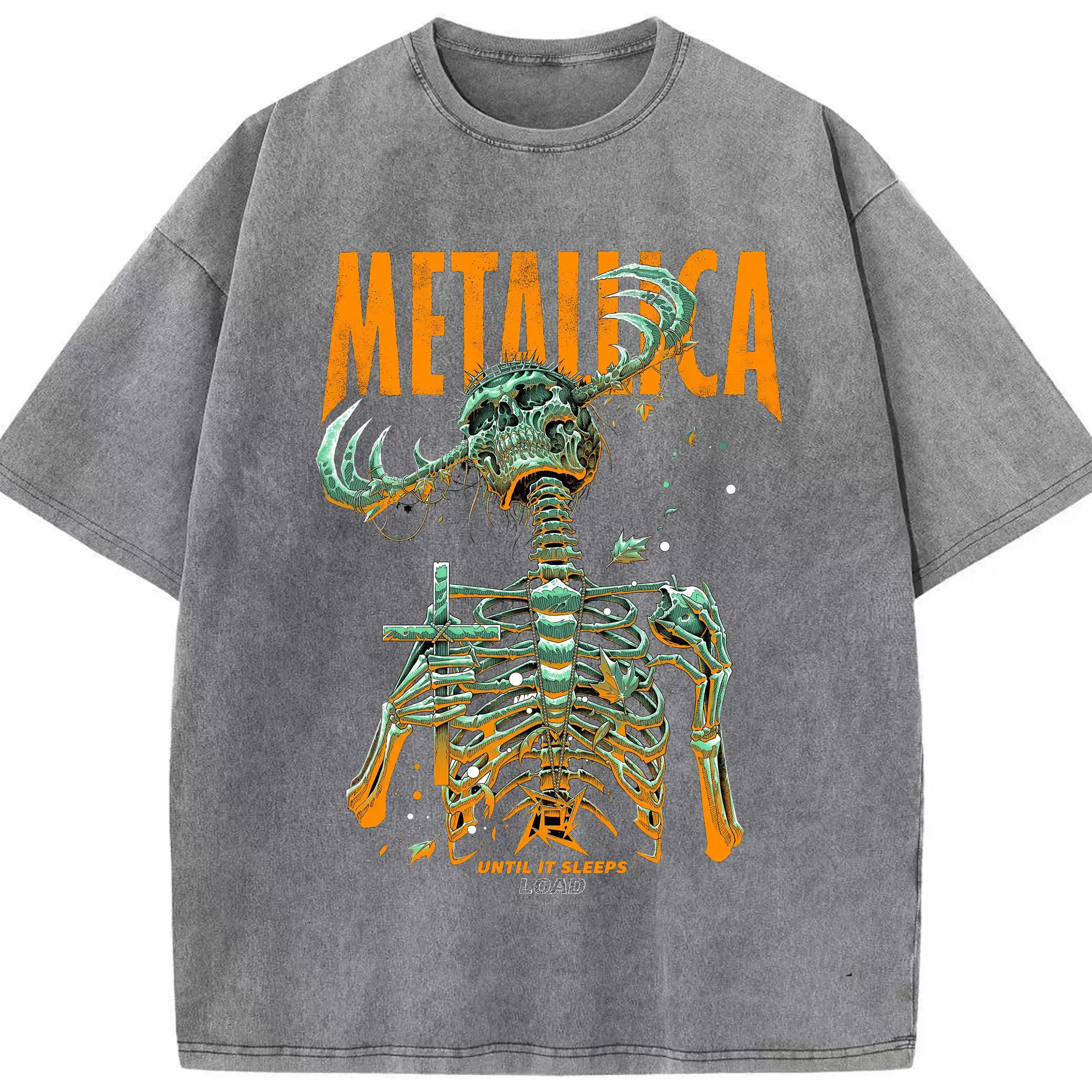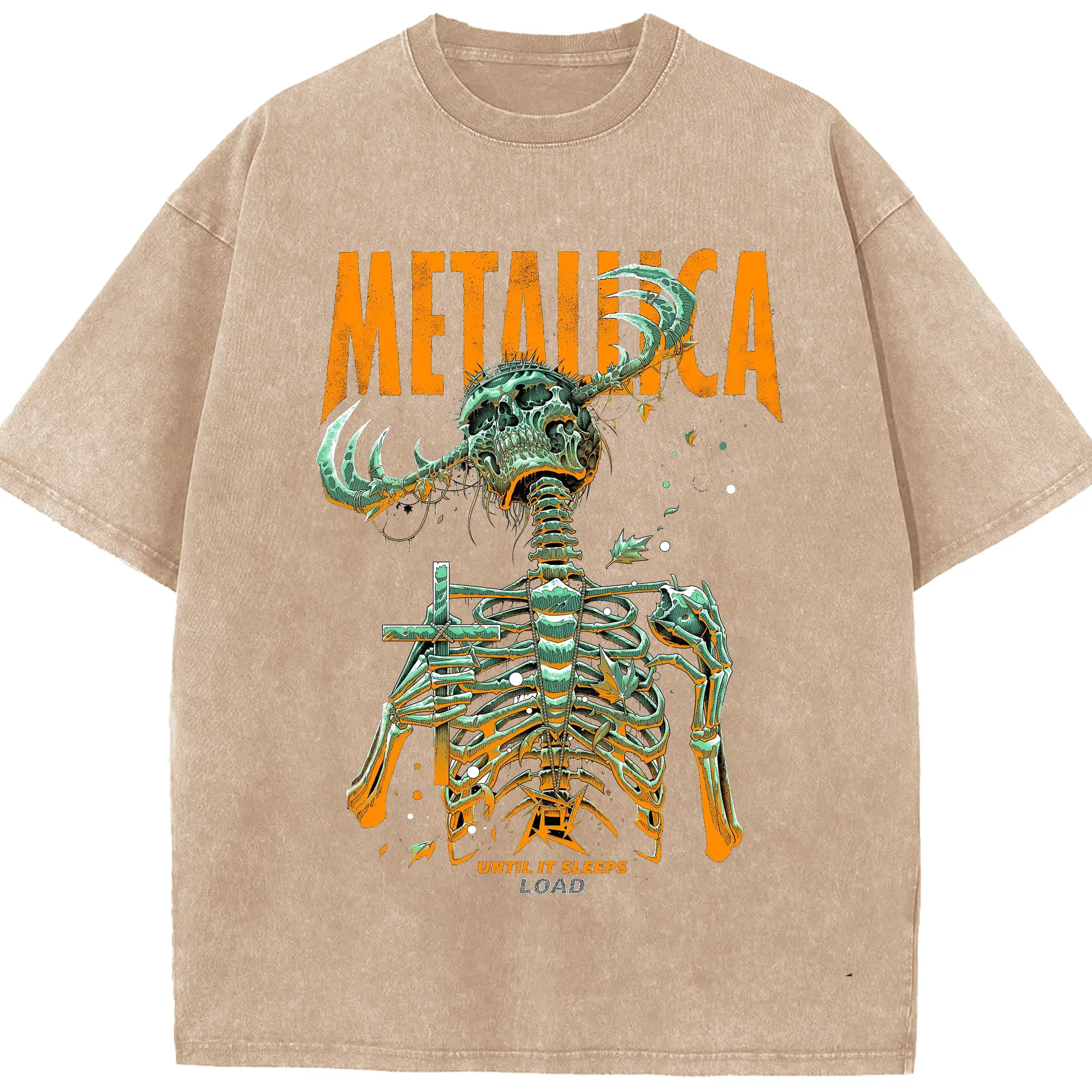 Metallica Horned Skeleton Art DIY Shirt - Washed Vintage Look 230g Cotton Oversized T-Shirt With Front Heat Transfer Print – Soft, Lightweight, Stylish Fit – Comfortable Casual Wear For Sports & Everyday Use