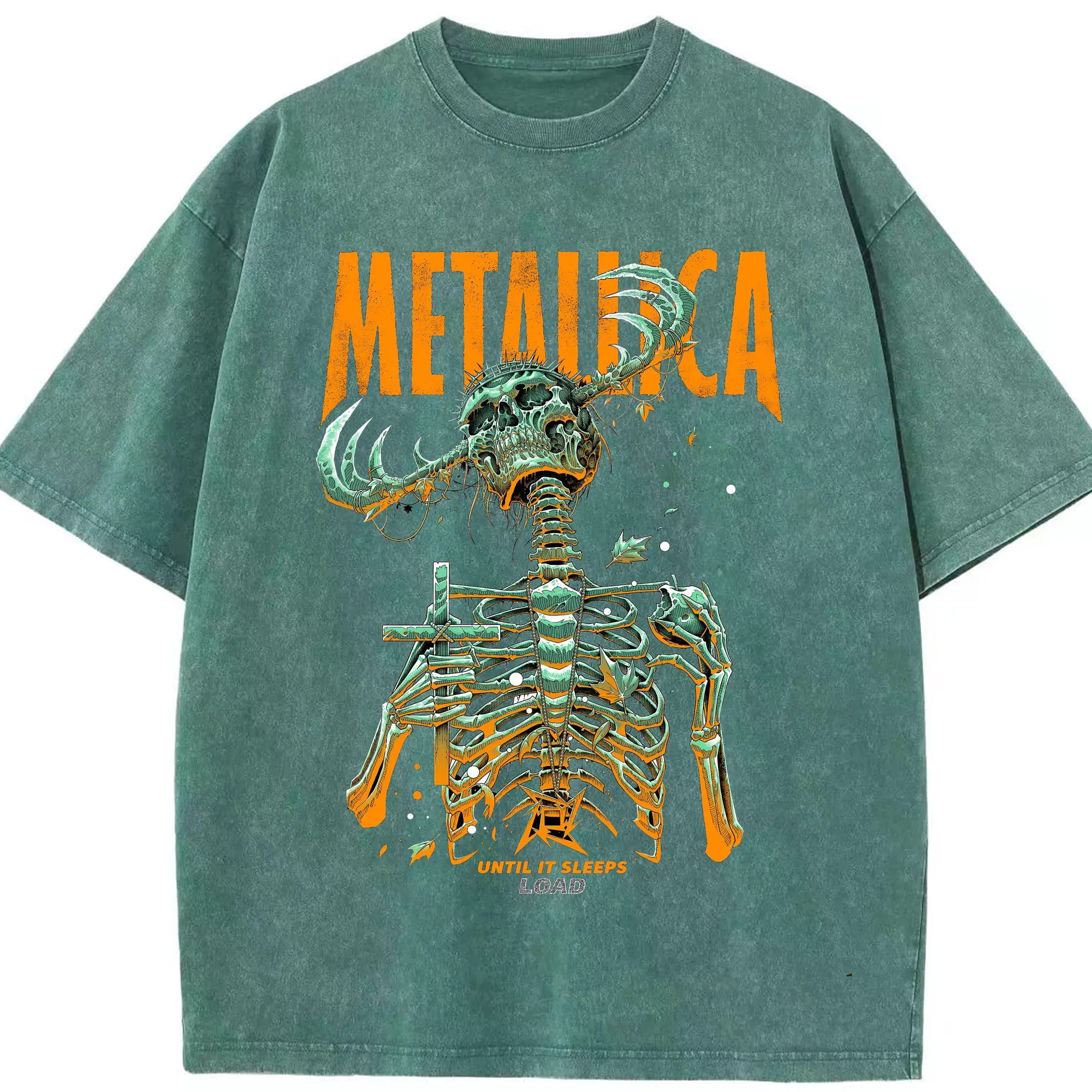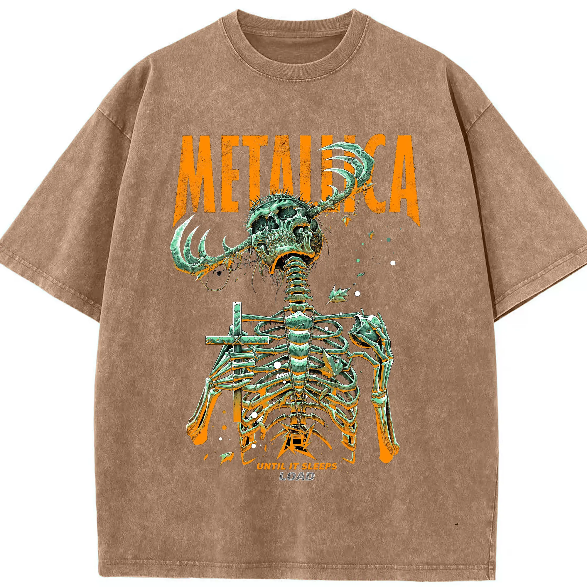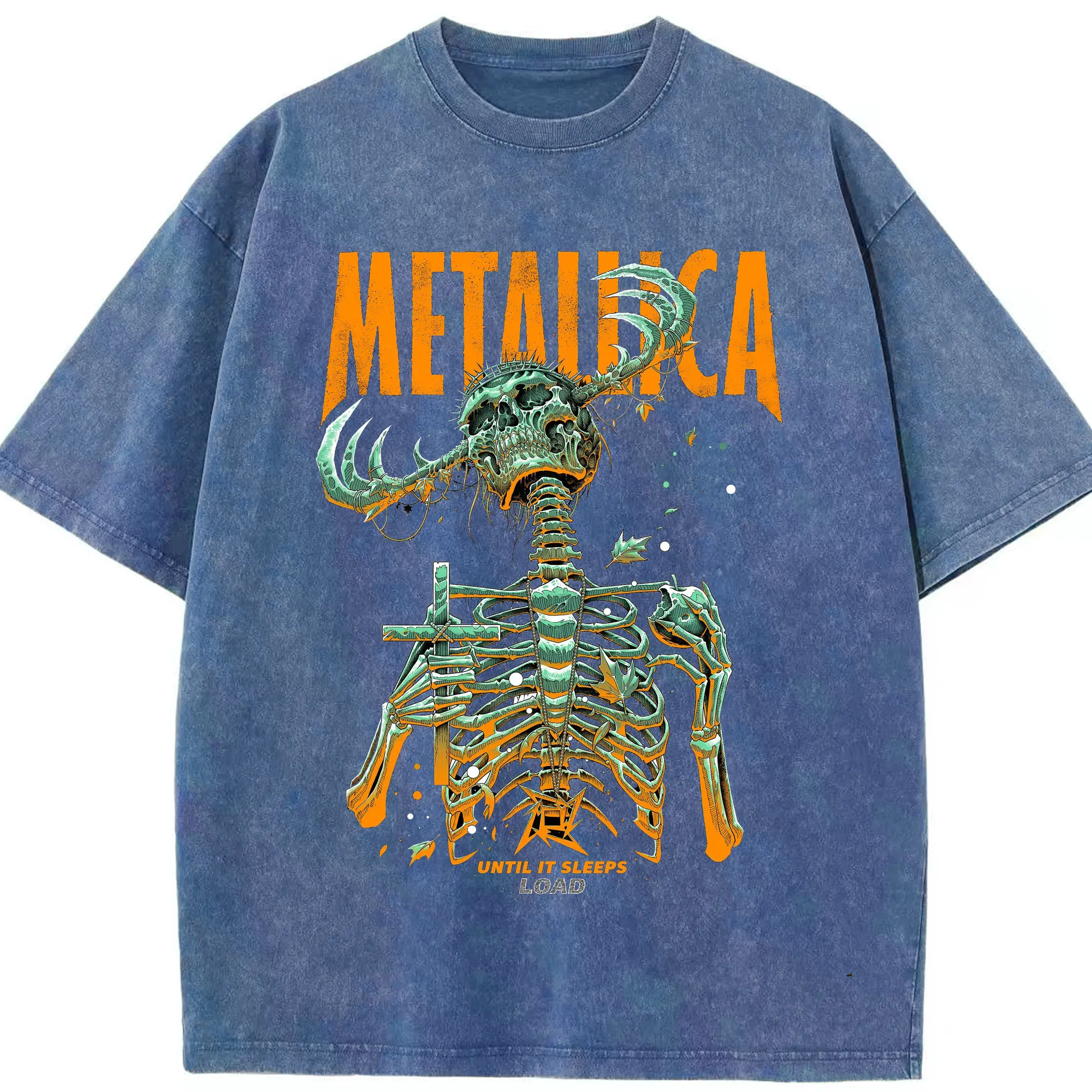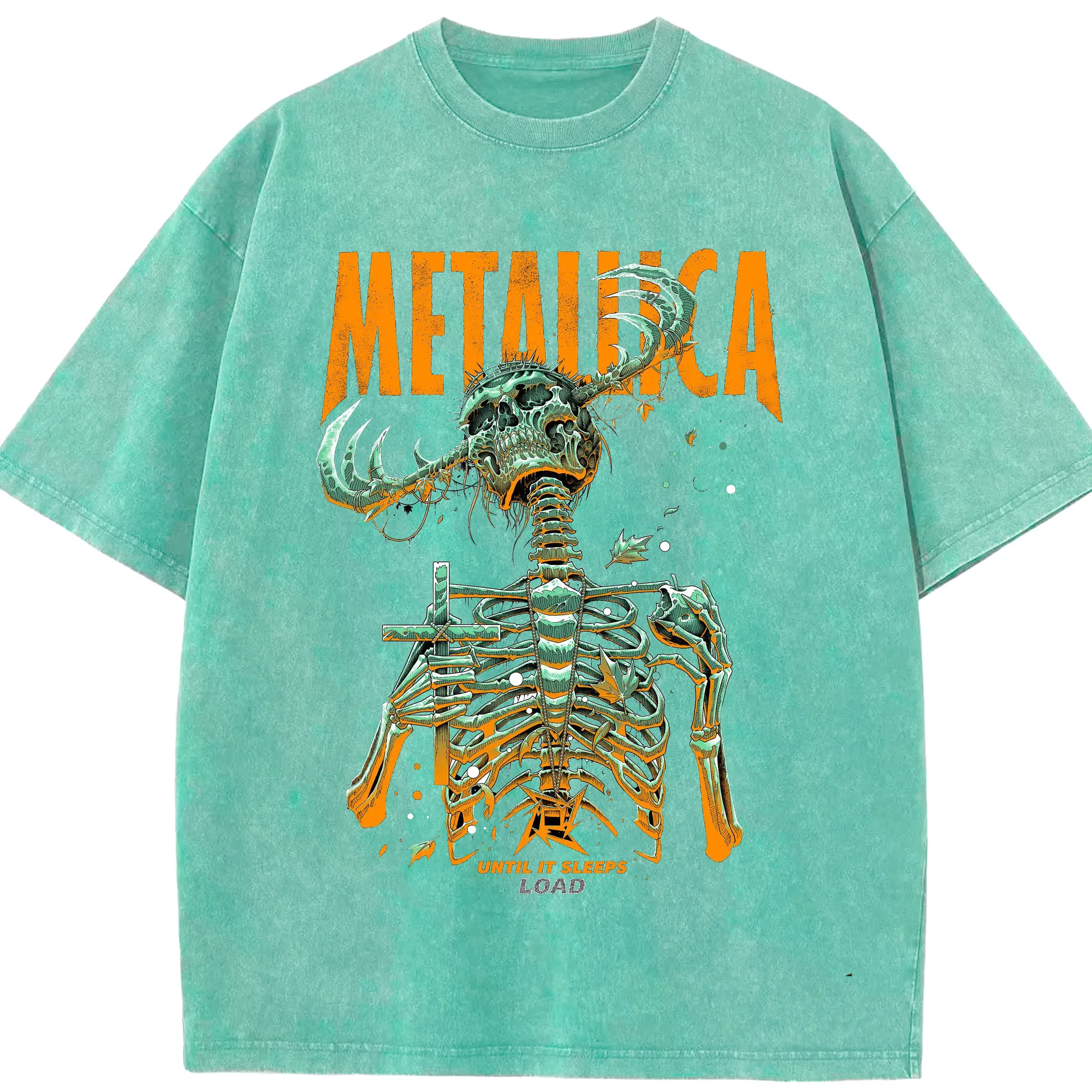 Metallica Horned Skeleton Art DIY Shirt - Washed Vintage Look 230g Cotton Oversized T-Shirt With Front Heat Transfer Print – Soft, Lightweight, Stylish Fit – Comfortable Casual Wear For Sports & Everyday Use