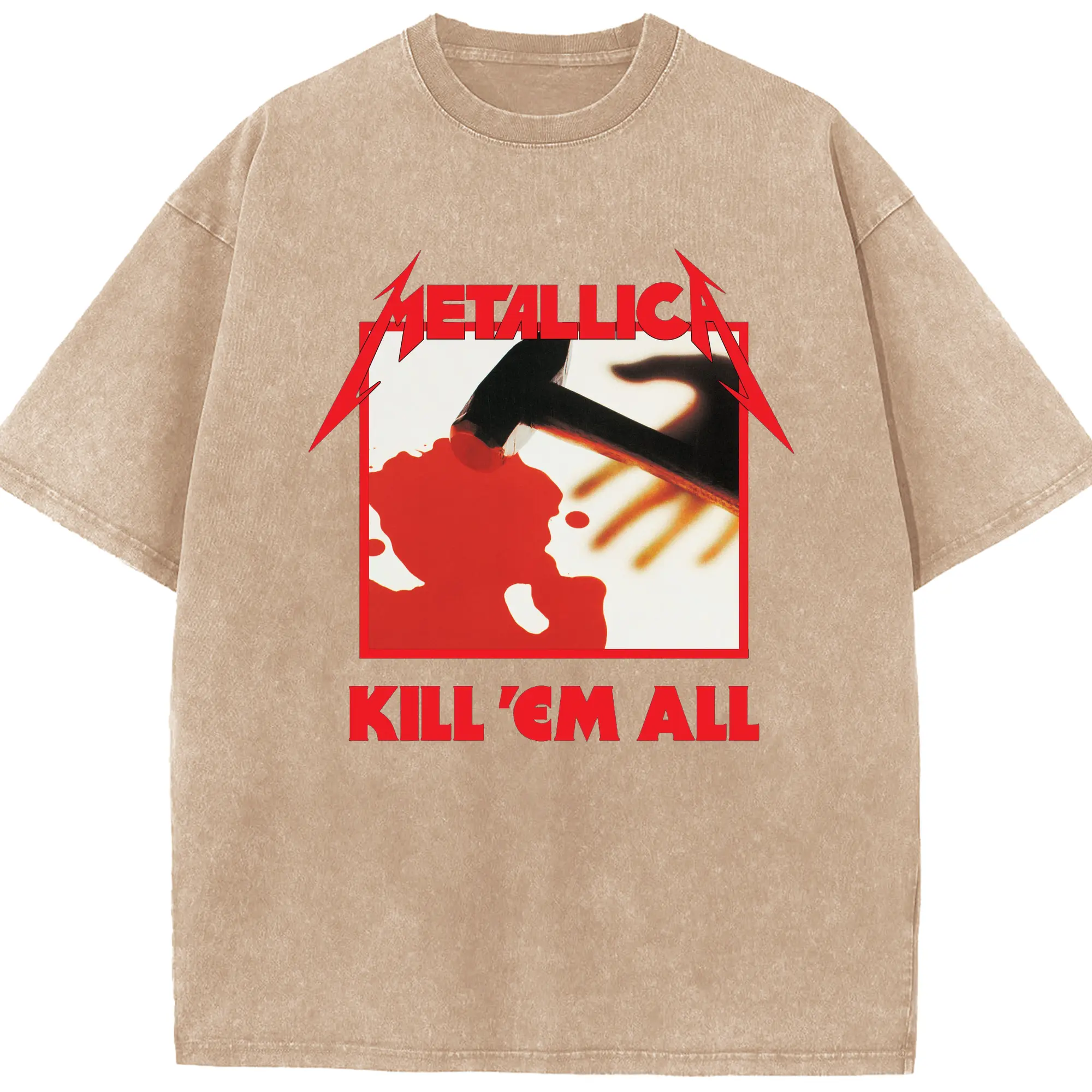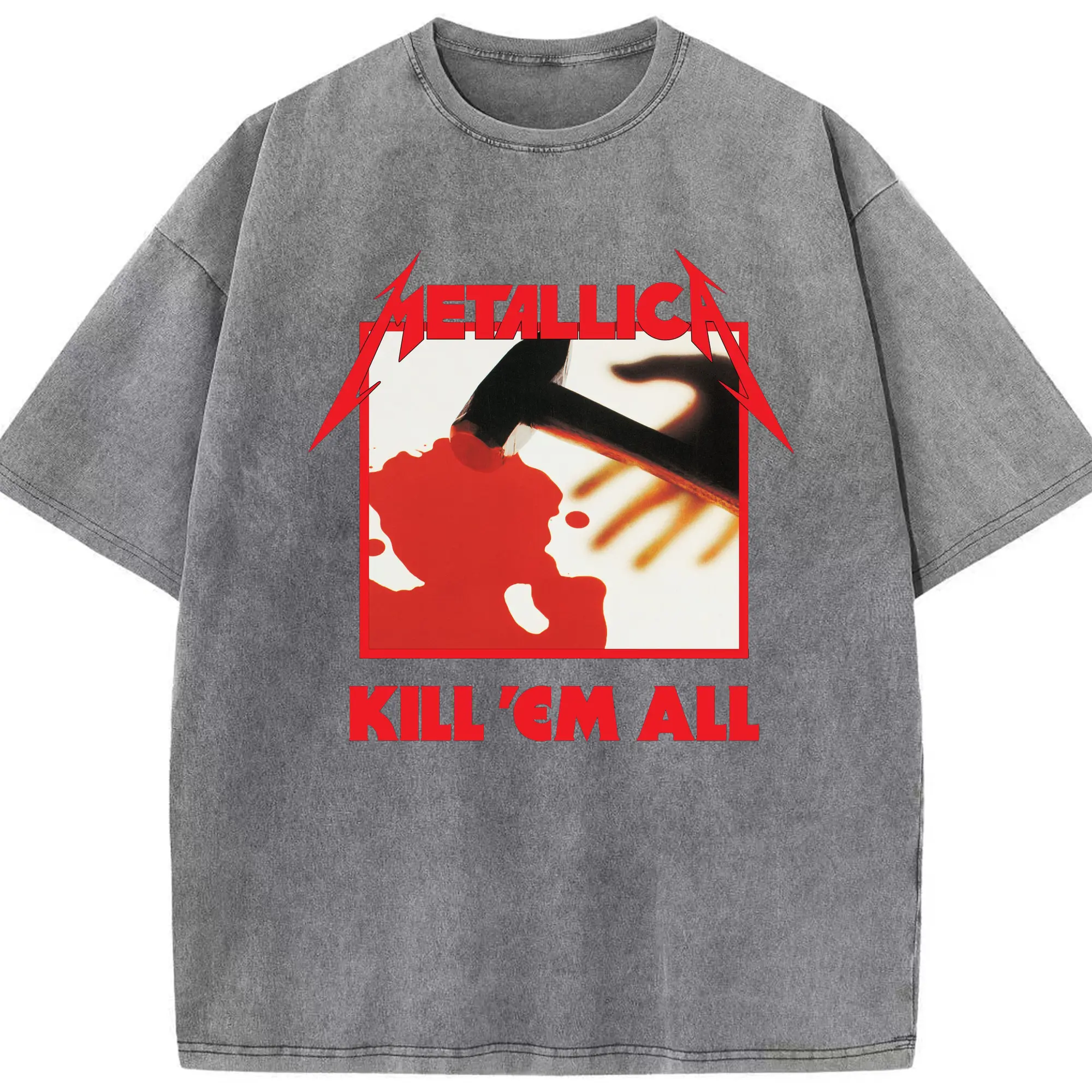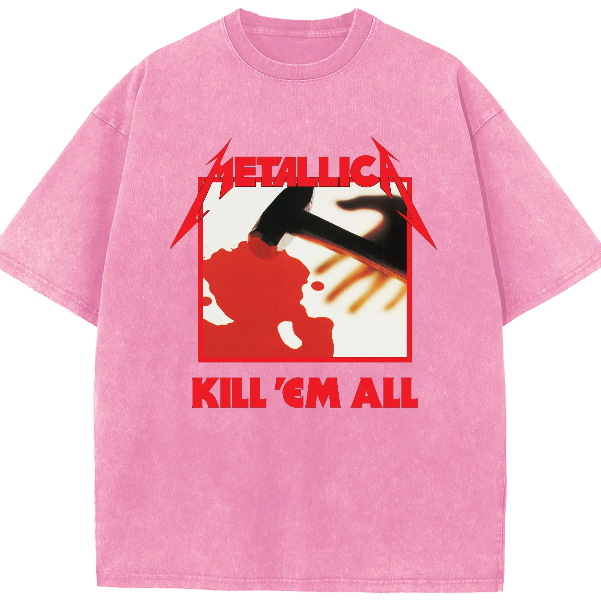 Metallica《Kill 'Em All》Album Limited DIY Shirt - Washed Vintage Look 230g Cotton Oversized T-Shirt With Front Heat Transfer Print – Soft, Lightweight, Stylish Fit – Comfortable Casual Wear For Sports & Everyday Use