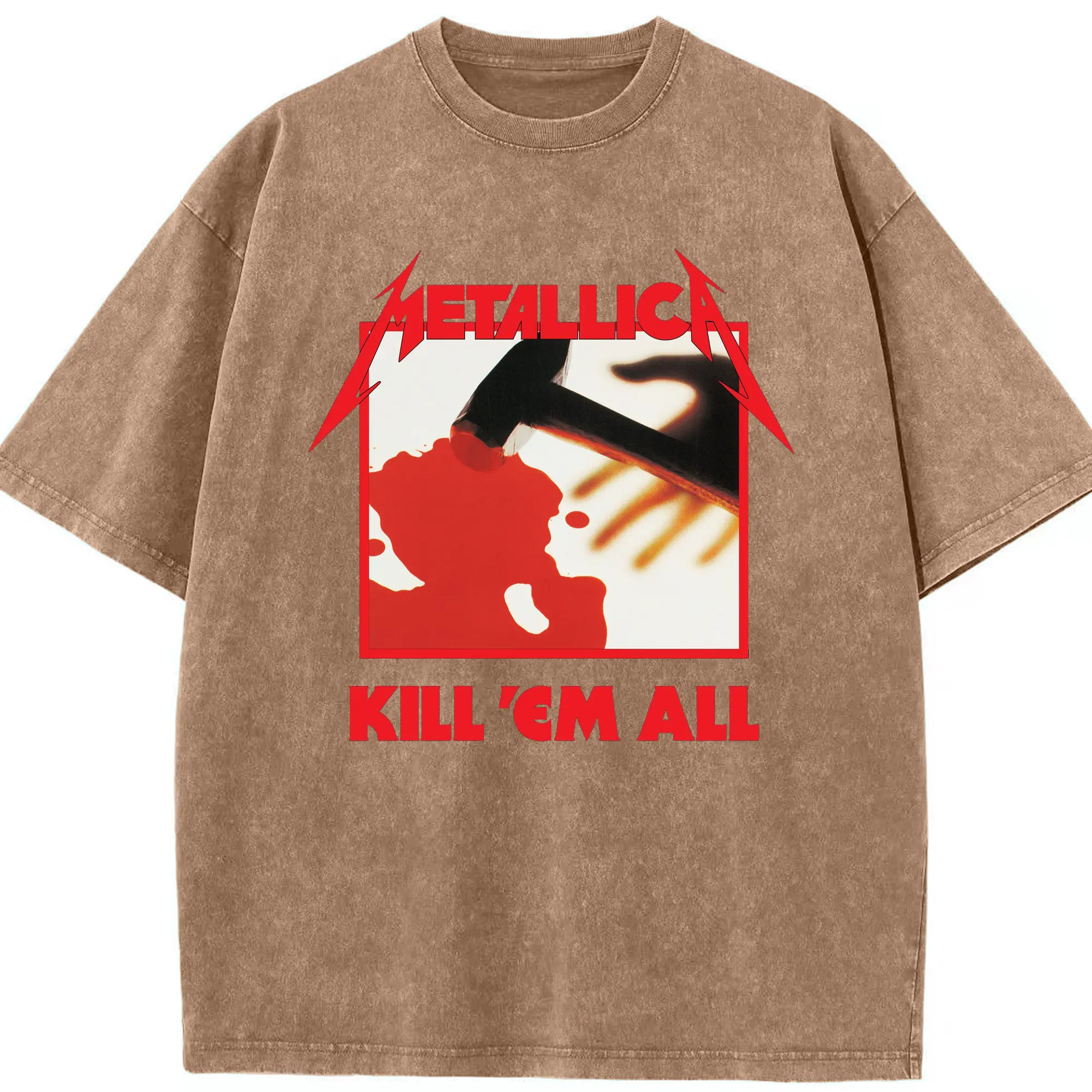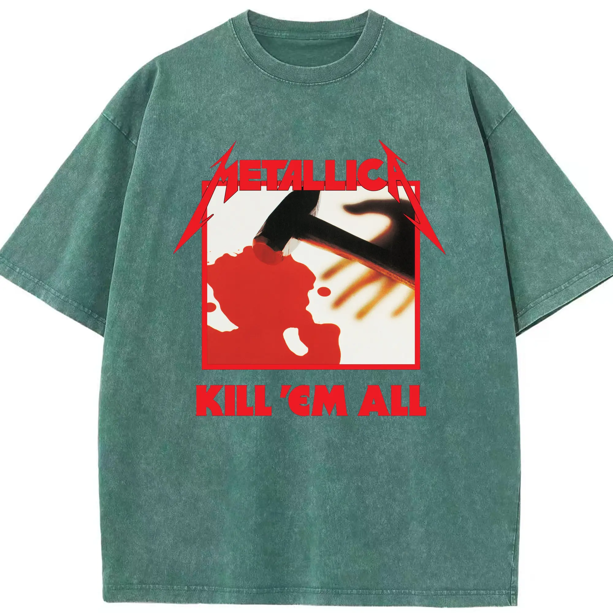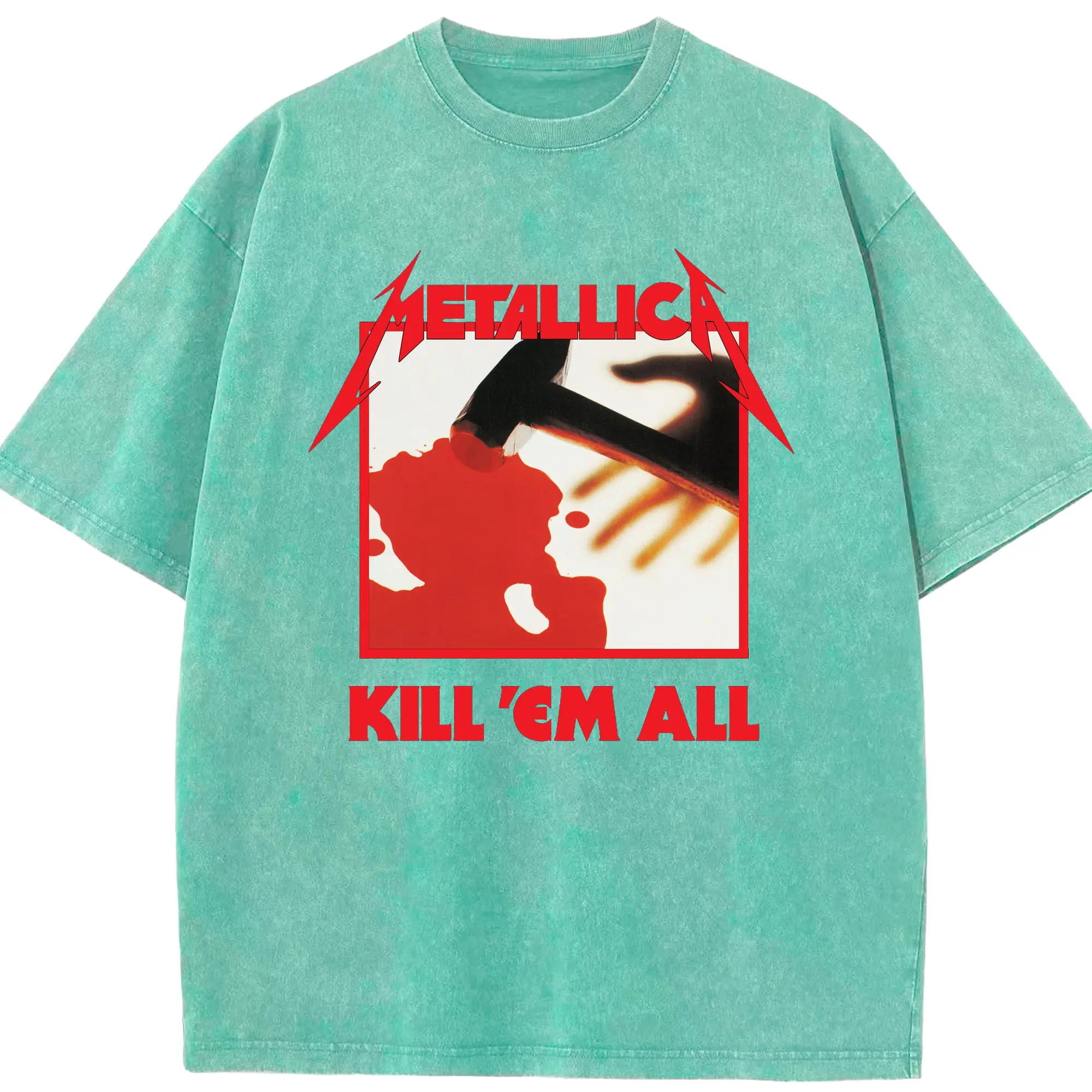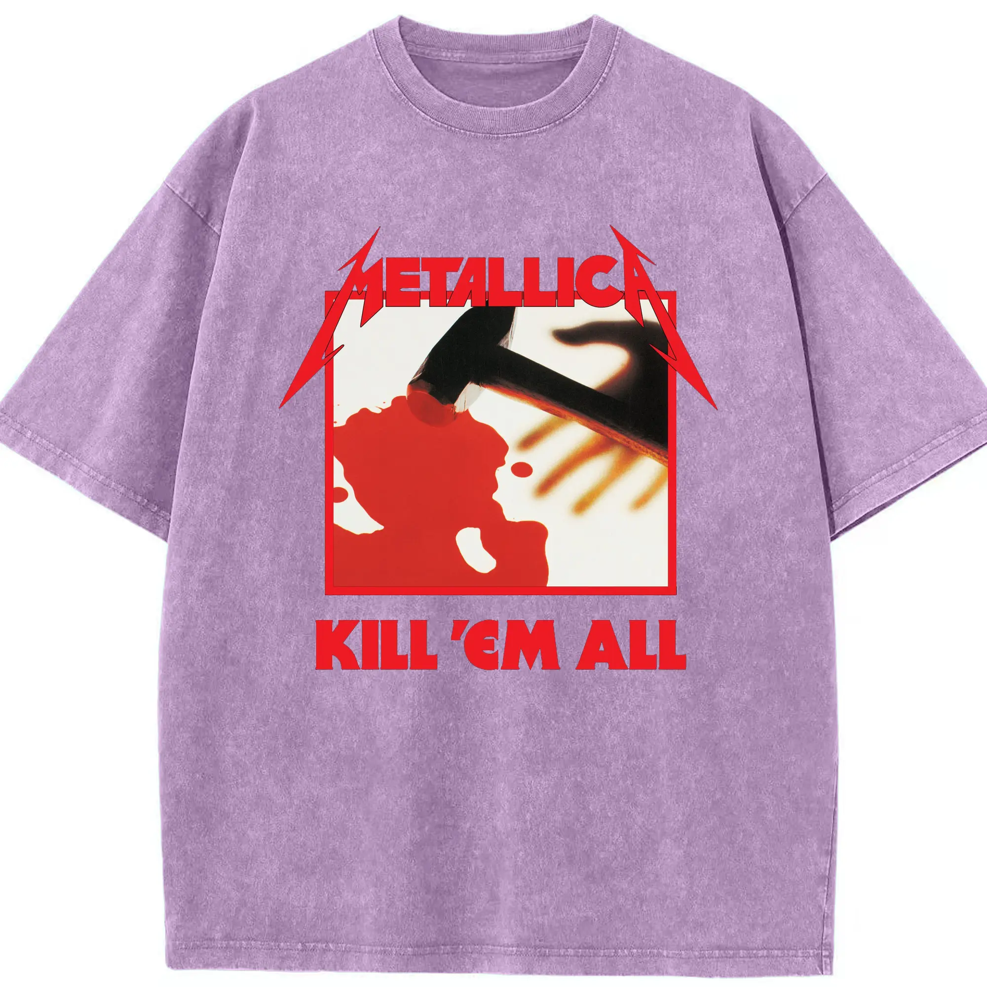 Metallica《Kill 'Em All》Album Limited DIY Shirt - Washed Vintage Look 230g Cotton Oversized T-Shirt With Front Heat Transfer Print – Soft, Lightweight, Stylish Fit – Comfortable Casual Wear For Sports & Everyday Use