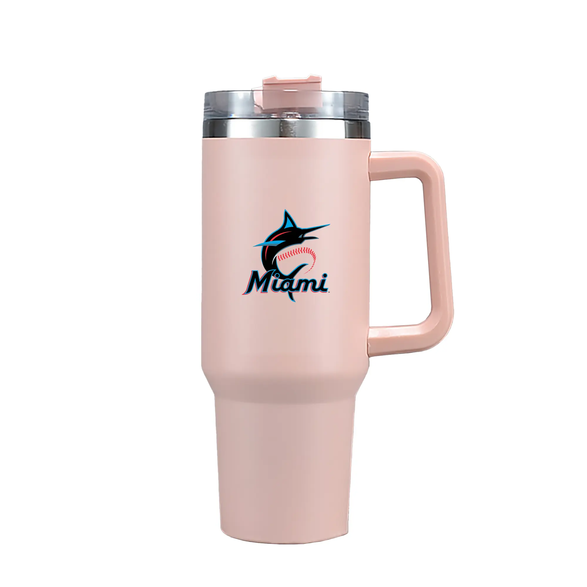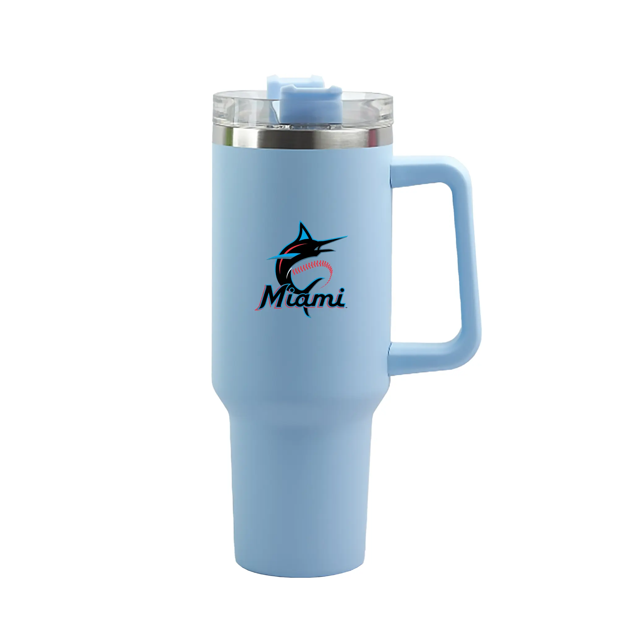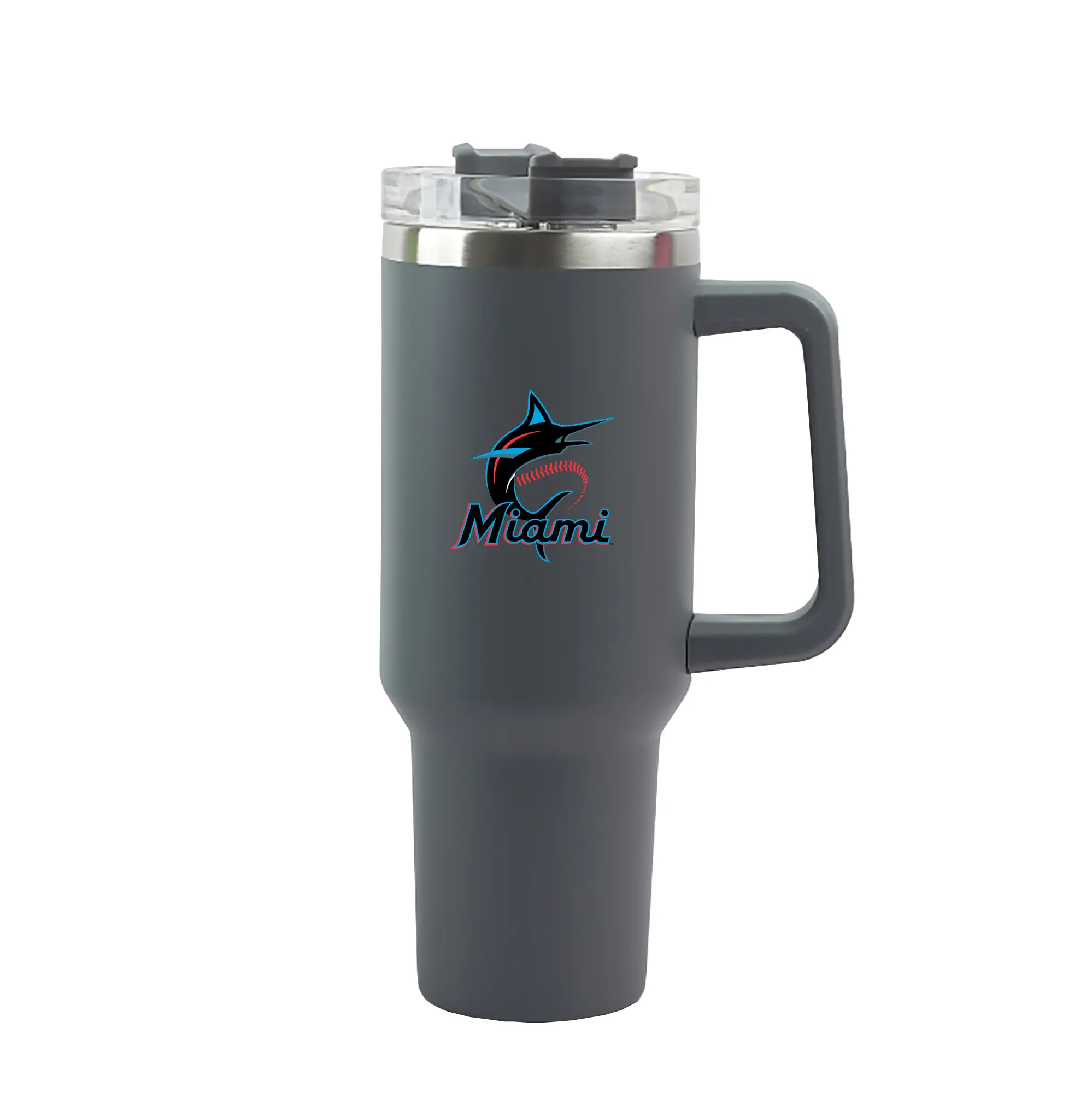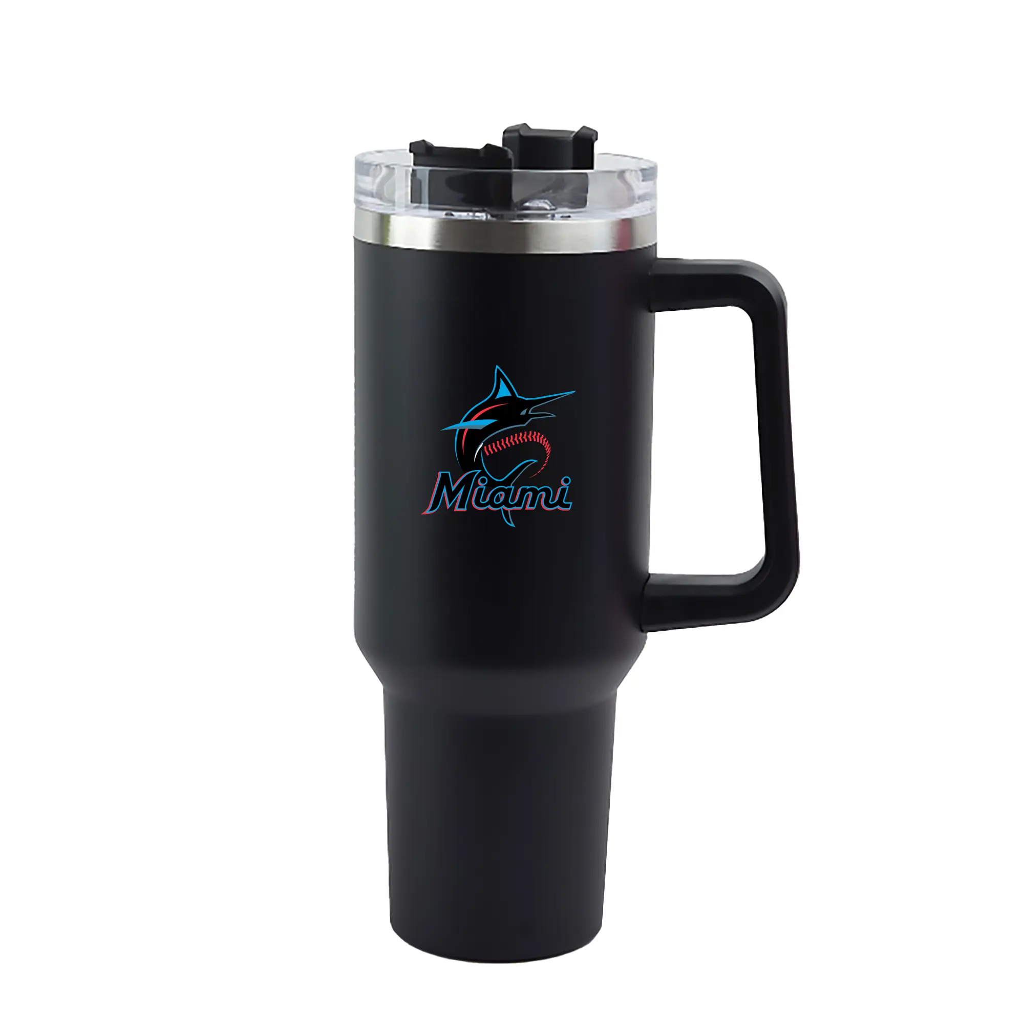 Miami Marlins Team Logo - 40oz Handle Car Tumbler – Durable Stainless Steel Travel Mug With UV Print – Double Wall Insulated, Fits Most Car Cup Holders