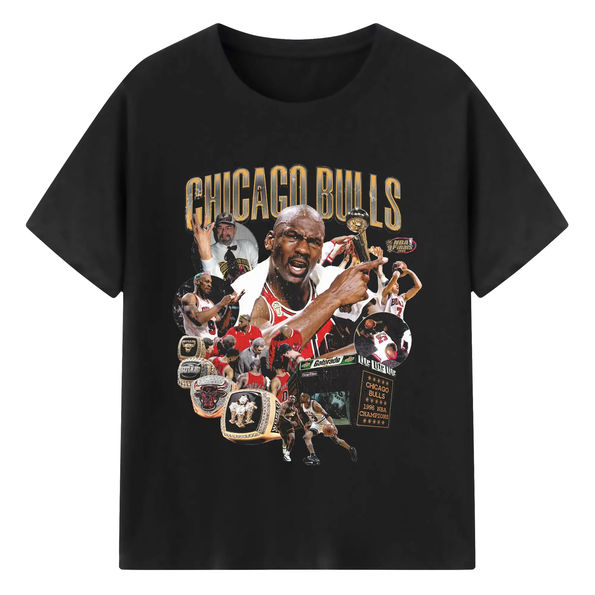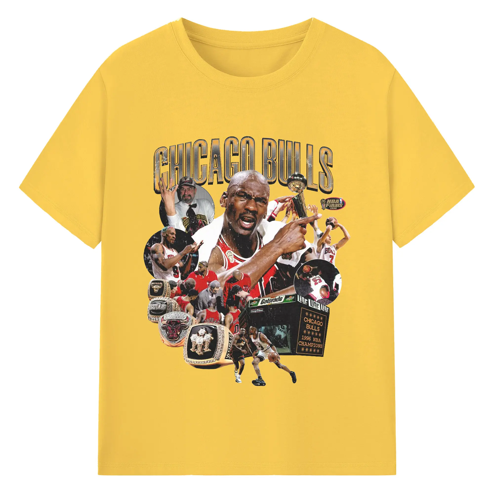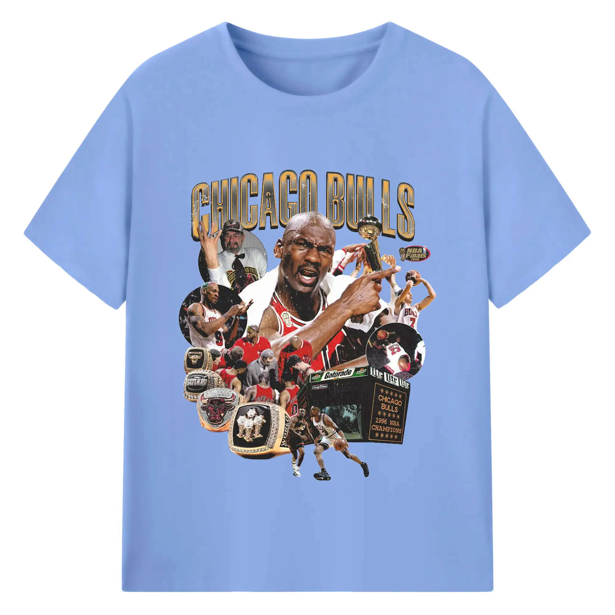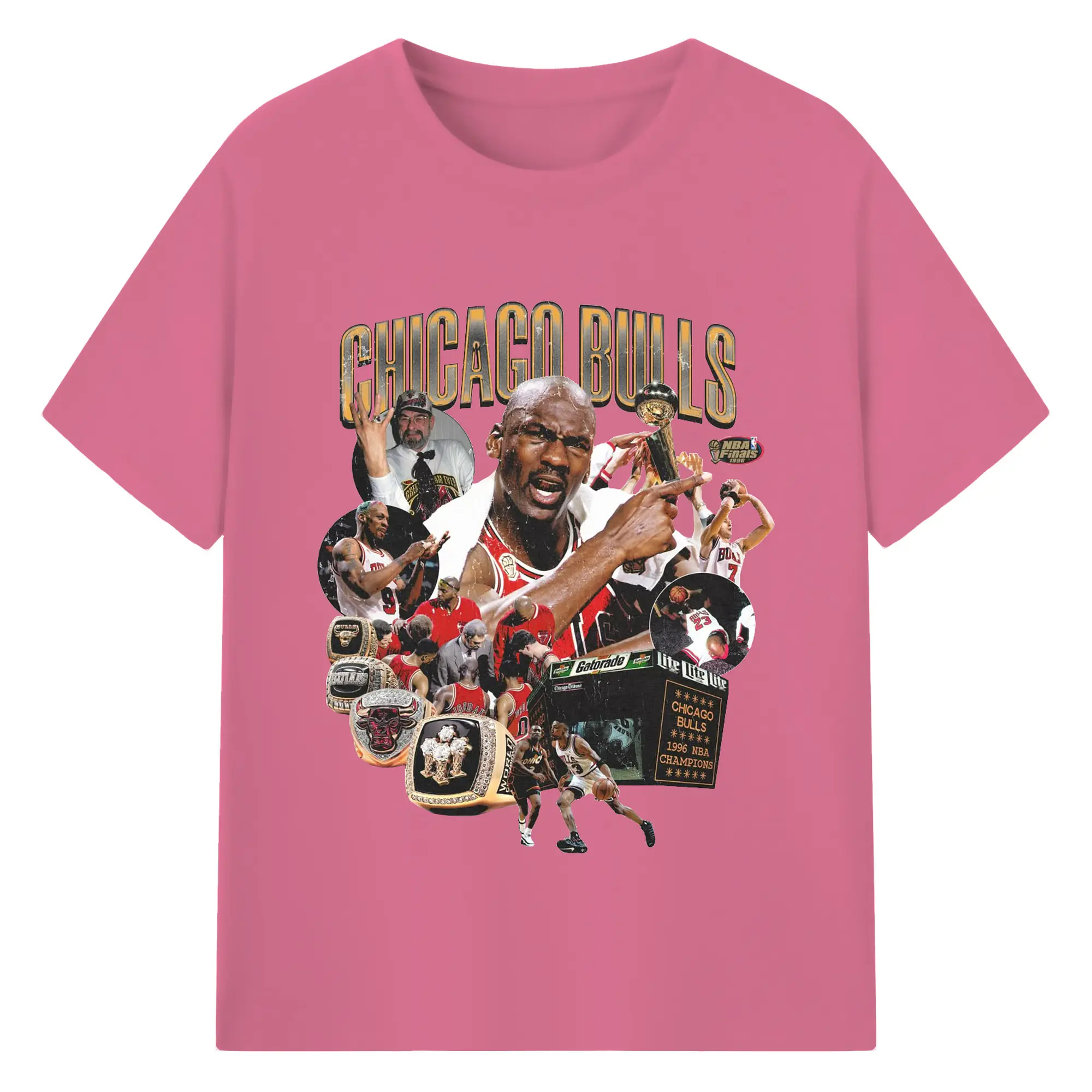 Michael Jordan 1996 Chicago Bulls Champions Shirt - 180g Cotton T-Shirt With Front Heat Transfer Print – Soft, Lightweight, Fitted Design – Comfortable Casual Wear For Sports & Everyday Use