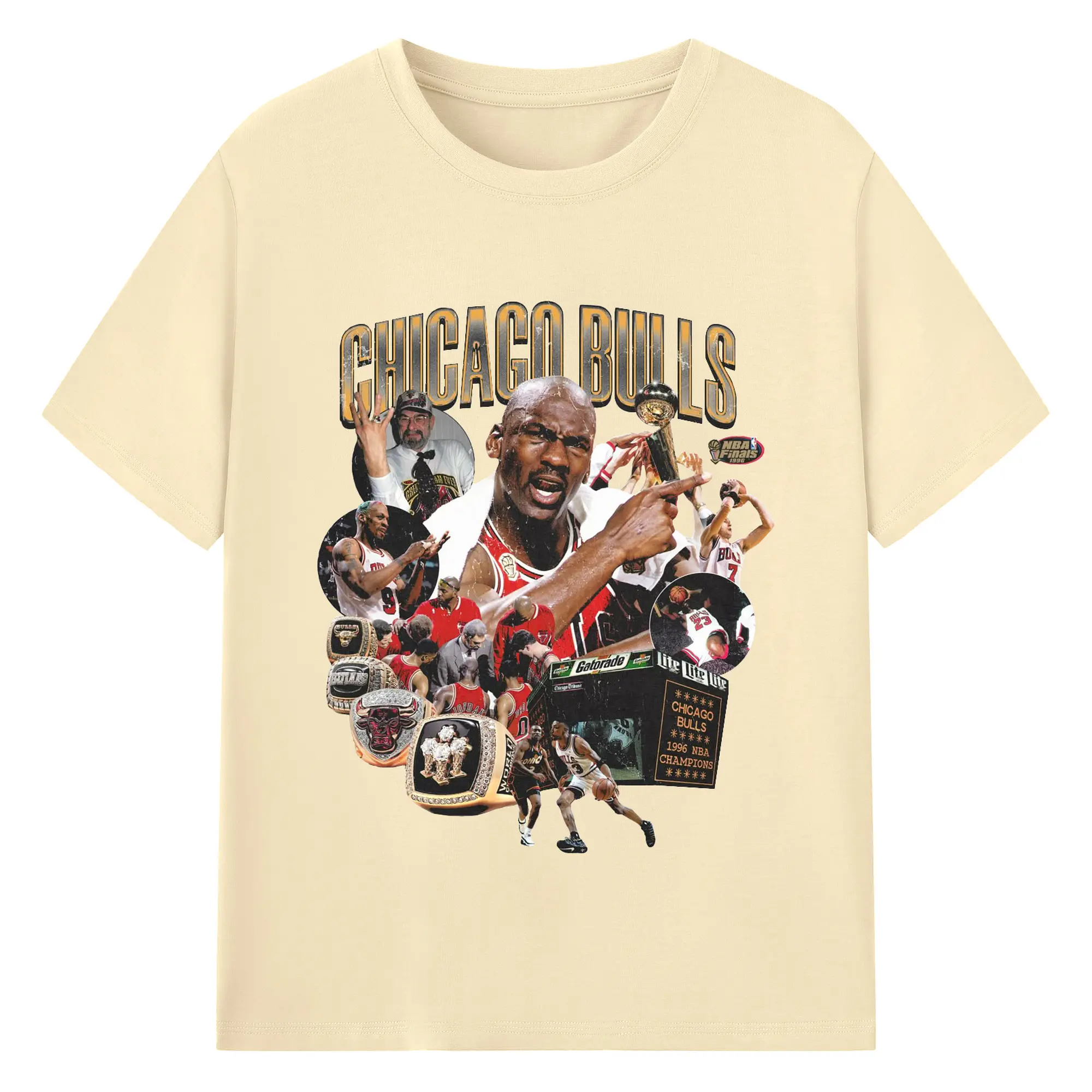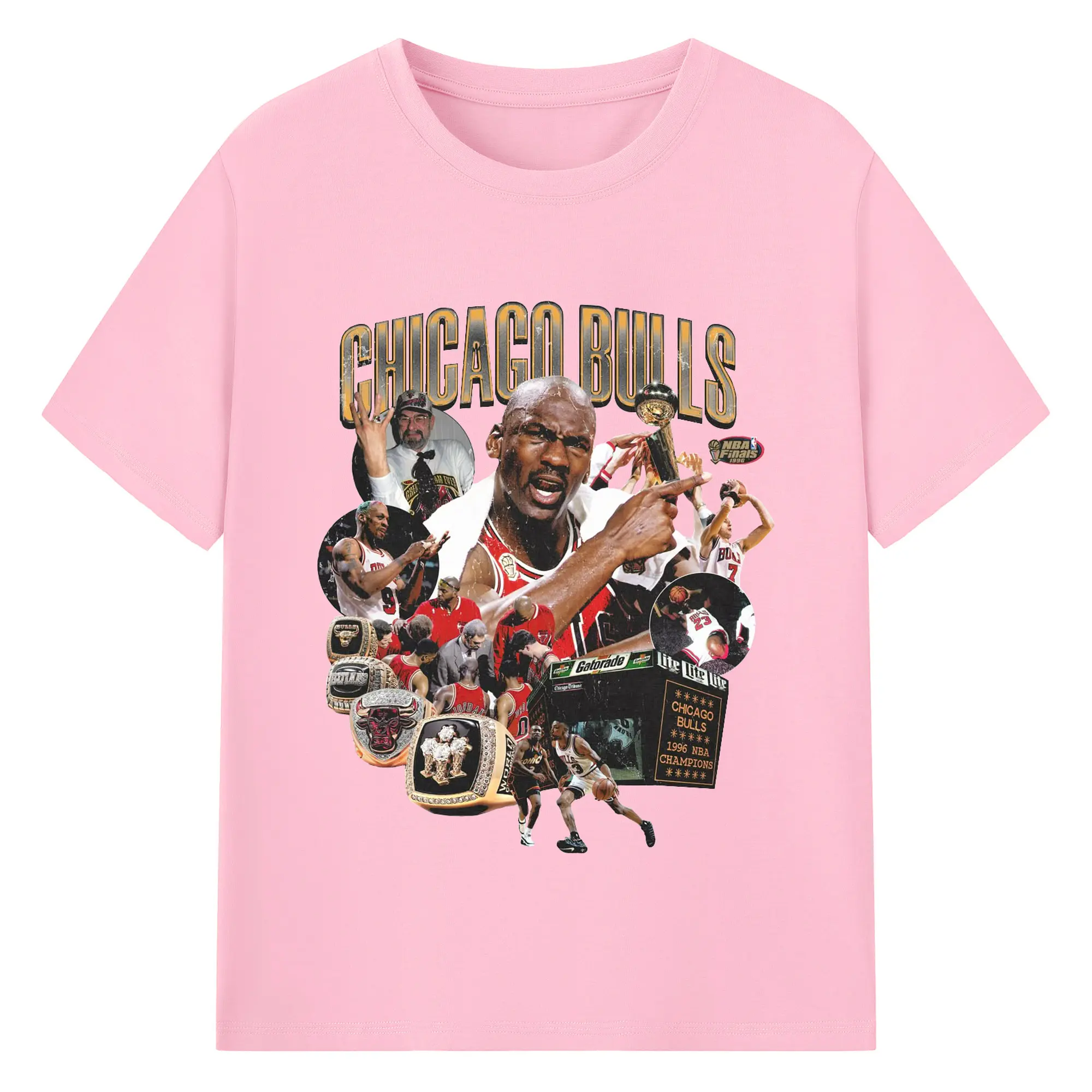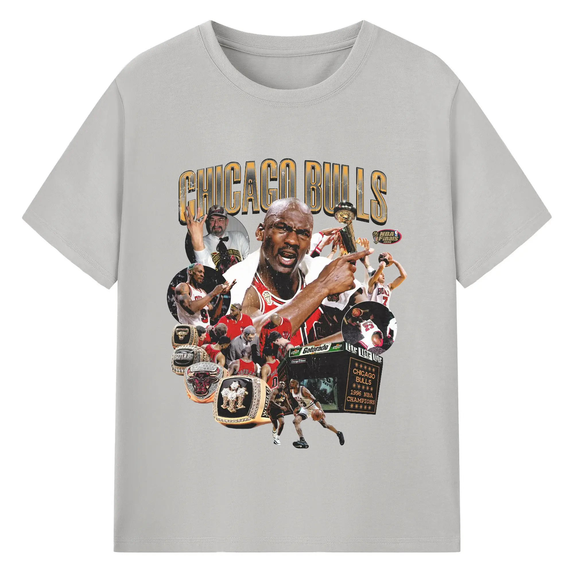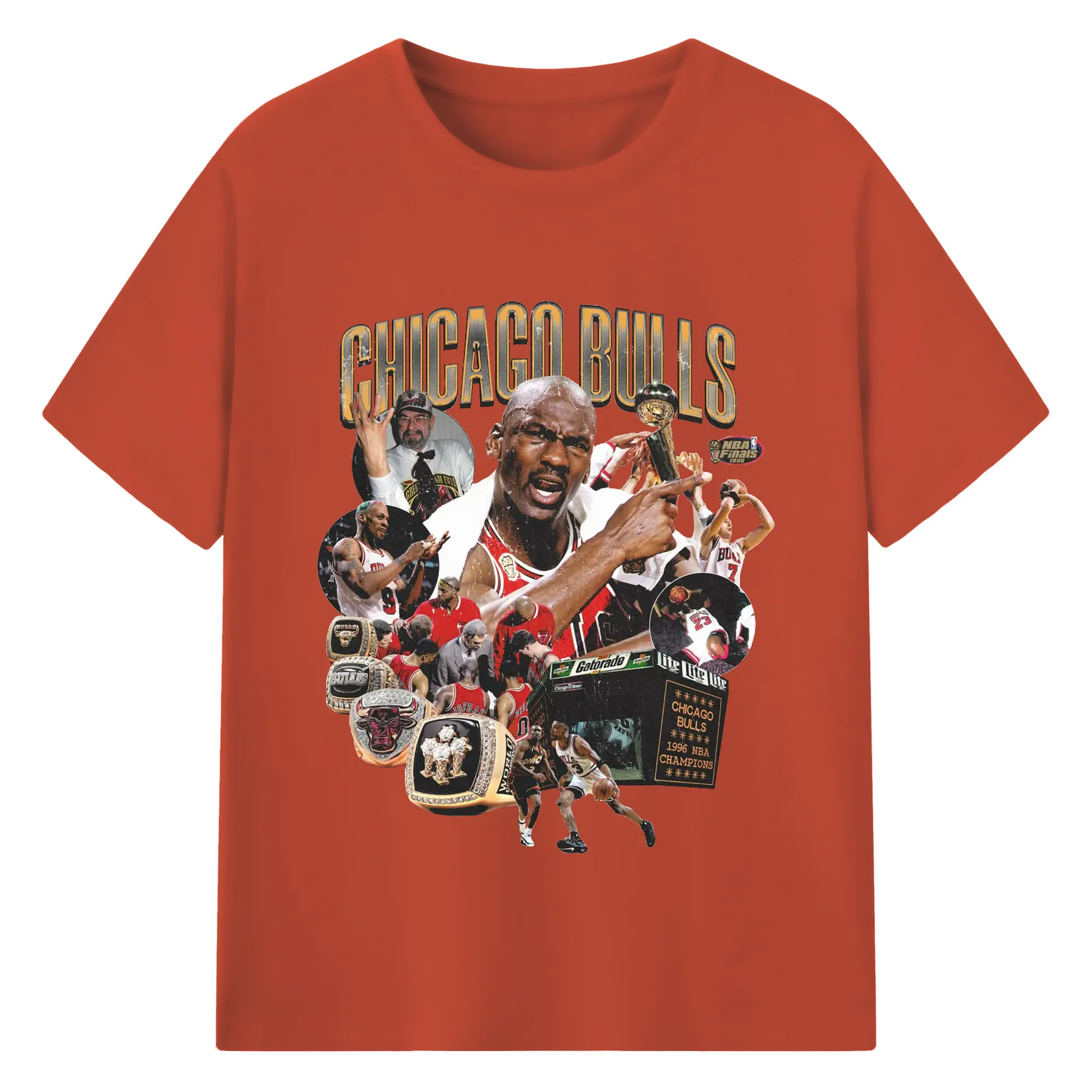 Michael Jordan 1996 Chicago Bulls Champions Shirt - 180g Cotton T-Shirt With Front Heat Transfer Print – Soft, Lightweight, Fitted Design – Comfortable Casual Wear For Sports & Everyday Use