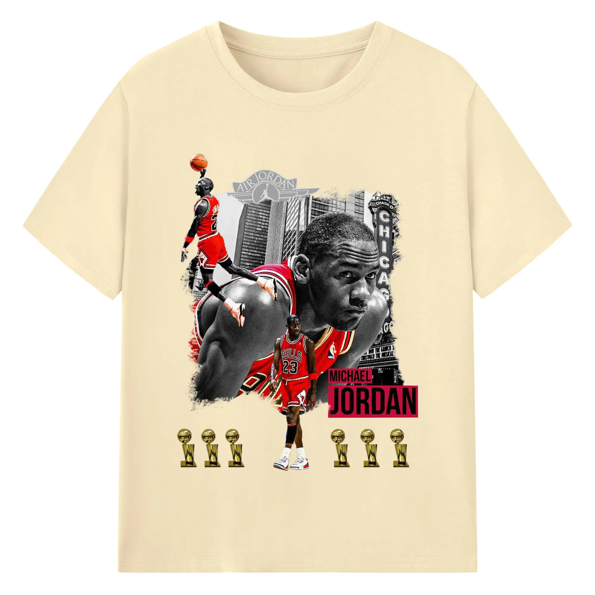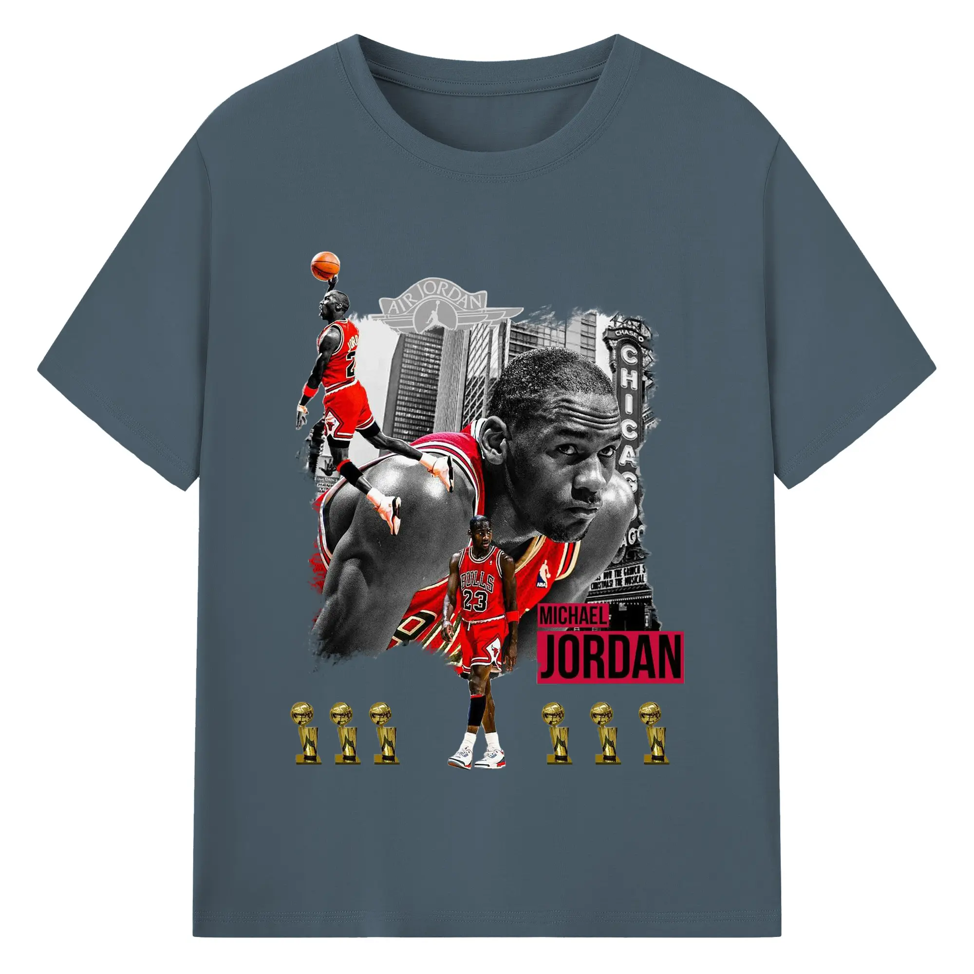 Michael Jordan 6x NBA Champion Shirt - 180g Cotton T-Shirt With Front Heat Transfer Print – Soft, Lightweight, Fitted Design – Comfortable Casual Wear For Sports & Everyday Use
